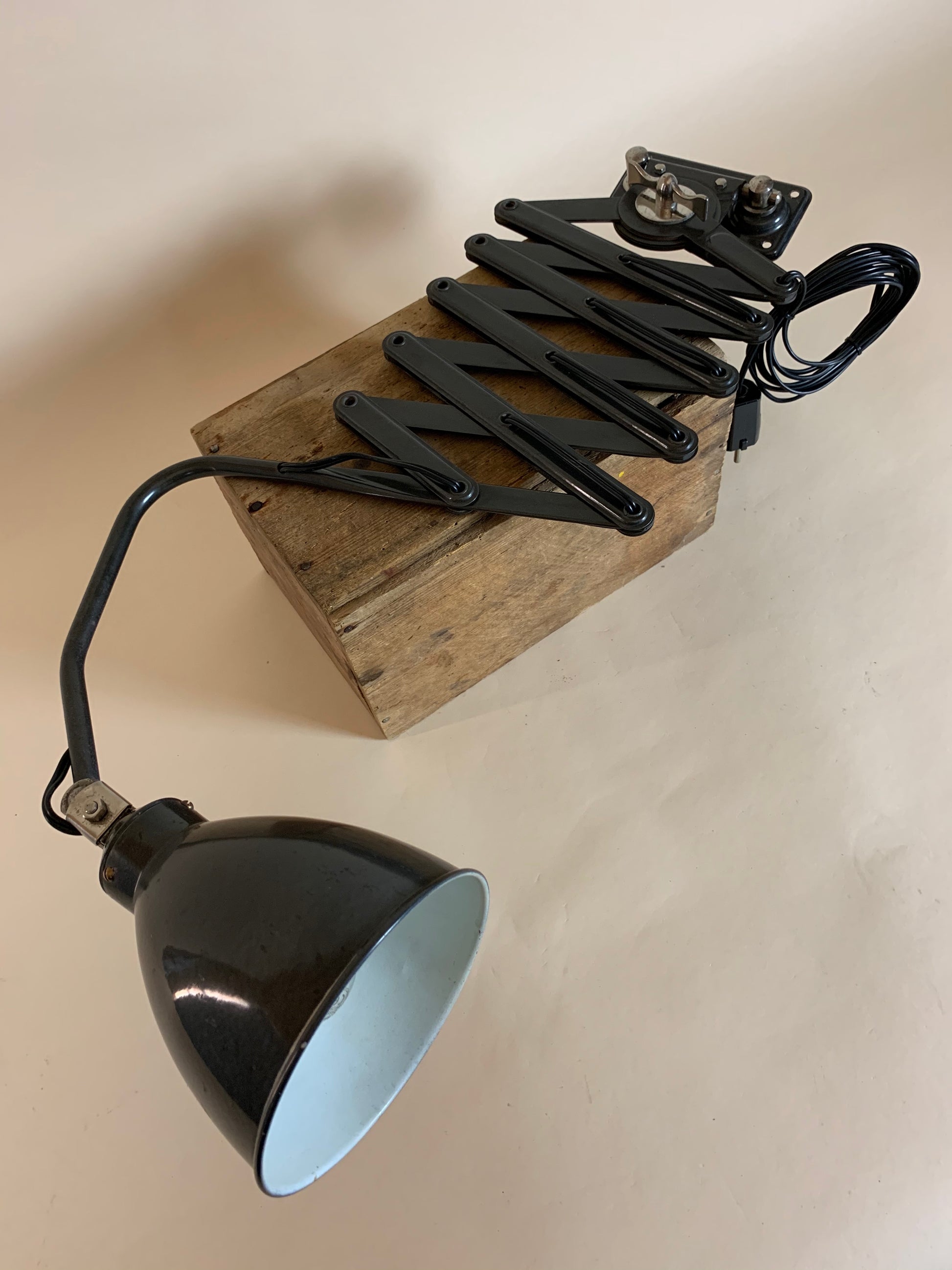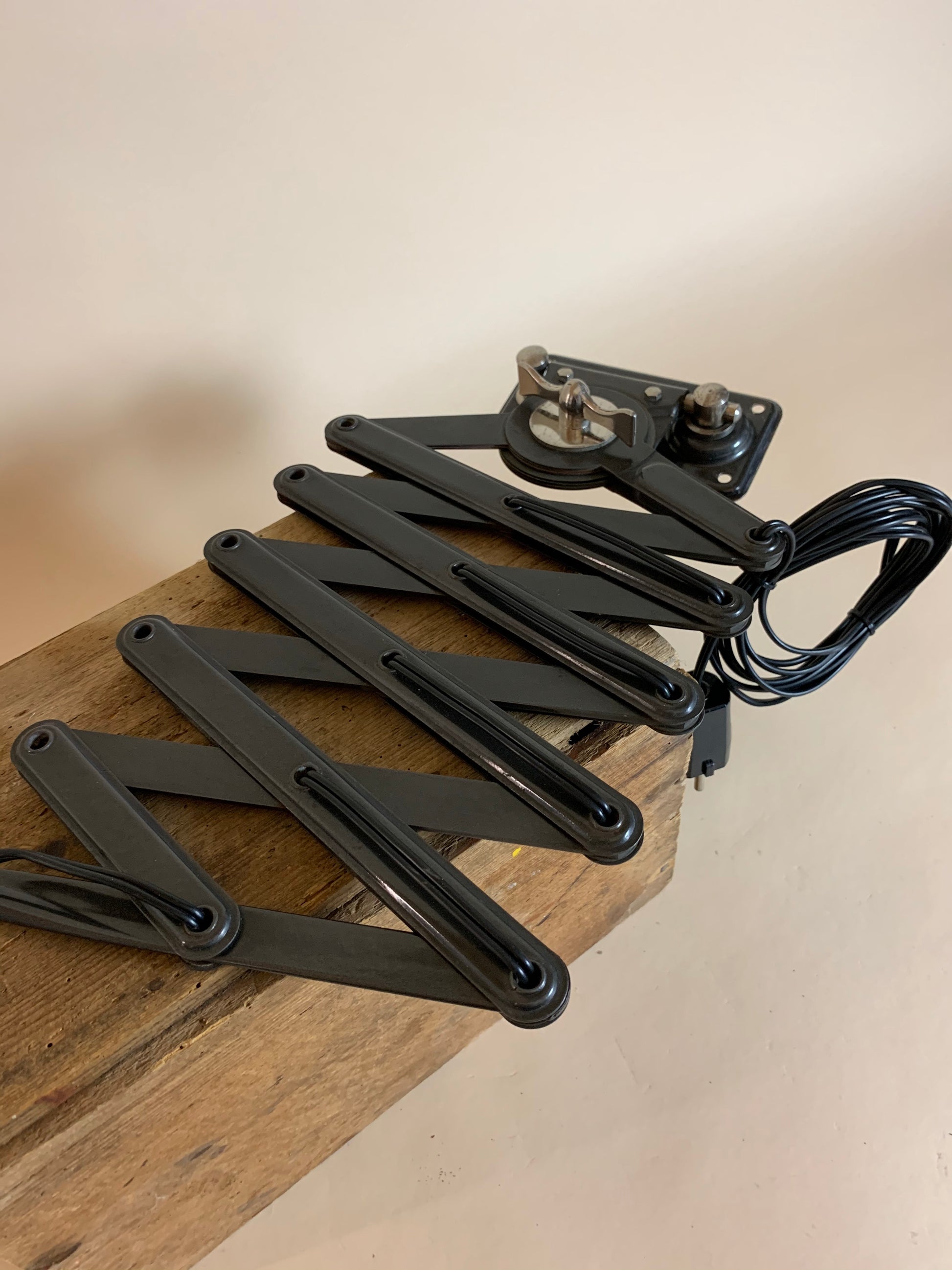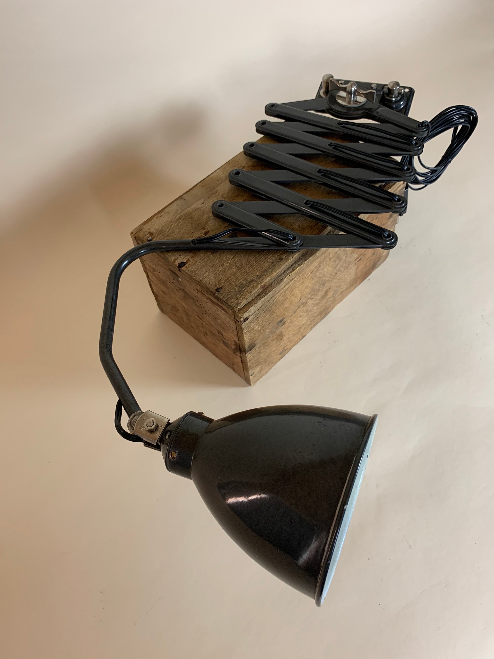 Schöne alte industrielle Scherenlampe von AGI in Belgien. Vermutlich aus den 1920er-1930er Jahren.