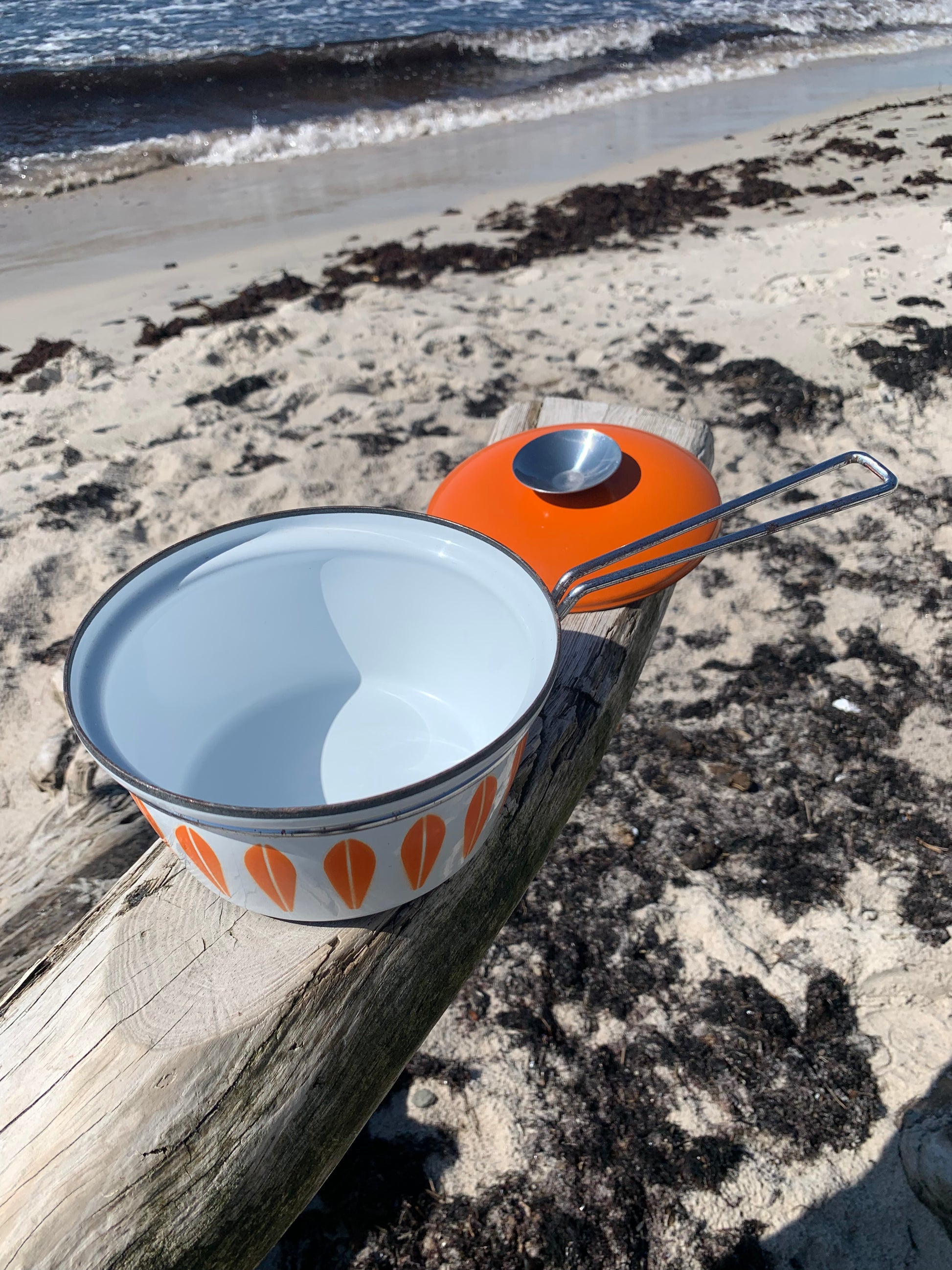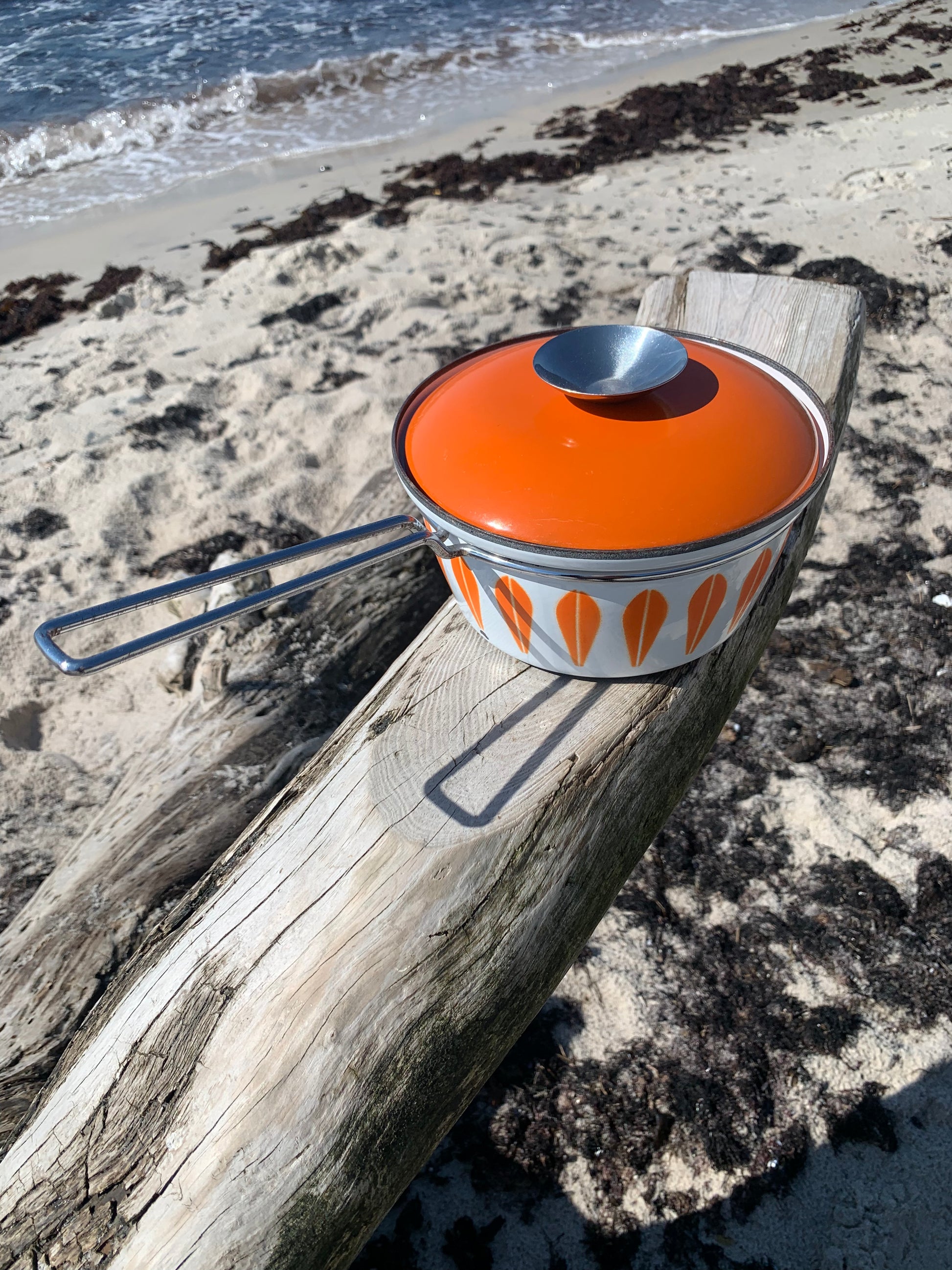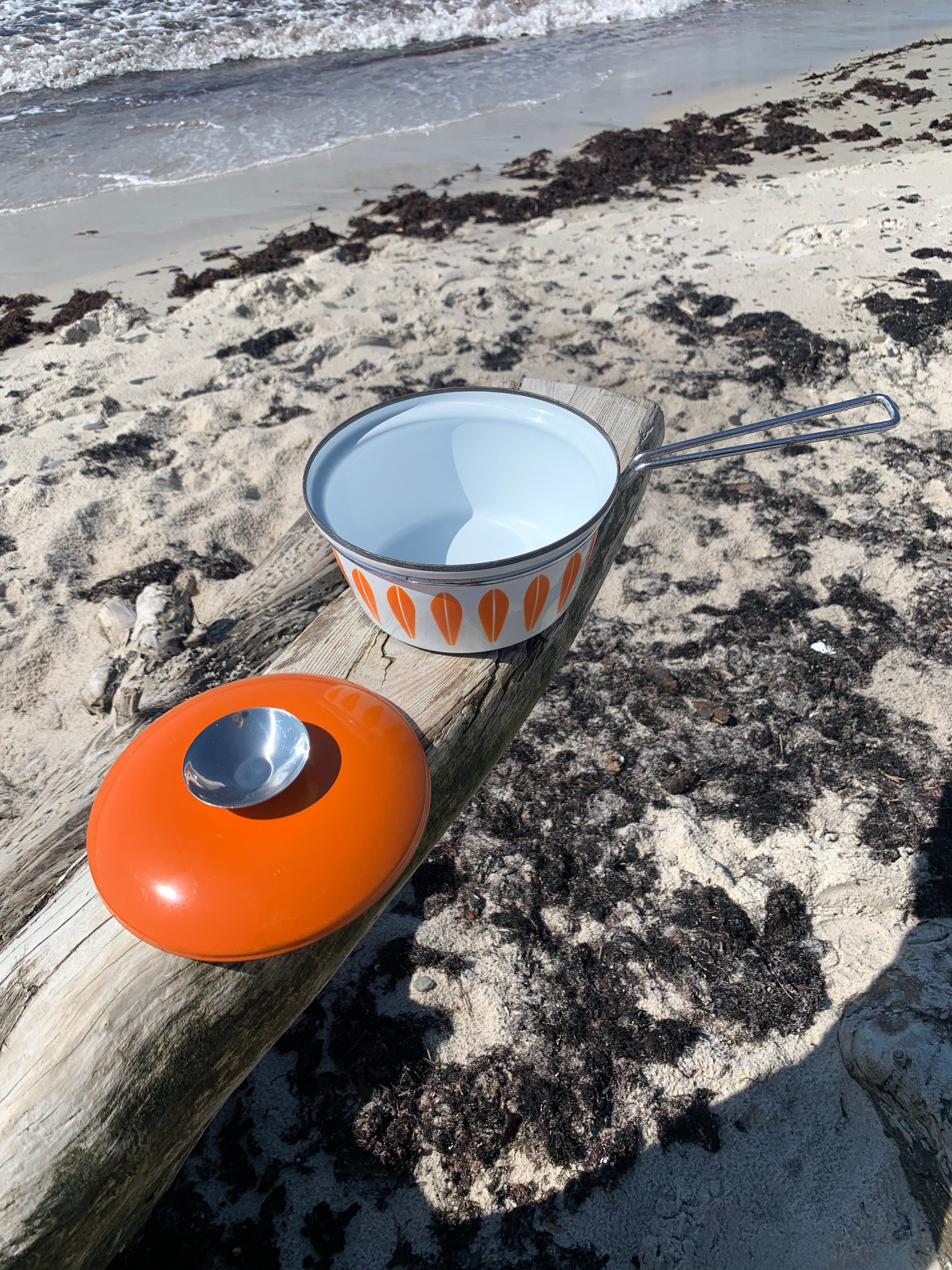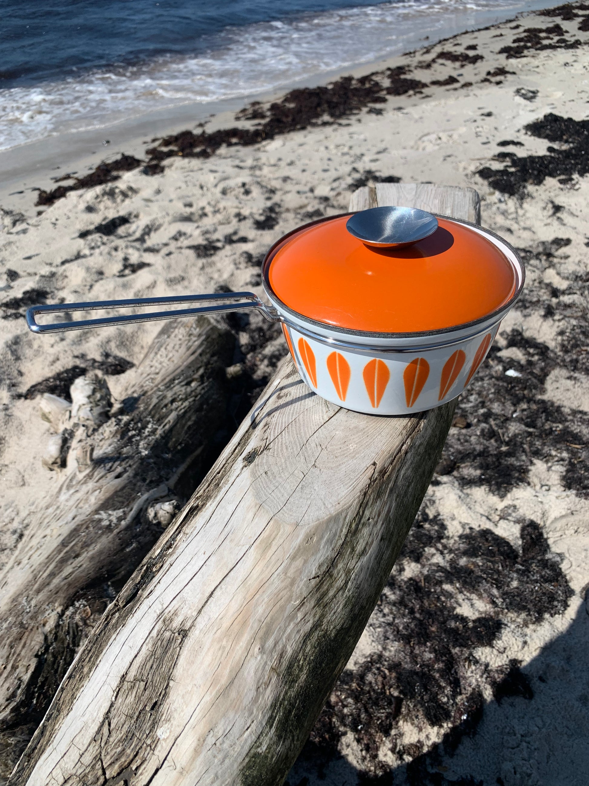 Feine Kopie des klassischen Cathrineholm Lotus-Auflaufs. Der Kochtopf hat einige altersbedingte Gebrauchsspuren.