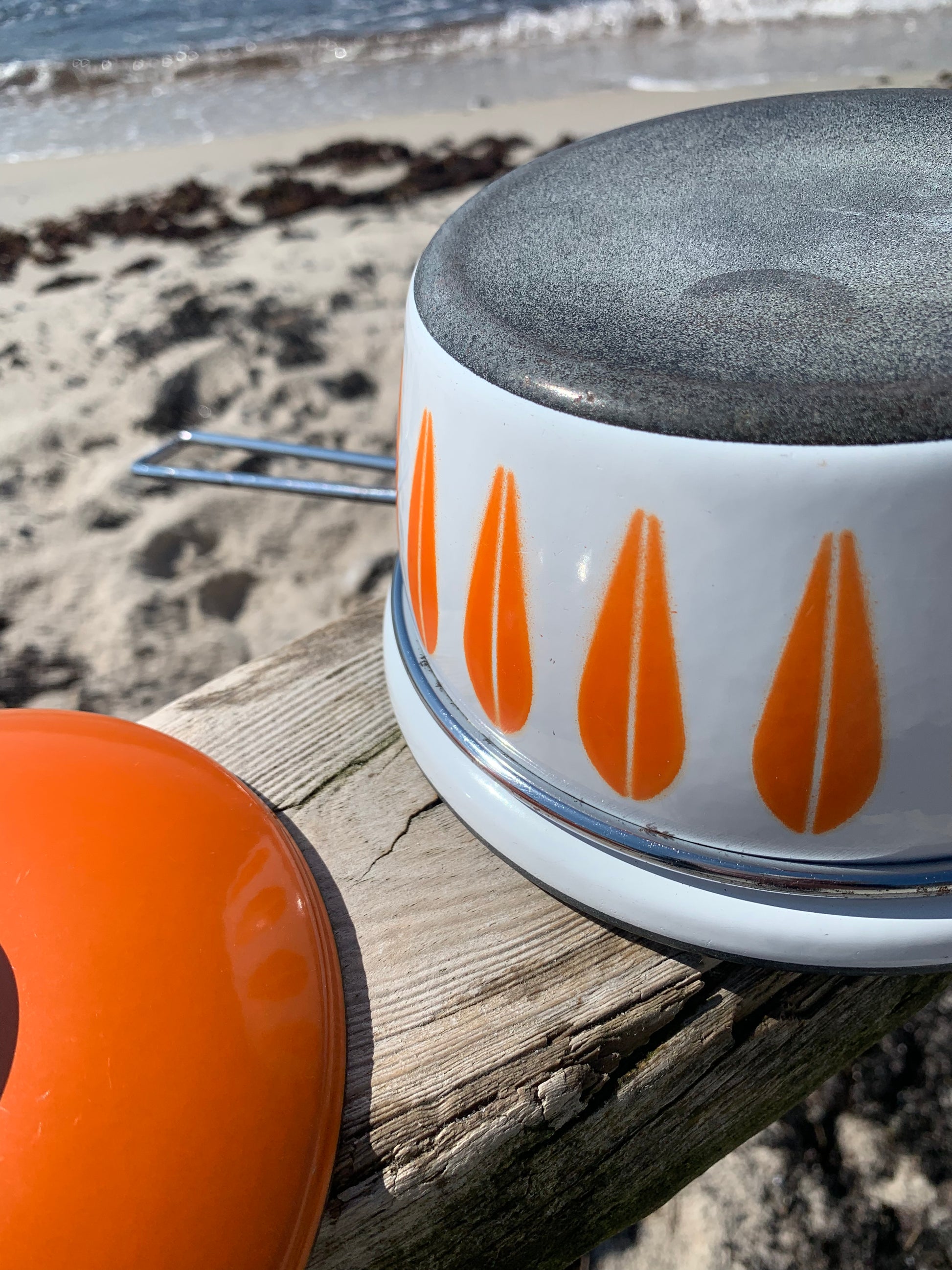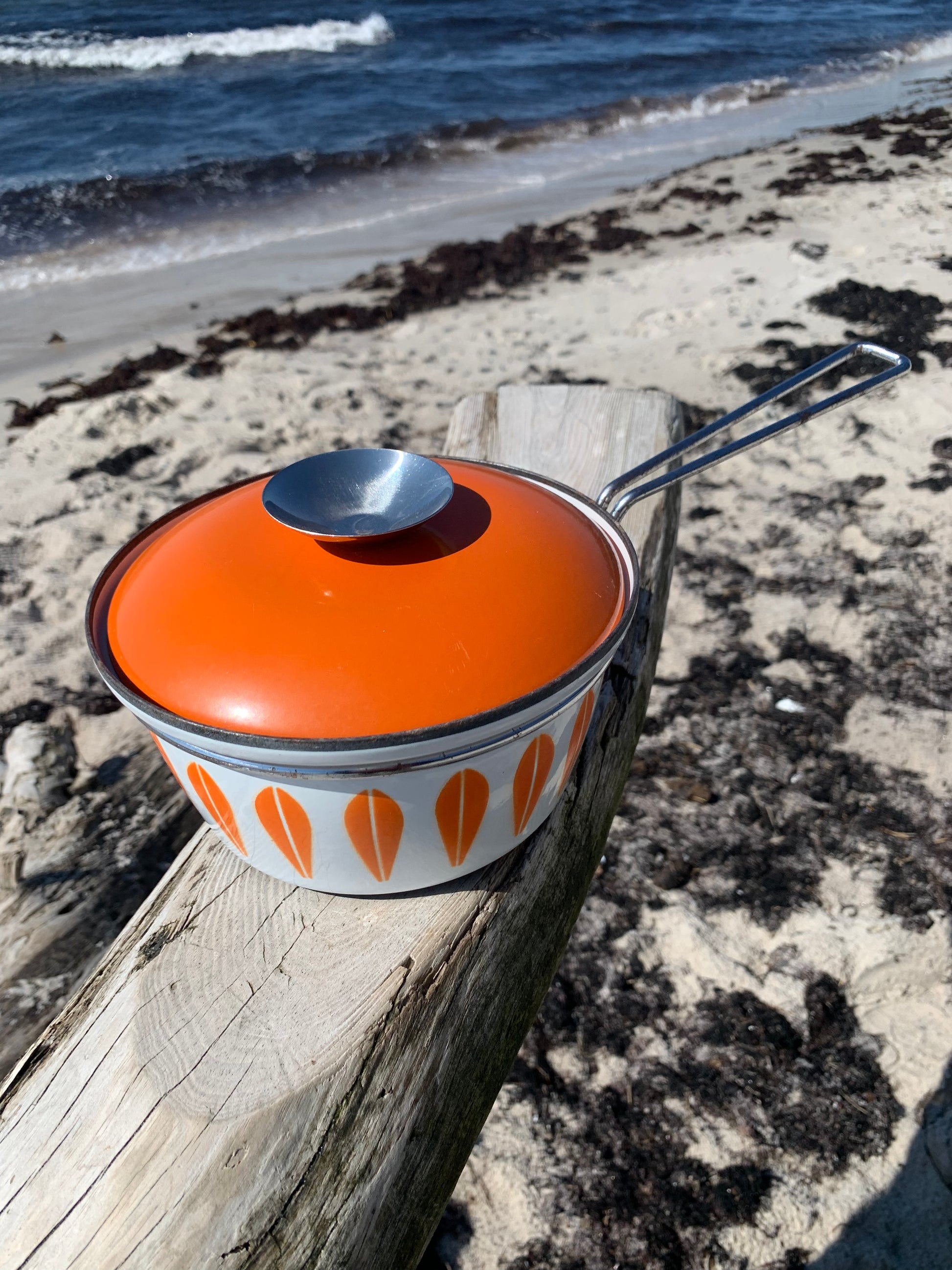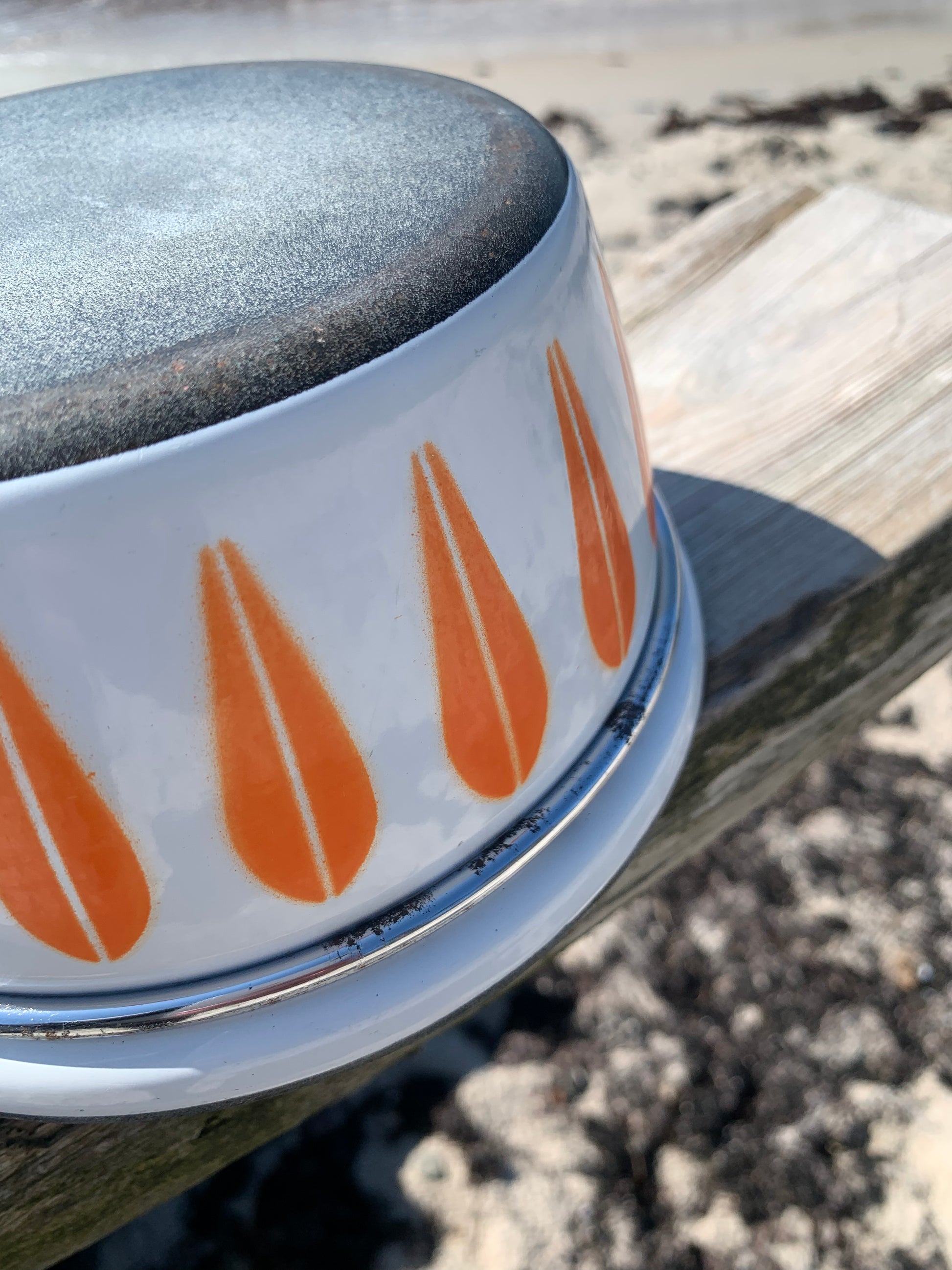 Feine Kopie des klassischen Cathrineholm Lotus-Auflaufs. Der Kochtopf hat einige altersbedingte Gebrauchsspuren.