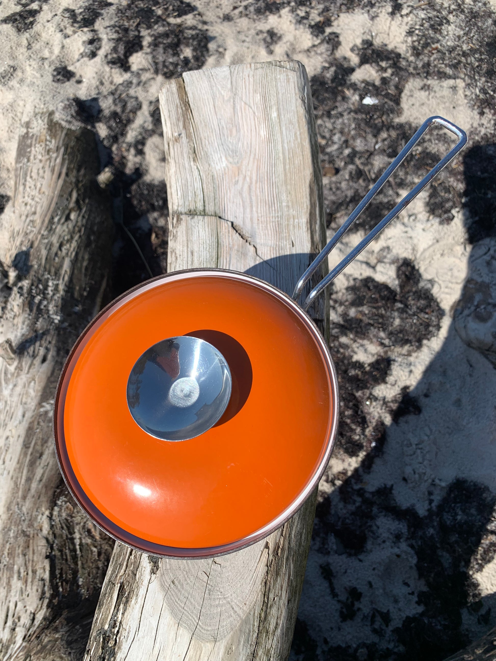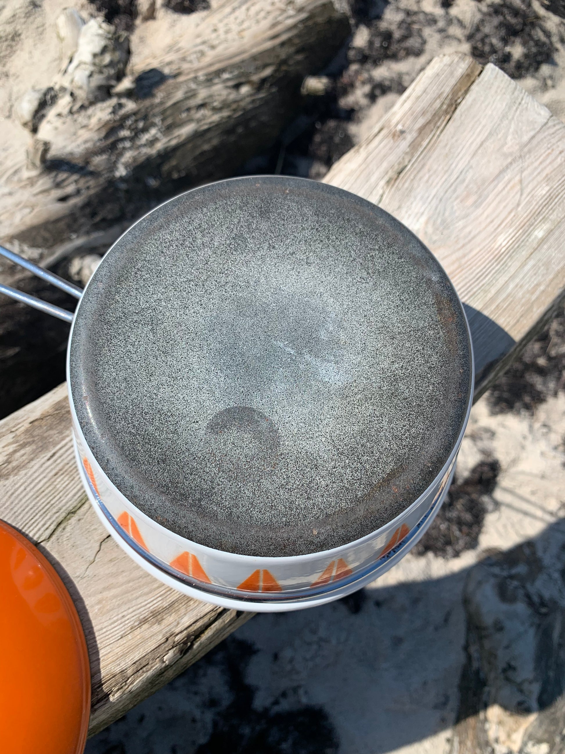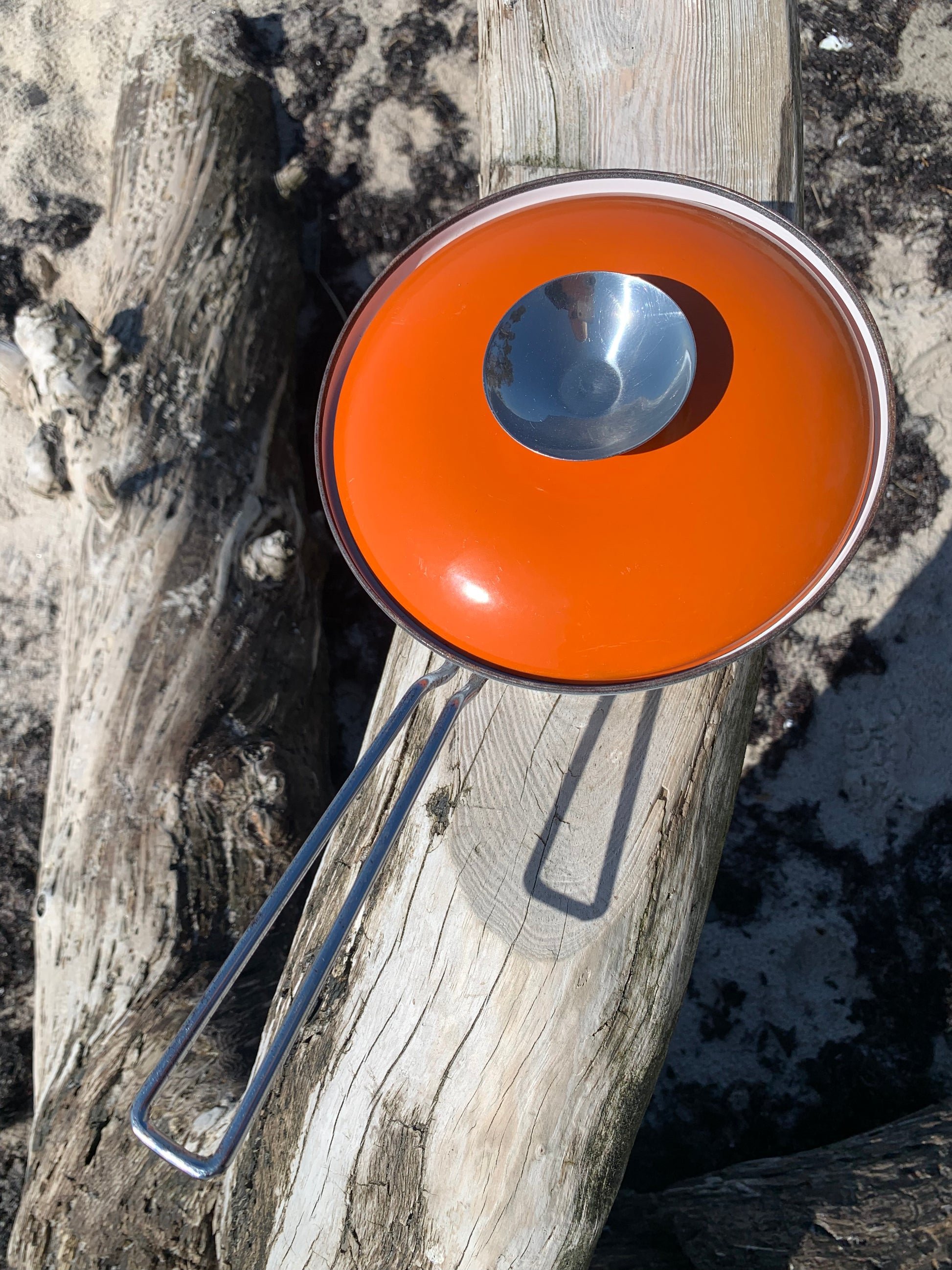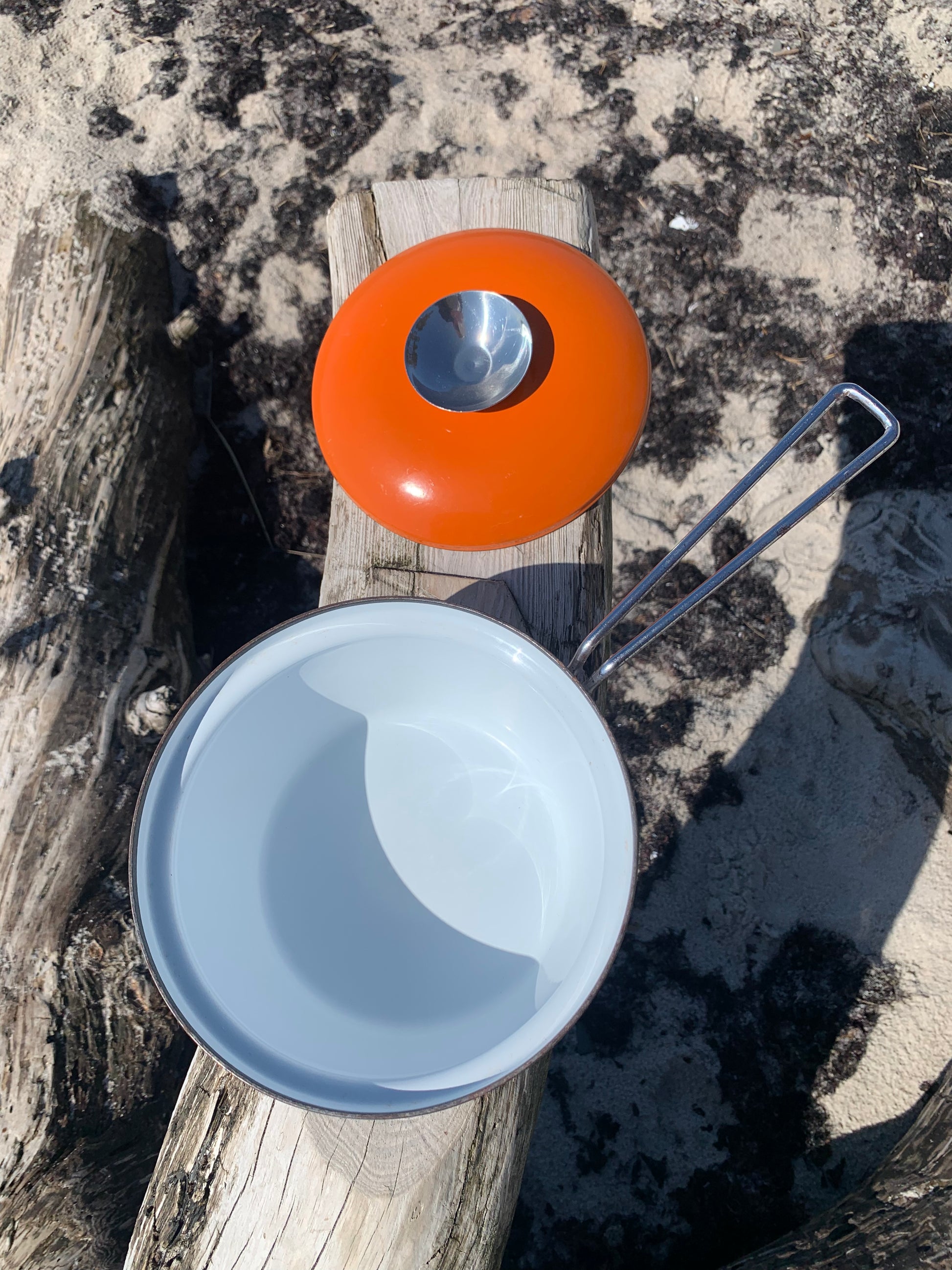 Feine Kopie des klassischen Cathrineholm Lotus-Auflaufs. Der Kochtopf hat einige altersbedingte Gebrauchsspuren.