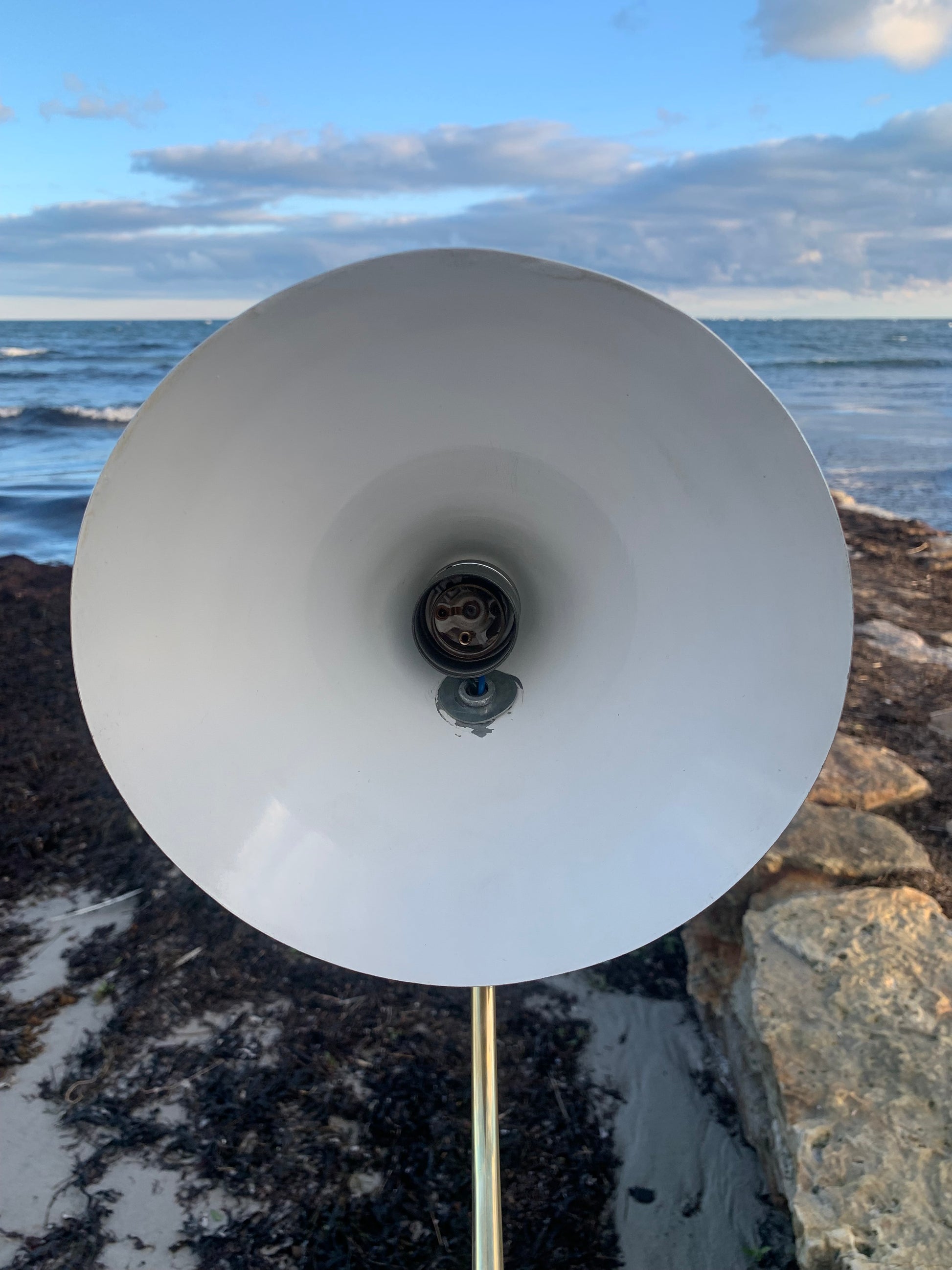 Maße: H. ca. 32 cm. Schirm 21 cm Durchmesser.