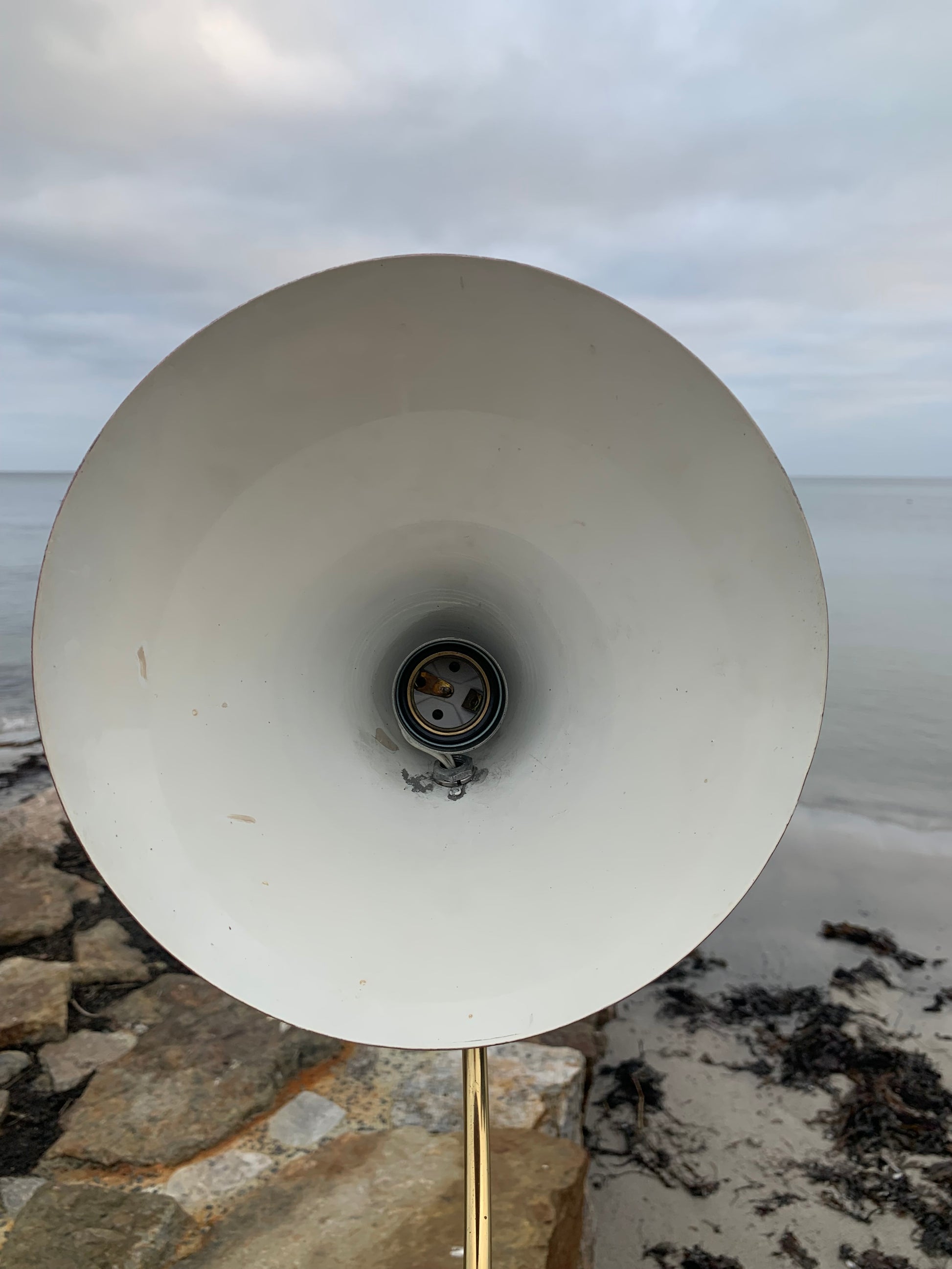 Maße: H. ca. 32 cm. Schirm 21 cm Durchmesser.