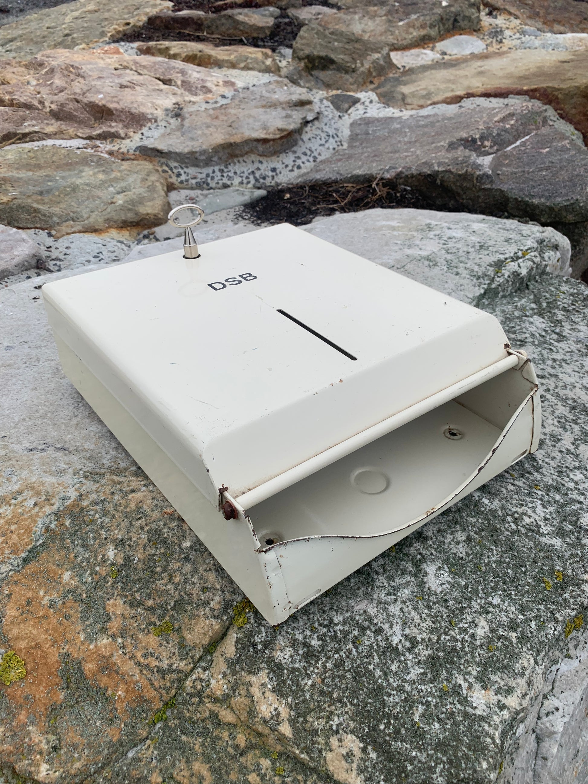 Dieser schöne Papierhalter von DSB erscheint mit den originalen Gebrauchsspuren. Erfreulicherweise ist das schöne DSB-Logo gut erhalten. Ein Schlüssel zum Öffnen liegt bei.