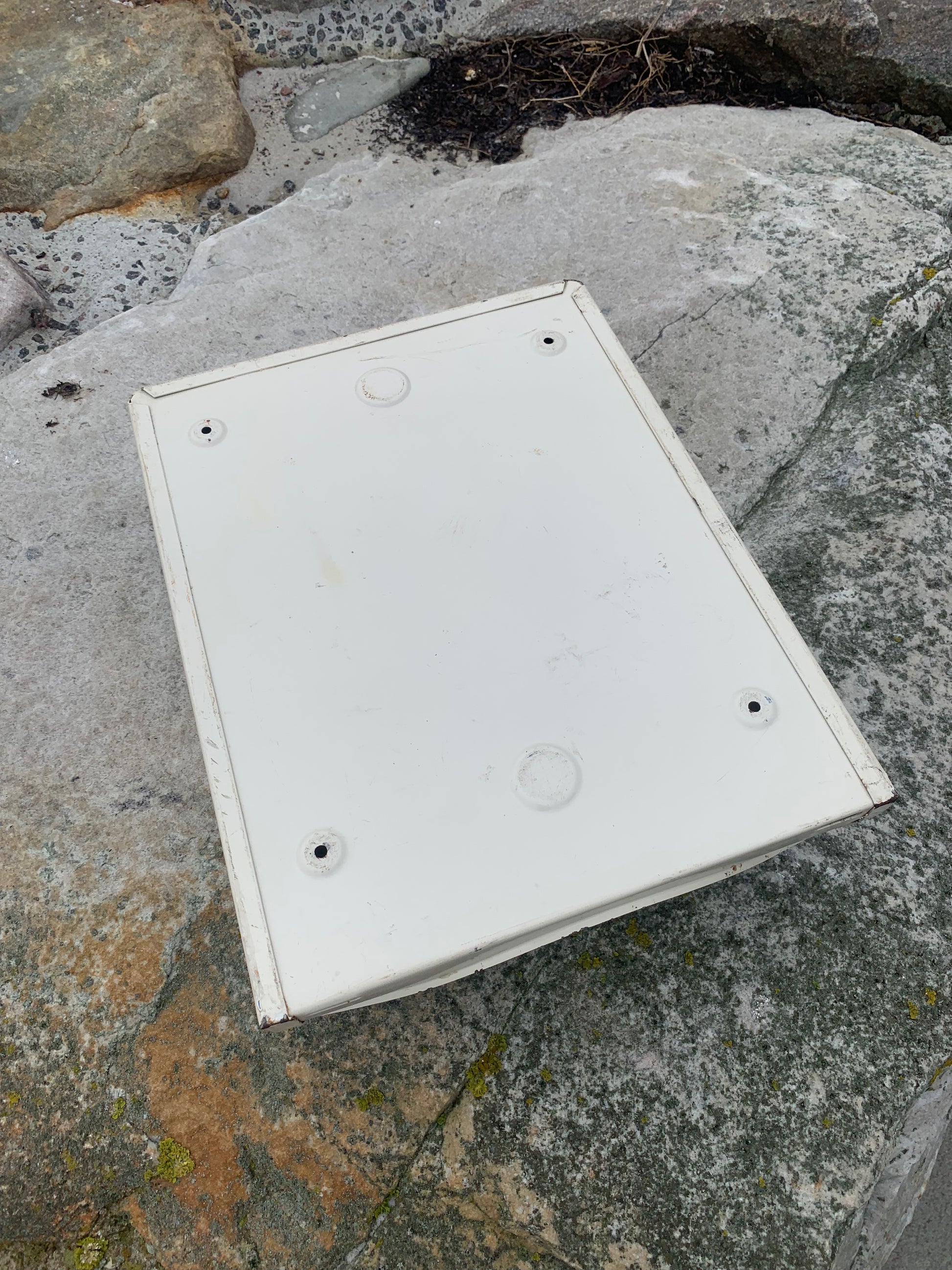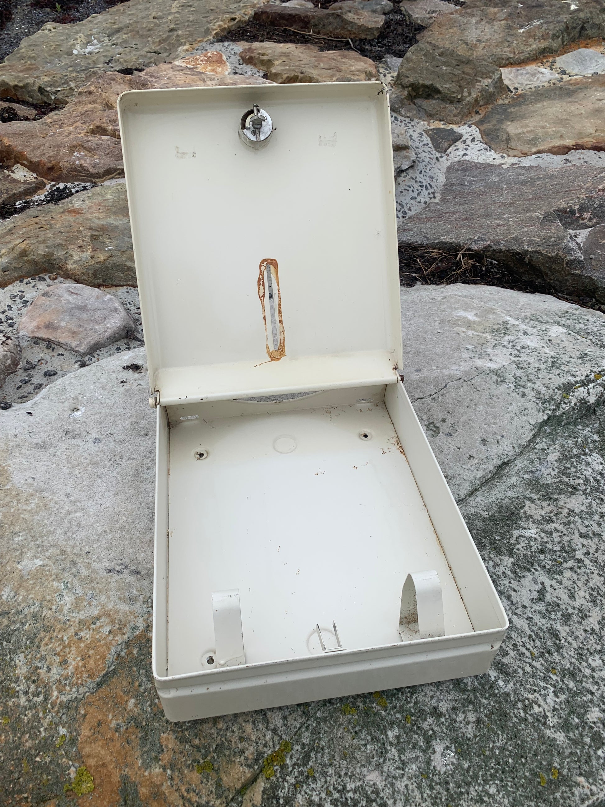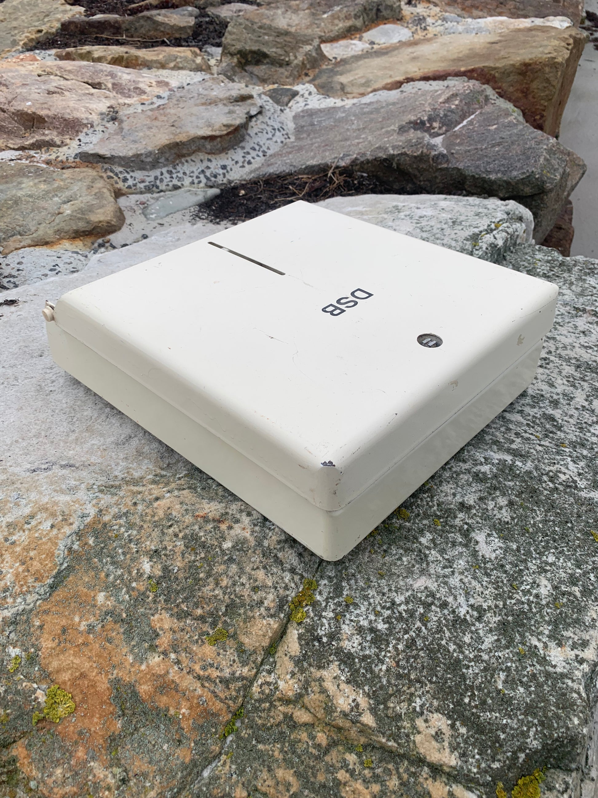 Geschichte: DSB-Papierhandtuchhalter. Stammt aus einem alten DSB-Zug und ist nur eines der absolut fantastischen Industriedesigns, die bei DSB verwendet wurden. Viele dieser Effekte sind heute zu ikonischen Sammlerstücken geworden und fast ein Stück dänischer Kulturgeschichte.