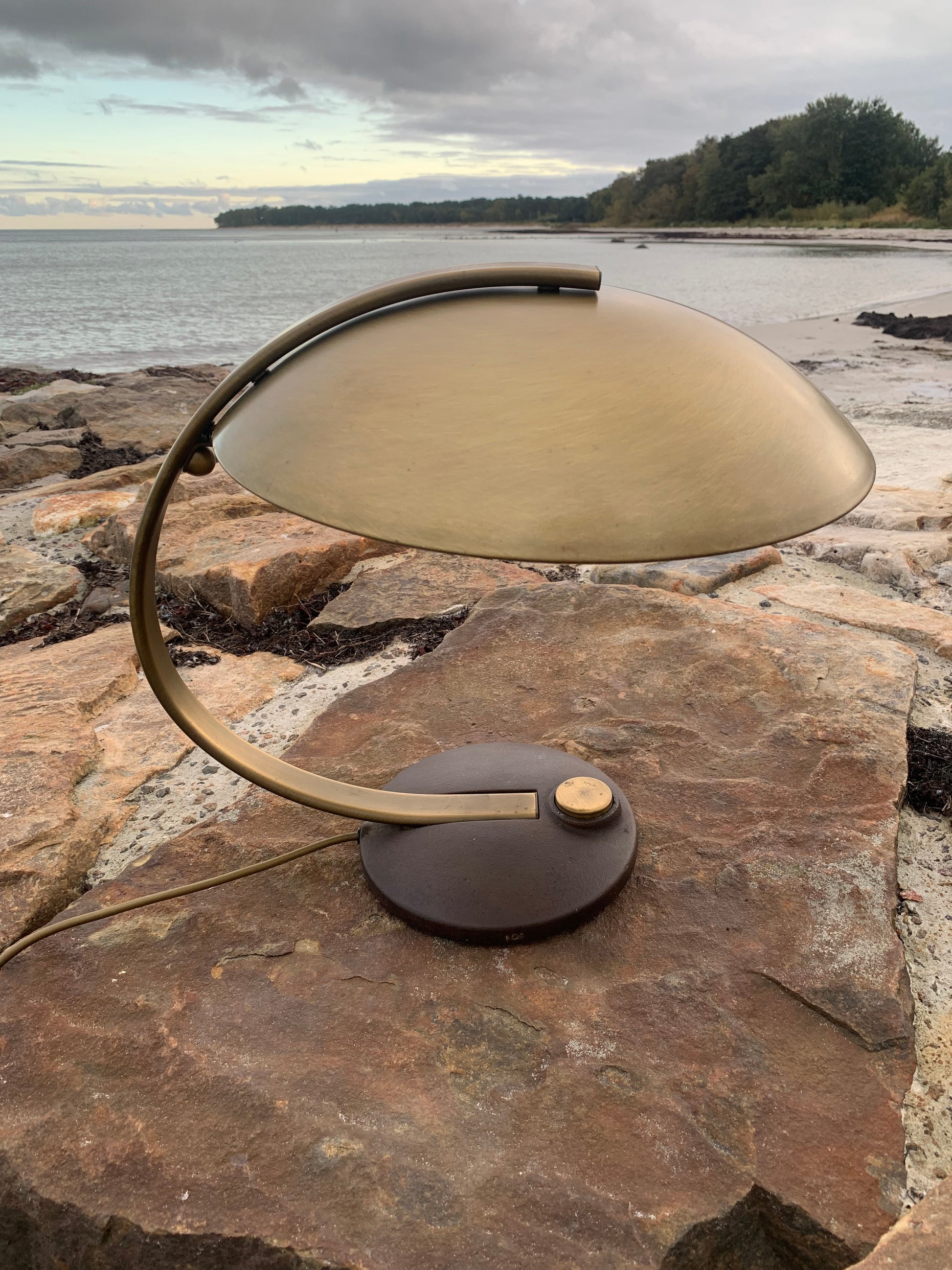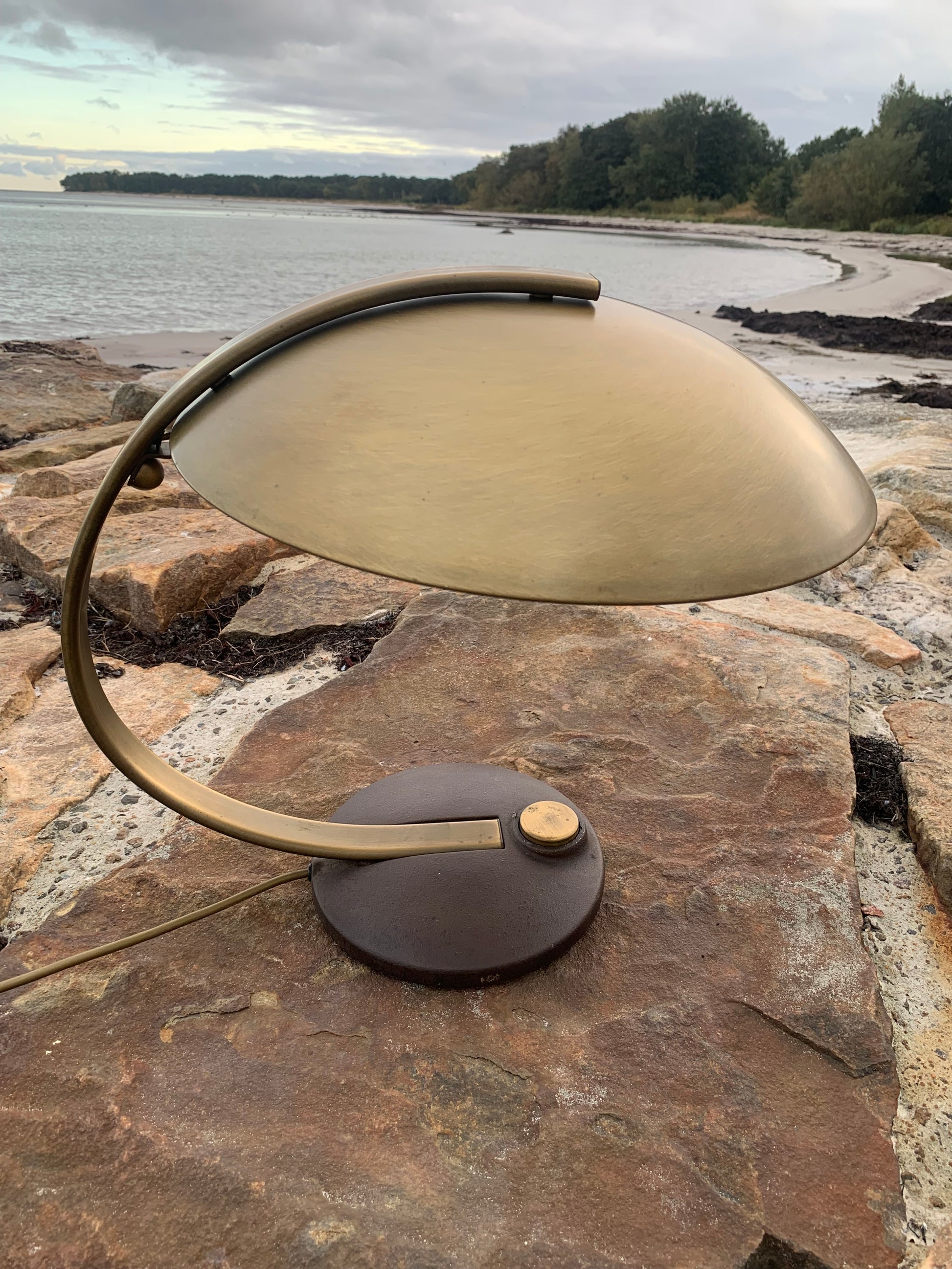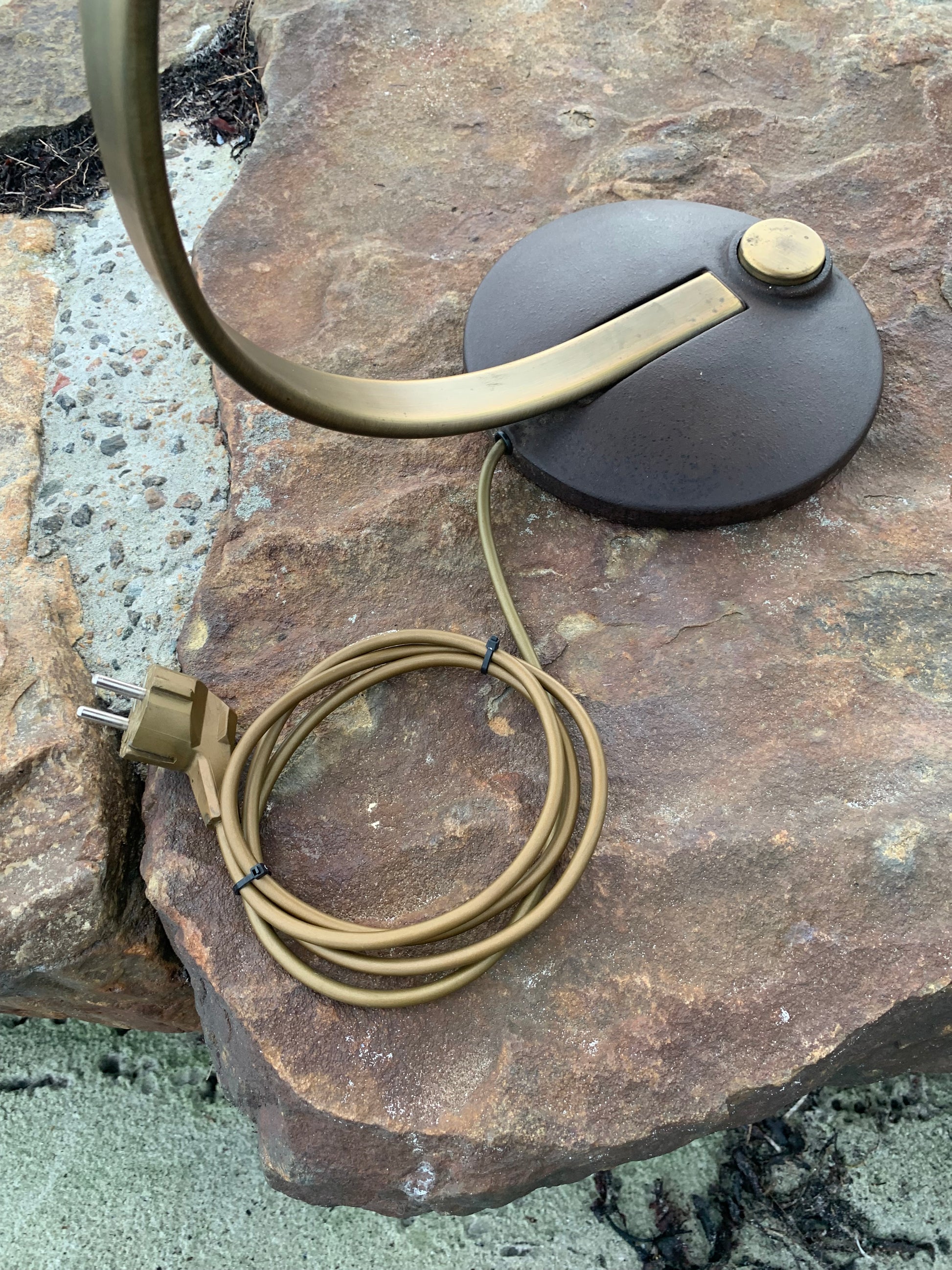 Egon Hillebrand Lampe in gutem Design mit mehreren schönen Details wie dem großen Druckschalter. Die Lampe weist einige altersbedingte Gebrauchsspuren auf, wie sie eine solche Lampe (unserer Meinung nach) haben sollte. Insgesamt ist sie jedoch in einem sehr schönen Vintage-Zustand.