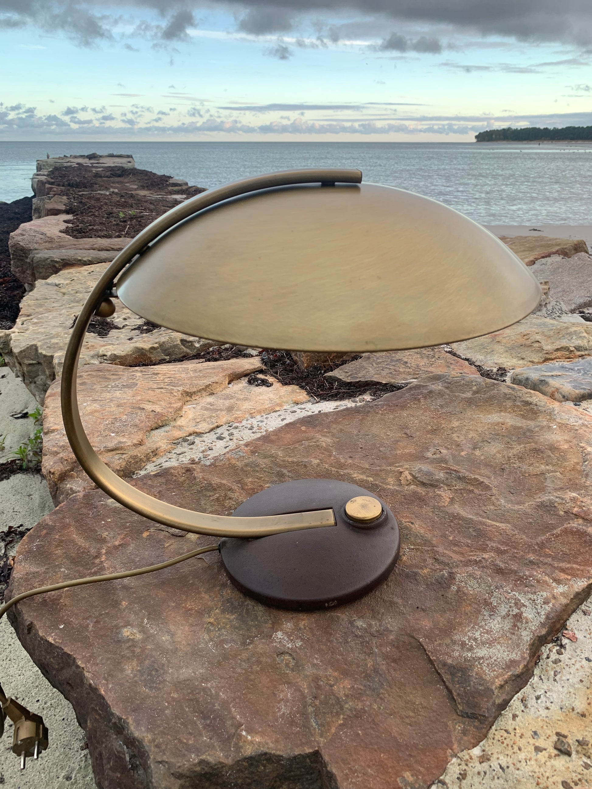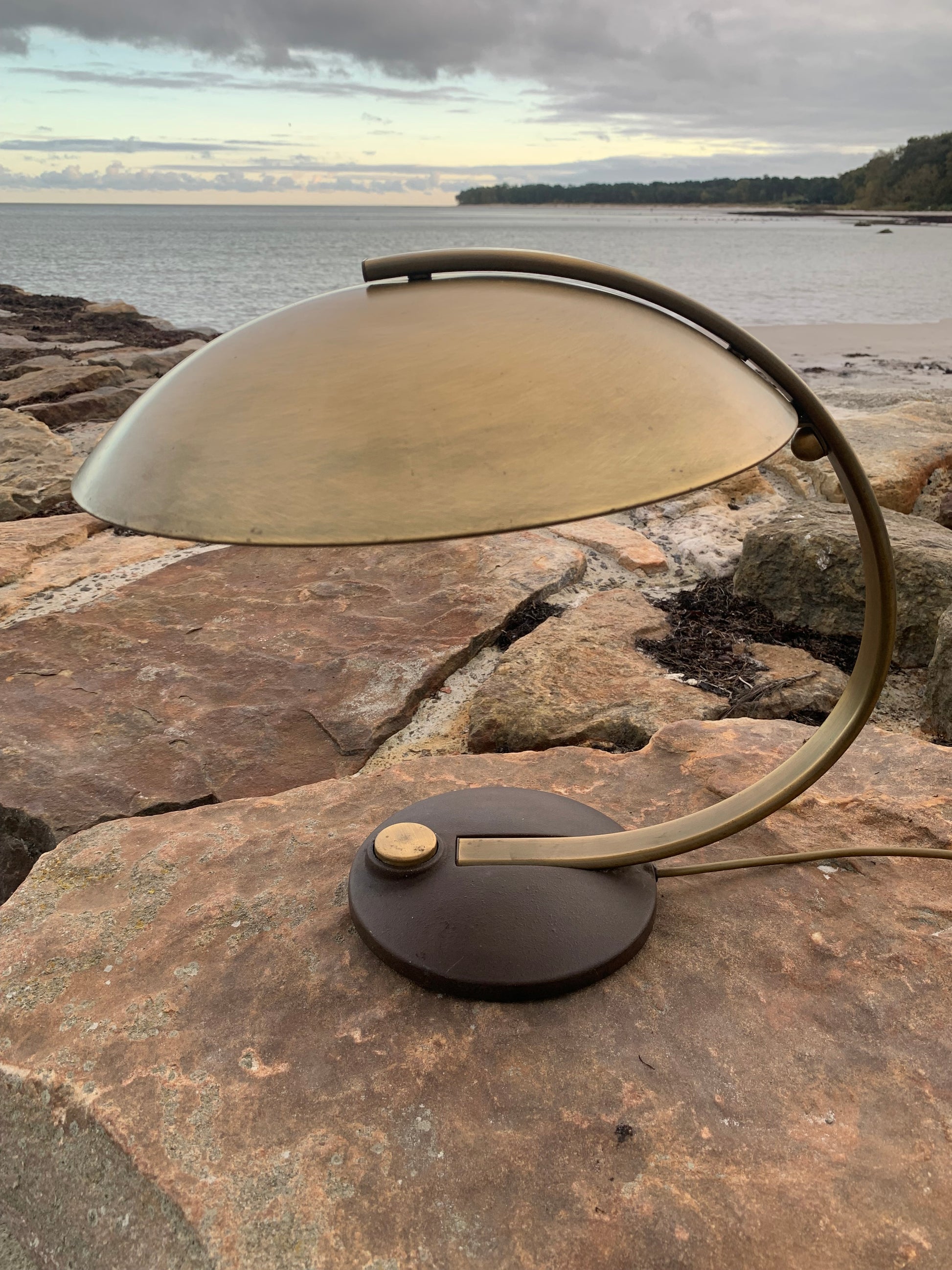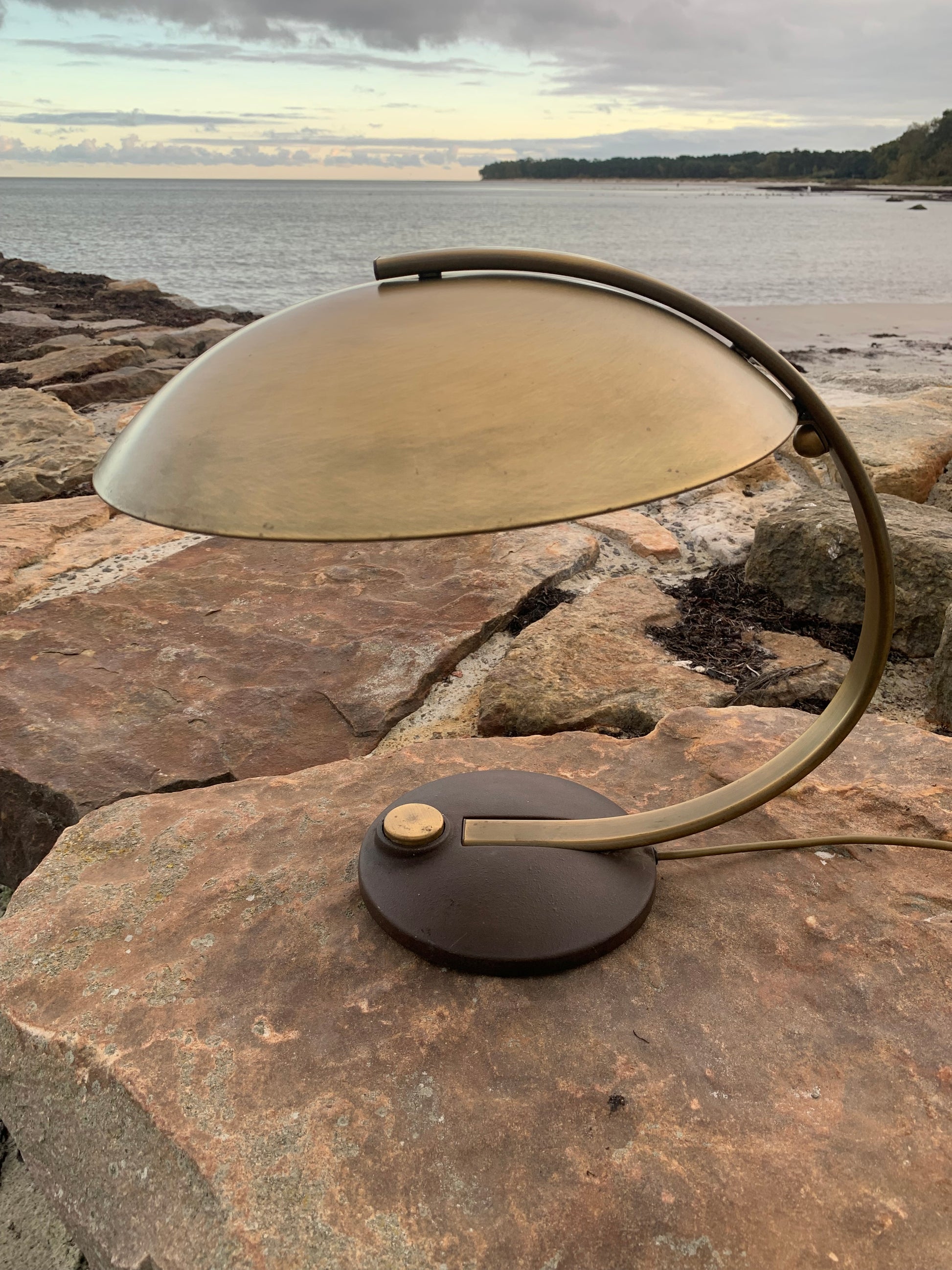 Egon Hillebrand Lampe in gutem Design mit mehreren schönen Details wie dem großen Druckschalter. Die Lampe weist einige altersbedingte Gebrauchsspuren auf, wie sie eine solche Lampe (unserer Meinung nach) haben sollte. Insgesamt ist sie jedoch in einem sehr schönen Vintage-Zustand.