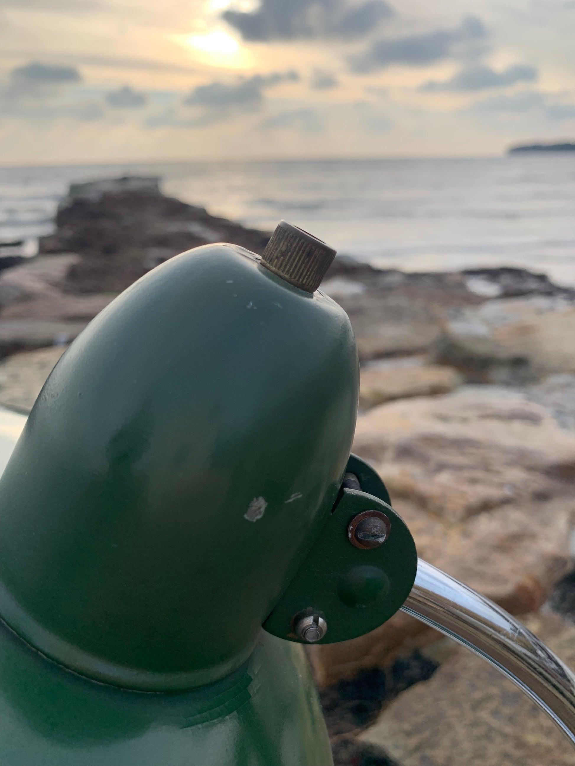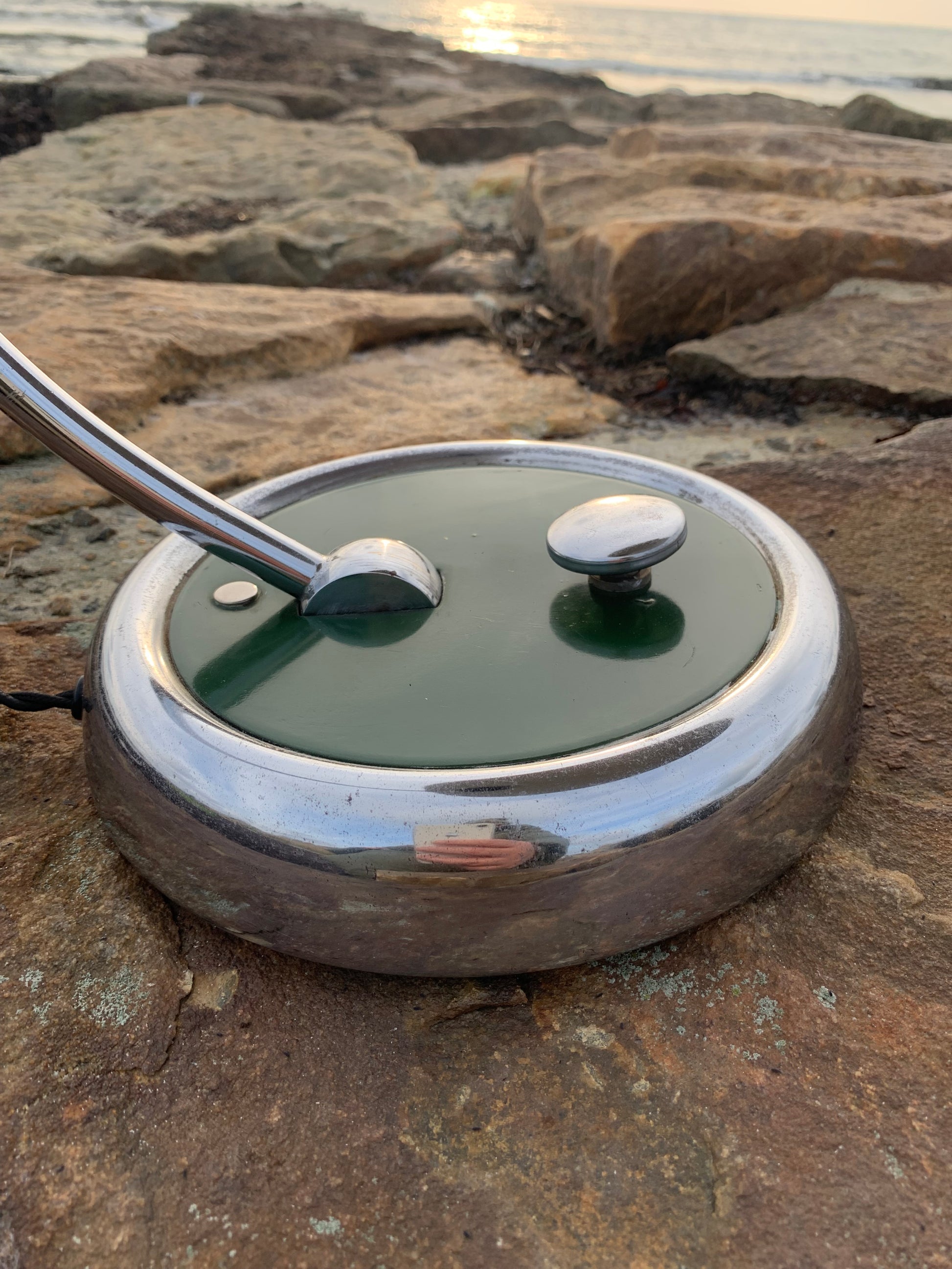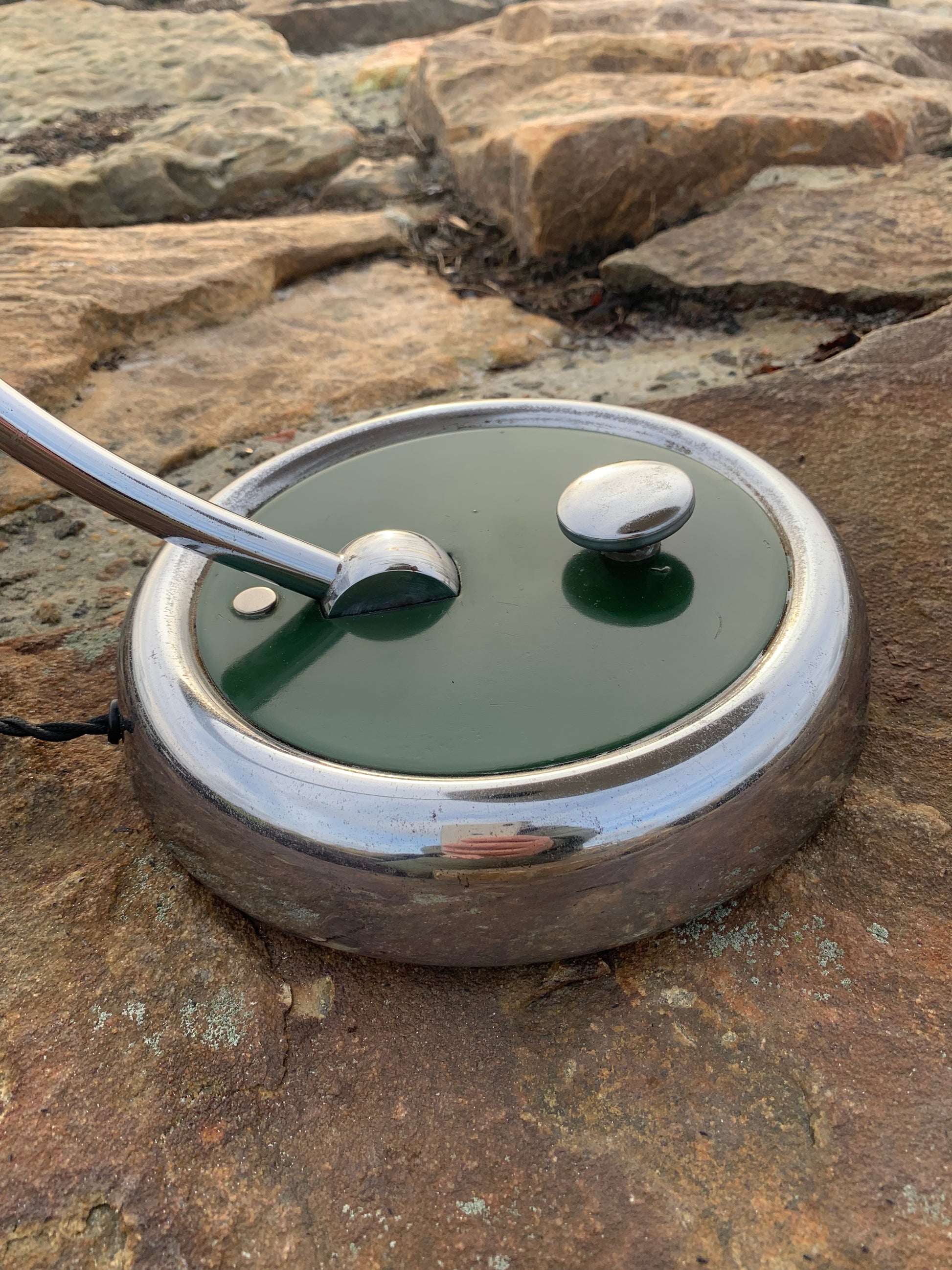 Es weist einige Kratzer im Lack auf (siehe Foto) und richtet sich an diejenigen, die das Perfekte im Unvollkommenen sehen und die Originalität und schöne Details wie den großen Druckknopfschalter lieben.