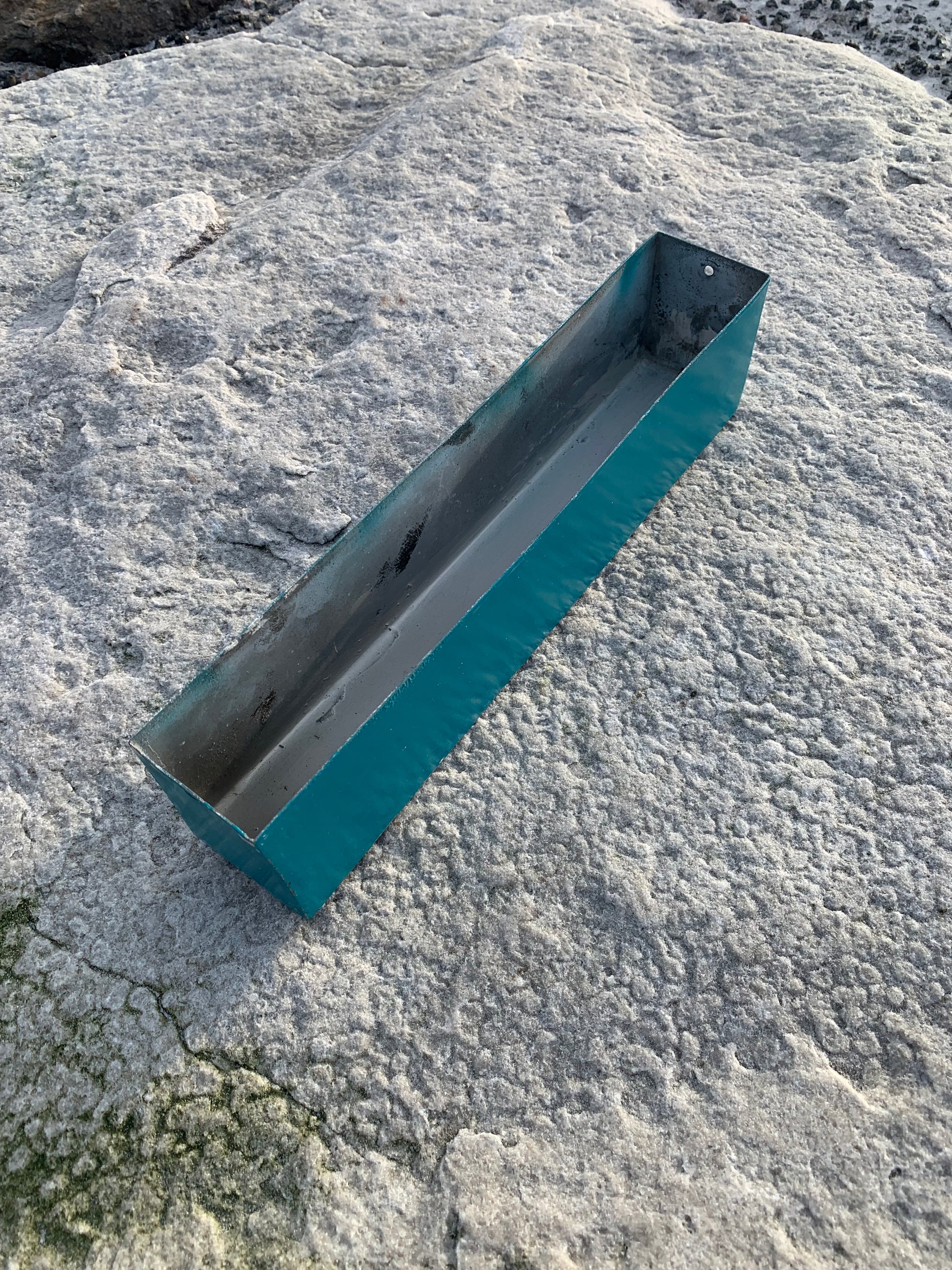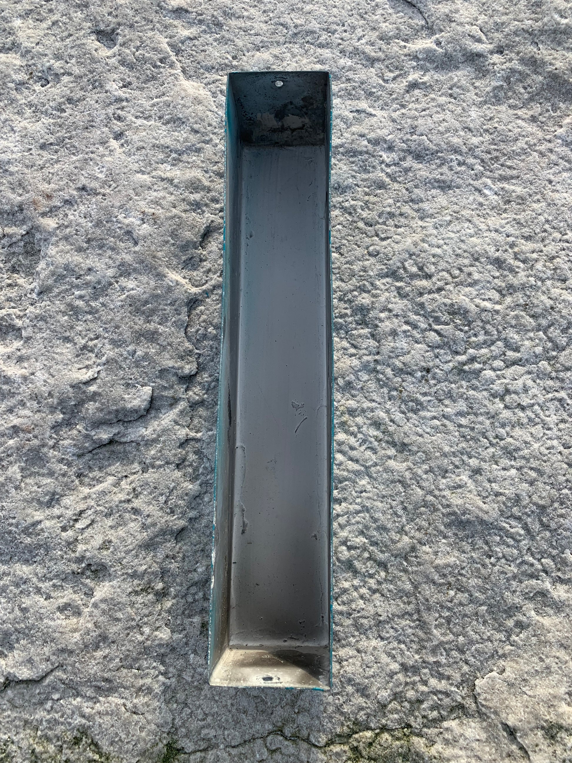 Dekorativer Fassadenbuchstabe aus Metall. Der Buchstabe wurde kürzlich in der Werkstatt von alter Farbe befreit und poliert. Er besitzt noch immer eine charmante Patina.