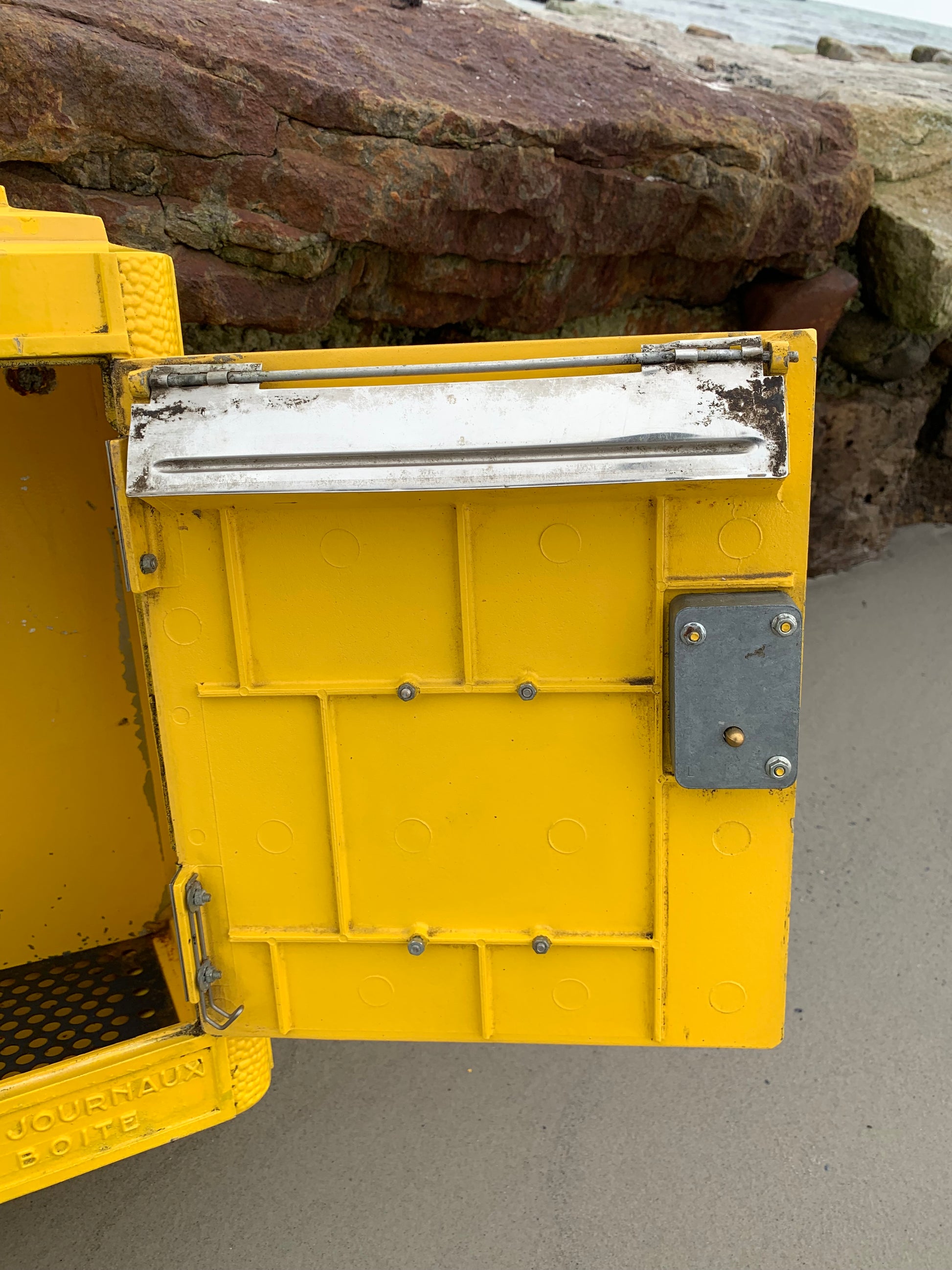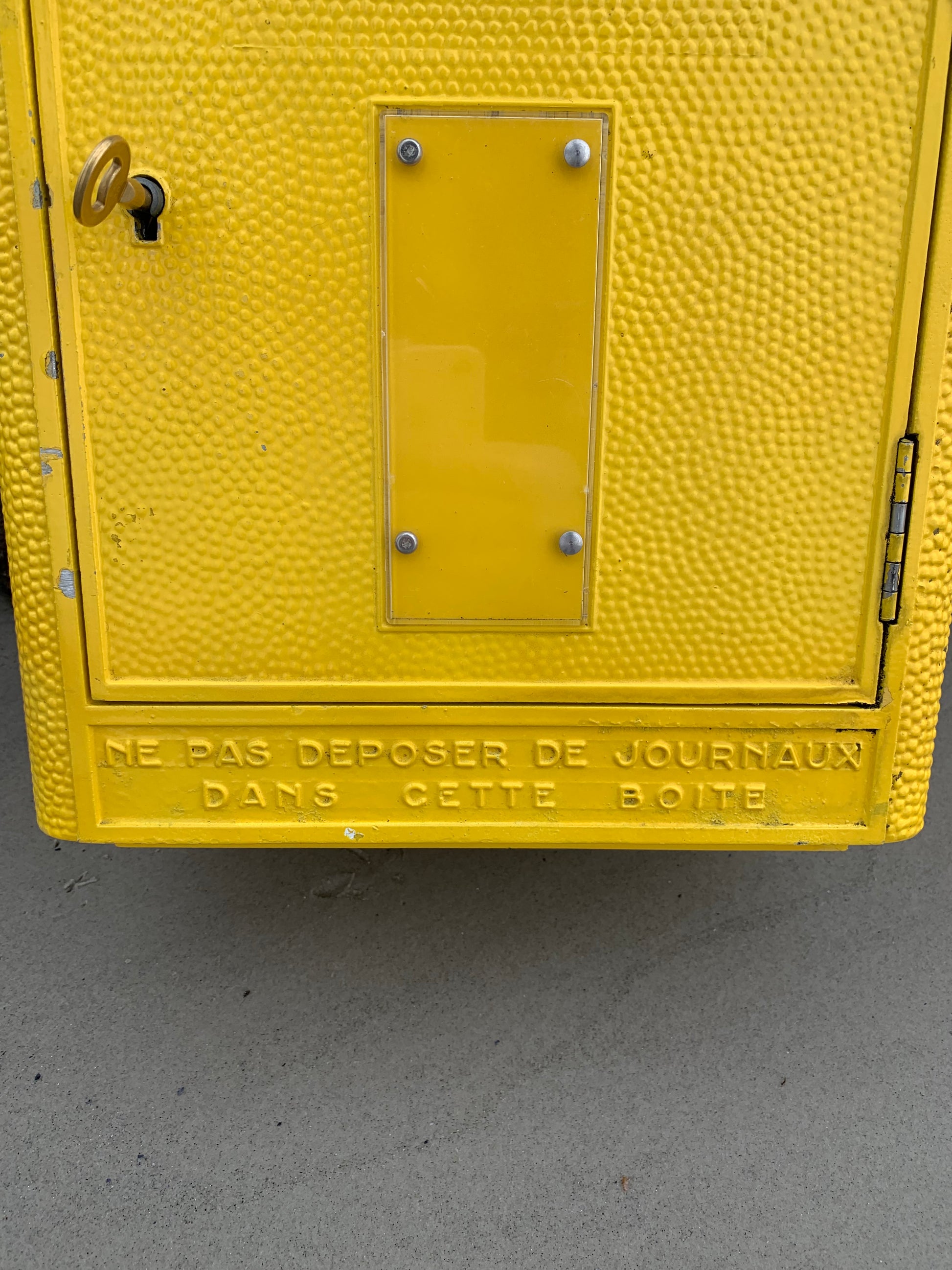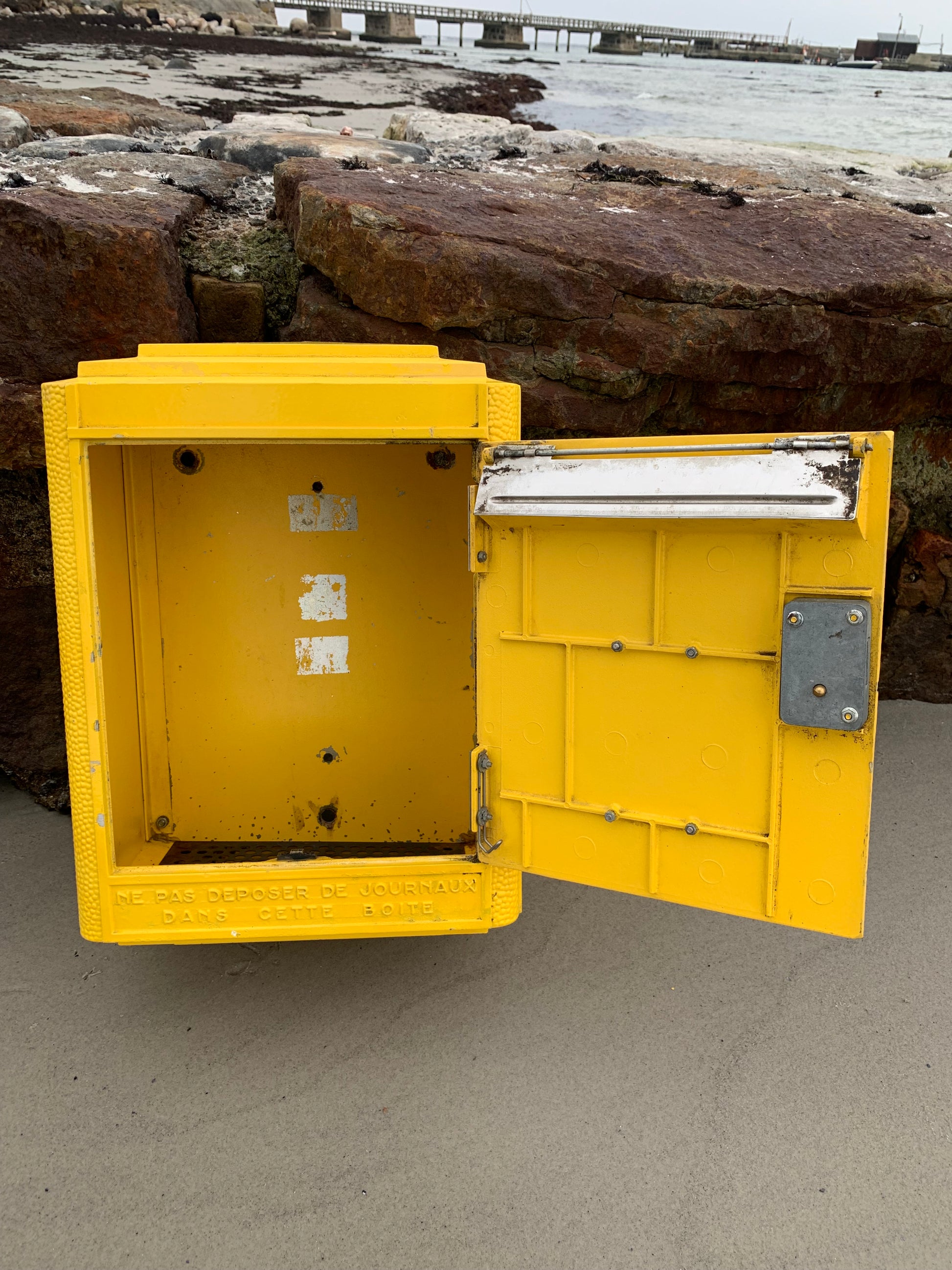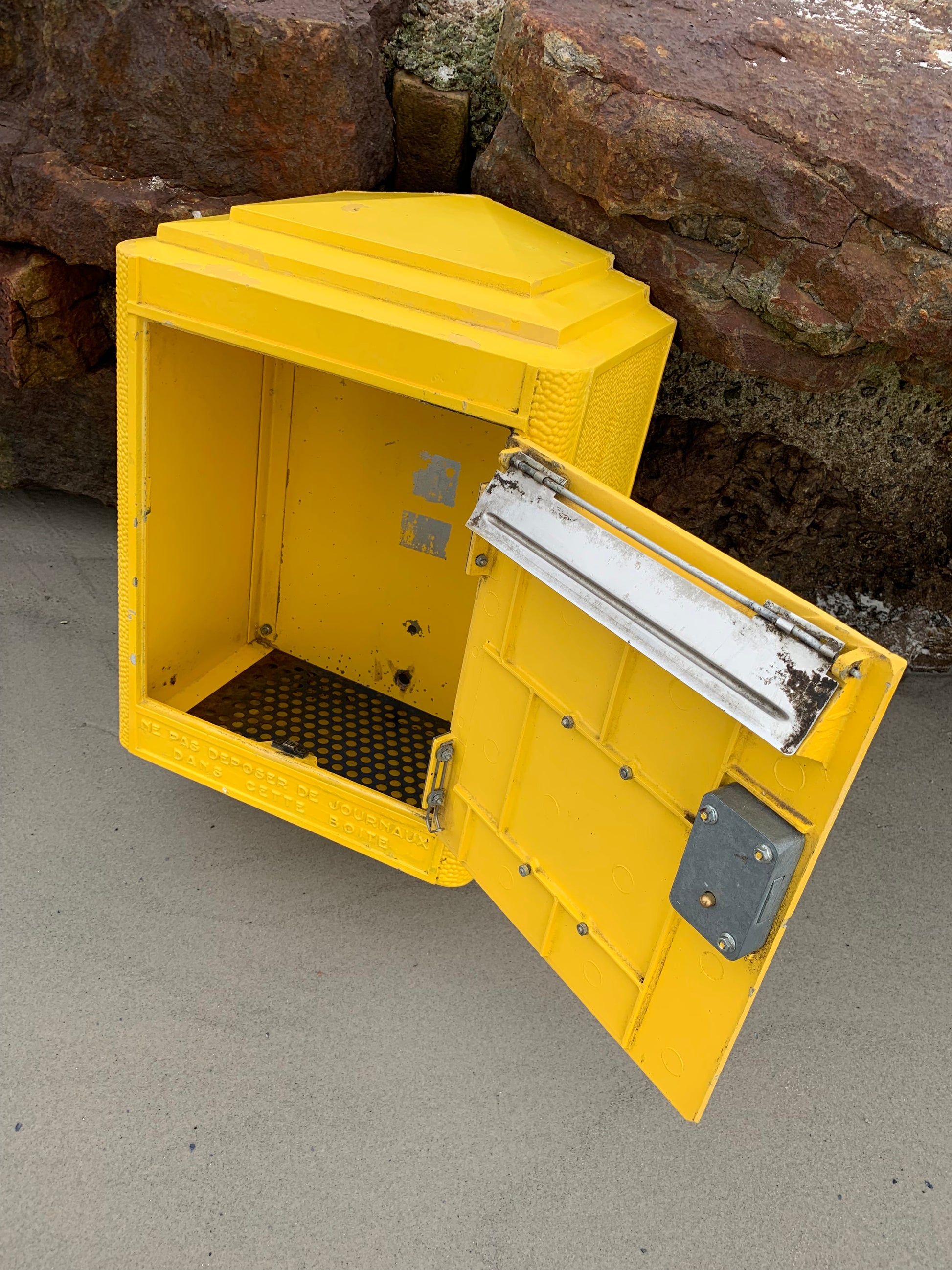 Wunderschöner alter französischer Briefkasten, gefunden in Frankreich. Der Briefkasten ist authentisch und charmant mit seiner schönen Patina. Er wurde seit 1950 in der Gießerei Dejoie in dieser offiziellen Form entworfen und in Nantes aus 100 % recycelbarem Aluminium gefertigt, wovon 30 % aus Recyclingmaterialien bestehen. Der Briefkasten verfügt über ein funktionierendes Schloss und den dazugehörigen Originalschlüssel.
