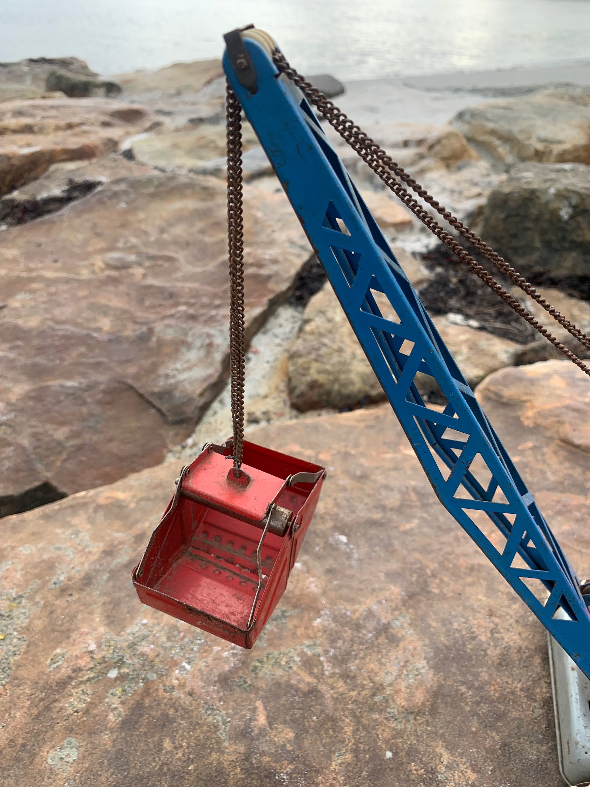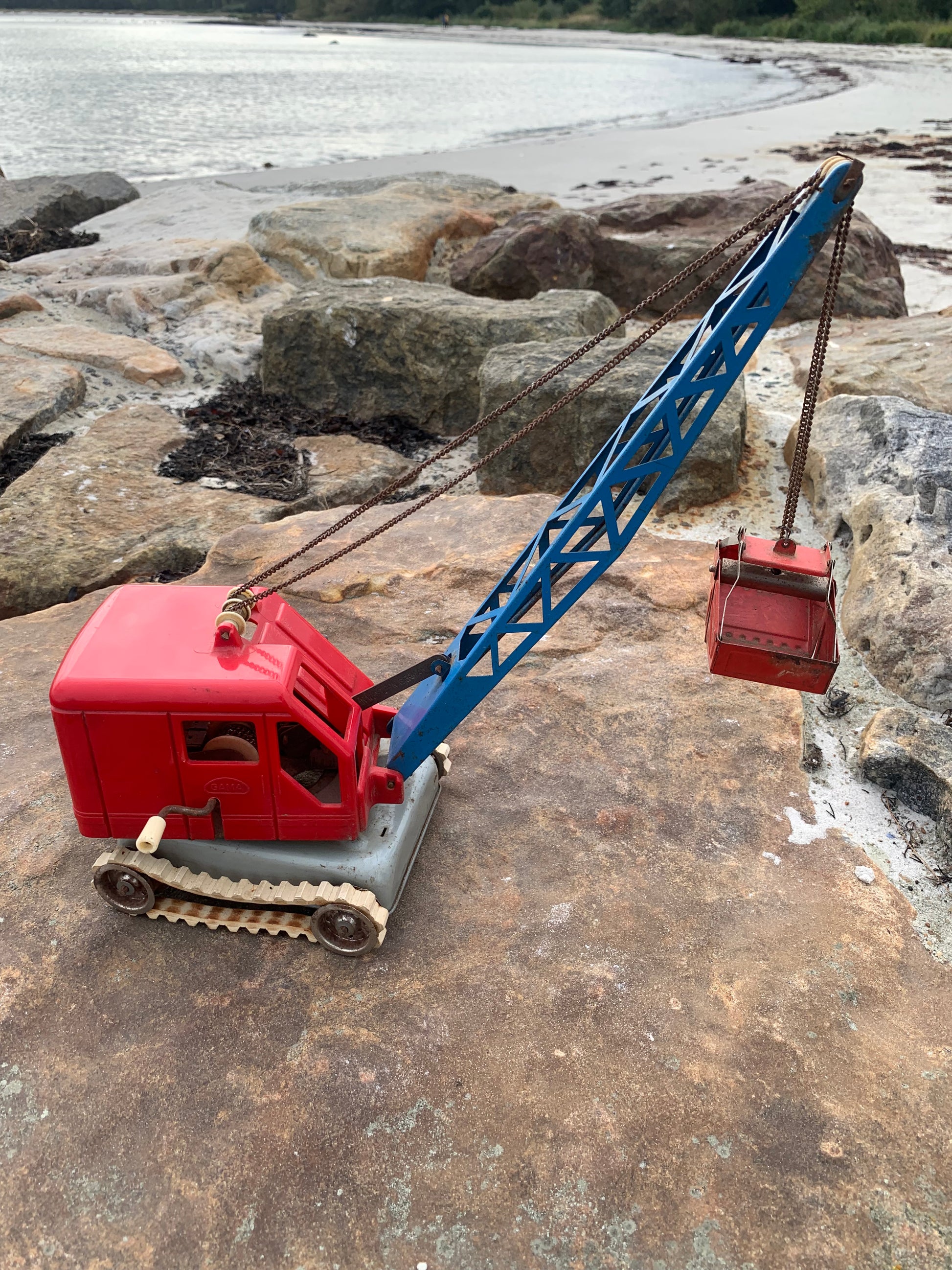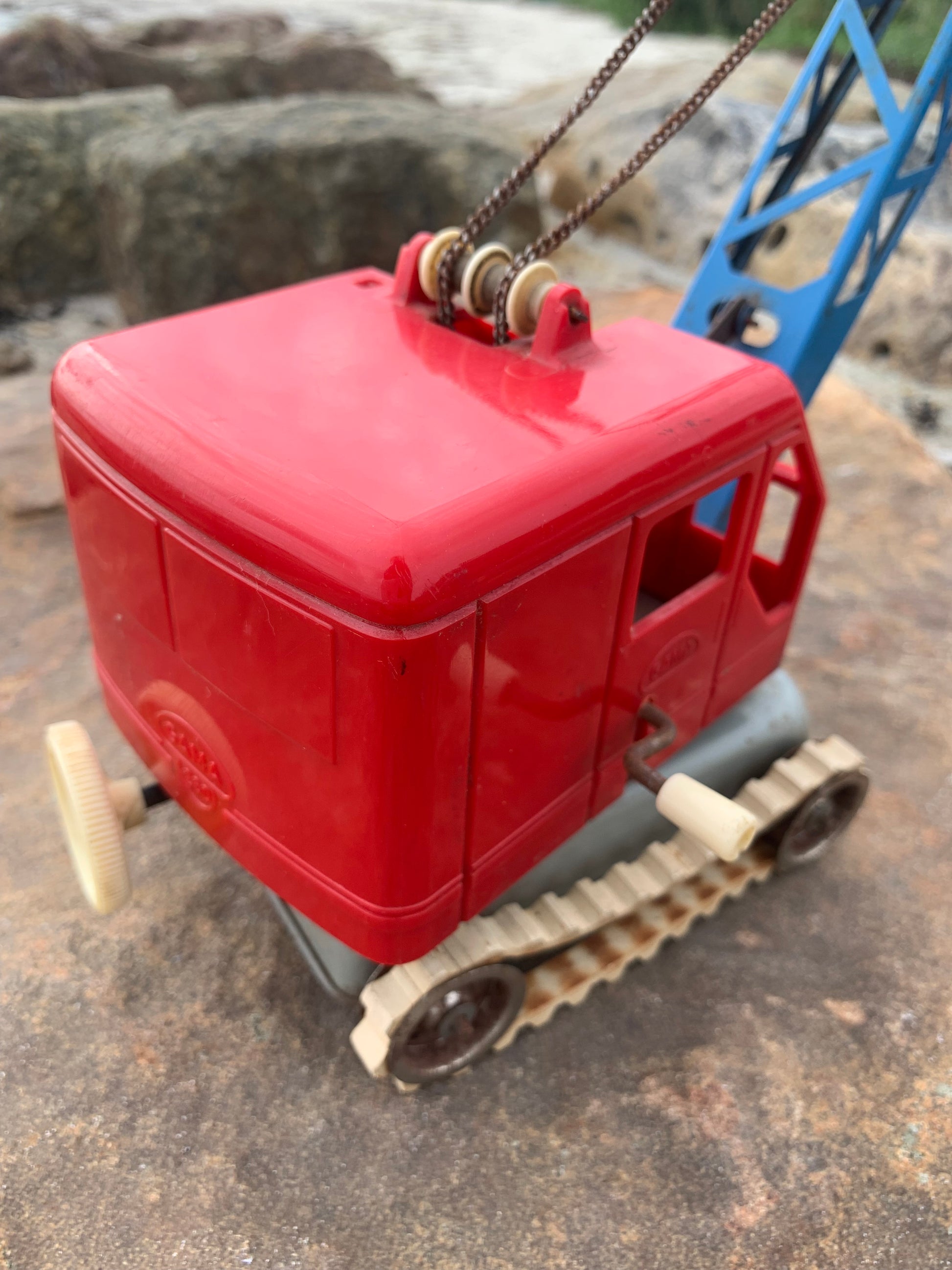 Wunderschöner alter GAMA Kran, vermutlich aus den 50er Jahren. Der Kran funktioniert und ist unglaublich charmant mit seinen authentischen Gebrauchsspuren.