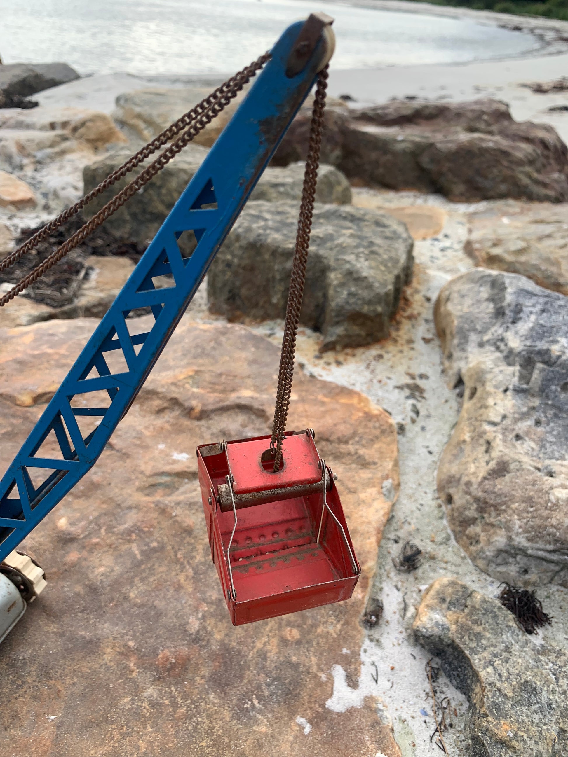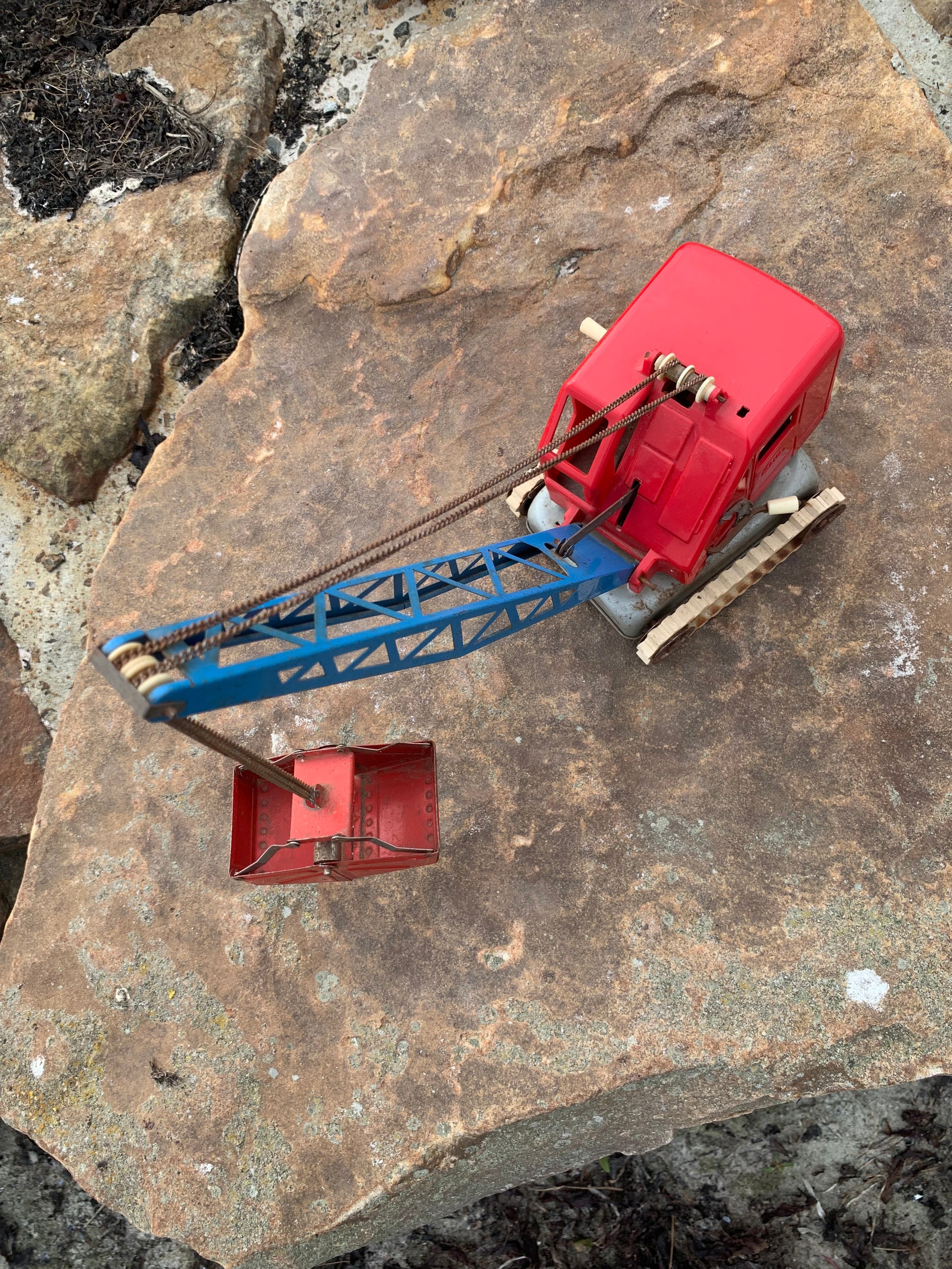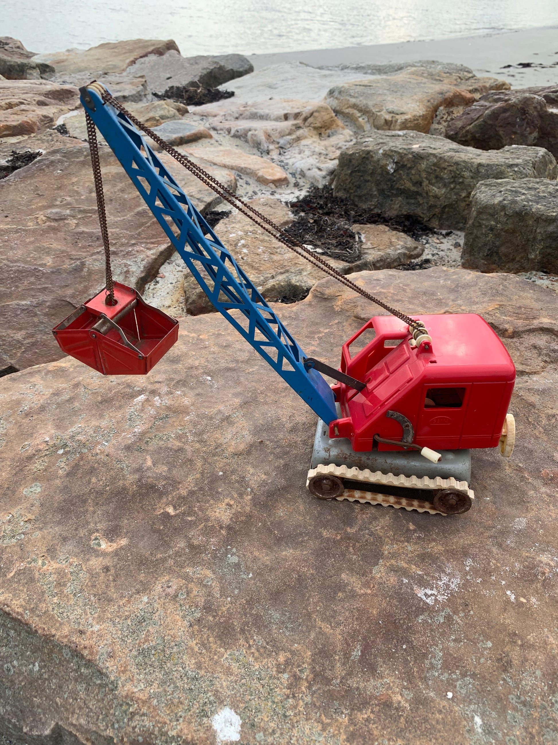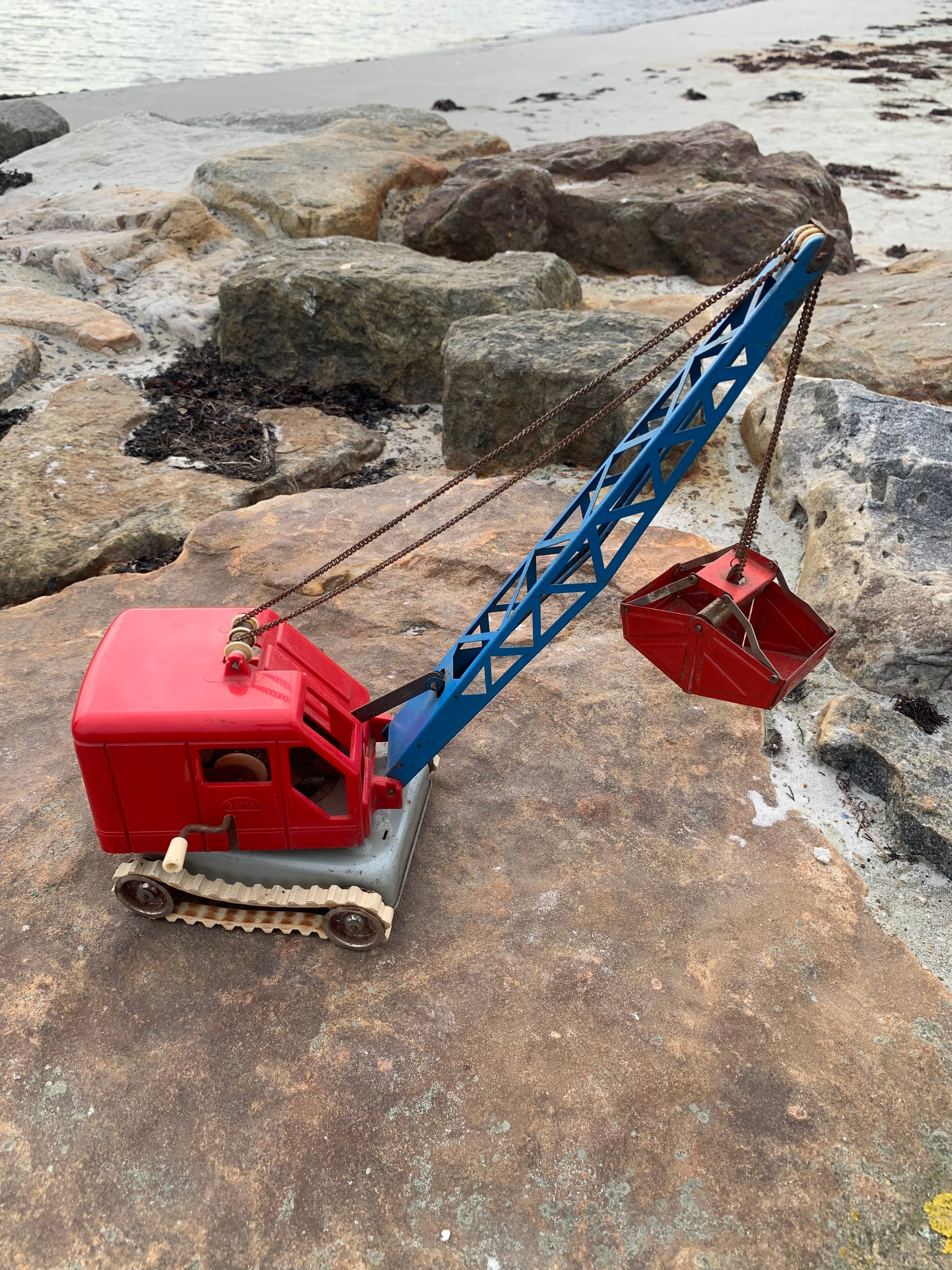 Wunderschöner alter GAMA Kran, vermutlich aus den 50er Jahren. Der Kran funktioniert und ist unglaublich charmant mit seinen authentischen Gebrauchsspuren.