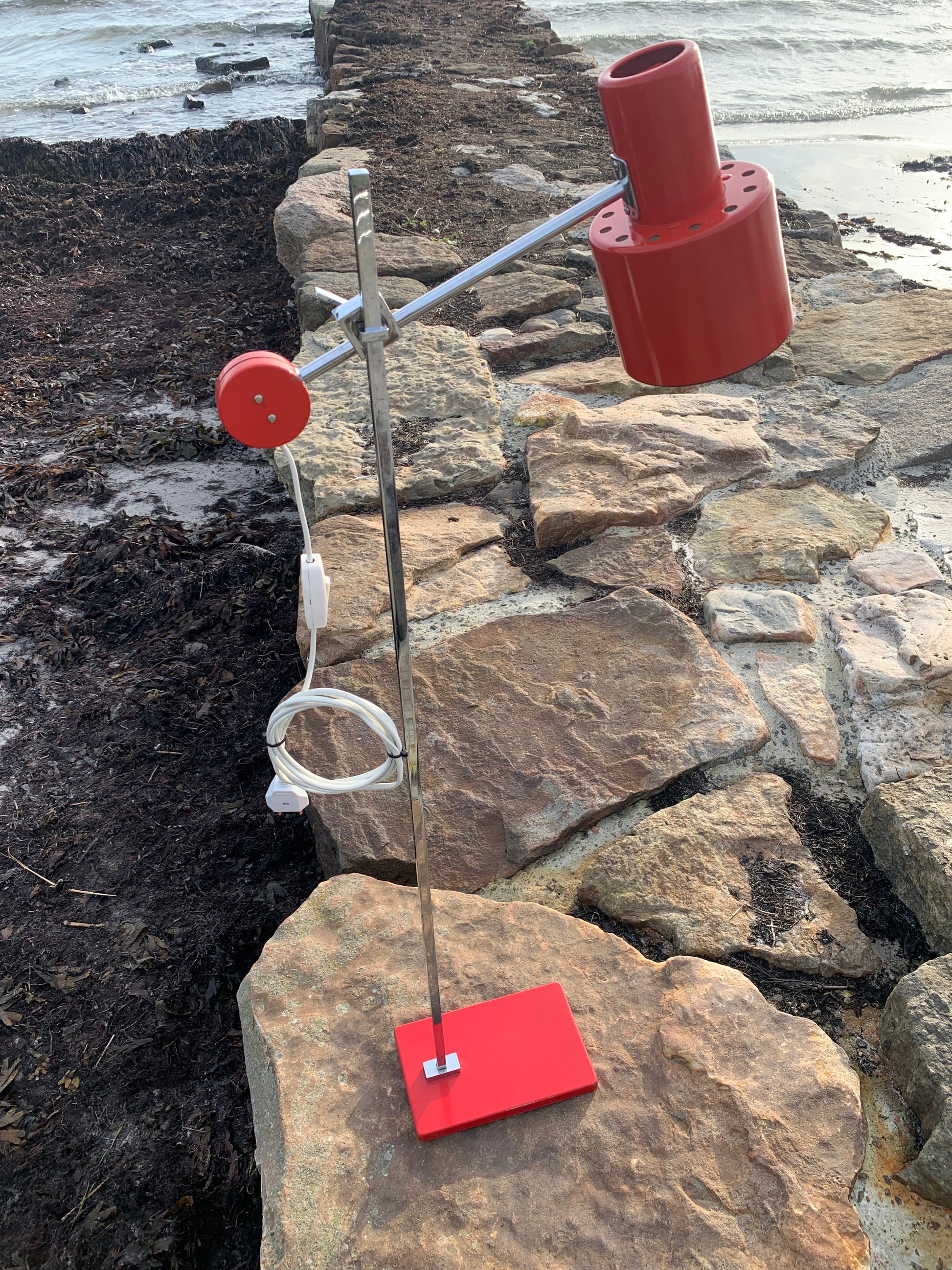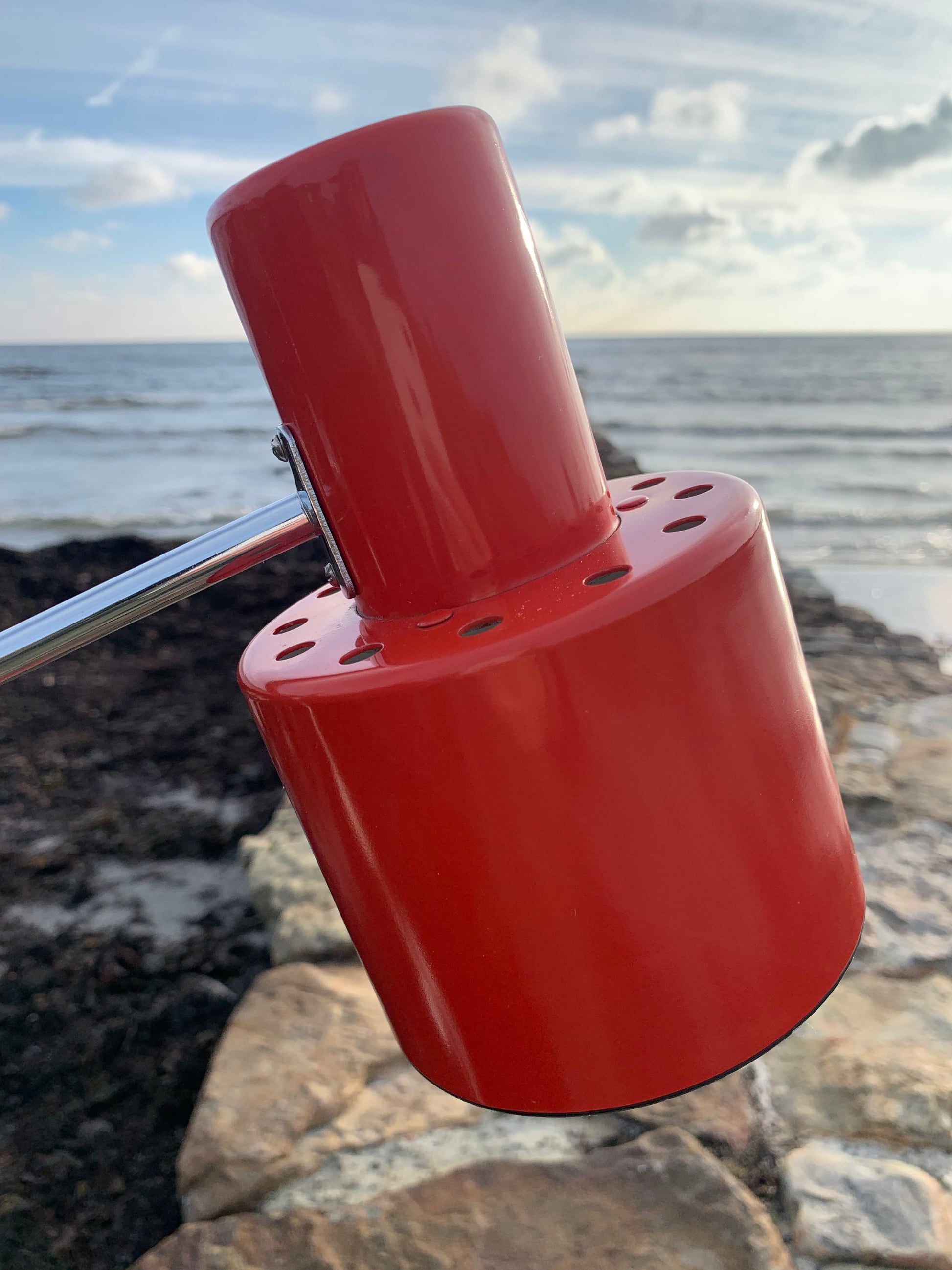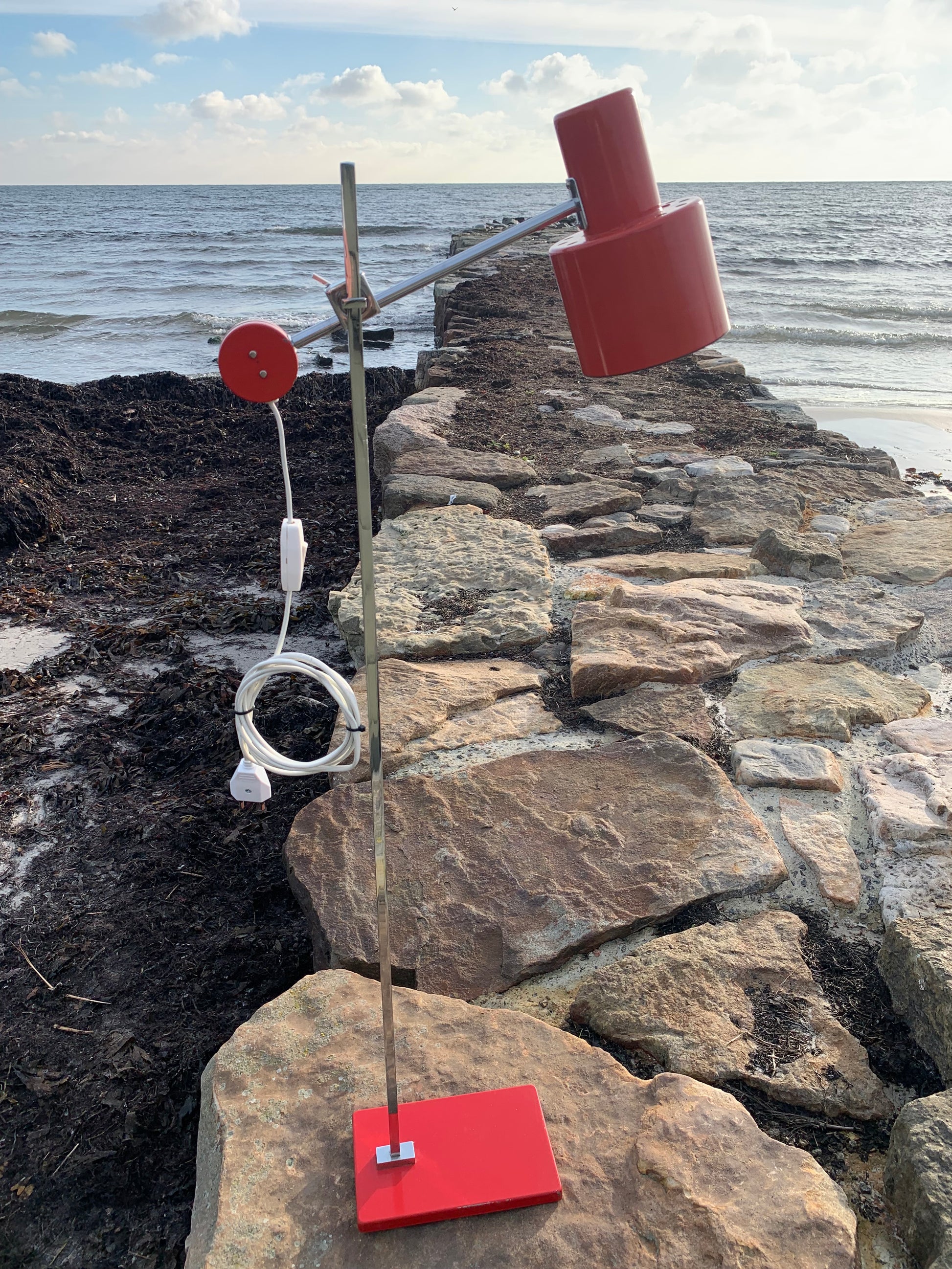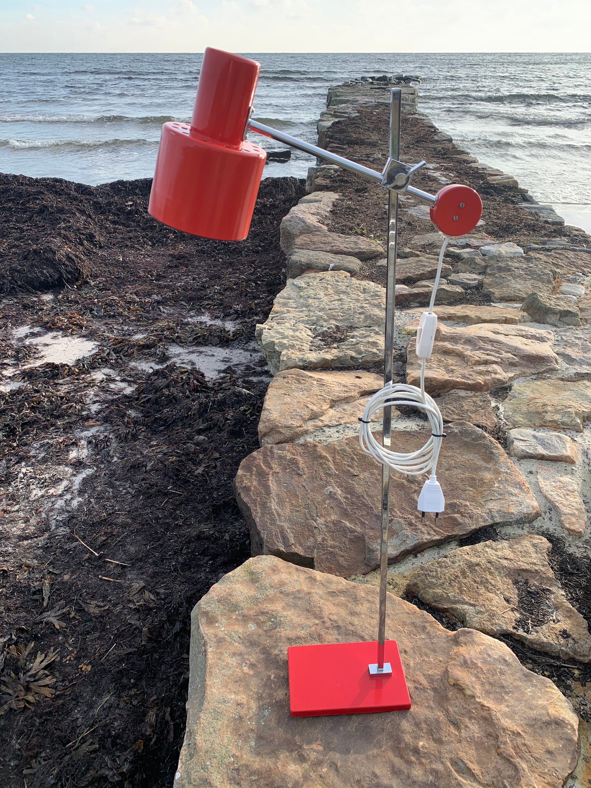 Wunderschöne rote Stehlampe in ansprechendem Design. Die Lampe wirkt original und befindet sich in gutem Vintage-Zustand mit einigen altersbedingten Gebrauchsspuren (siehe Foto).