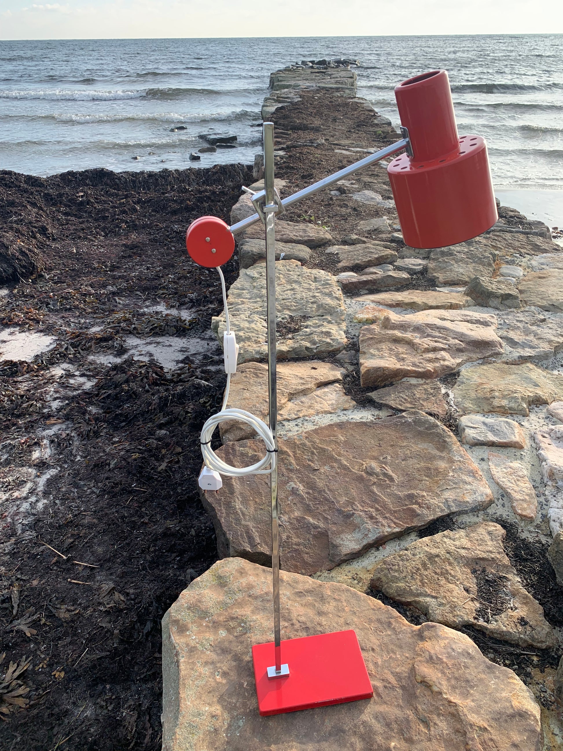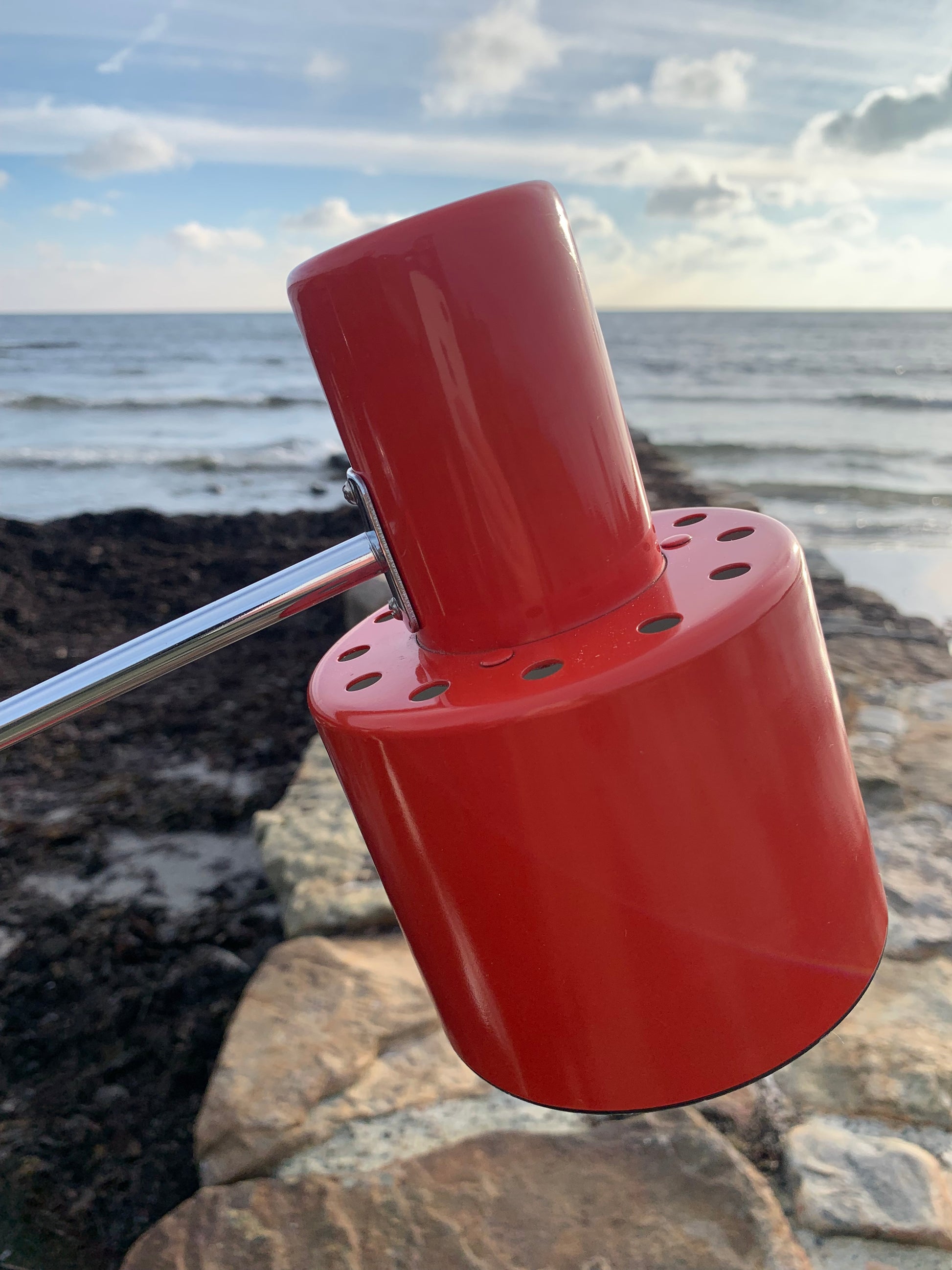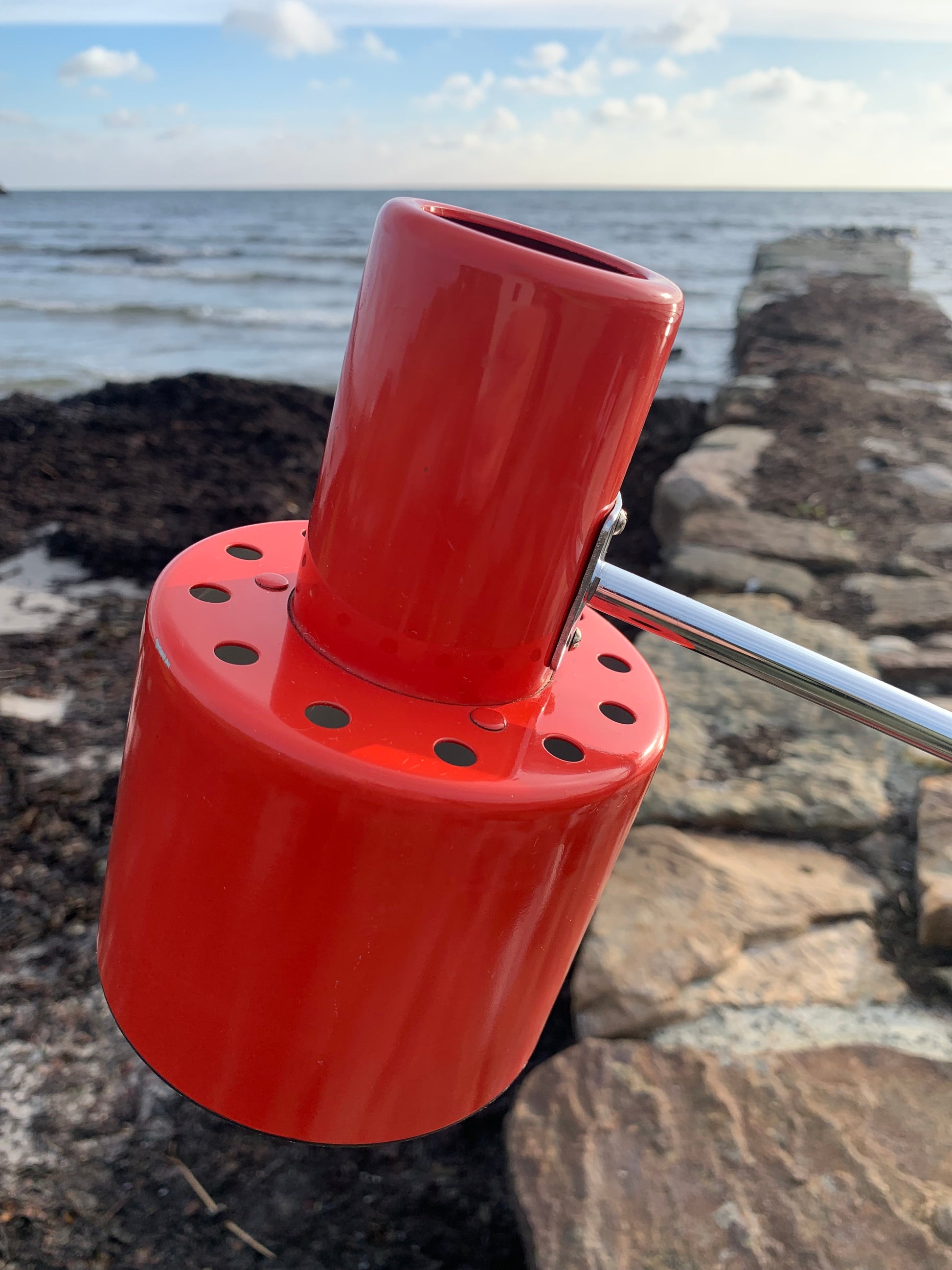 Wunderschöne rote Stehlampe in ansprechendem Design. Die Lampe wirkt original und befindet sich in gutem Vintage-Zustand mit einigen altersbedingten Gebrauchsspuren (siehe Foto).