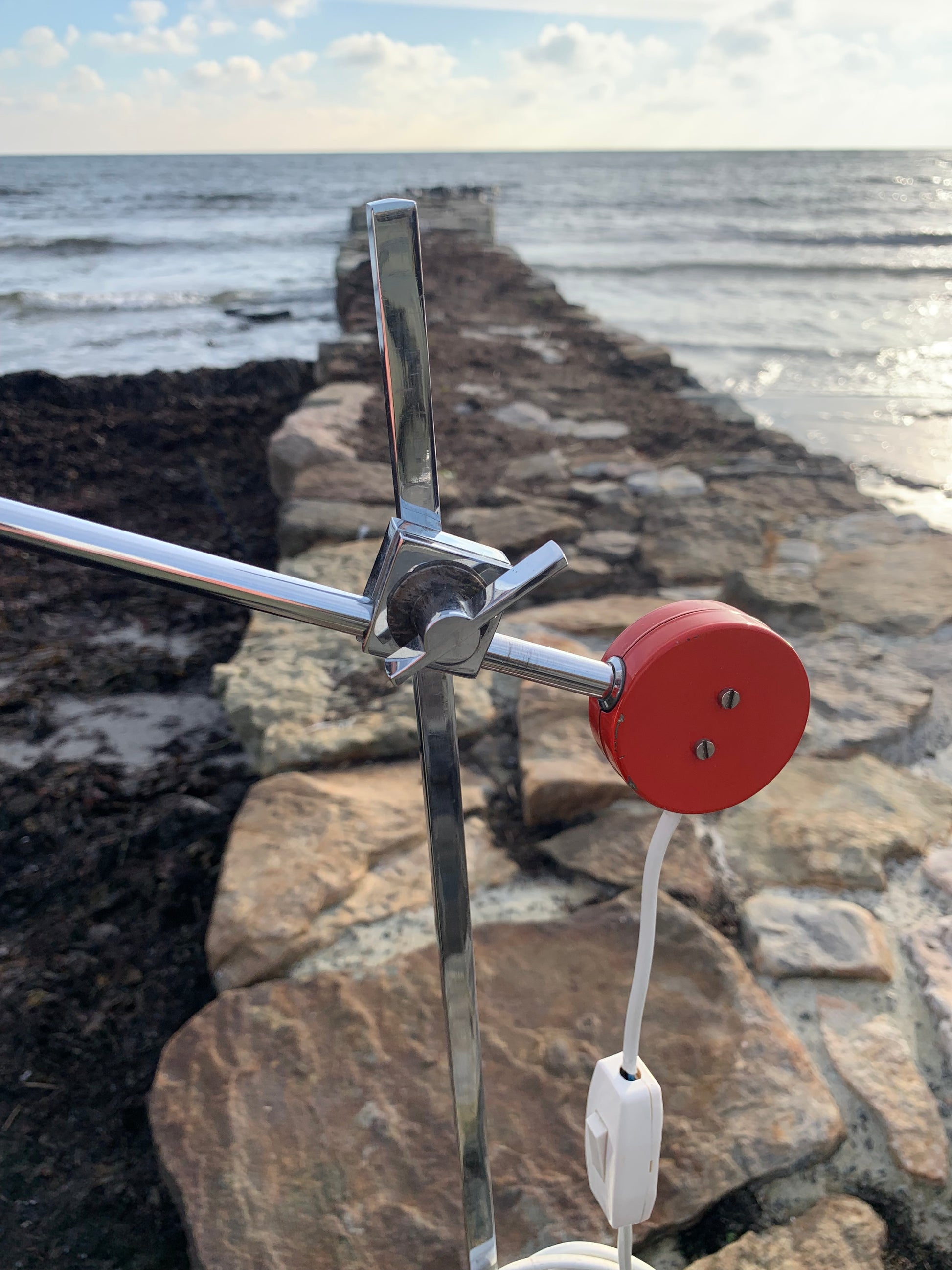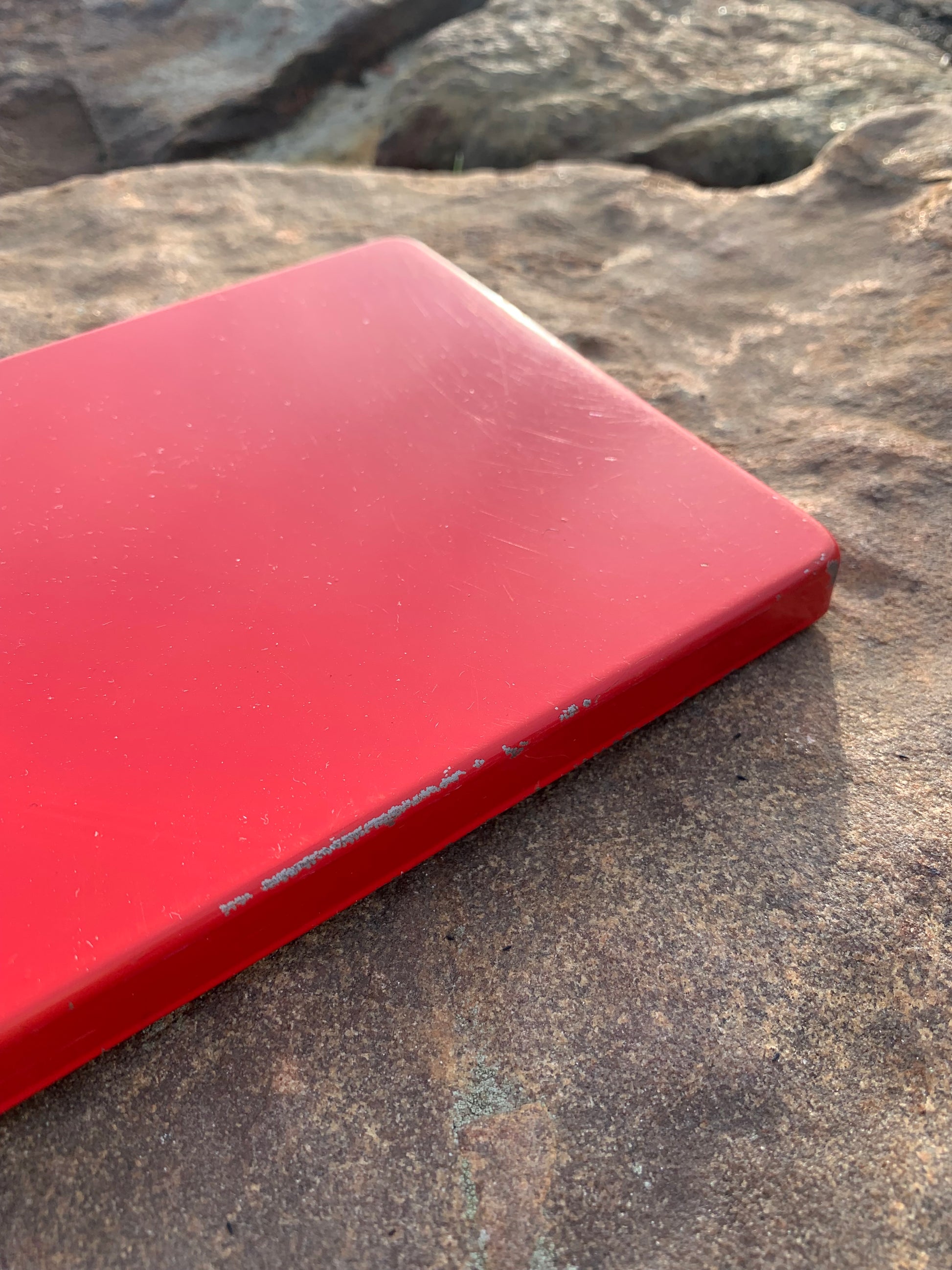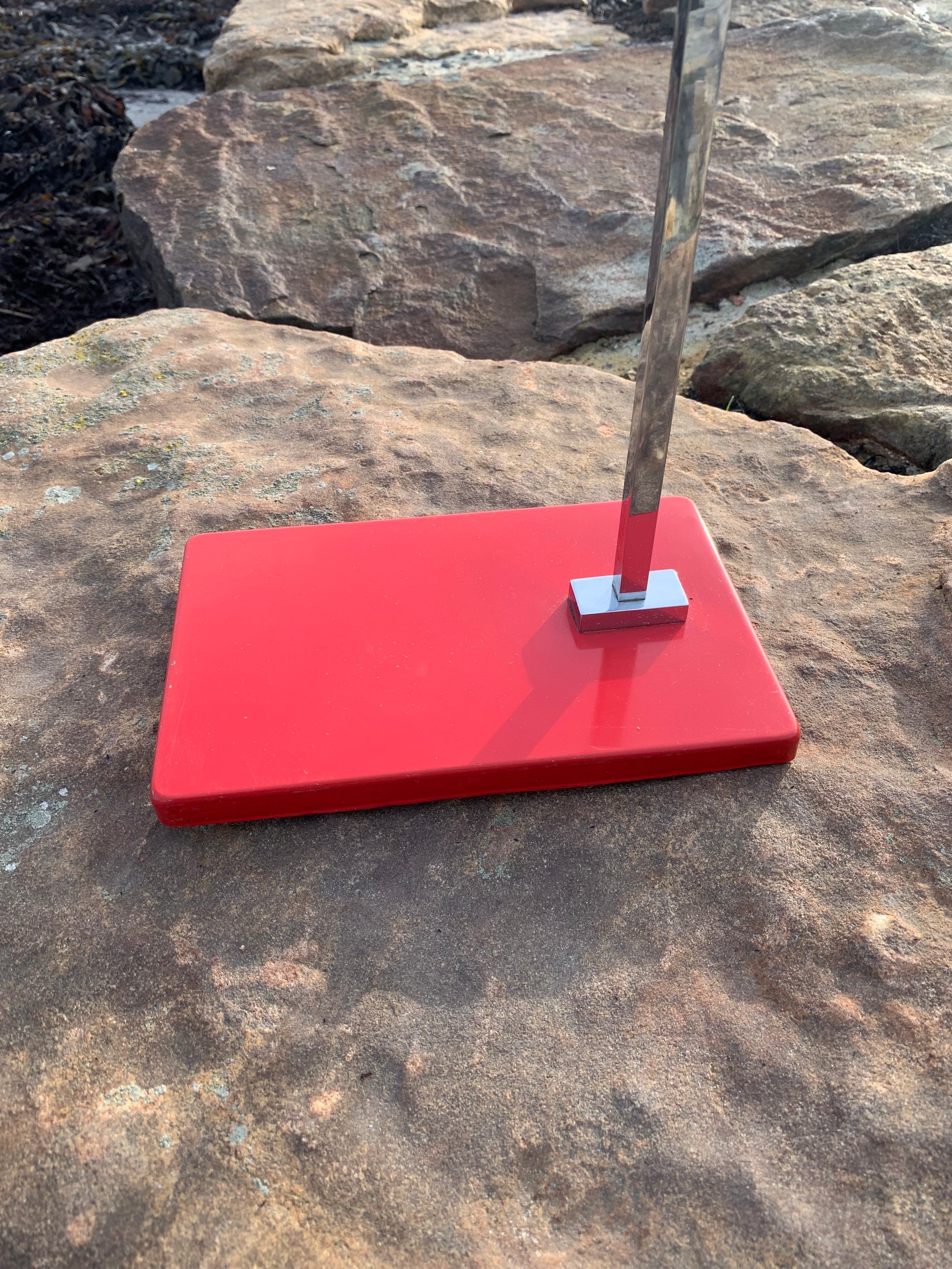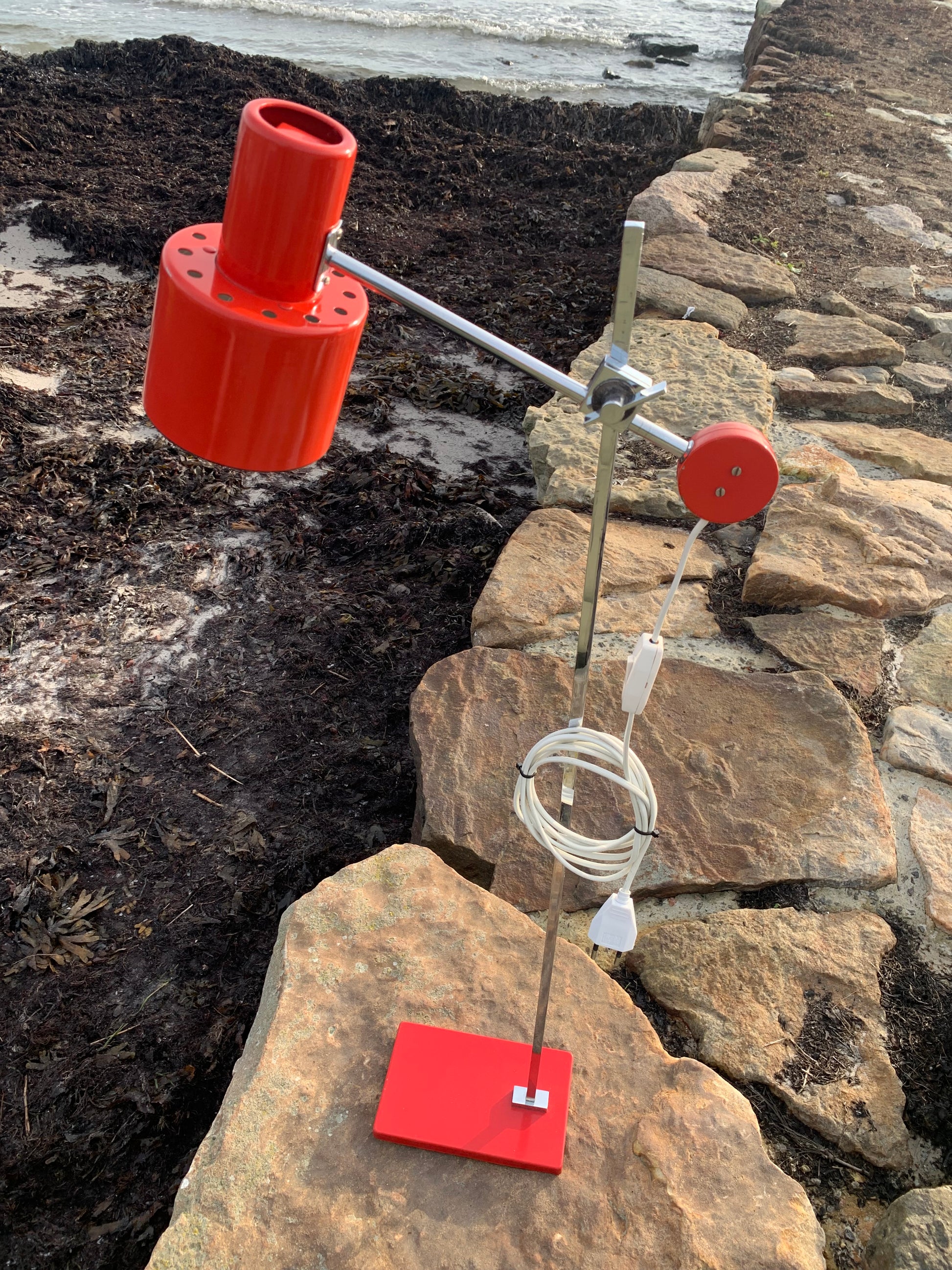 Wunderschöne rote Stehlampe in ansprechendem Design. Die Lampe wirkt original und befindet sich in gutem Vintage-Zustand mit einigen altersbedingten Gebrauchsspuren (siehe Foto).