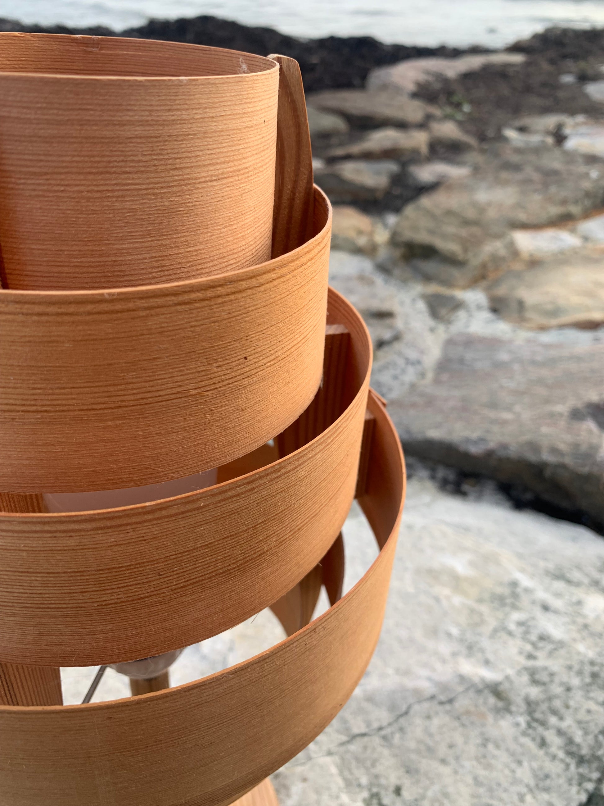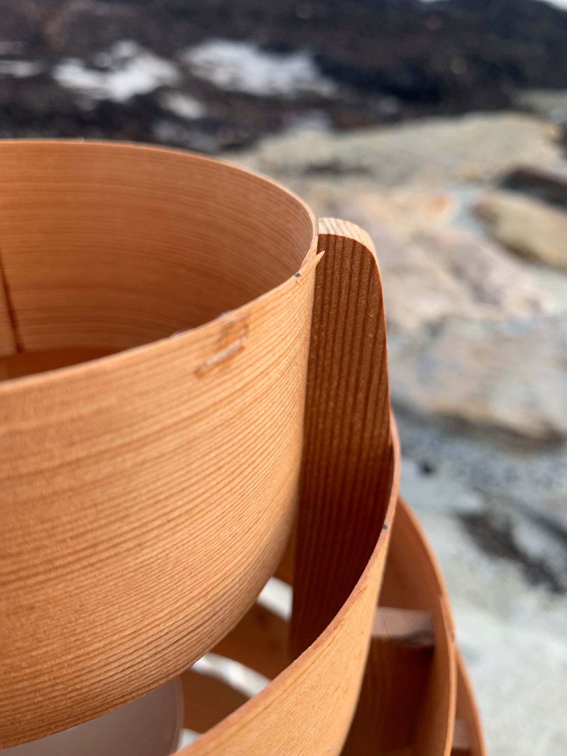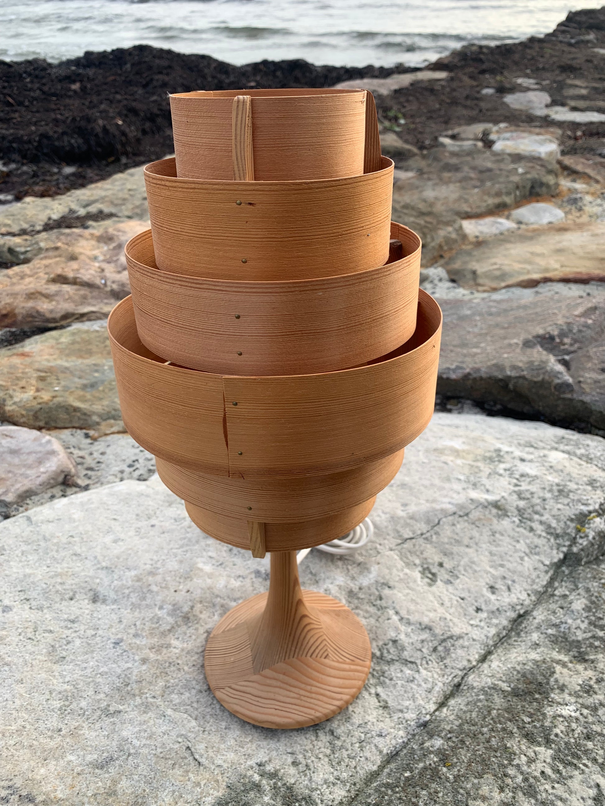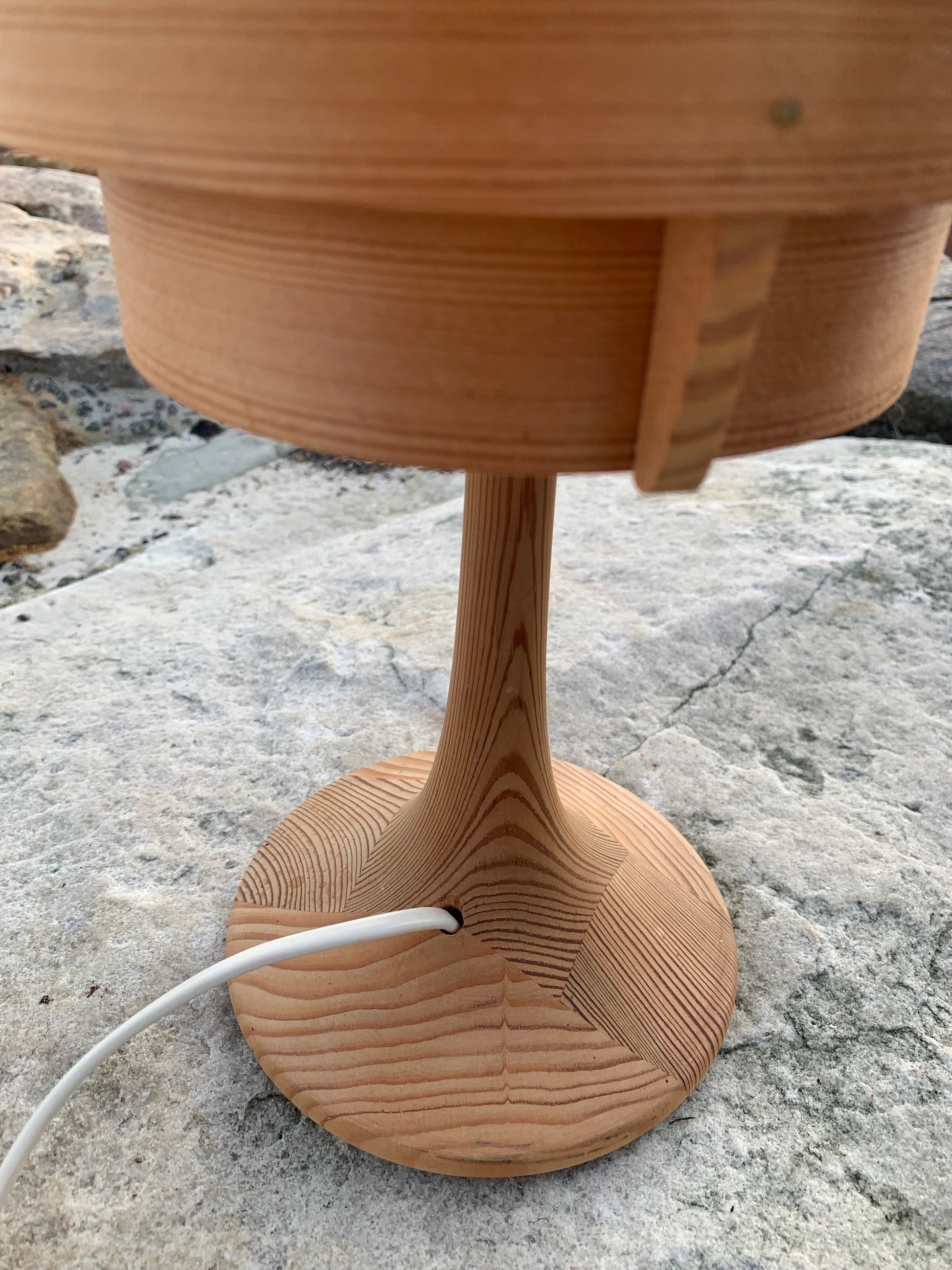 Hübsche Spanplattenlampe, entworfen von Hans Agne Jakobsson. Die Lampe ist in einem guten Vintage-Zustand mit wenigen Gebrauchsspuren. Oben ist eine kleine Lasche abgebrochen, was bei genauerem Hinsehen kaum auffällt (siehe Foto).