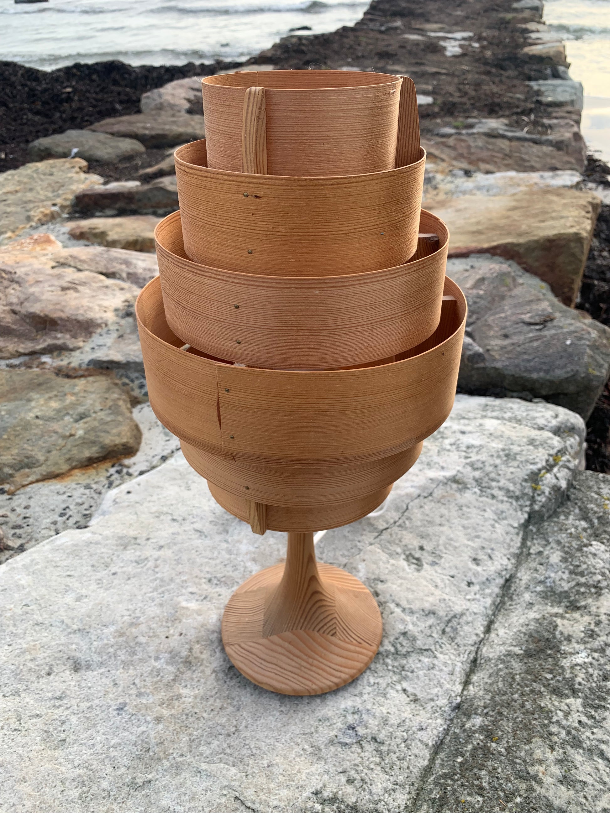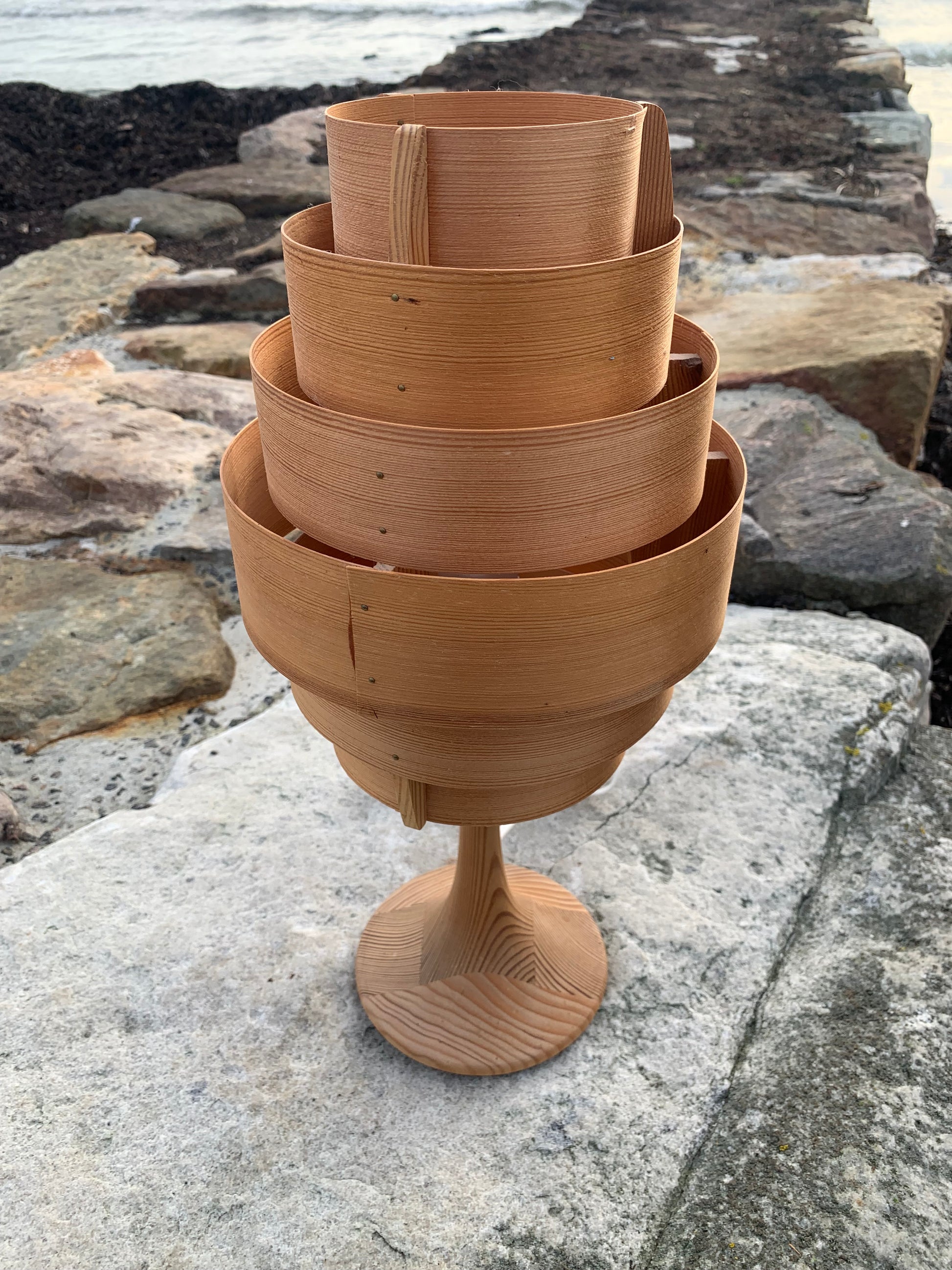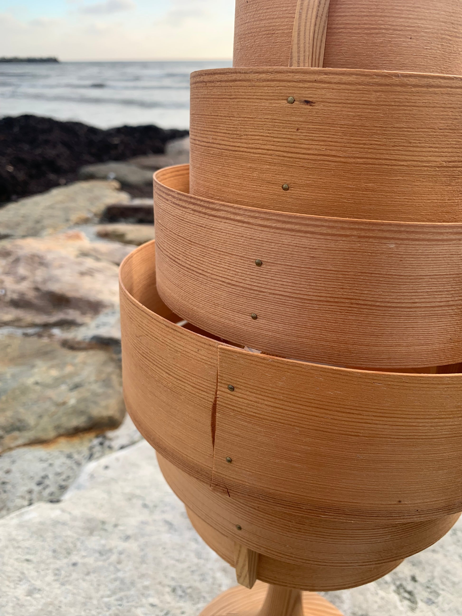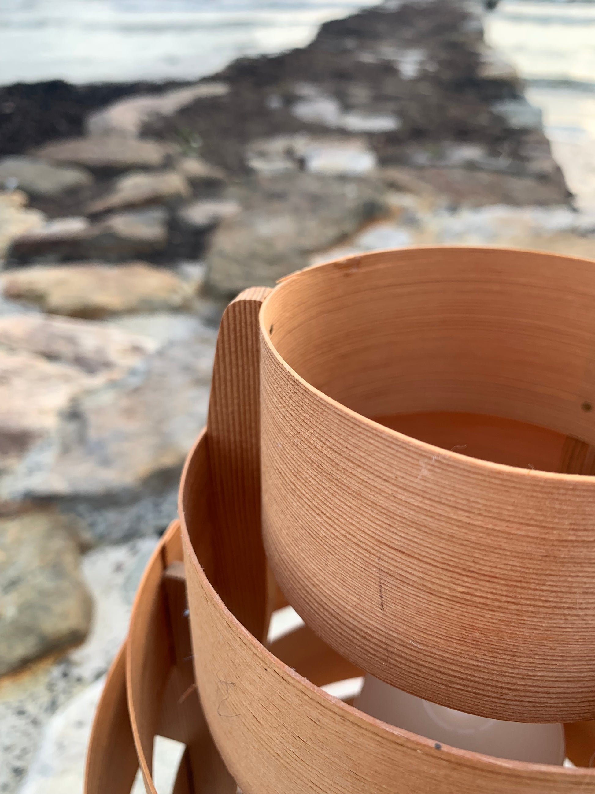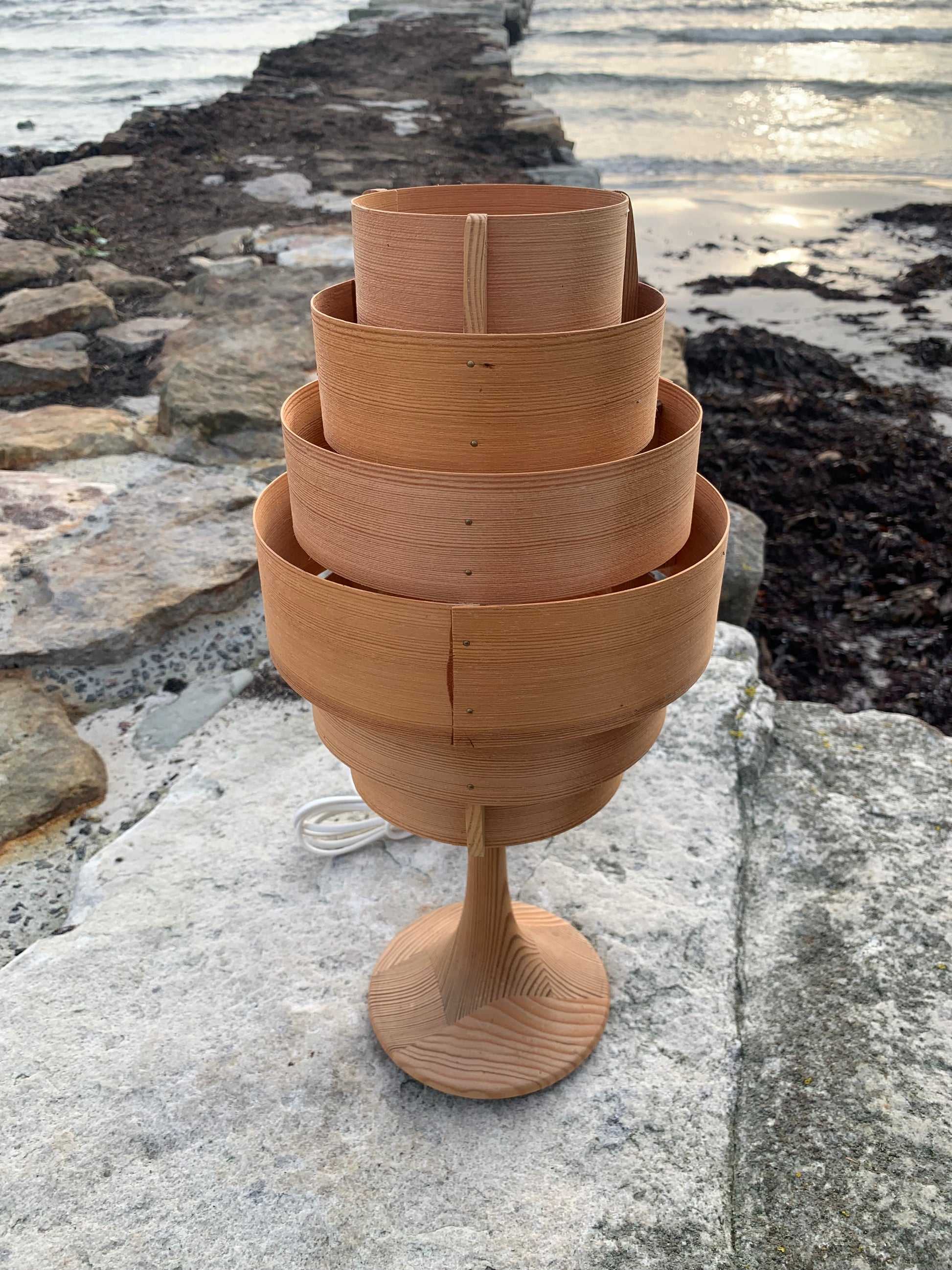 Hübsche Spanplattenlampe, entworfen von Hans Agne Jakobsson. Die Lampe ist in einem guten Vintage-Zustand mit wenigen Gebrauchsspuren. Oben ist eine kleine Lasche abgebrochen, was bei genauerem Hinsehen kaum auffällt (siehe Foto).