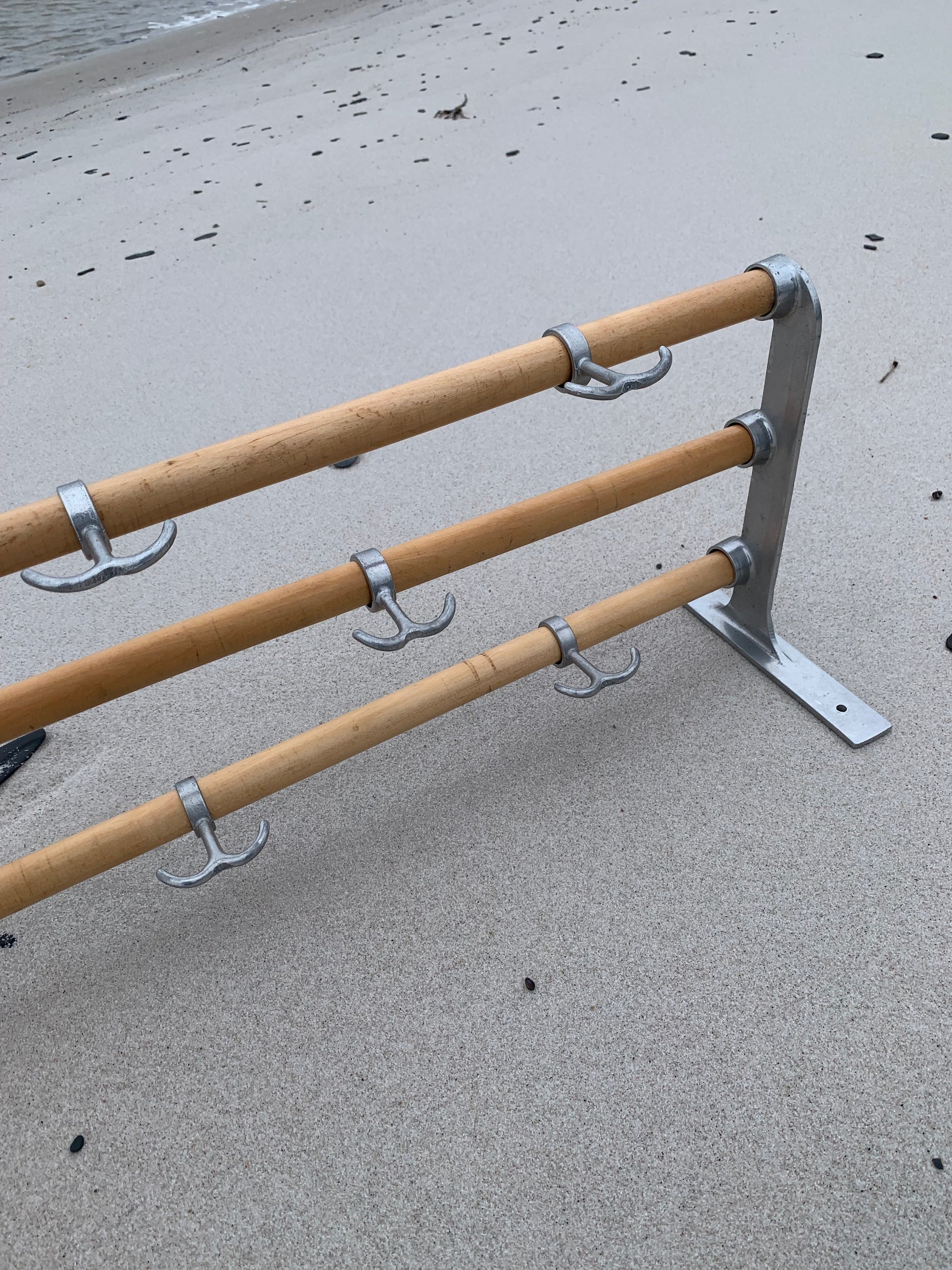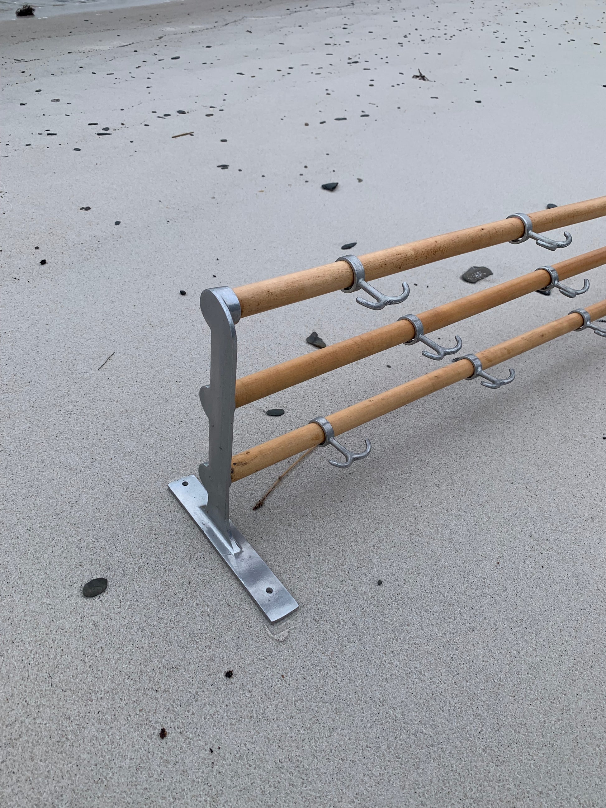 Wunderschönes schwedisches Hutregal in gutem Design von Gunnar Bolin. Der Zahn der Zeit hat es so zerfressen, dass es altersbedingte Gebrauchsspuren aufweist, die nur davon zeugen, dass wahrscheinlich jemand damit zufrieden war.
