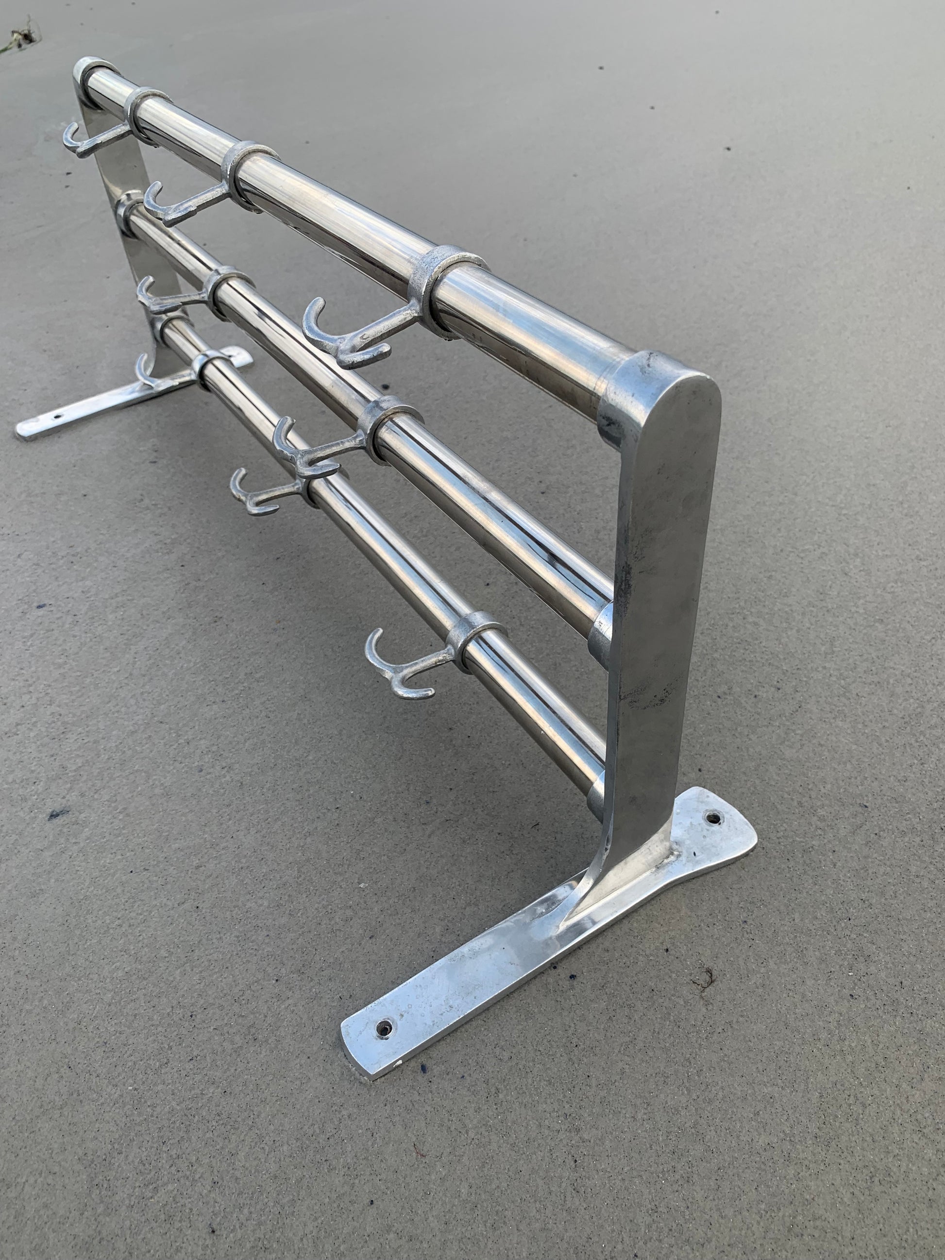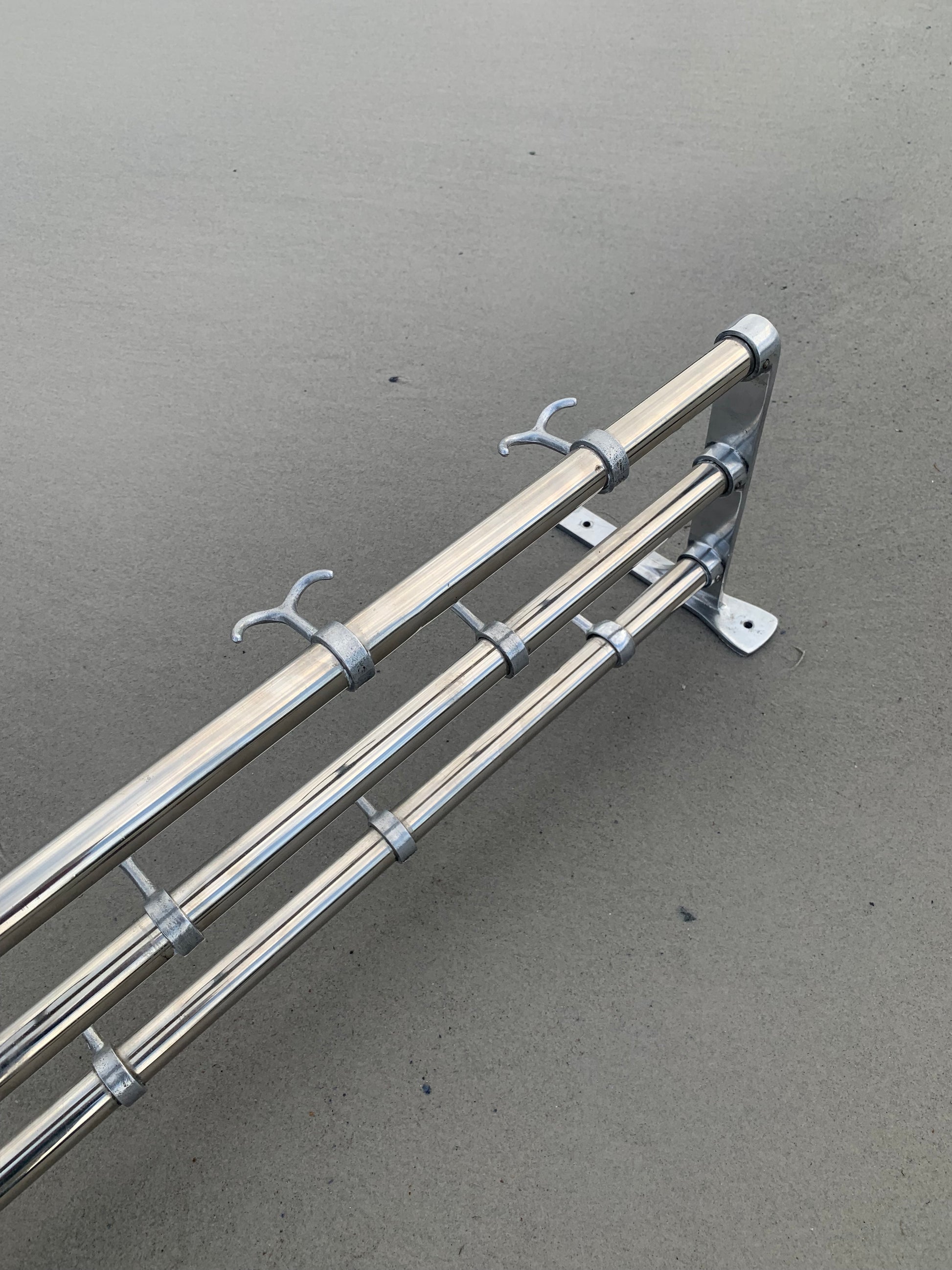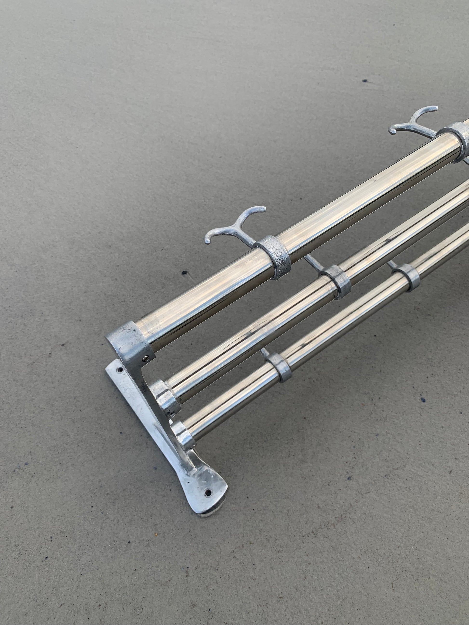 Schöne schwedische Hutablage in gutem Design. Der Zahn der Zeit hat ihr nicht schaden können, so dass sie mit altersbedingten Gebrauchsspuren erscheint, die nur darauf schließen lassen, dass wohl jemand Freude daran hatte.