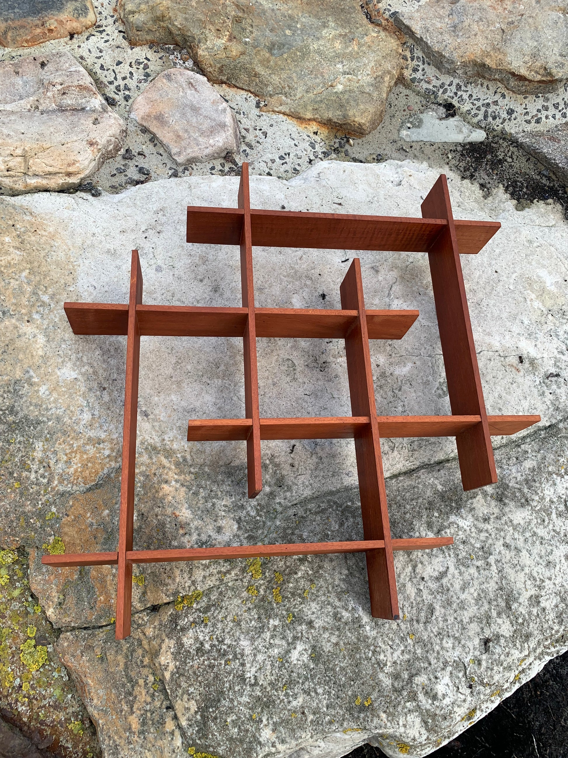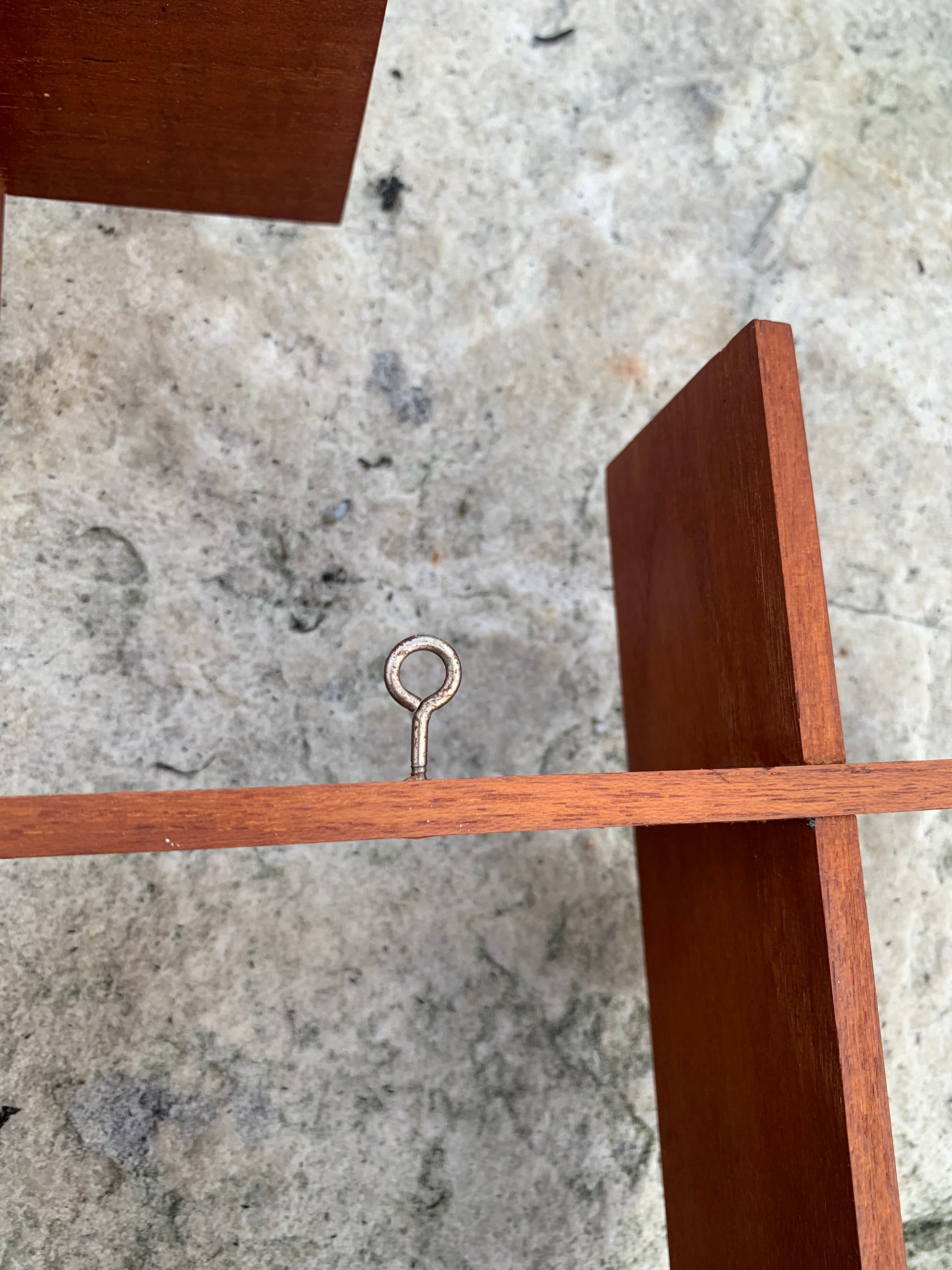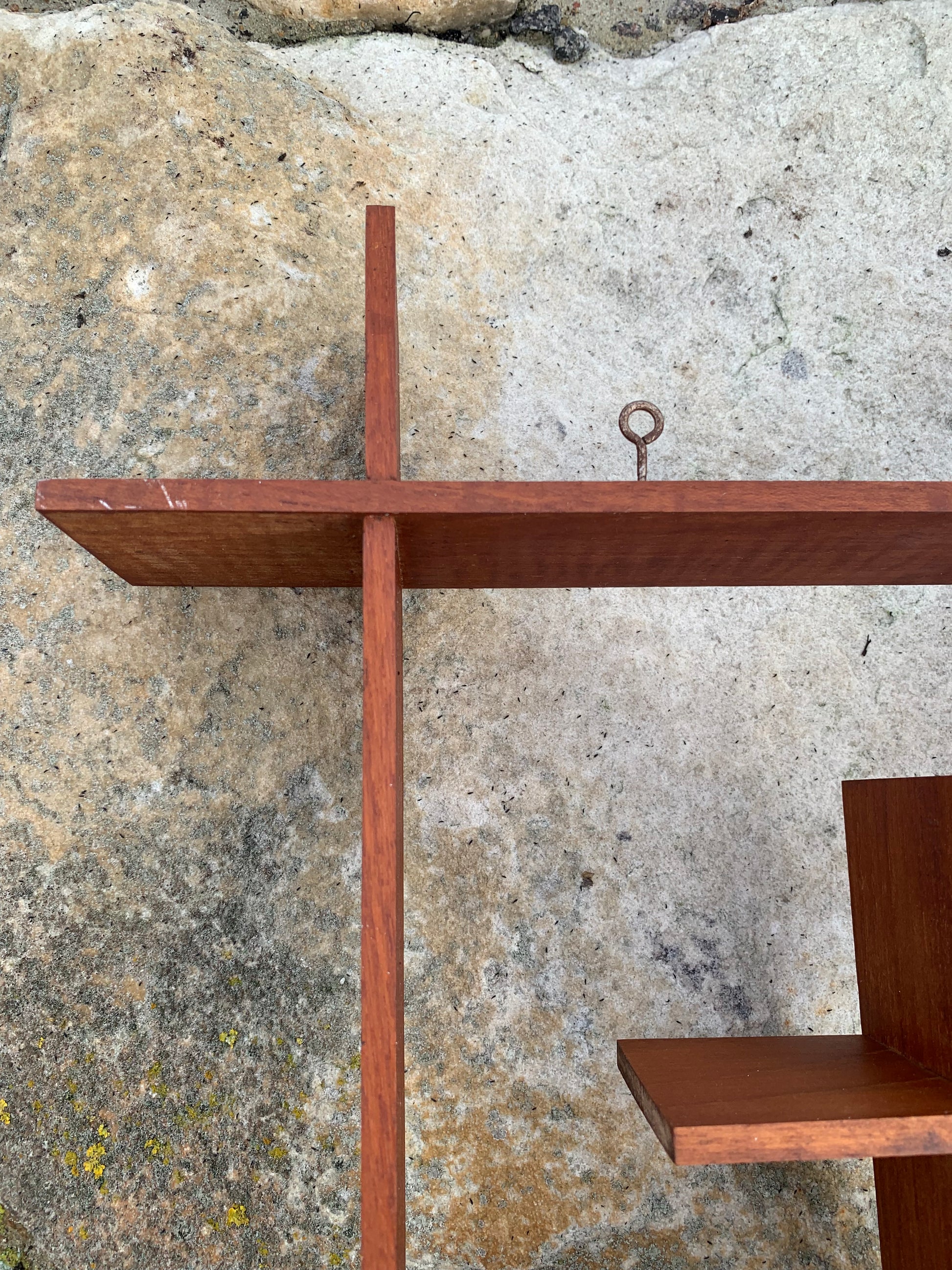 Wunderschönes, dekoratives Holzregal. Das Regal weist altersbedingte Gebrauchsspuren auf, befindet sich aber insgesamt in einem sehr schönen Vintage-Zustand.