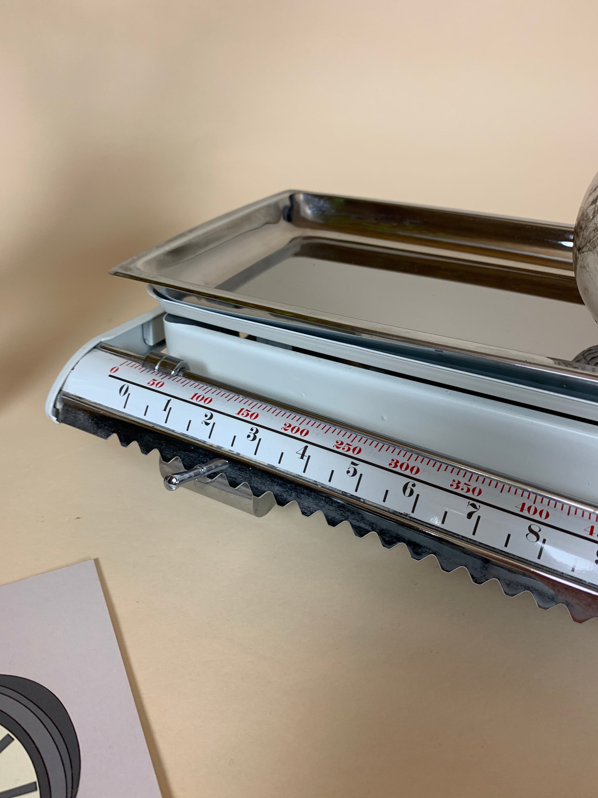 Geschichte: Industrielle schwedische Küchenwaage - gefunden in Schweden.