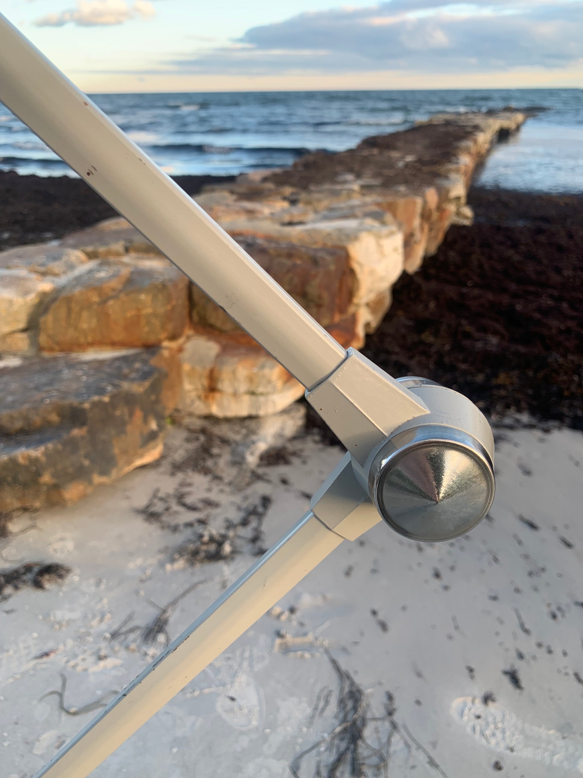 Die Lampe ist aus modularen Teilen aufgebaut und kann an verschiedene Größen und Zwecke angepasst werden.