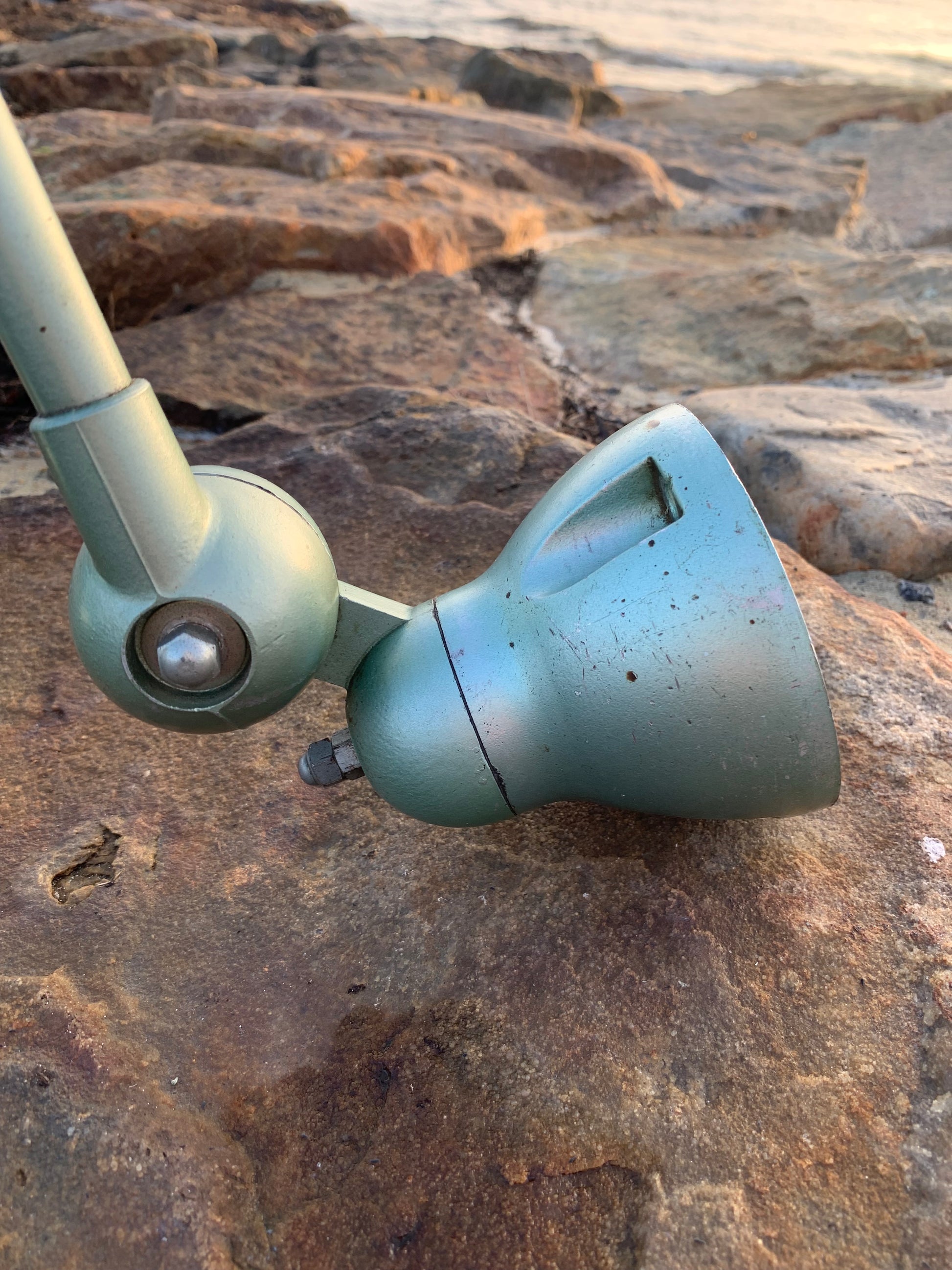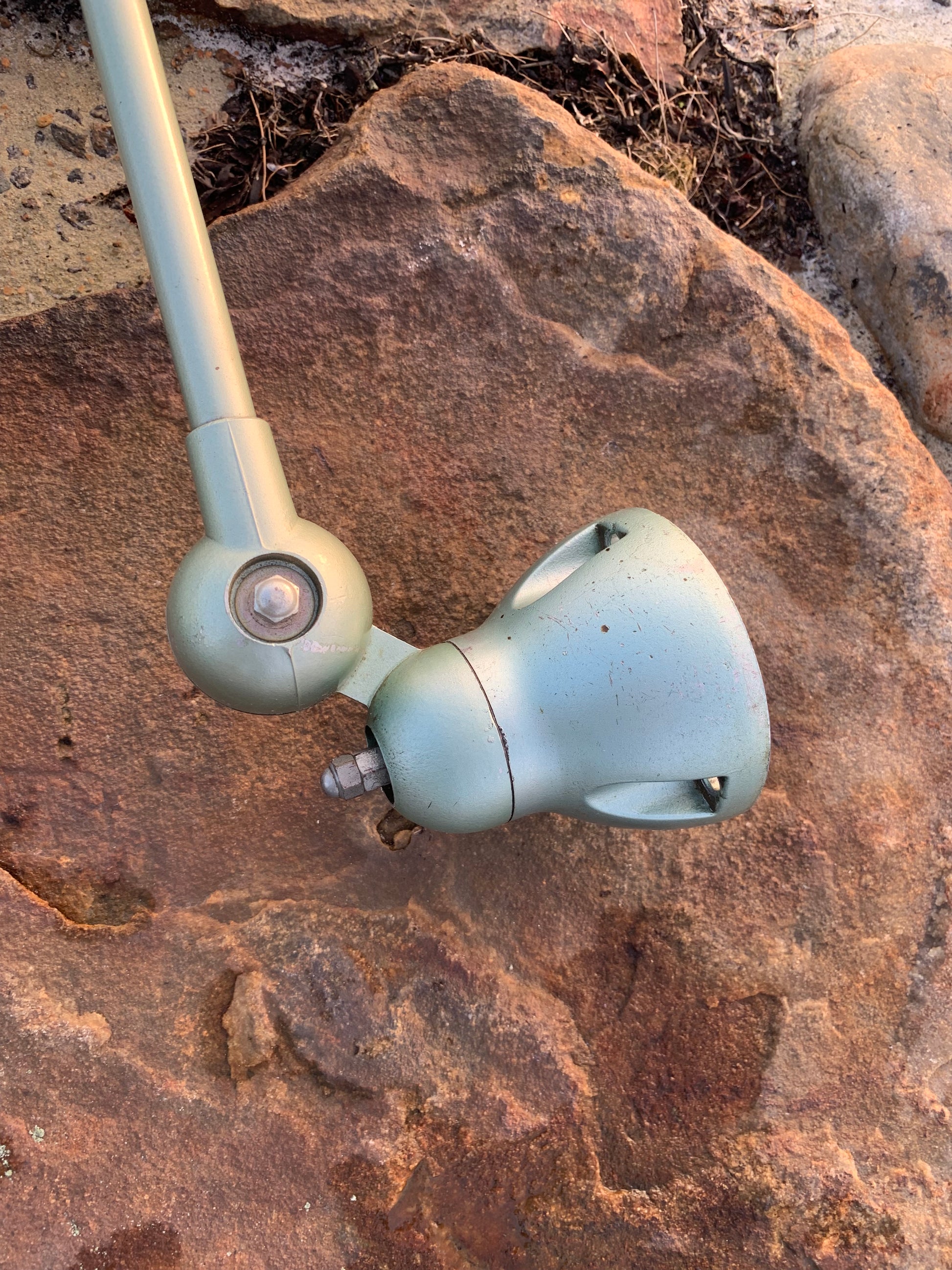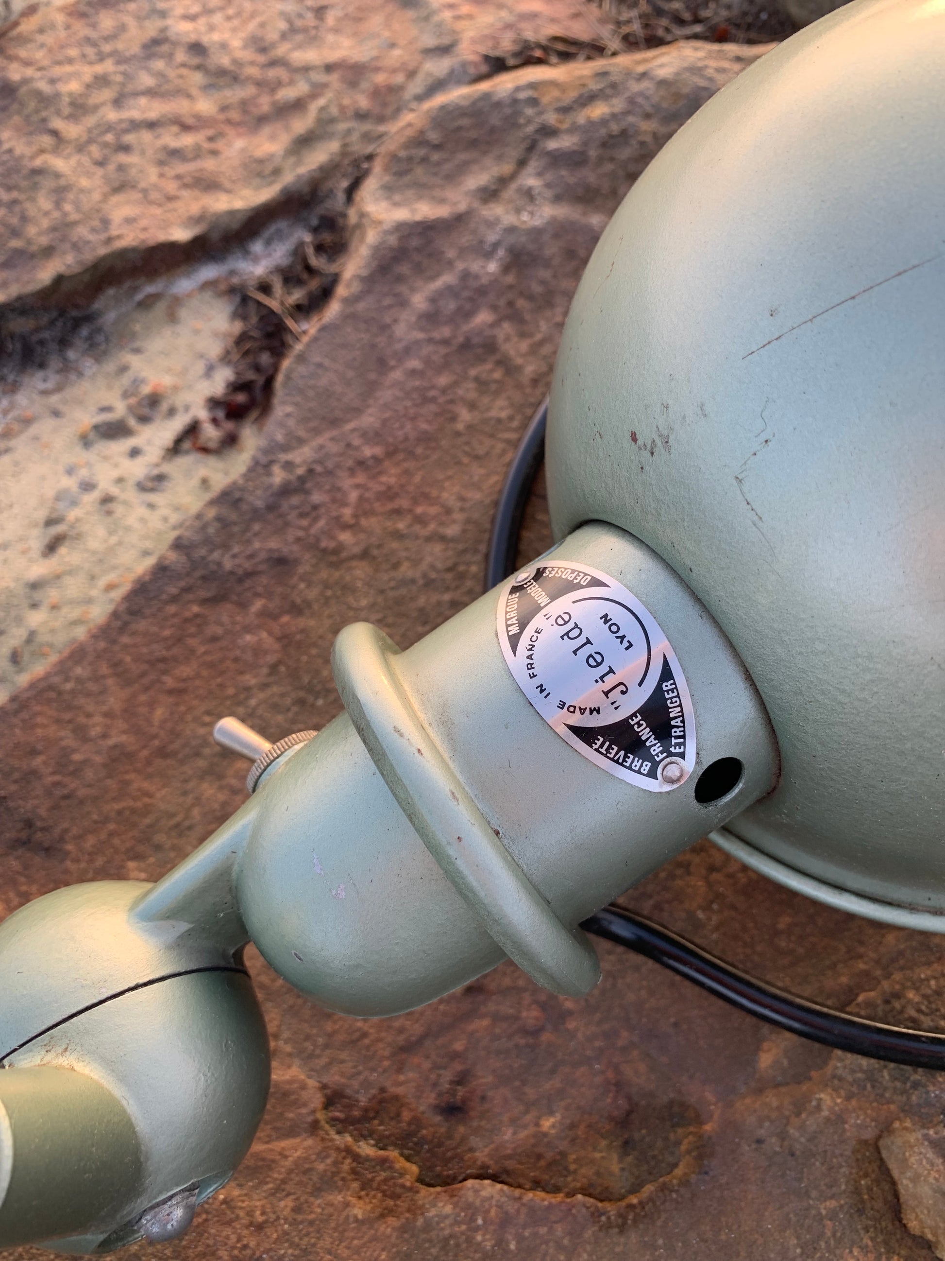Wunderschöne, klassische Jieldé-Lampe in einem schönen Grün. Die Lampe weist altersbedingte Gebrauchsspuren auf, was bei einer solchen Lampe (unserer Meinung nach) zu erwarten ist.