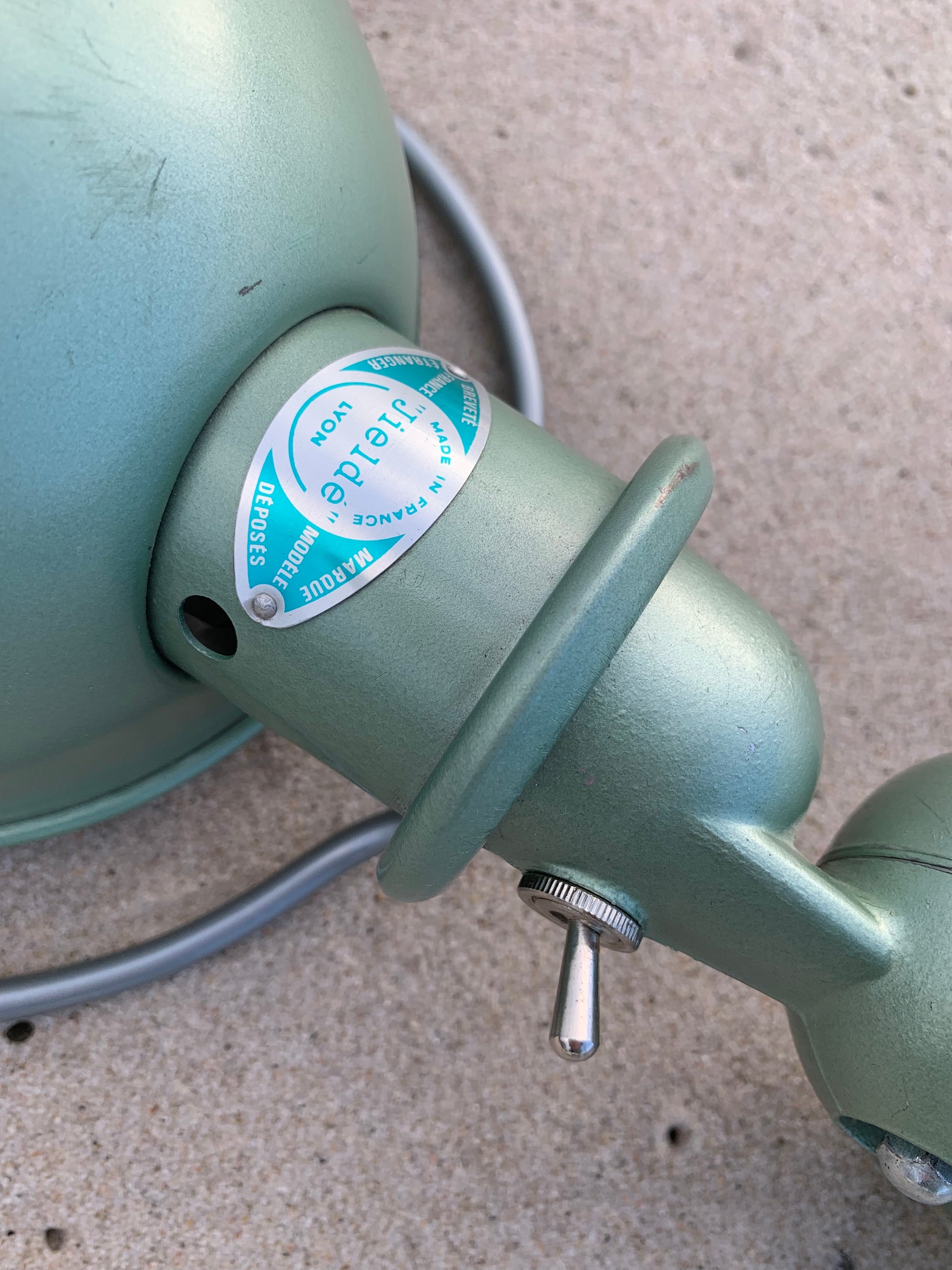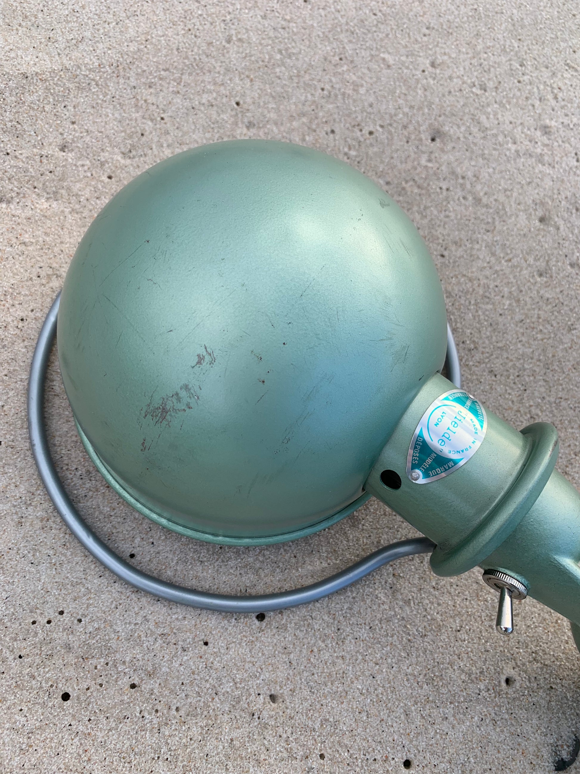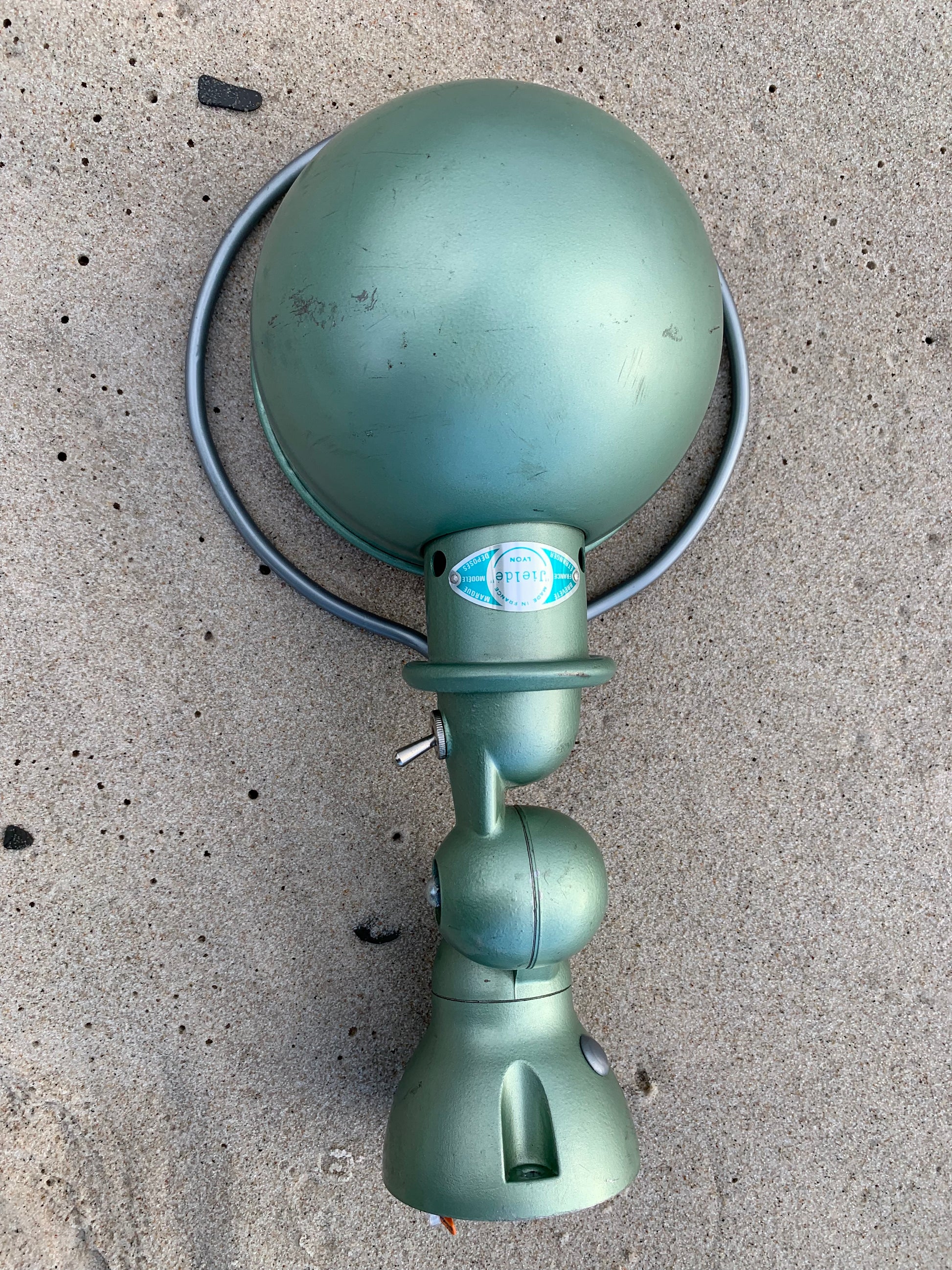 Schöne grüne Jieldé-Lampe mit schöner Patina.