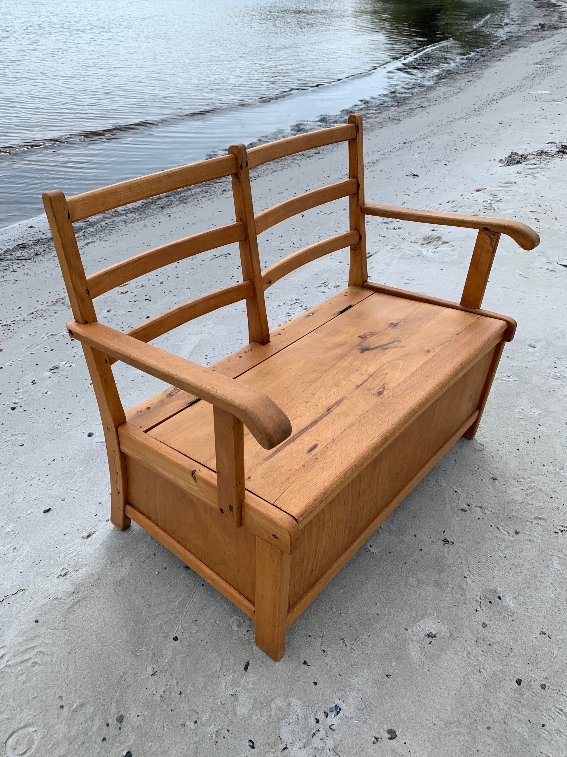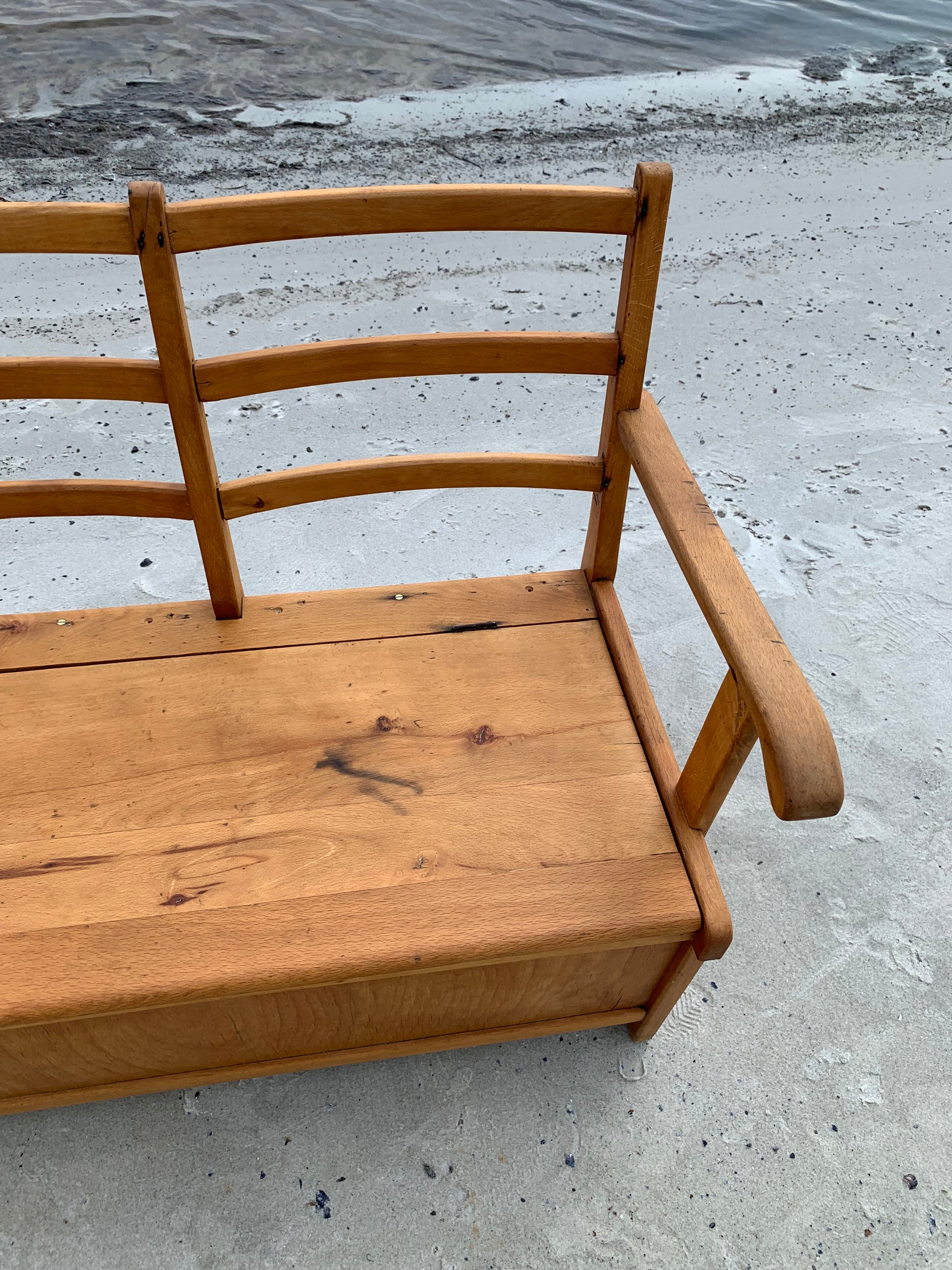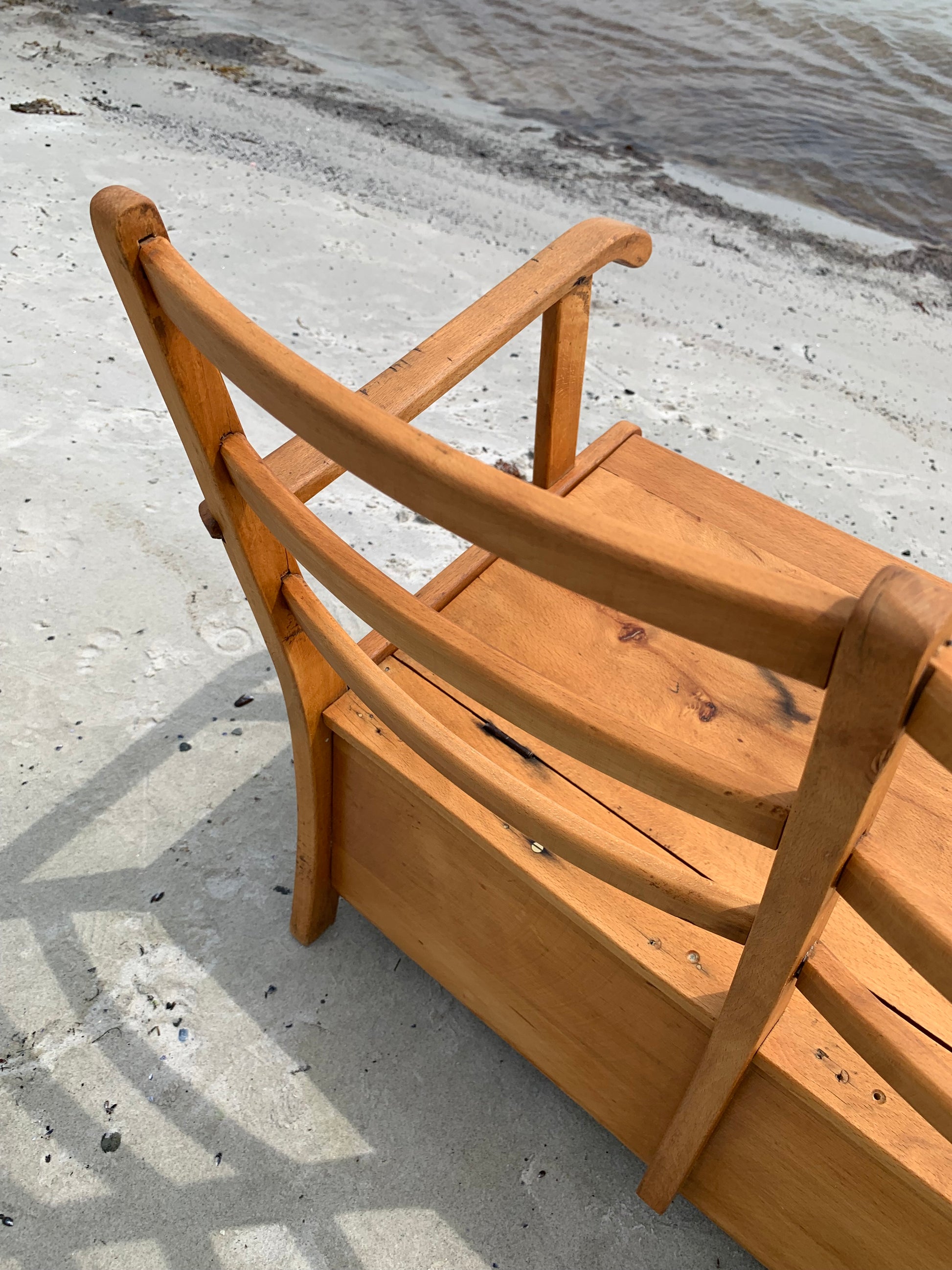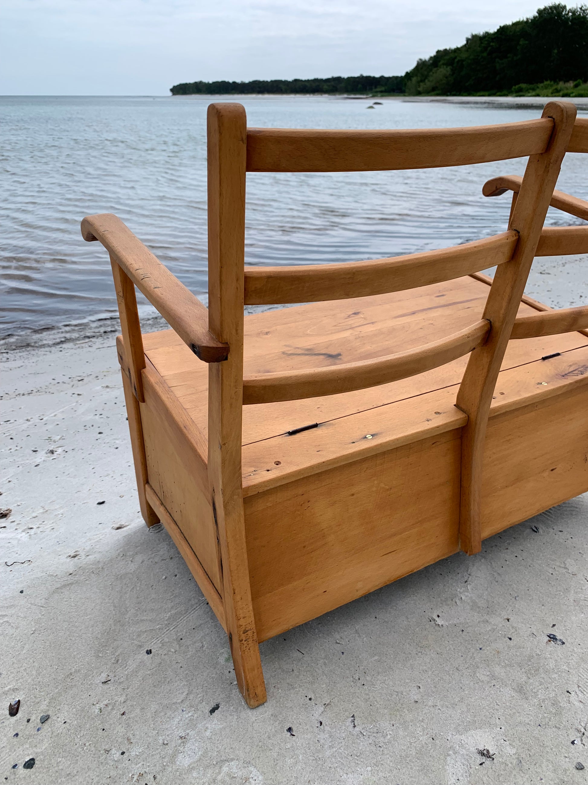 Die Bank selbst wirkt original. Sie wurde zudem leicht abgeschliffen und mit Wachs behandelt. Der Zahn der Zeit hat auf – für unseren Geschmack – sehr charmante Weise an ihr genagt. Sie hat genau den Look, den eine solche Bank haben sollte.