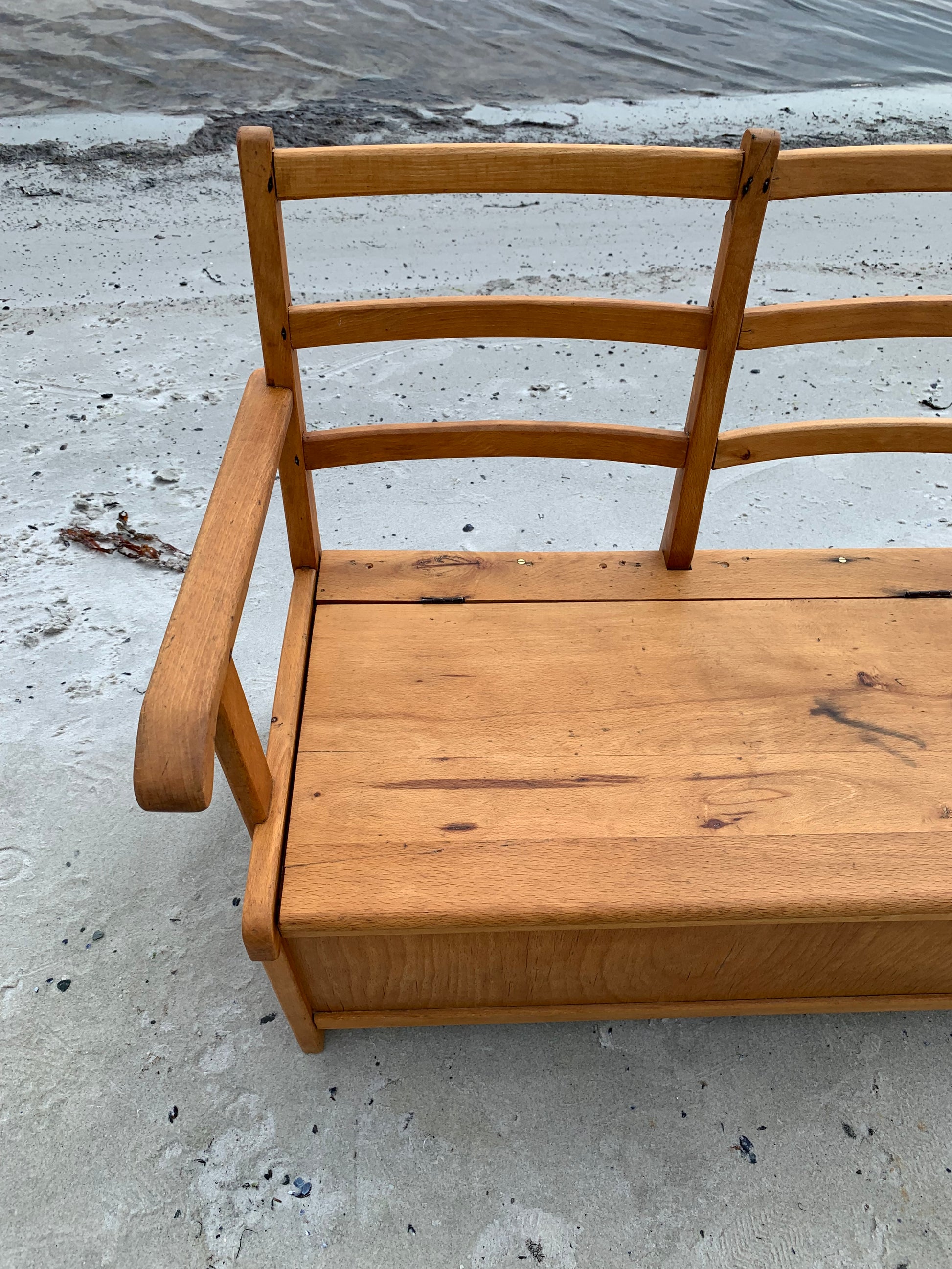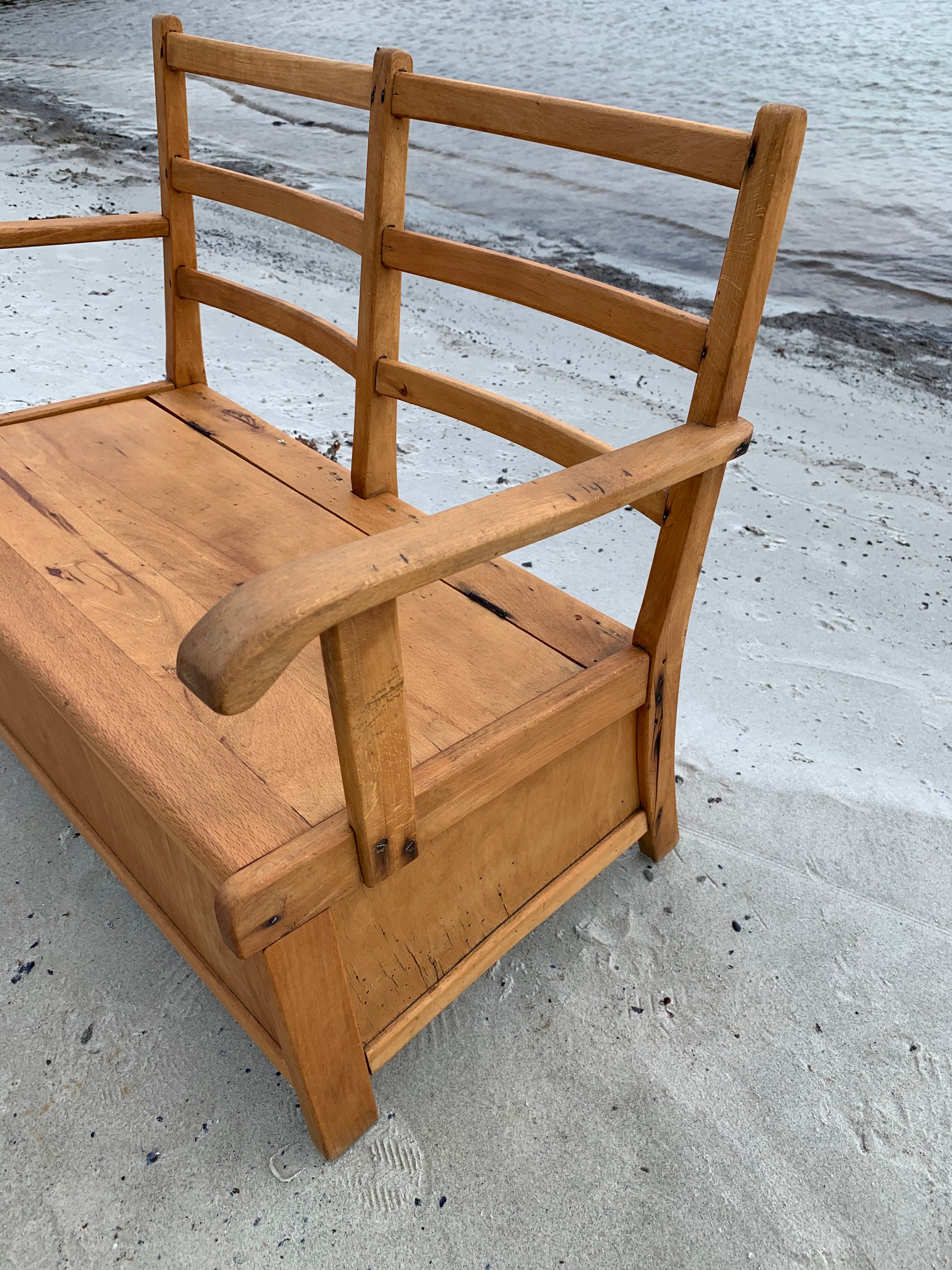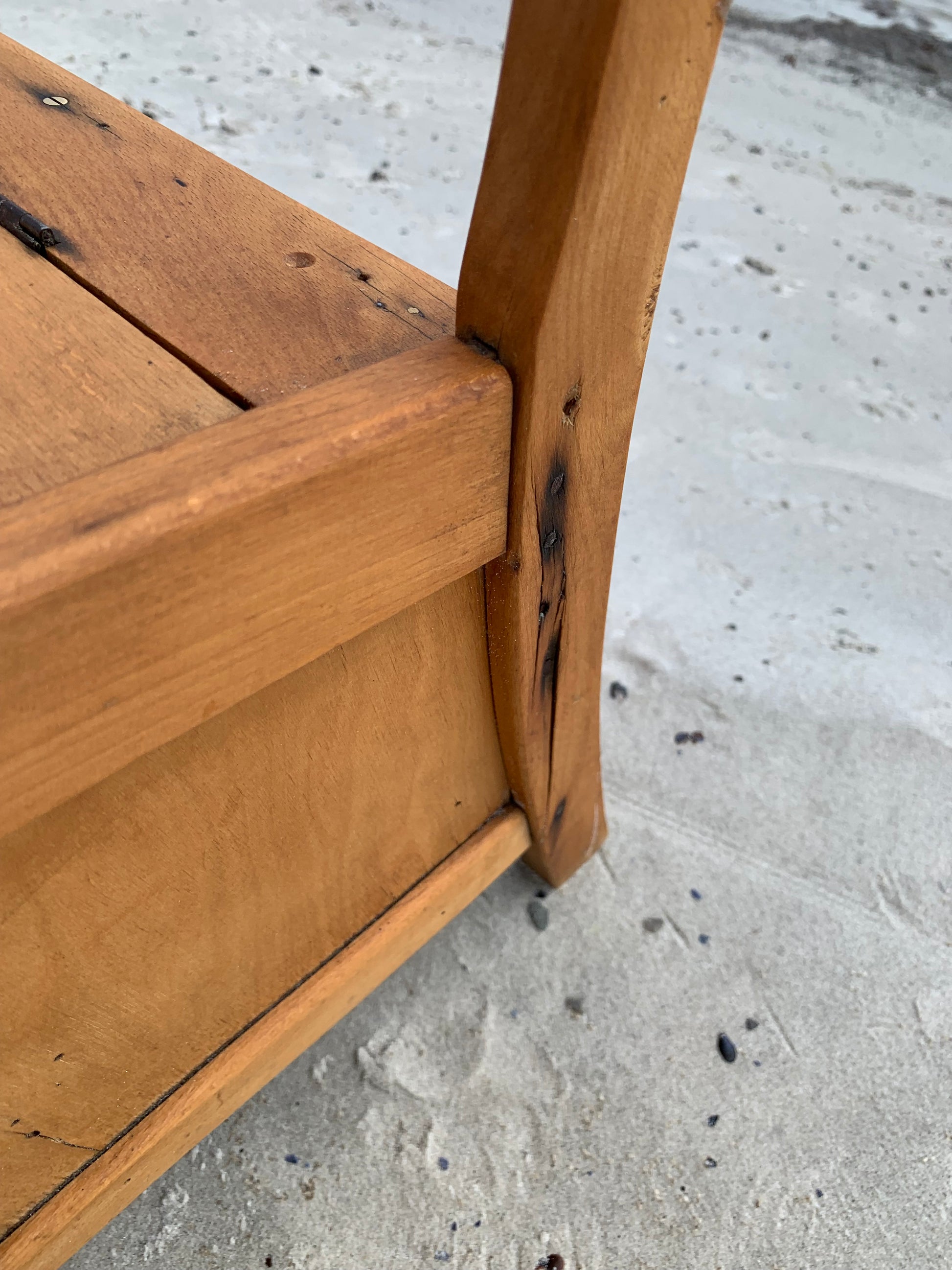 Die Bank selbst wirkt original. Sie wurde zudem leicht abgeschliffen und mit Wachs behandelt. Der Zahn der Zeit hat auf – für unseren Geschmack – sehr charmante Weise an ihr genagt. Sie hat genau den Look, den eine solche Bank haben sollte.