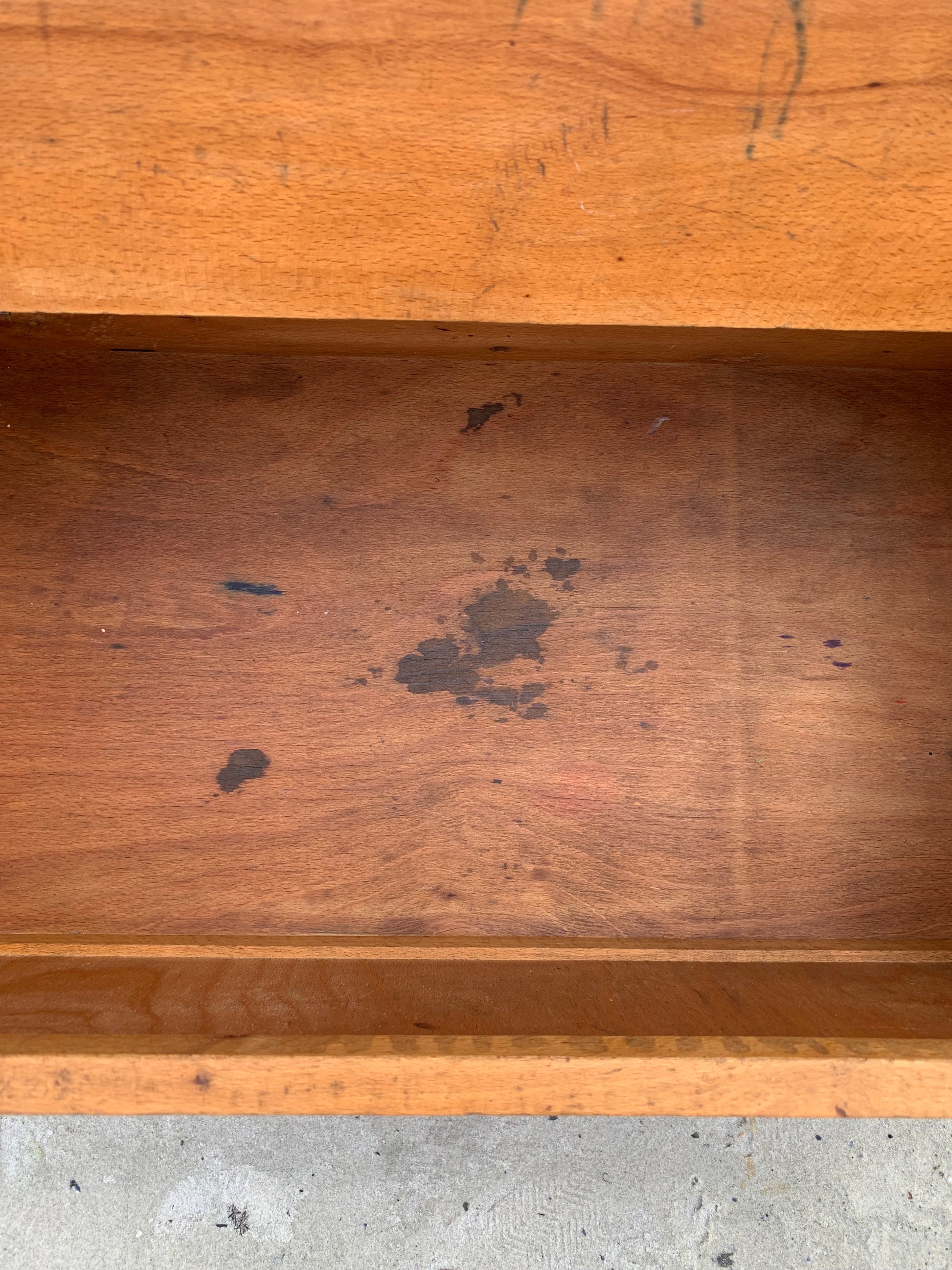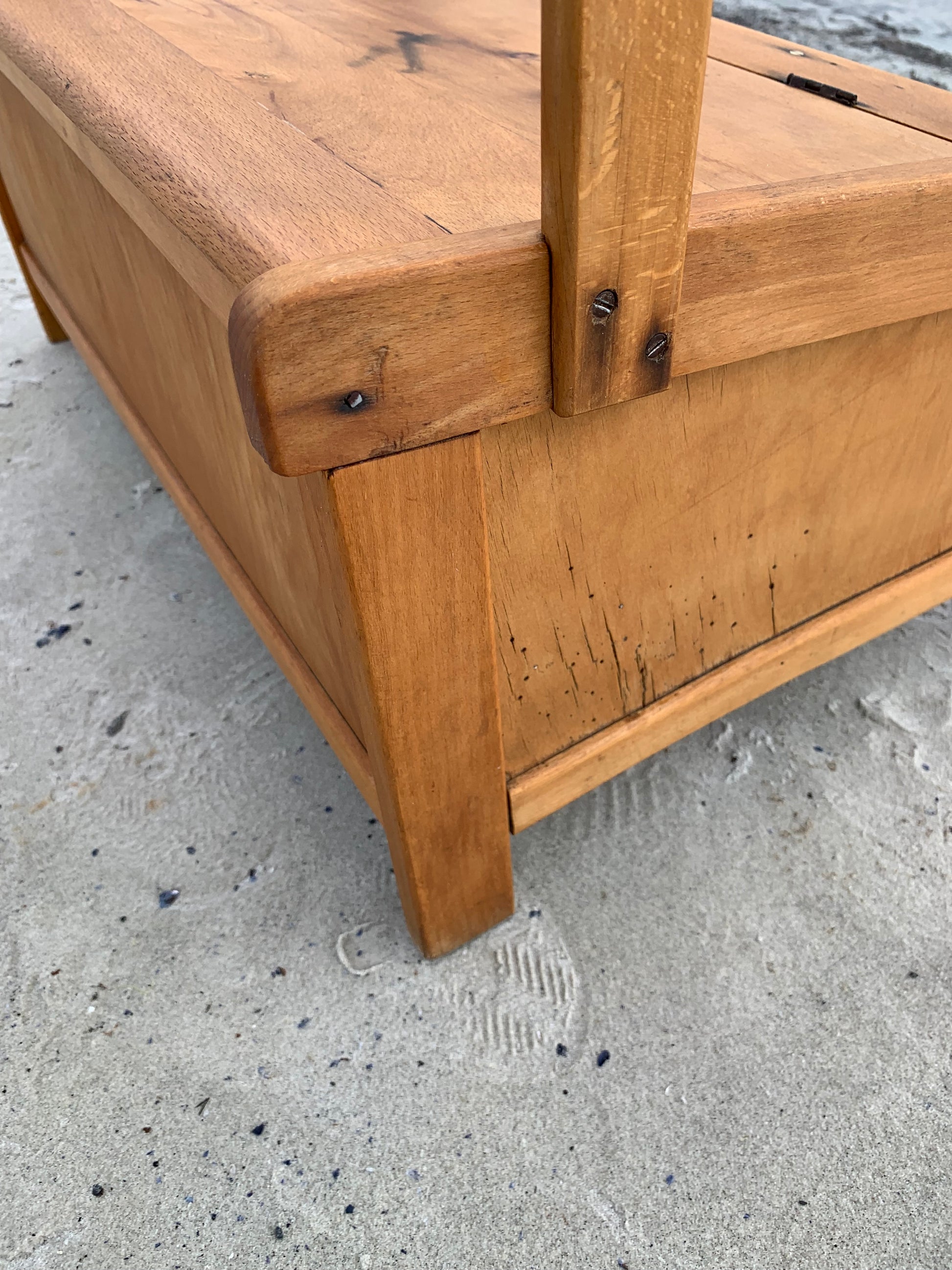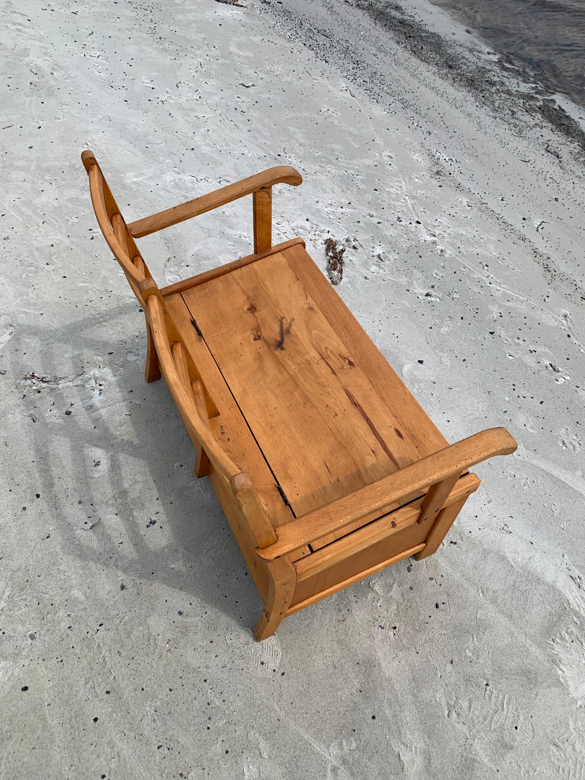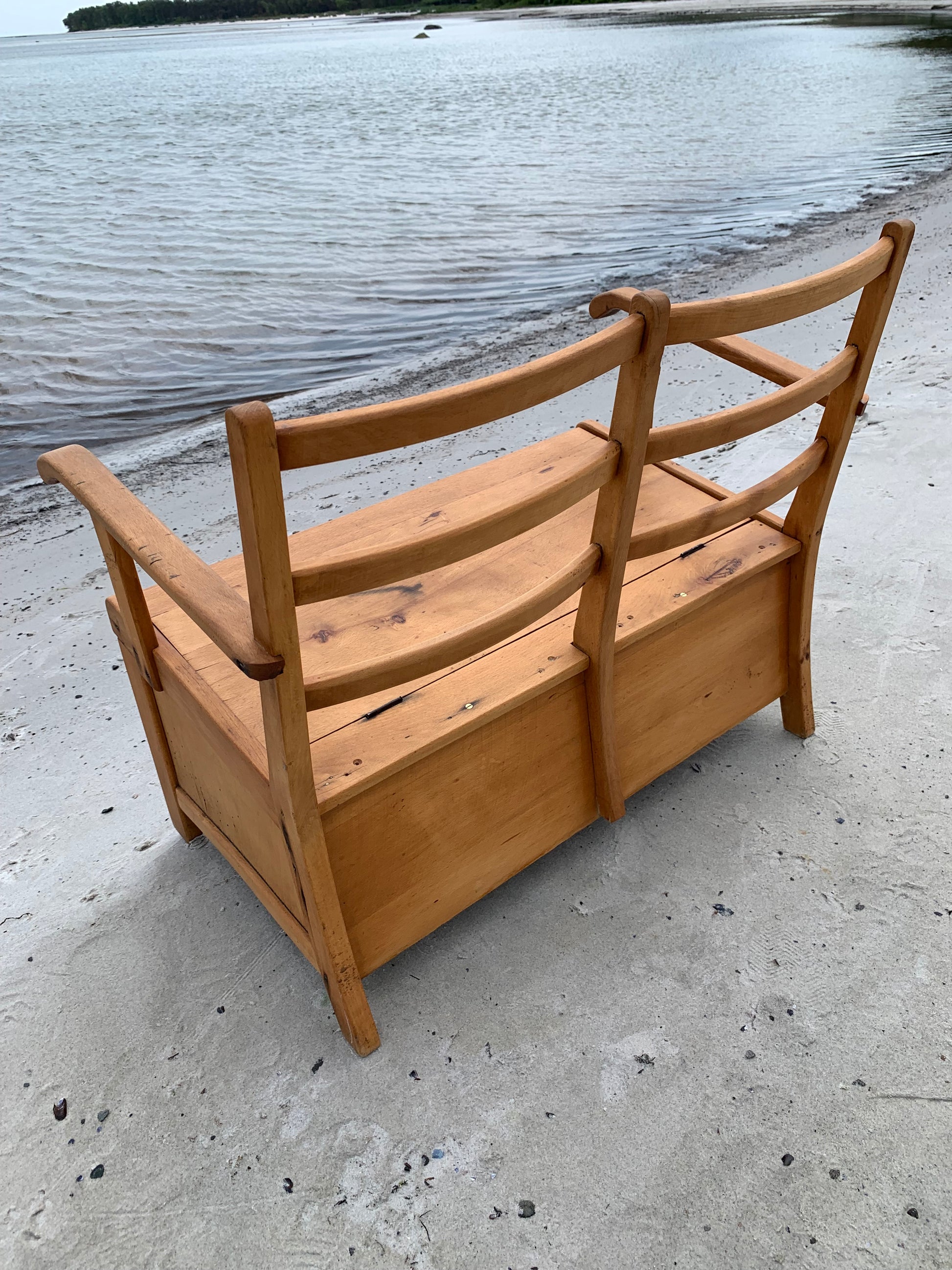 Die Bank selbst wirkt original. Sie wurde zudem leicht abgeschliffen und mit Wachs behandelt. Der Zahn der Zeit hat auf – für unseren Geschmack – sehr charmante Weise an ihr genagt. Sie hat genau den Look, den eine solche Bank haben sollte.