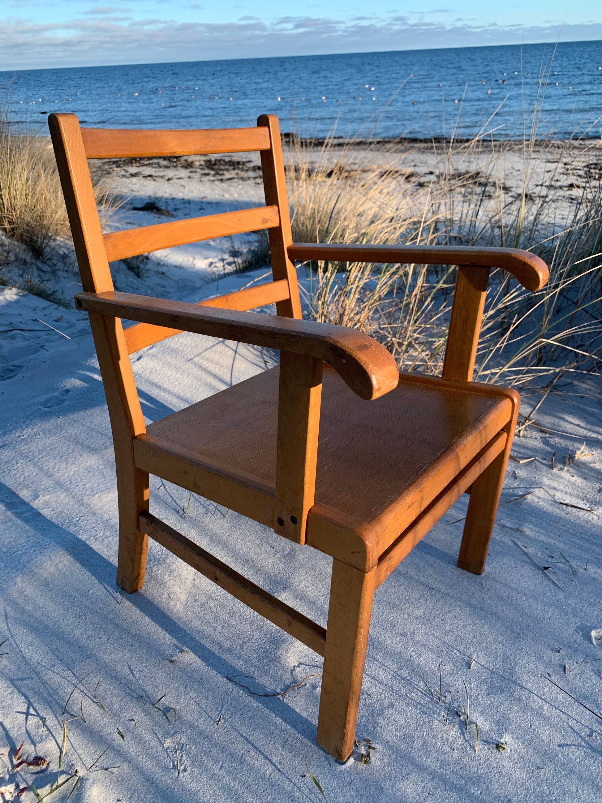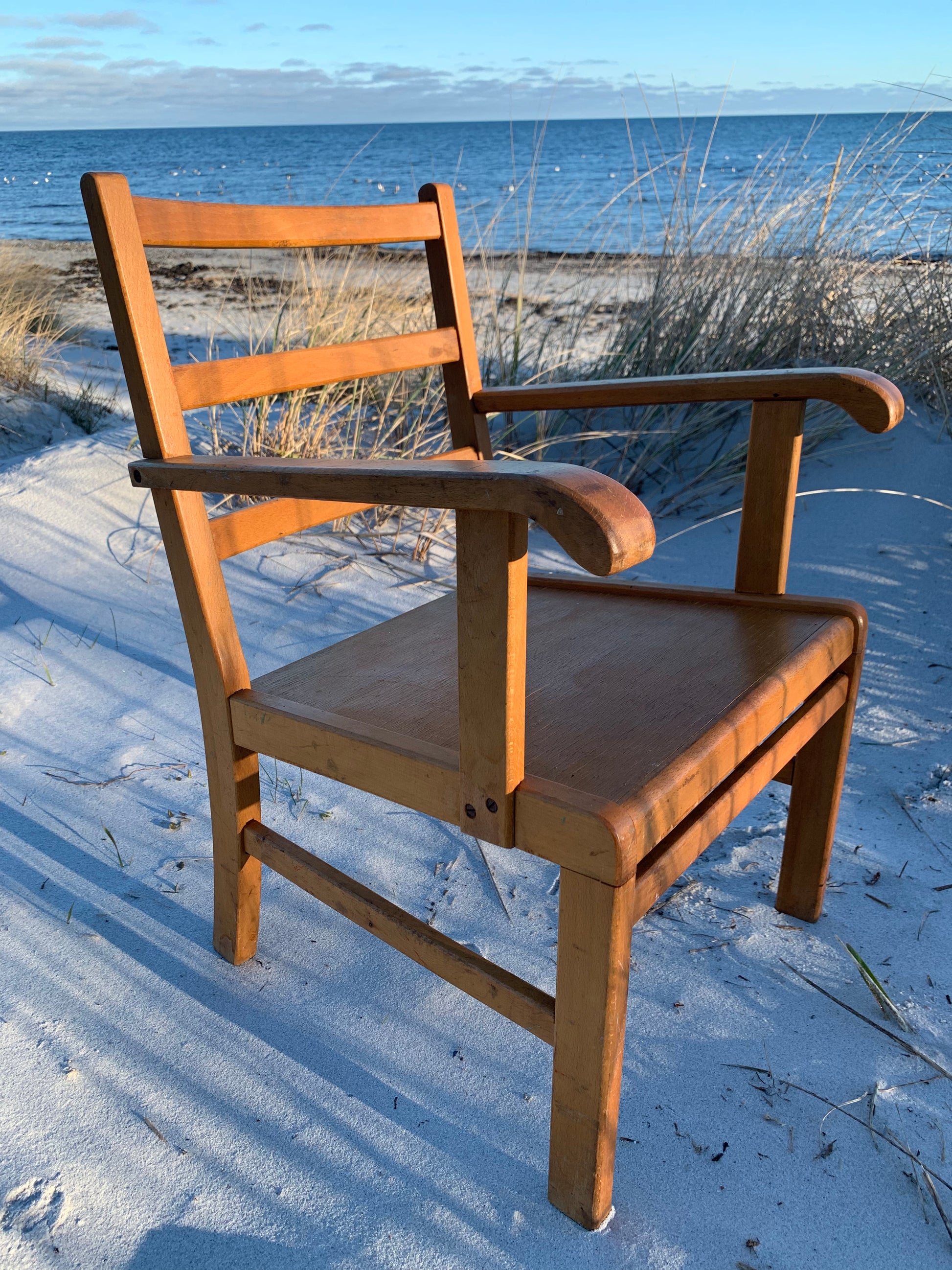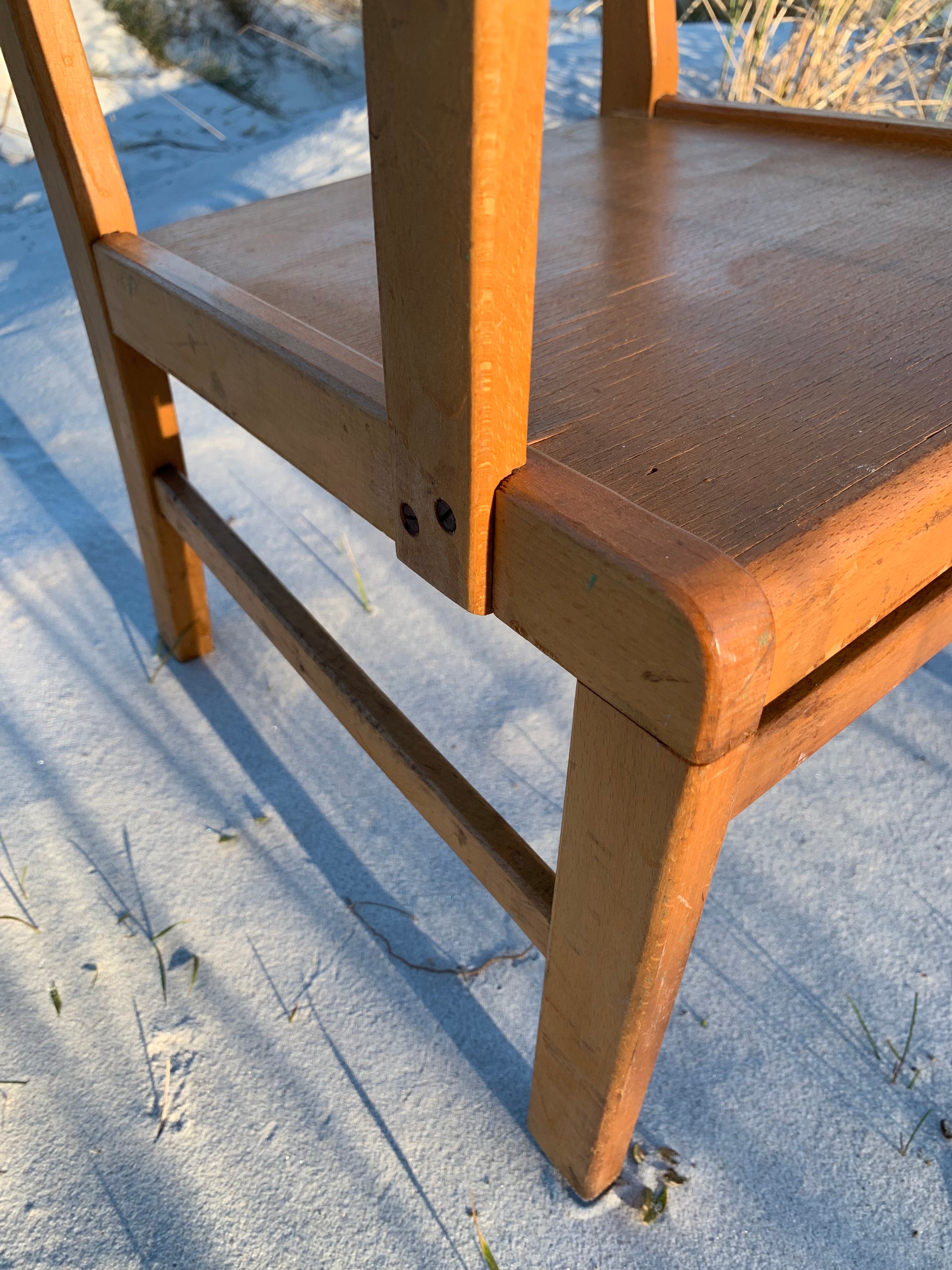 Dieser wunderschöne Kaare Klint Stuhl ist bei uns ein beliebter Klassiker. Nach schöneren Möbeln für Kinder muss man lange suchen, daher verstehen wir, dass sie sehr gefragt sind. Heute steht es ganz oben auf der Wunschliste vieler Innenarchitekten. Der Stuhl hat einige altersbedingte Gebrauchsspuren, ist aber insgesamt in einem guten Vintage-Zustand.