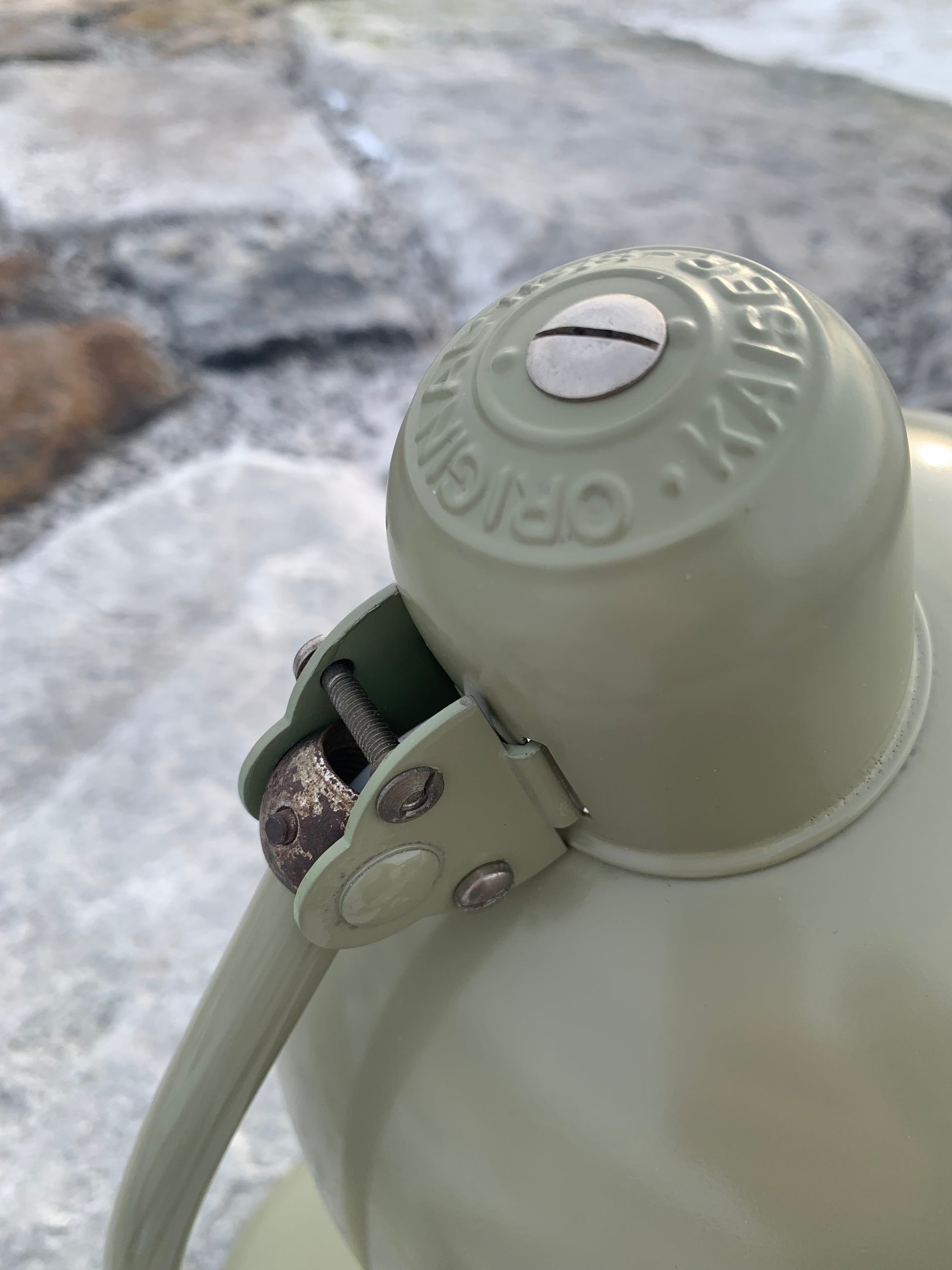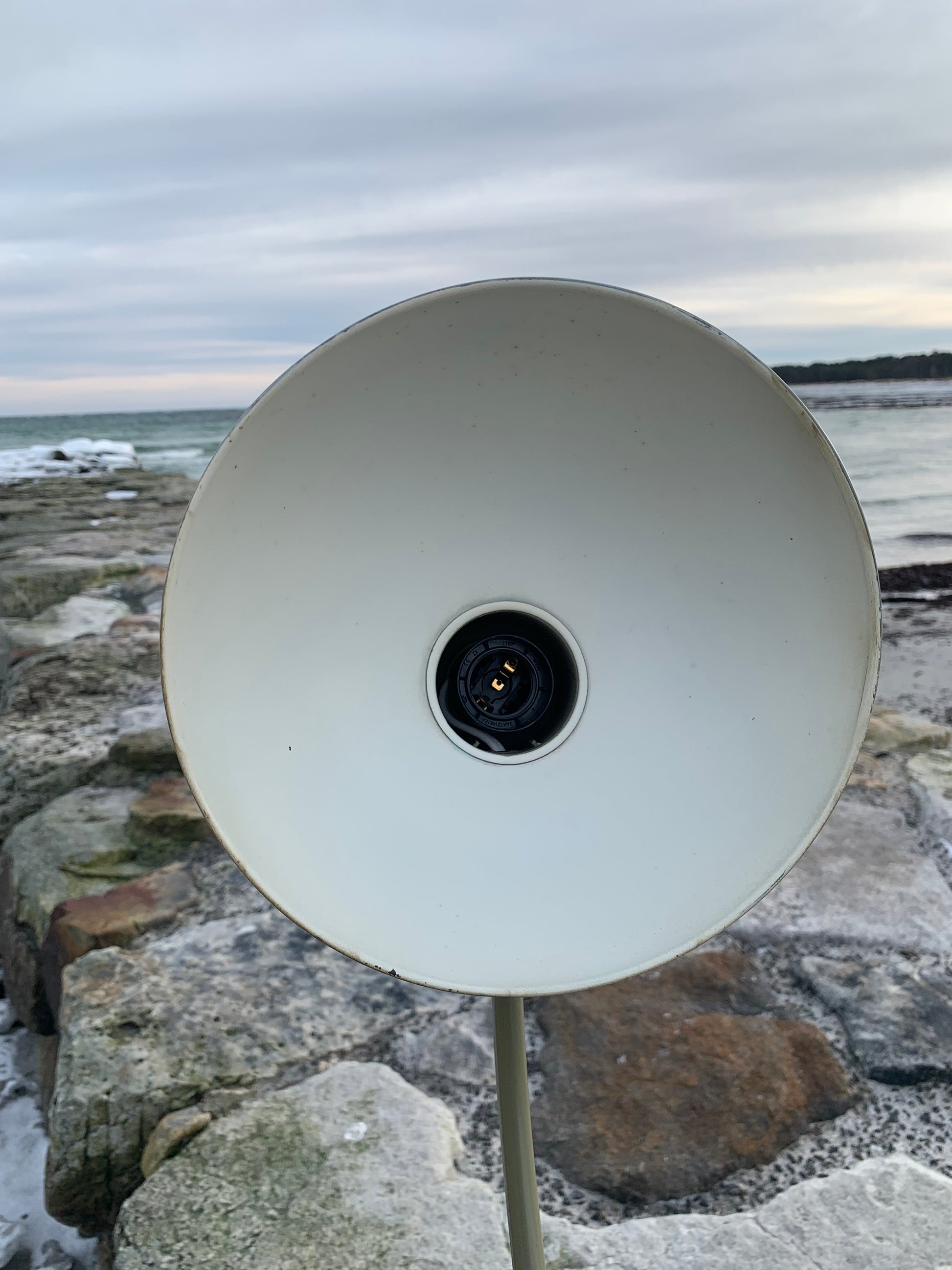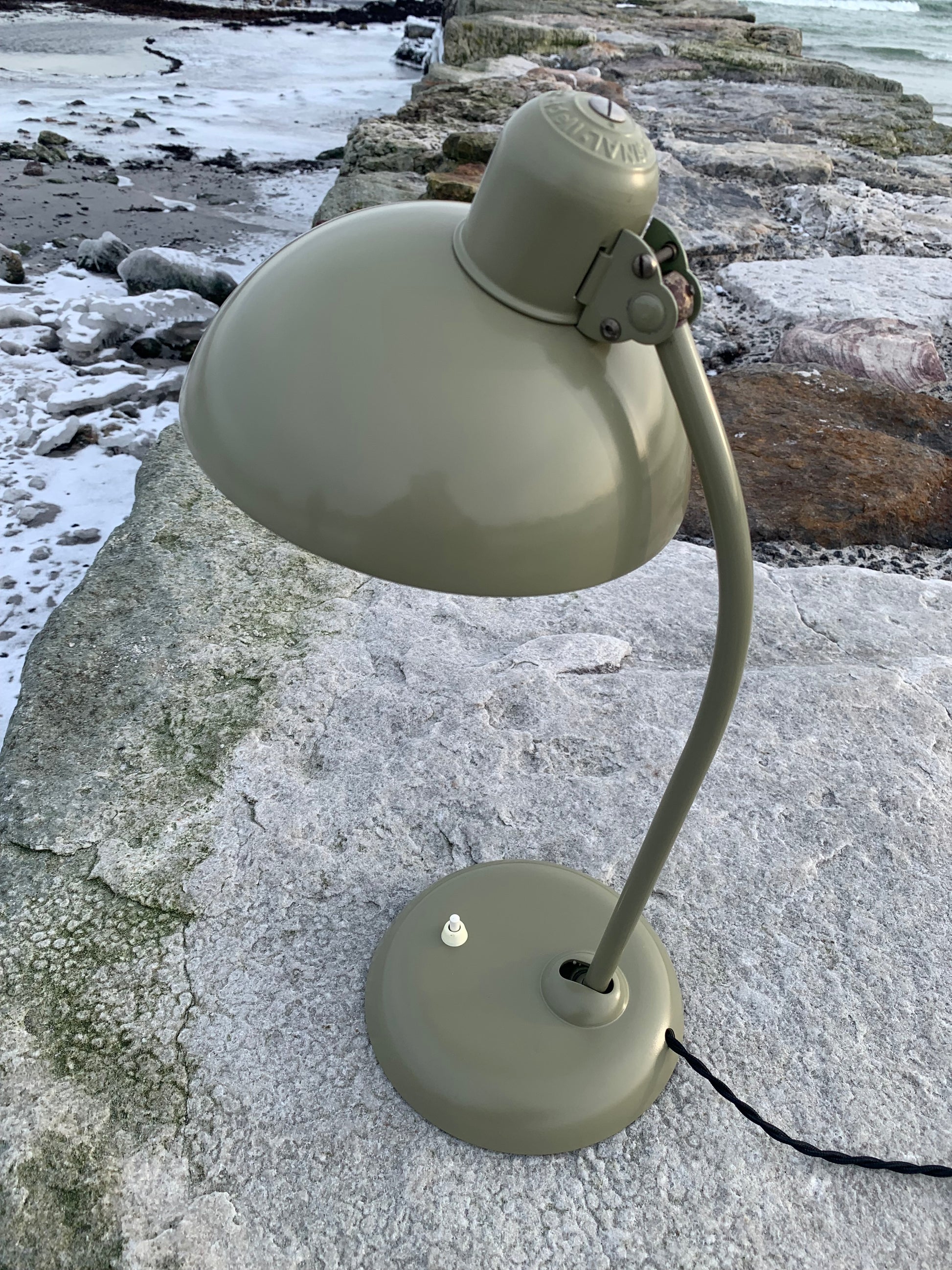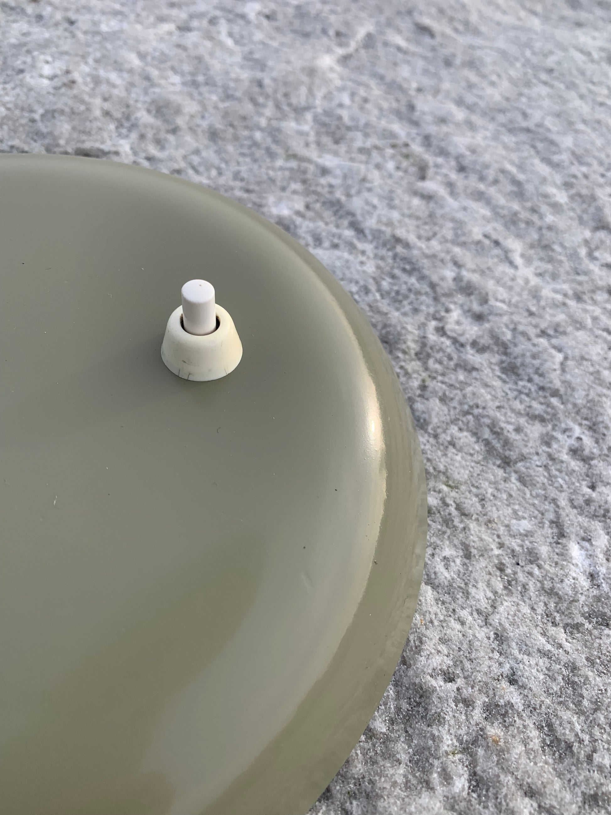 Dieses Exemplar wurde sorgfältig restauriert und präsentiert sich mit neuem Lack und neuer Verkabelung. Trotz der Restaurierung hat die Vintage-Lampe ihren Charme bewahrt. Man erkennt noch immer die charmanten Gebrauchsspuren, die eine solche Lampe (unserer Meinung nach) auch haben sollte.
