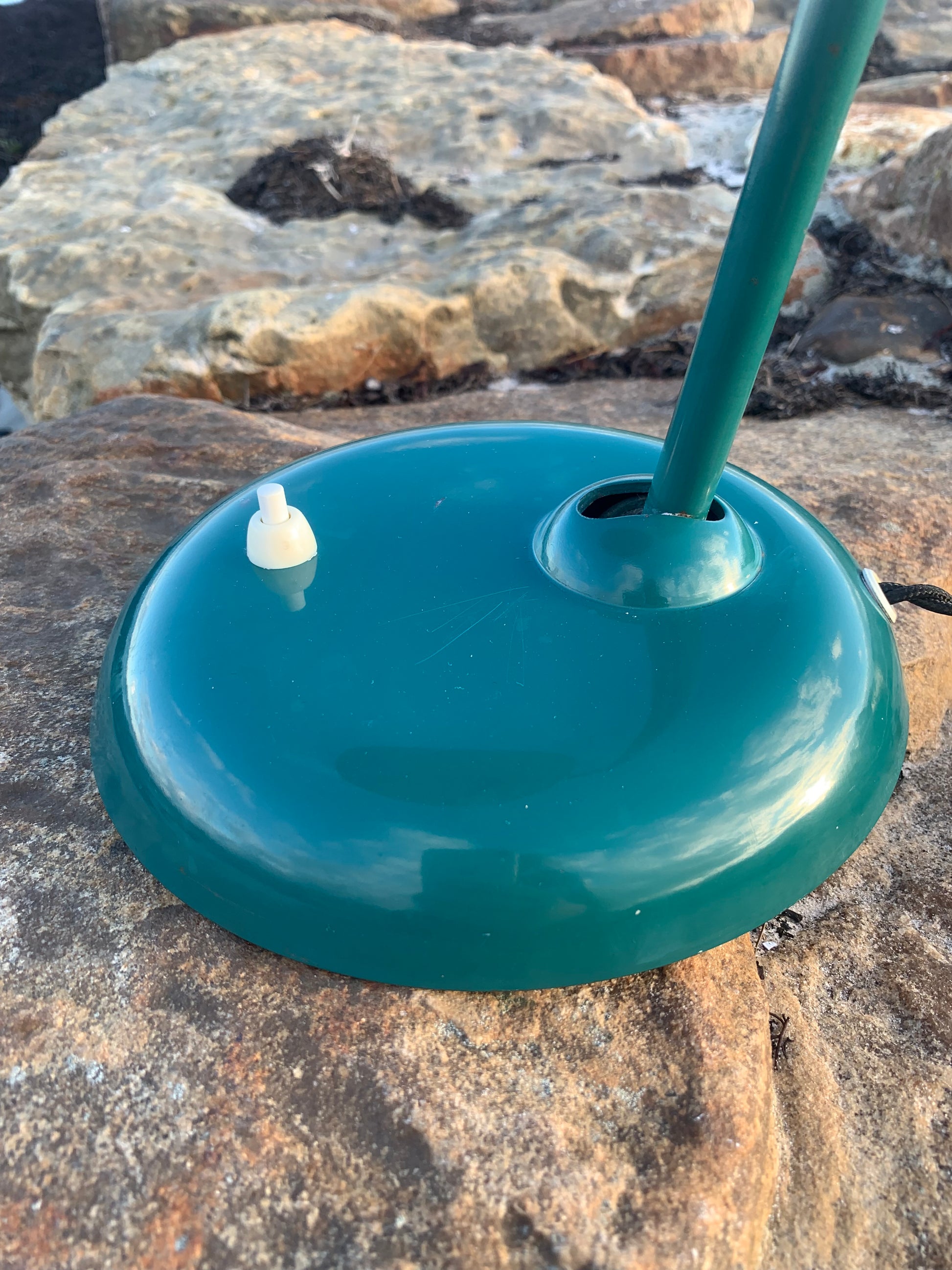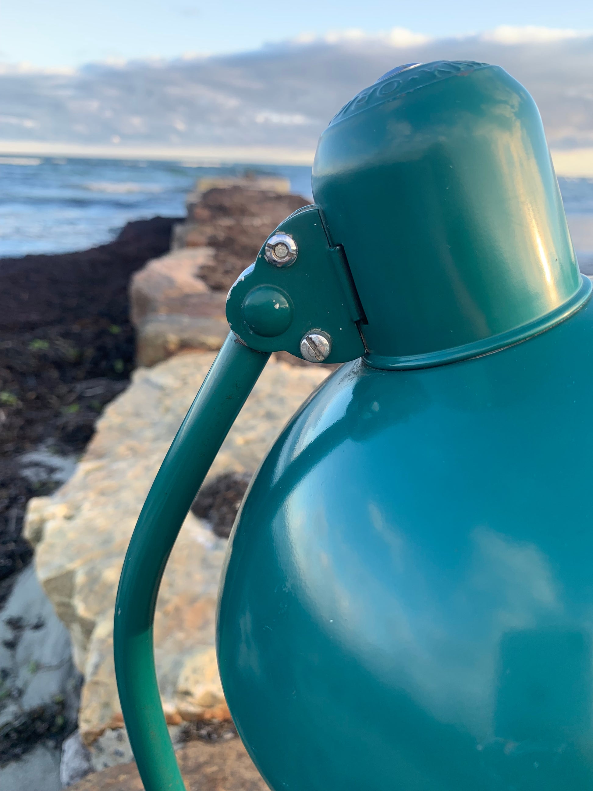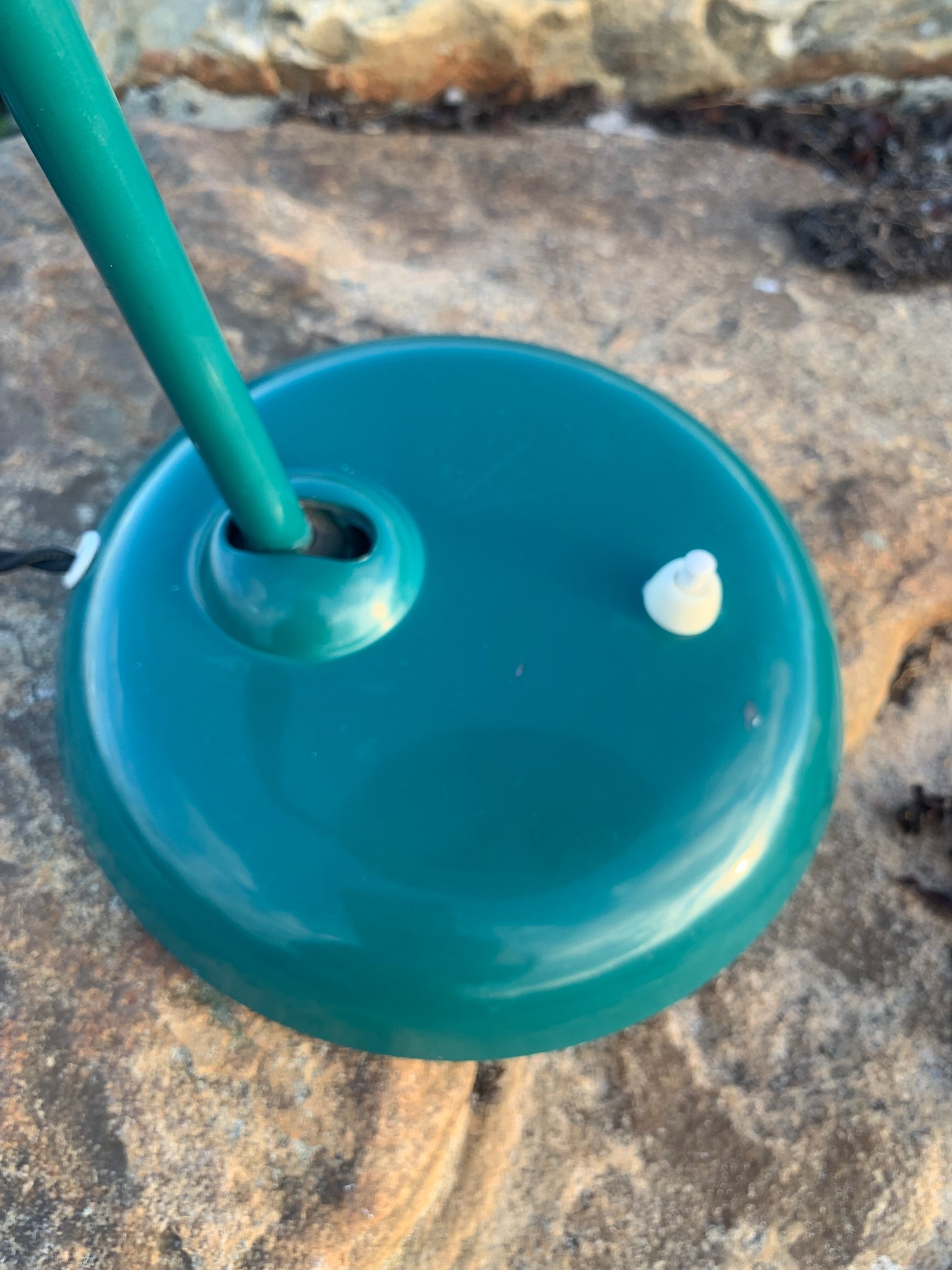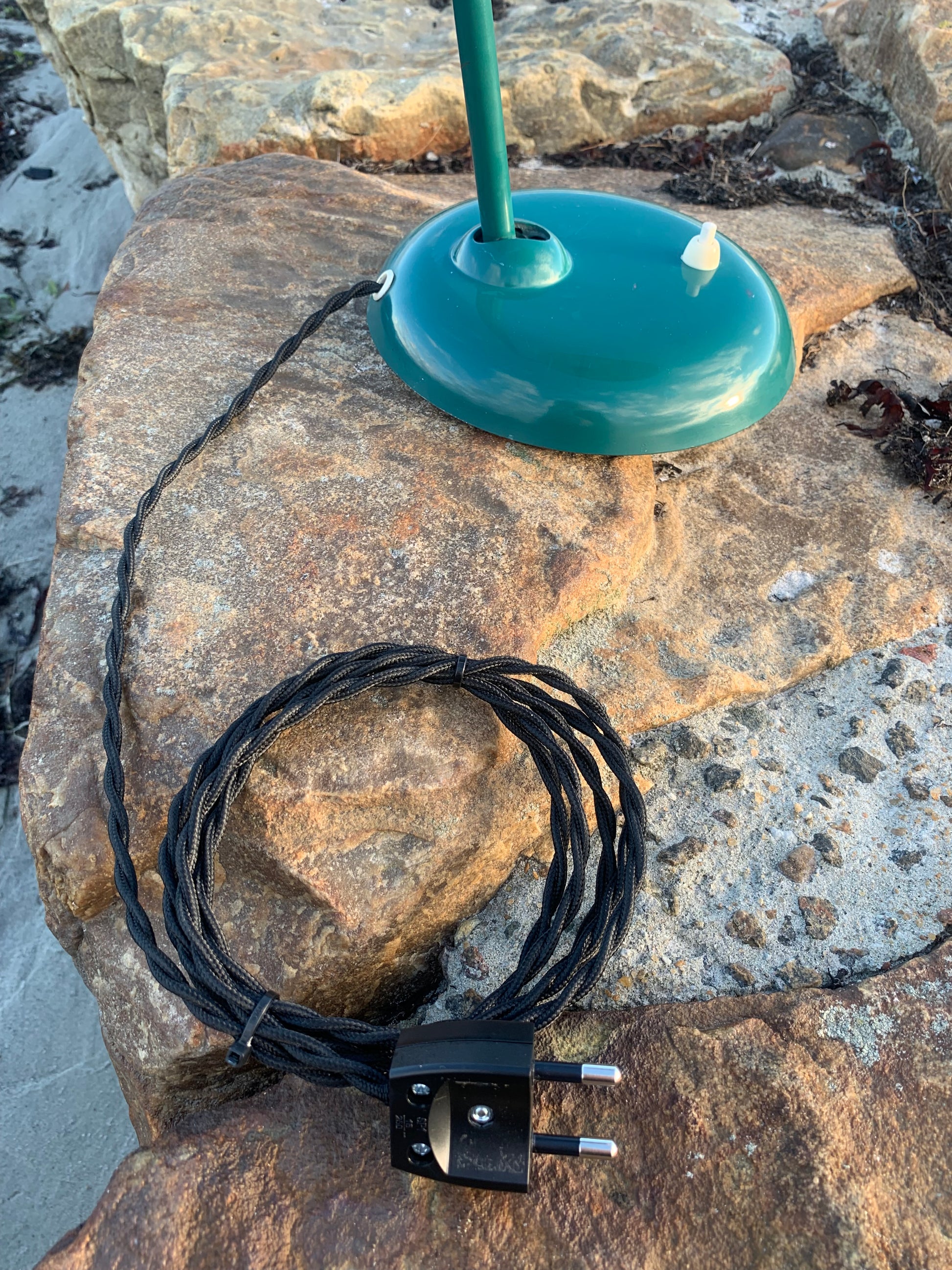 Dieses Exemplar erscheint mit der Originallackierung und neuen Kabeln. Die Lampe weist ein paar altersbedingte Gebrauchsspuren auf, die eine solche Lampe (unserer Meinung nach) fast haben müsste.