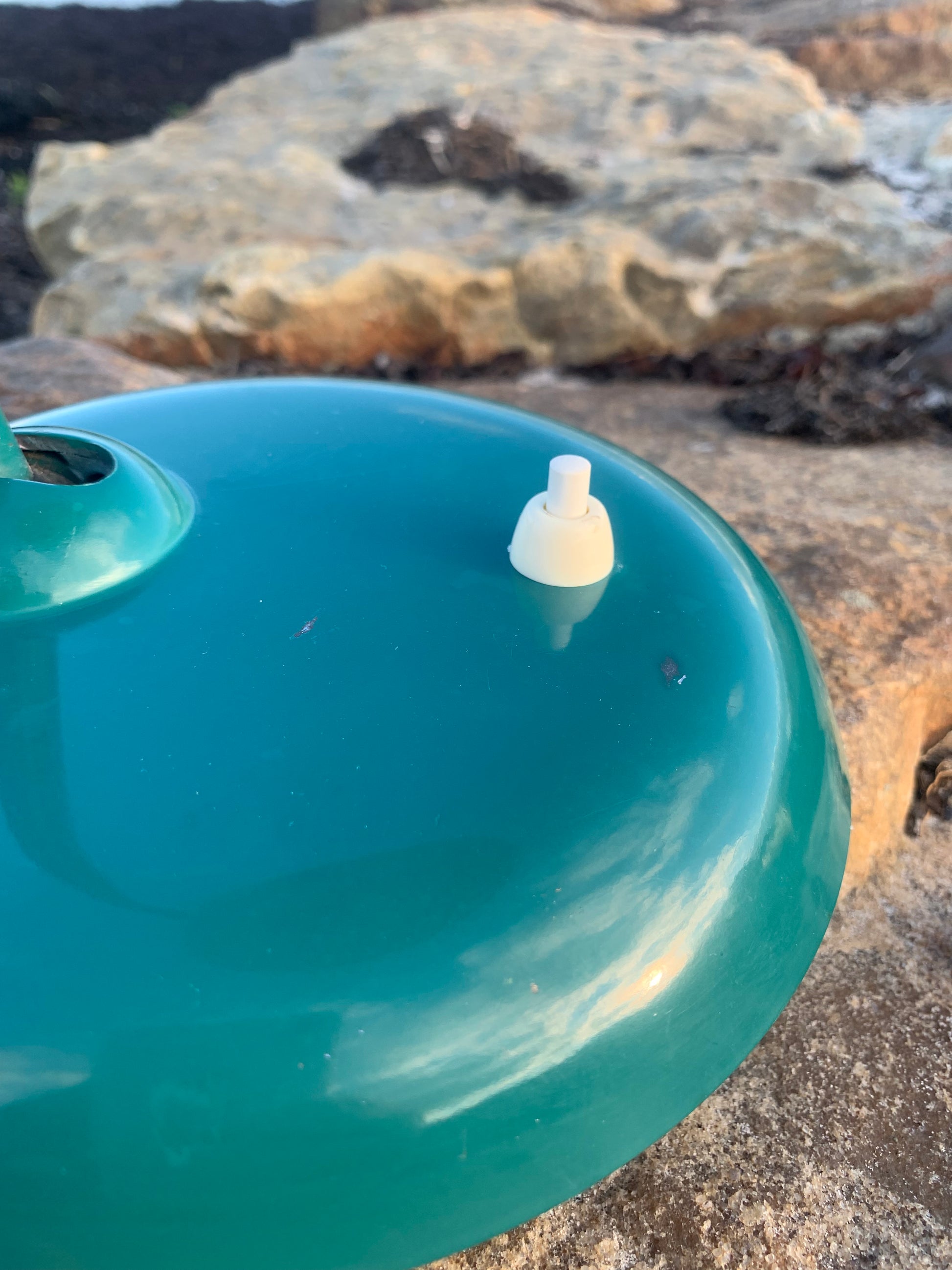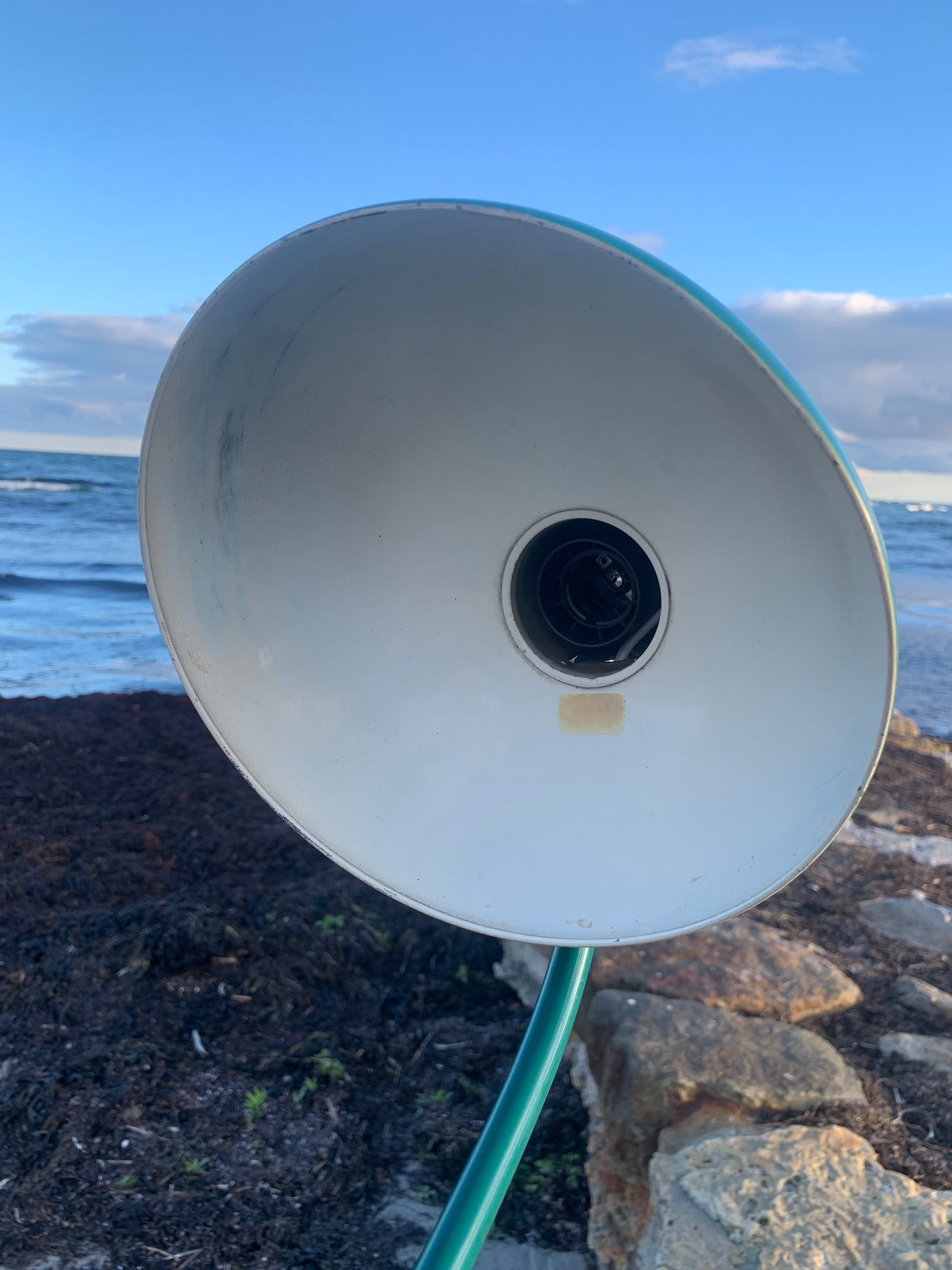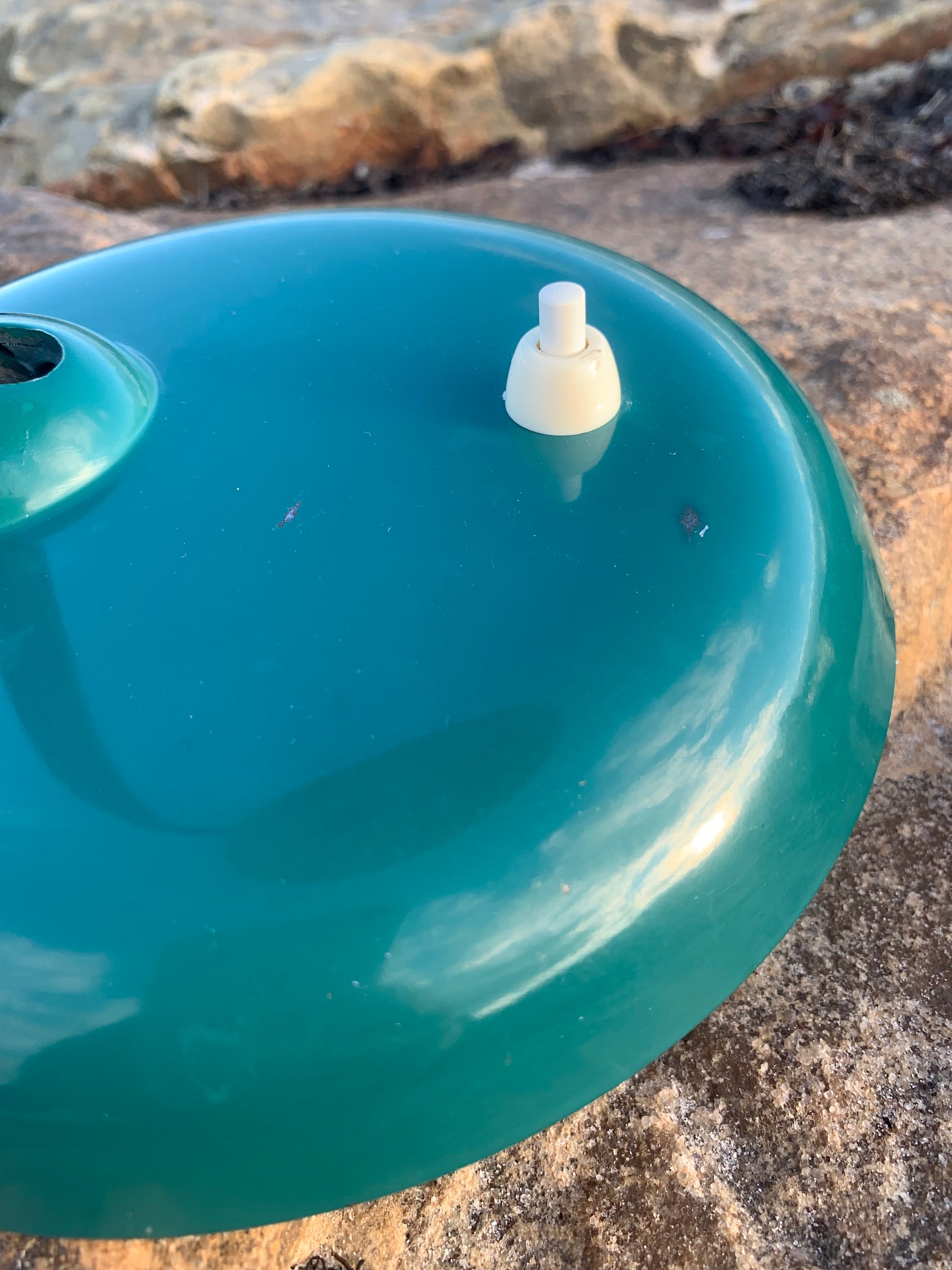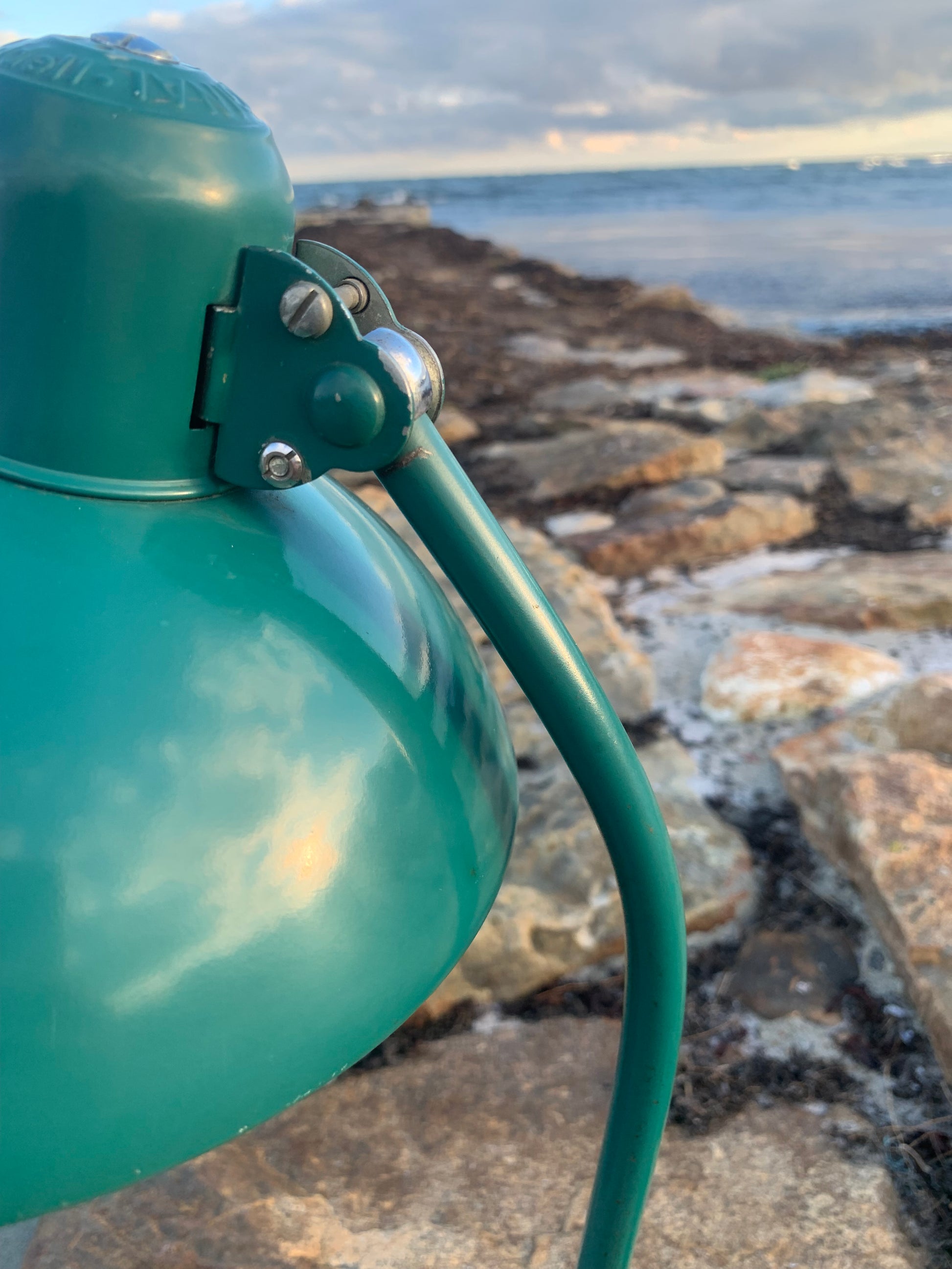 Dieses Exemplar erscheint mit der Originallackierung und neuen Kabeln. Die Lampe weist ein paar altersbedingte Gebrauchsspuren auf, die eine solche Lampe (unserer Meinung nach) fast haben müsste.