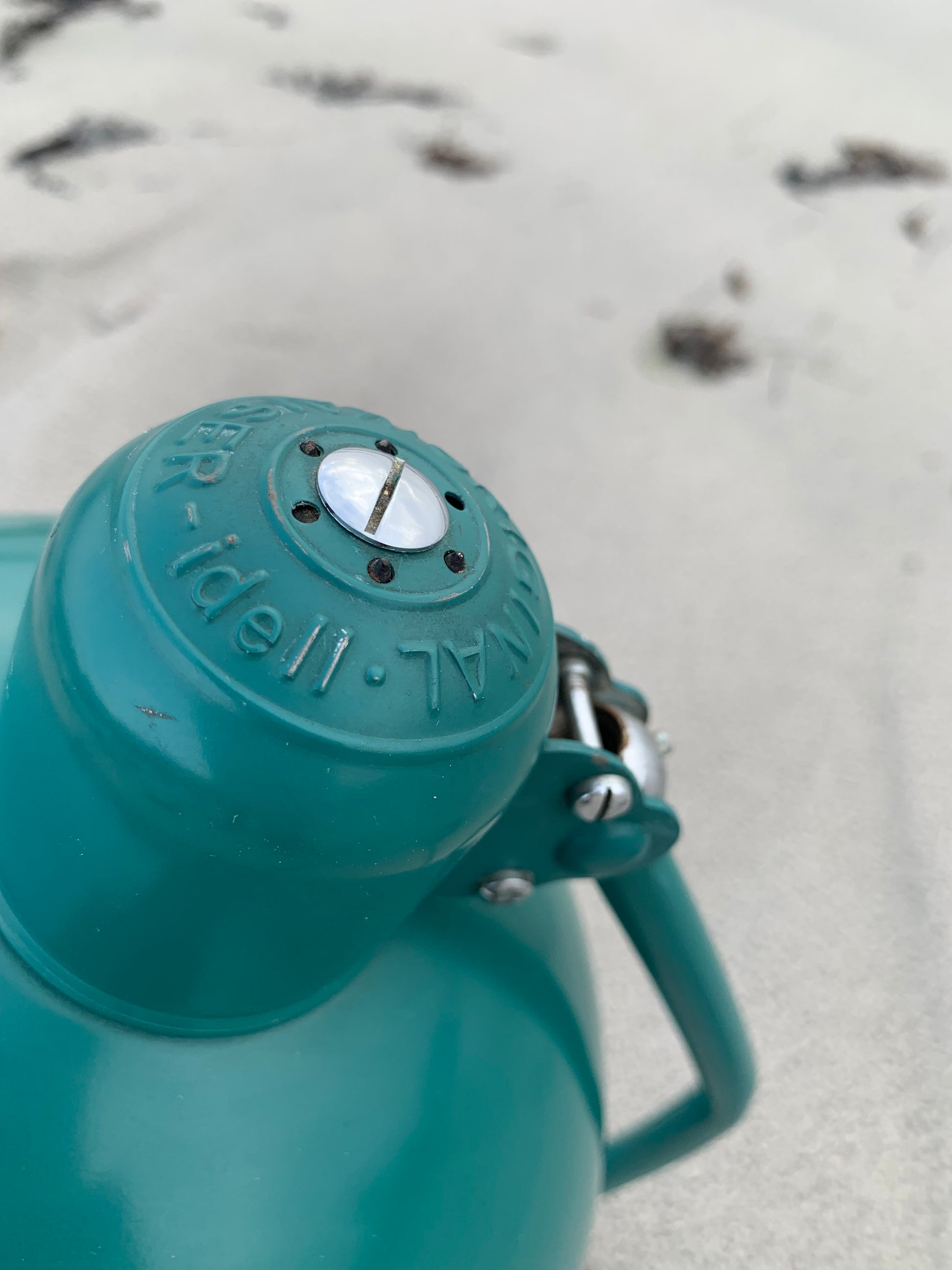 Dieses Exemplar besitzt noch den Originallack und neue Kabel. Die Lampe weist altersbedingte Gebrauchsspuren auf, die bei einer solchen Lampe (unserer Meinung nach) üblich sind.