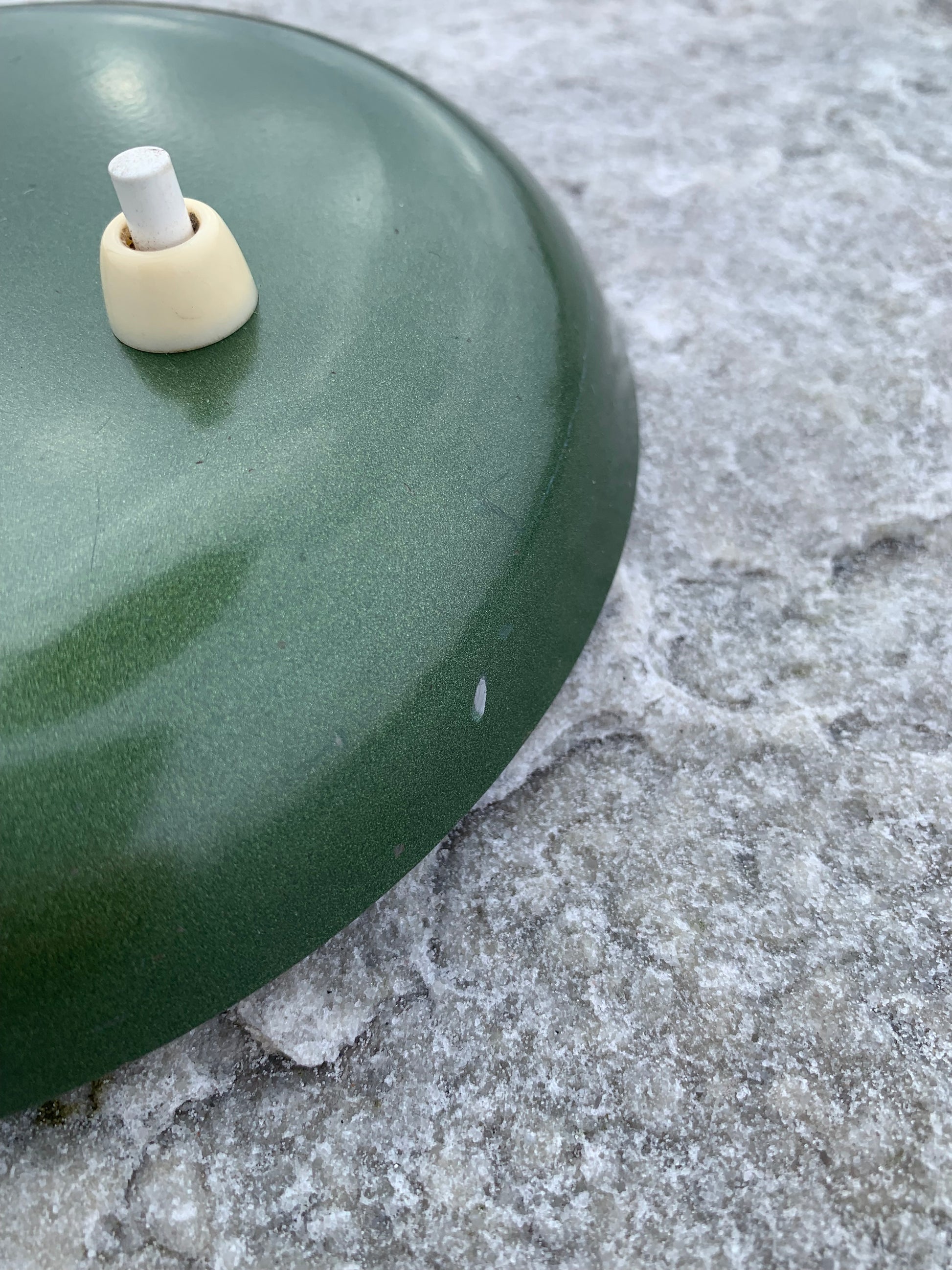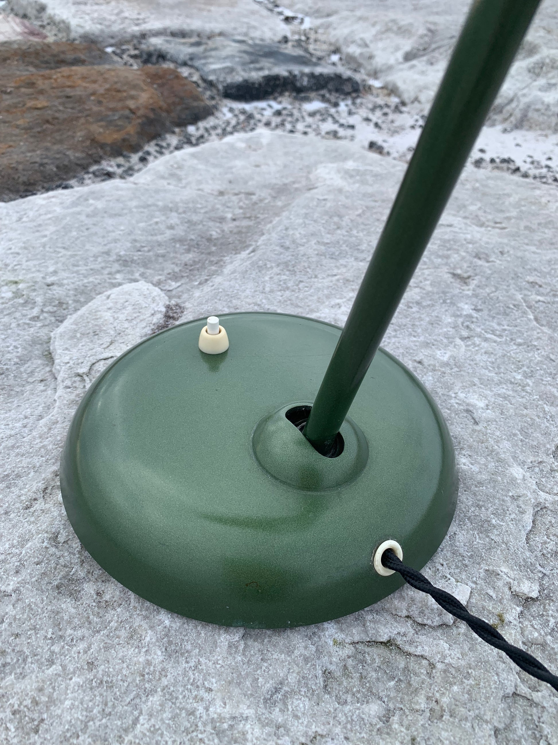 Dieses Exemplar besitzt noch den Originallack und neue Kabel. Die Lampe weist altersbedingte Gebrauchsspuren auf, die bei einer solchen Lampe (unserer Meinung nach) üblich sind.
