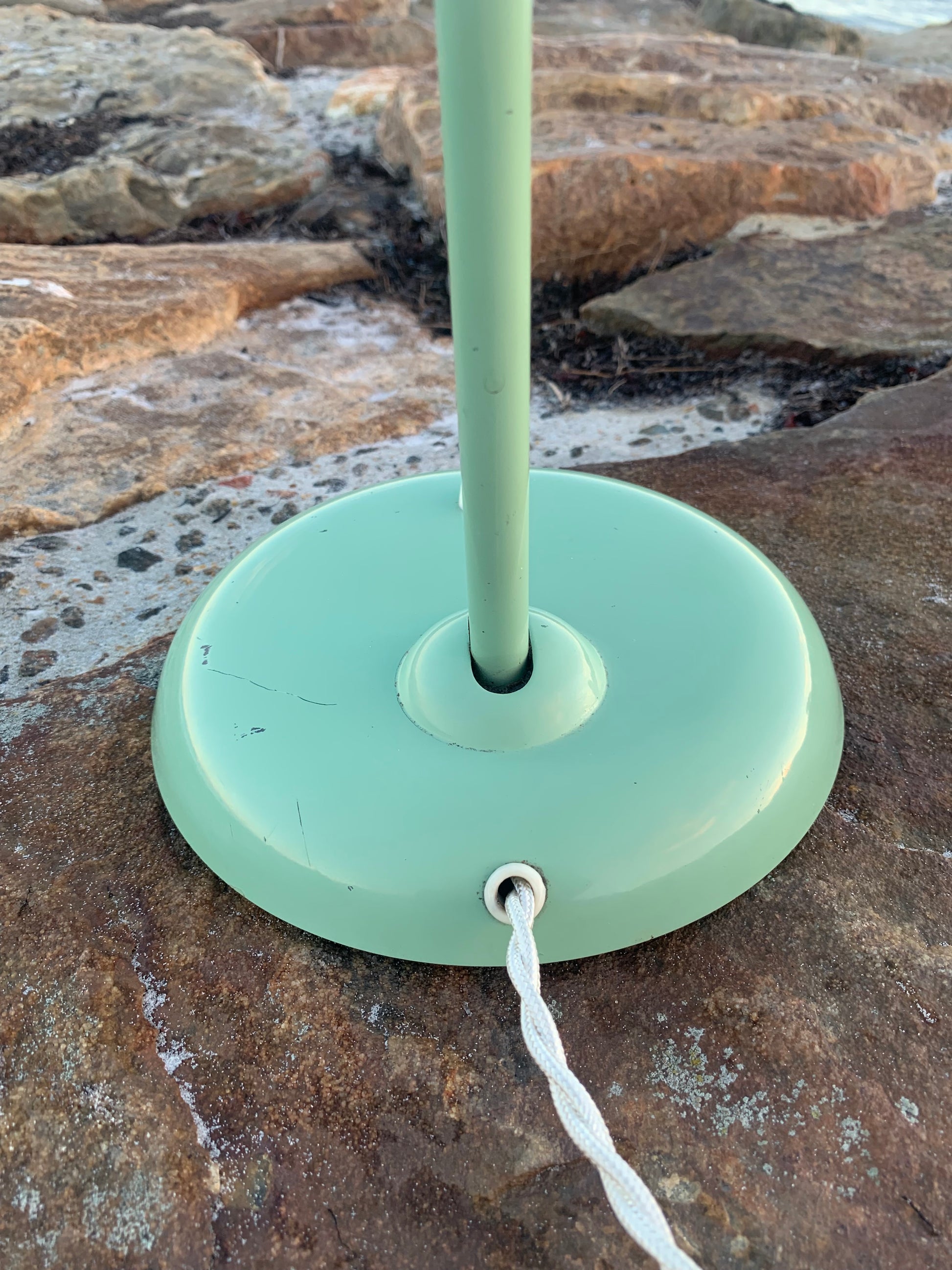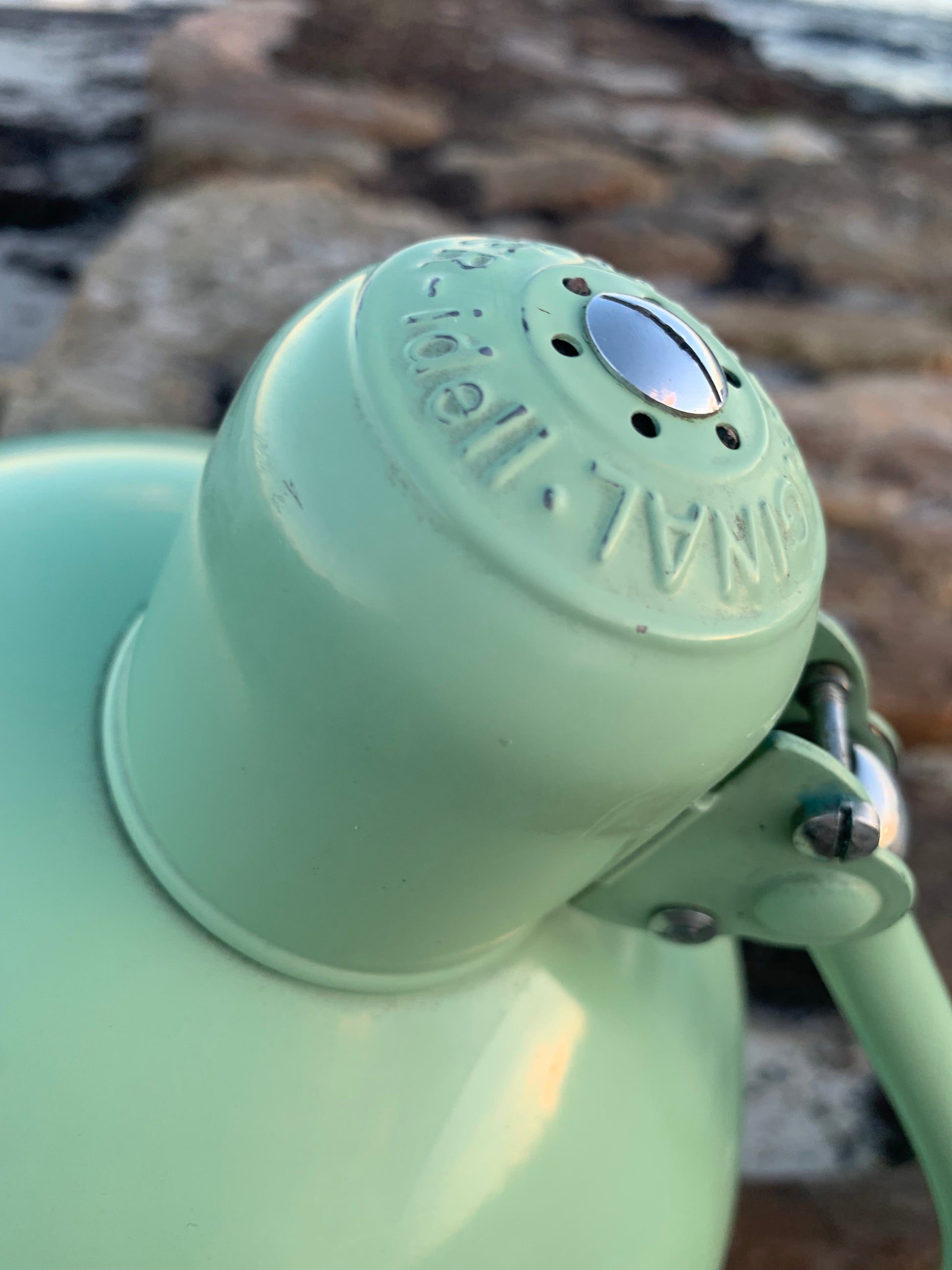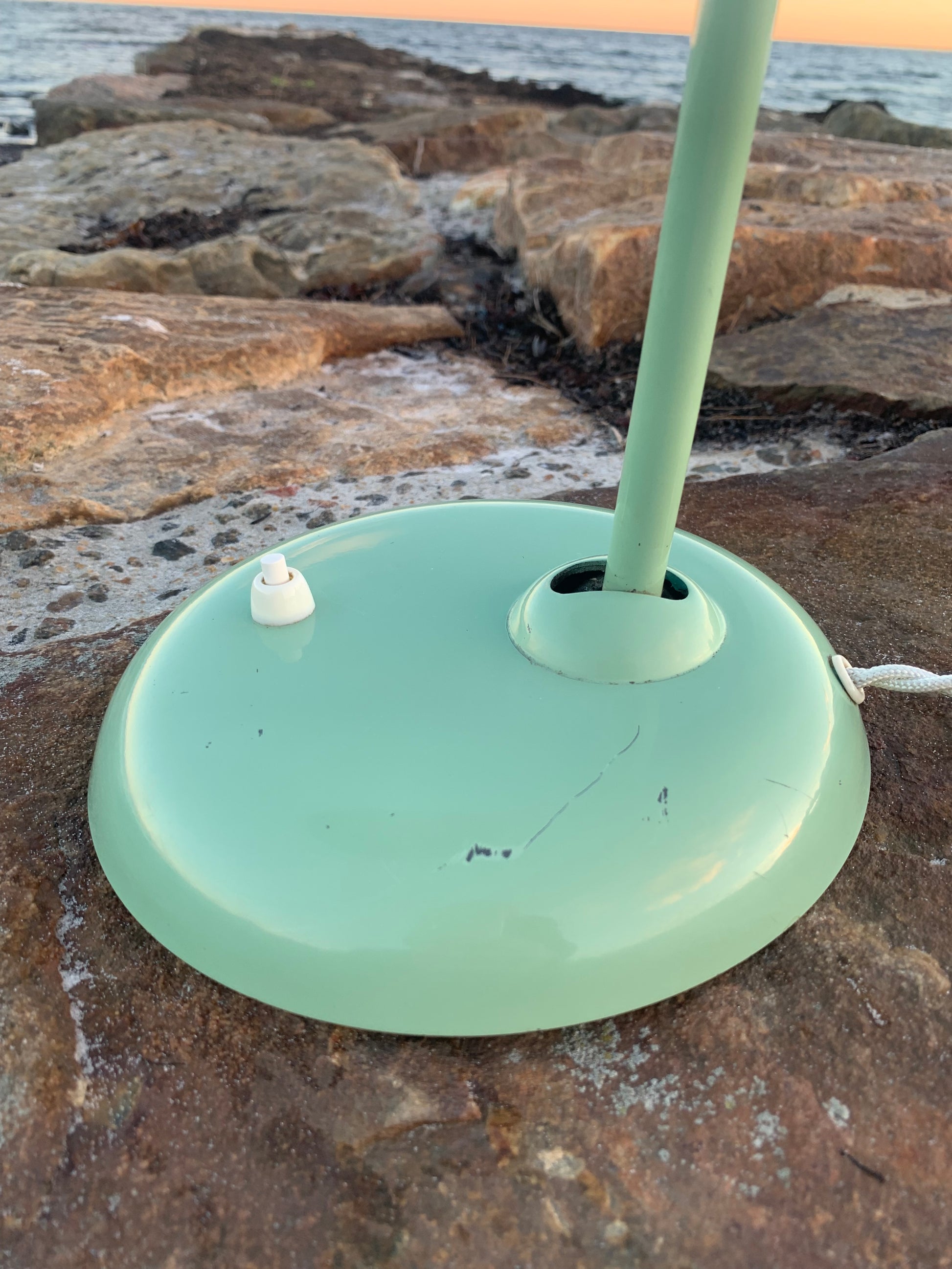 Dieses Exemplar erscheint mit der Originallackierung und neuen Kabeln. Die Lampe weist altersbedingte Gebrauchsspuren auf, die eine solche Lampe (unserer Meinung nach) haben sollte. Sie richtet sich an diejenigen unter Ihnen, die das Perfekte im Unperfekten sehen.