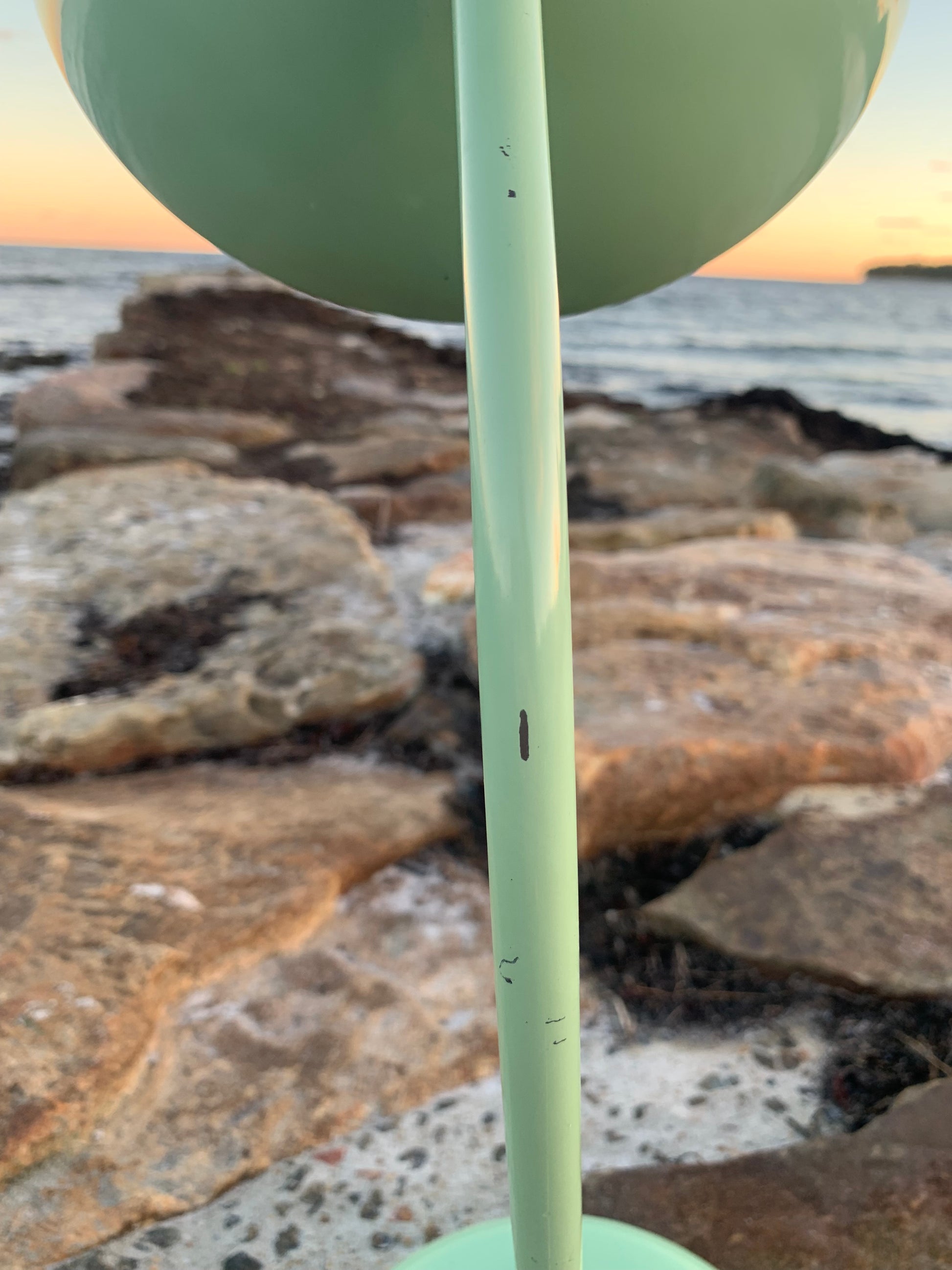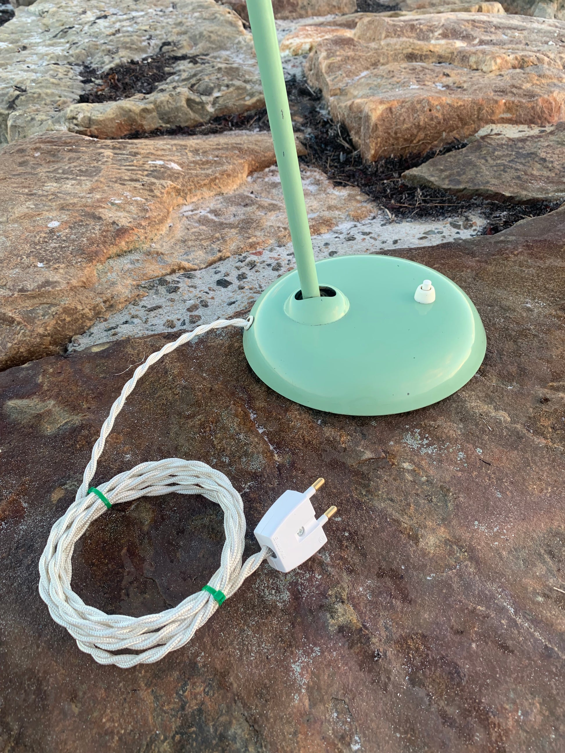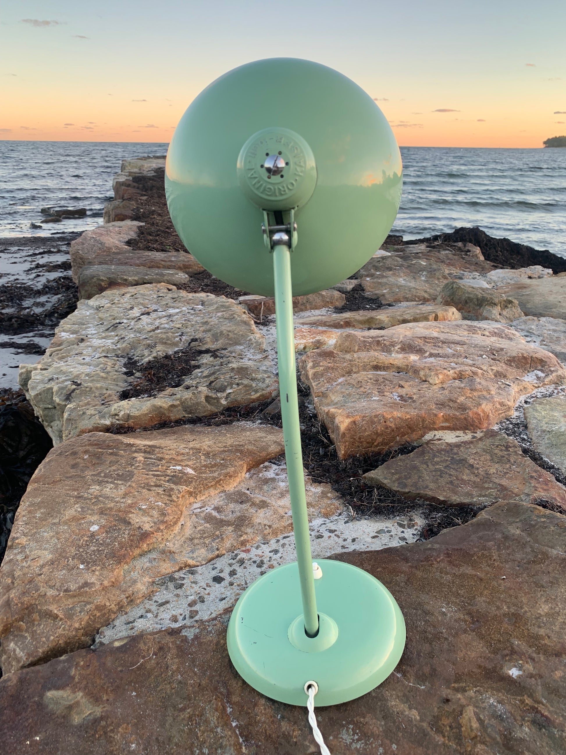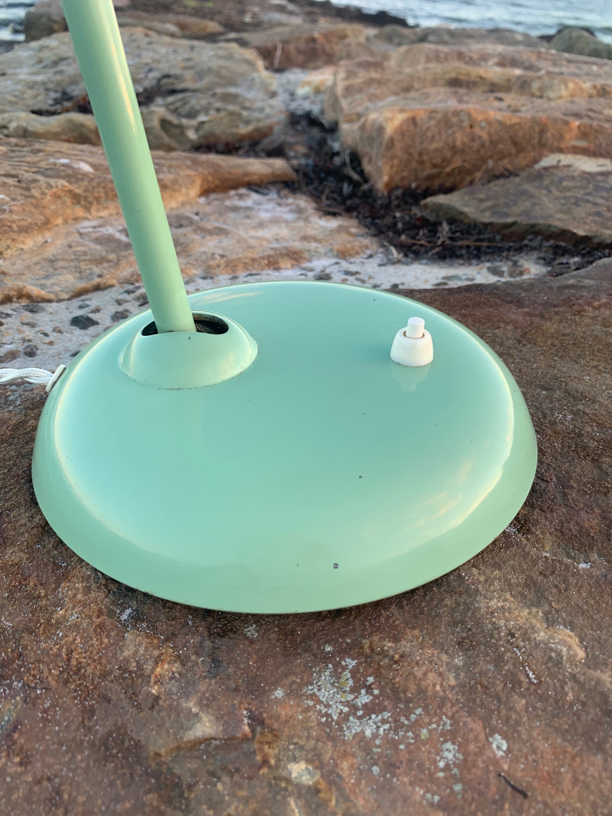 Dieses Exemplar erscheint mit der Originallackierung und neuen Kabeln. Die Lampe weist altersbedingte Gebrauchsspuren auf, die eine solche Lampe (unserer Meinung nach) haben sollte. Sie richtet sich an diejenigen unter Ihnen, die das Perfekte im Unperfekten sehen.