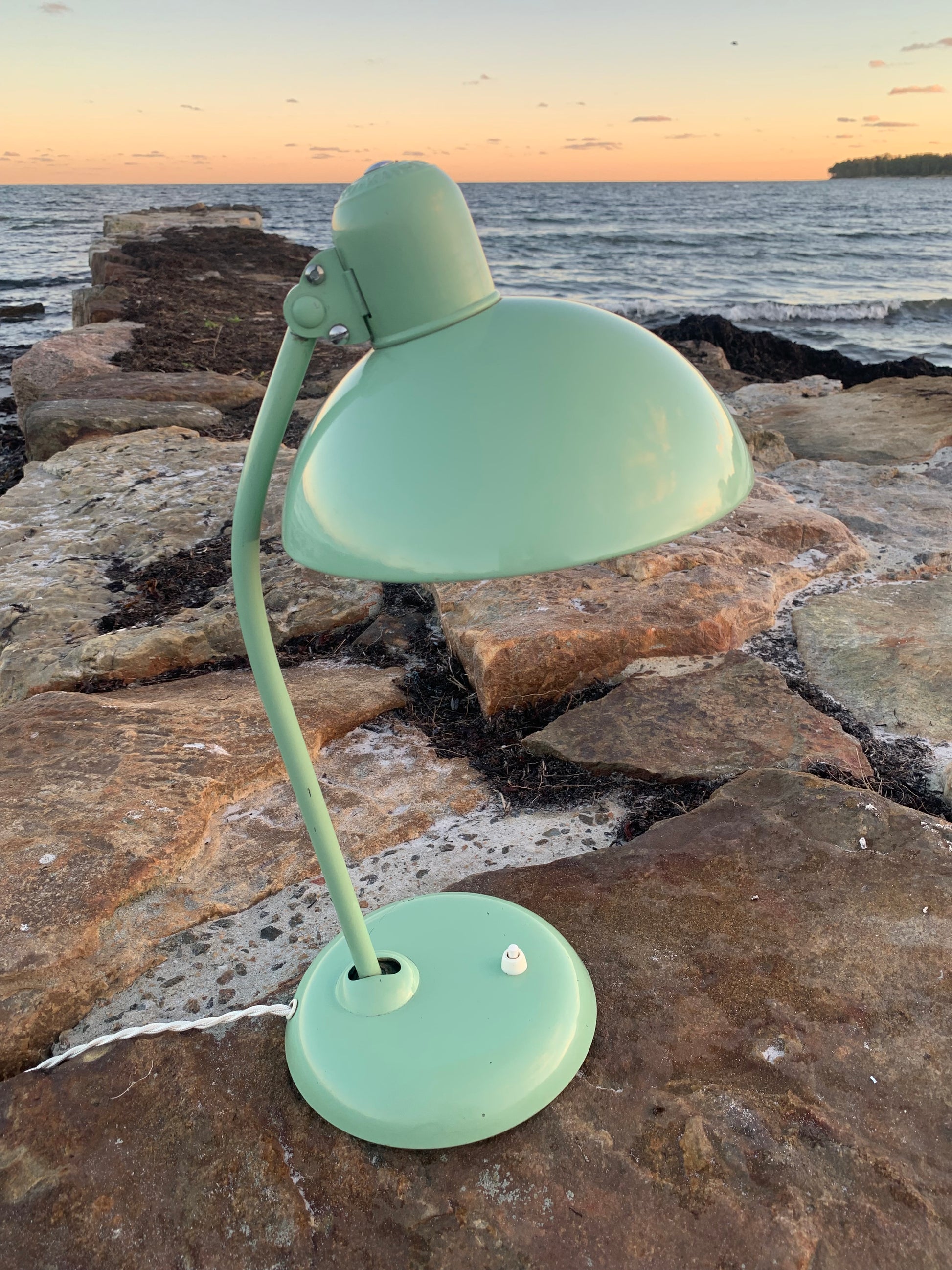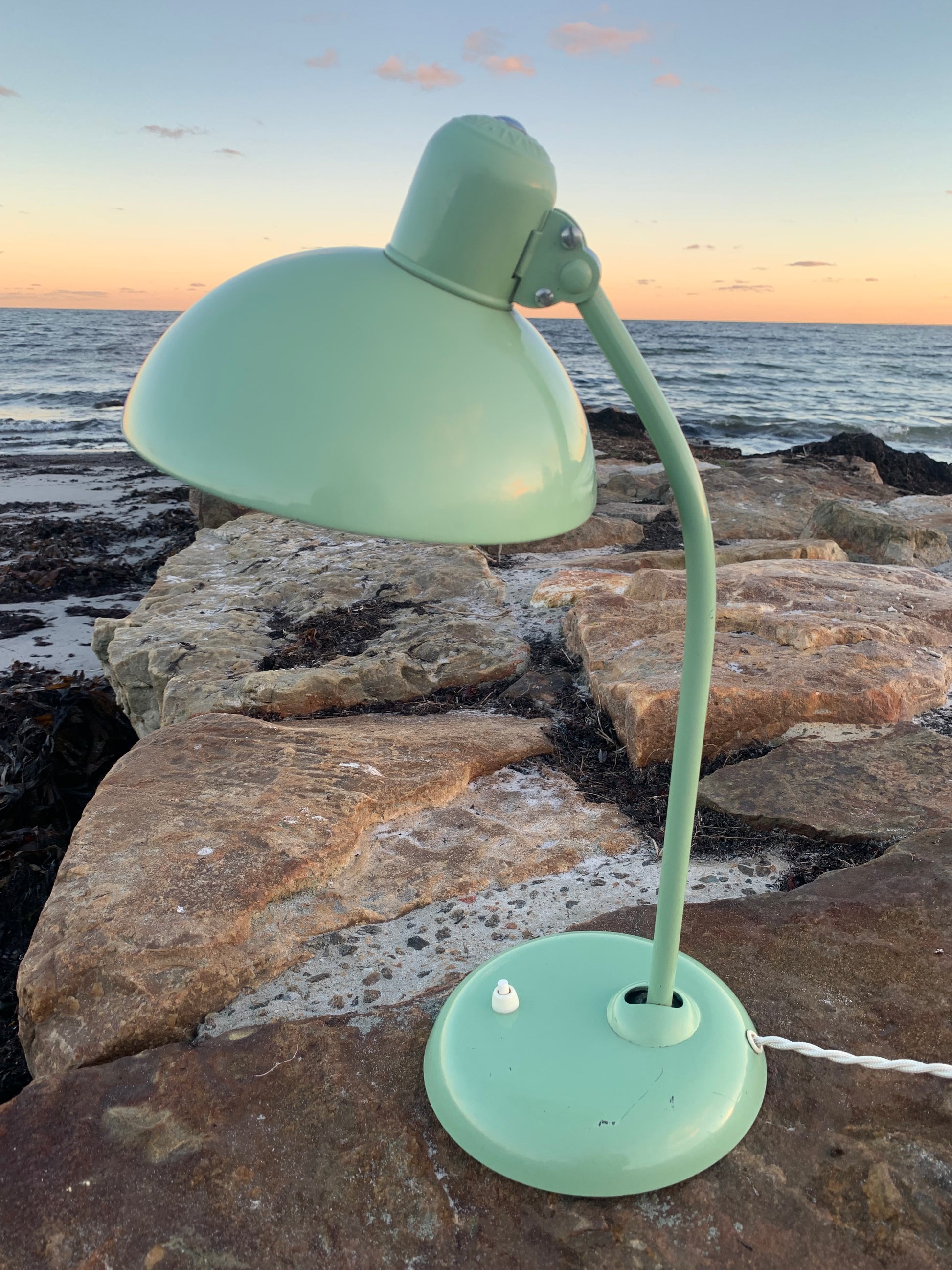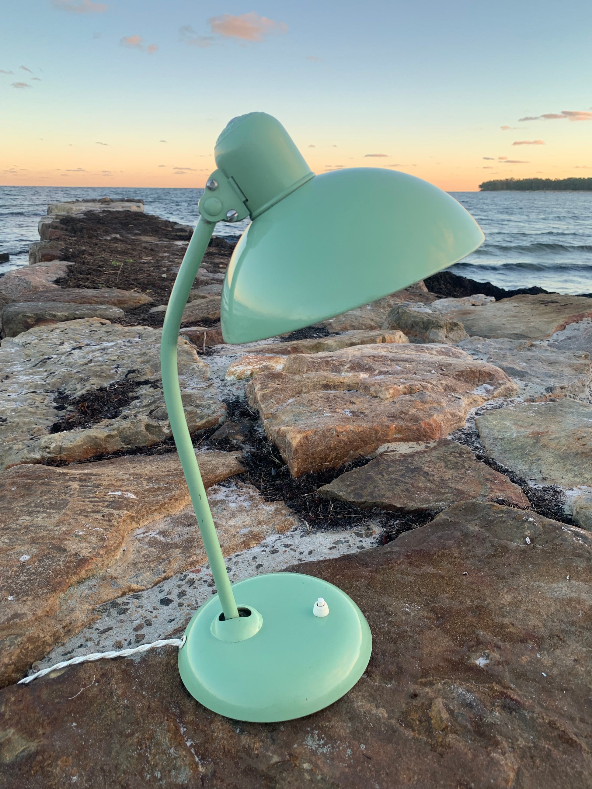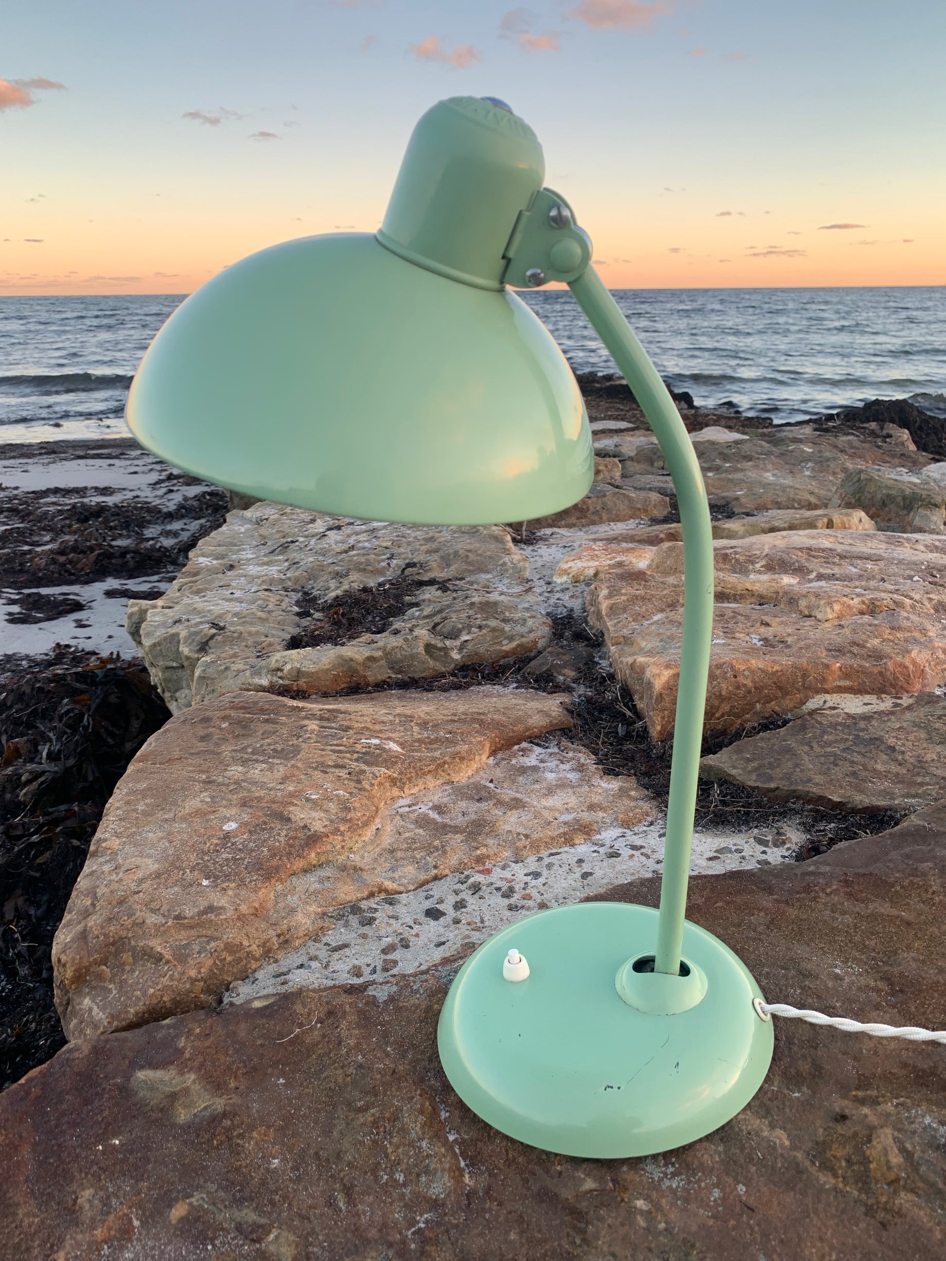 Wunderschöne Kaiser Idell Lampe, entworfen von Christian Dell. Dieser schöne Klassiker richtet sich an alle, die die Schönheit guten und zeitlosen Designs schätzen. Die edlen alten Kaiser Idell Lampen zeugen von guter Qualität und guter Handwerkskunst. Diese schönen alten Vintage-Lampen weisen oft altersbedingte Gebrauchsspuren auf, die die Authentizität und Originalität unterstreichen. Diese Spuren zeugen von der Reise der Lampe durch mehrere Jahrzehnte und erzählen diese.