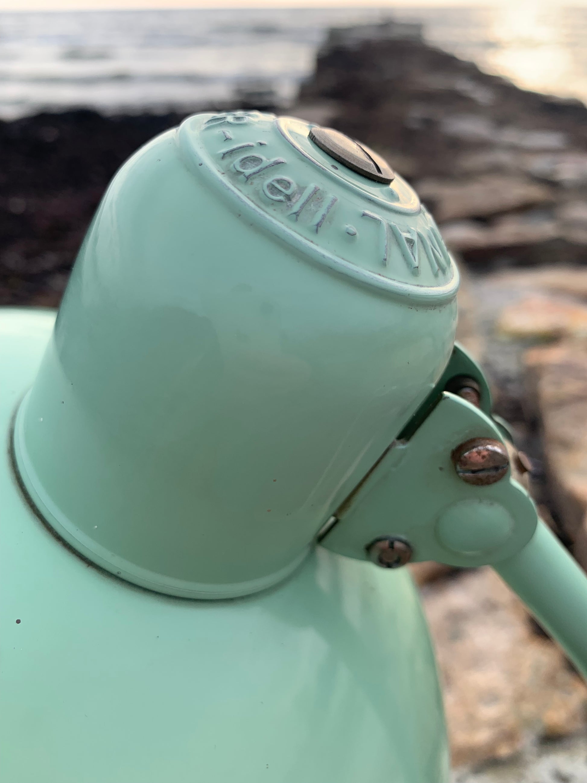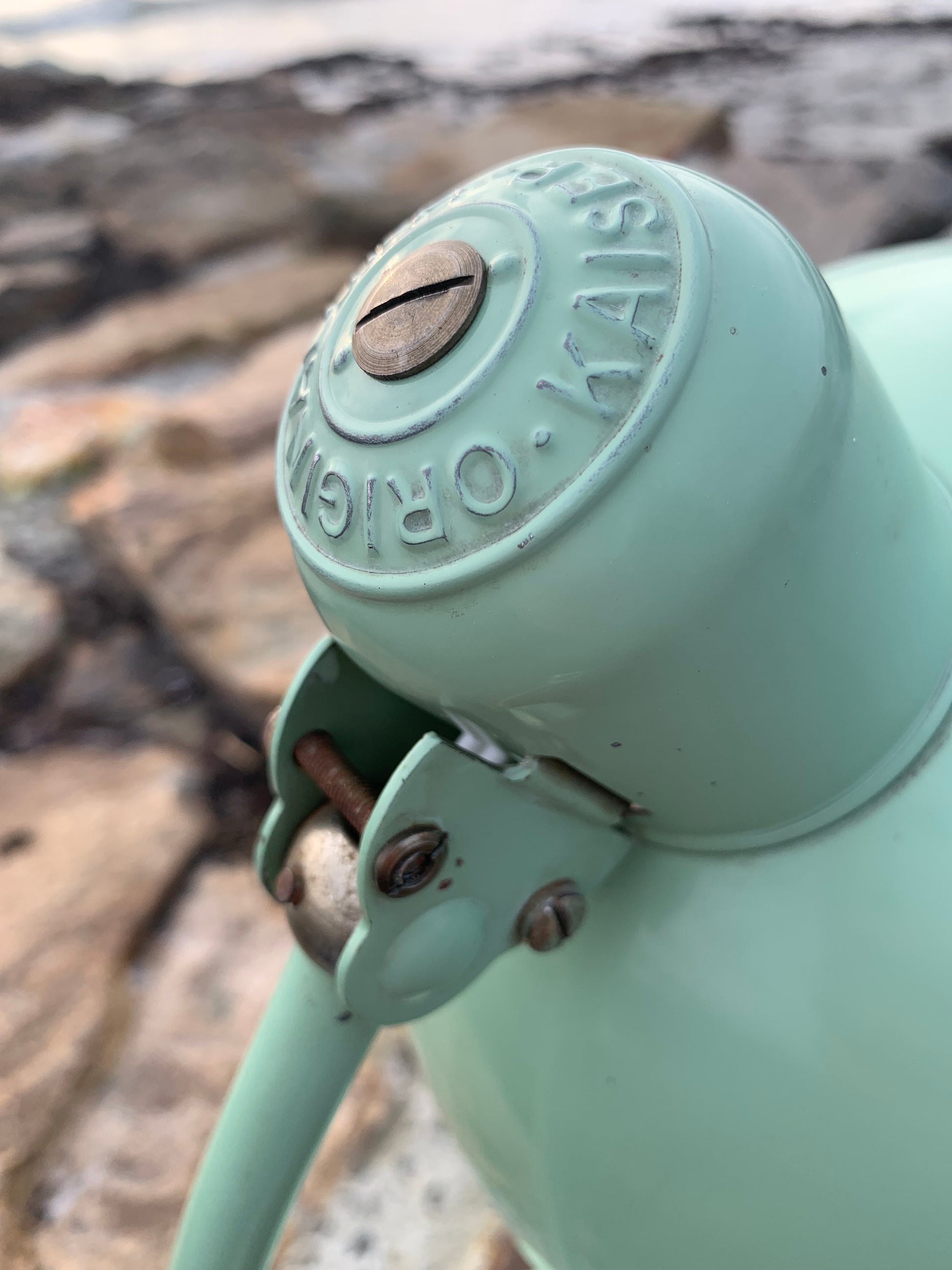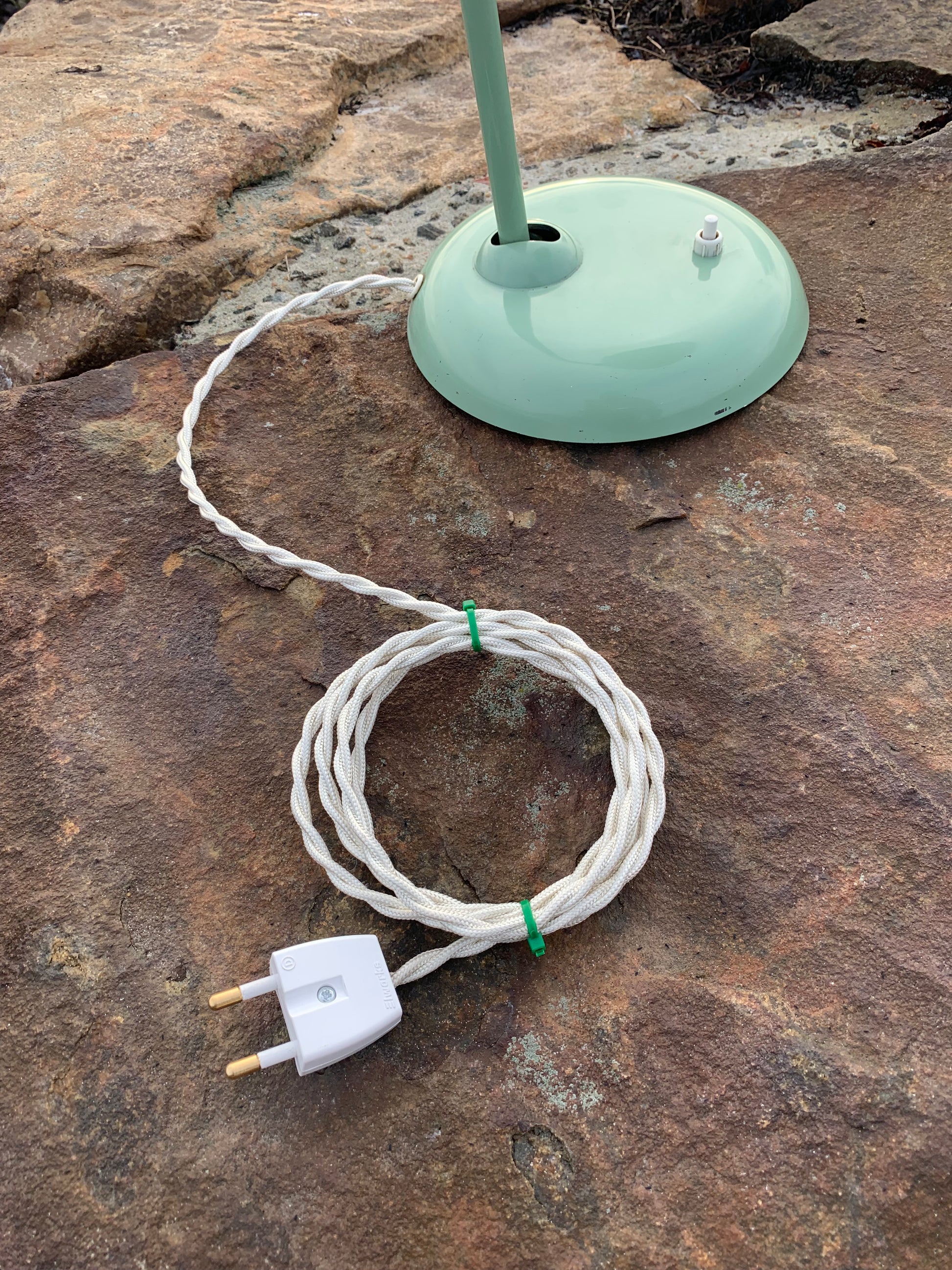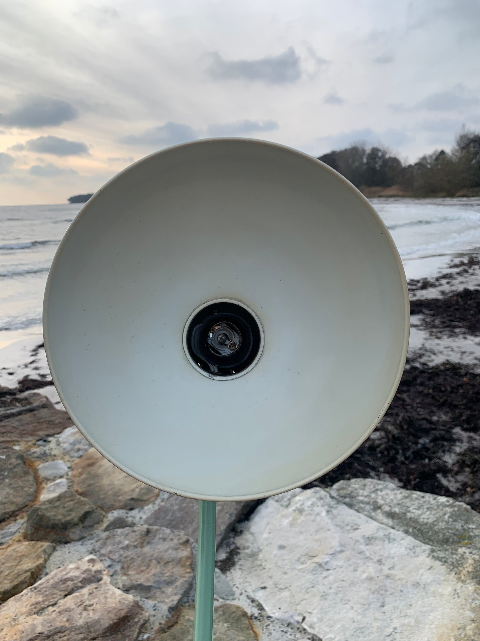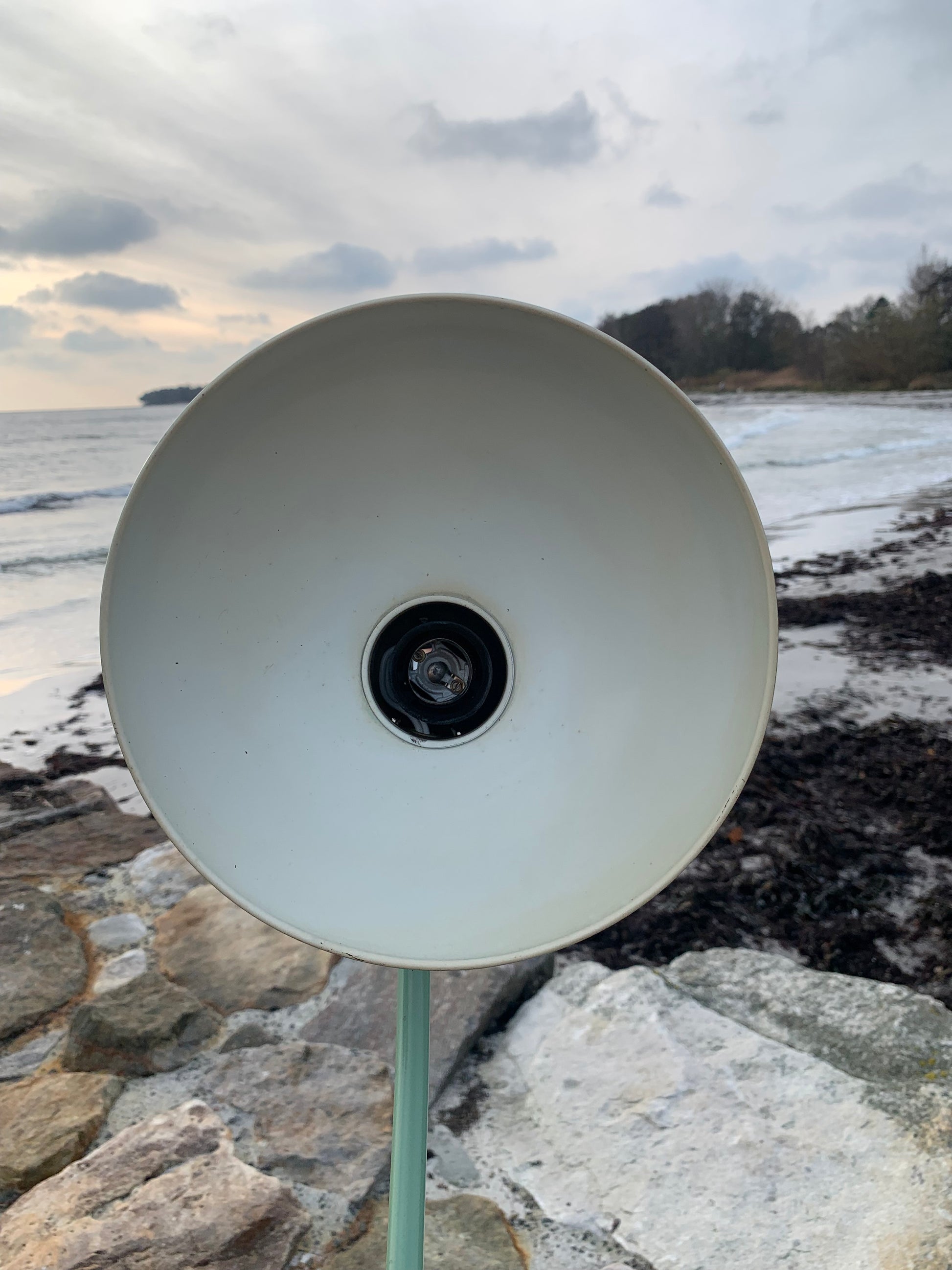 Dieses Exemplar besitzt noch den Originallack und neue Kabel. Die Lampe weist altersbedingte Gebrauchsspuren auf, die bei einer solchen Lampe (unserer Meinung nach) üblich sind.