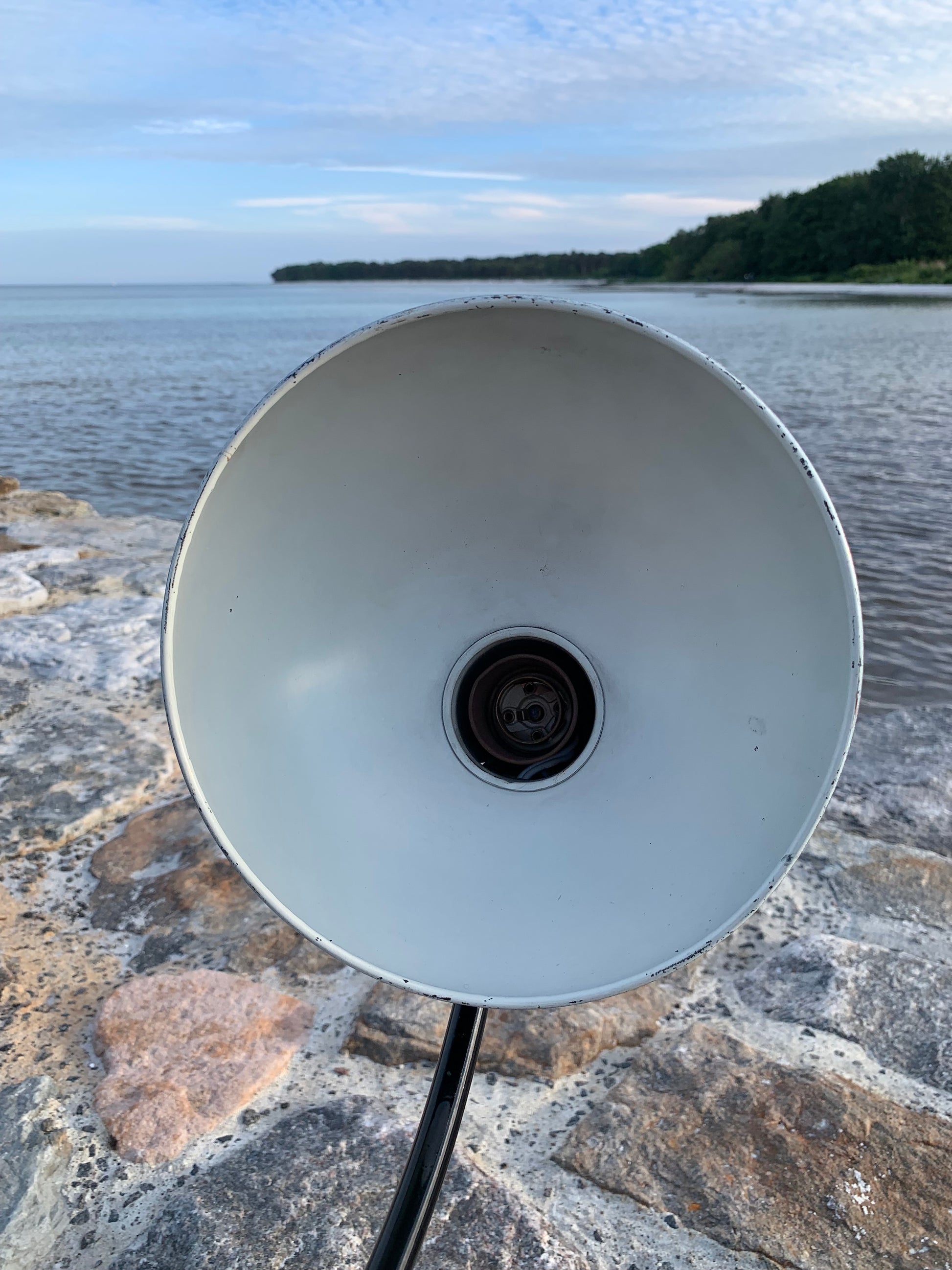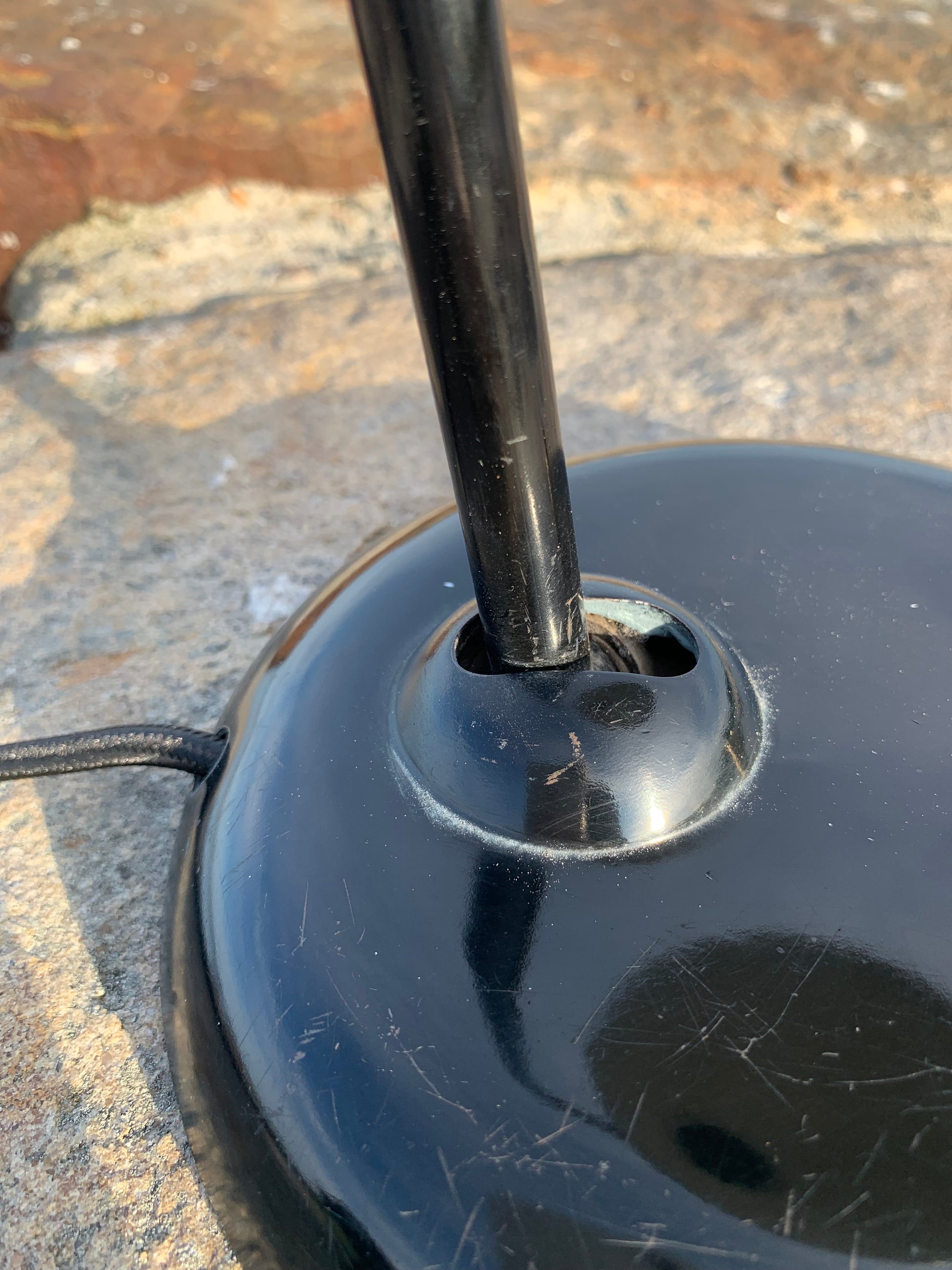 Dieses Exemplar erscheint mit der Originallackierung und neuen Kabeln. Die Lampe weist altersbedingte Gebrauchsspuren auf, die eine solche Lampe (unserer Meinung nach) haben sollte. Dieses Exemplar ist für diejenigen unter Ihnen, die das Perfekte im Unperfekten sehen.