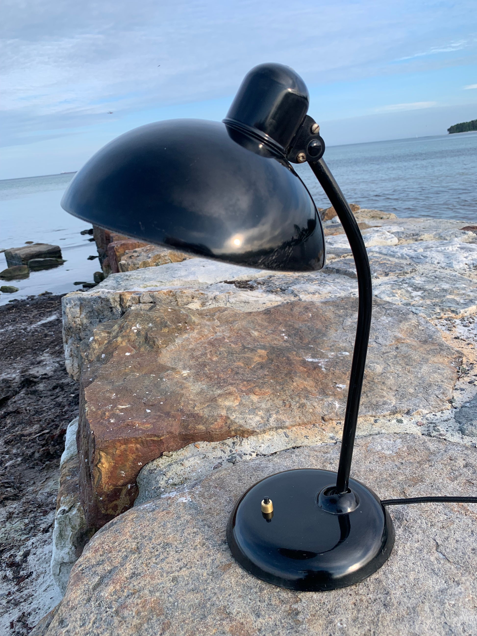Wunderschöne Kaiser Idell Lampe, entworfen von Christian Dell. Dieser schöne Klassiker richtet sich an alle, die die Schönheit guten und zeitlosen Designs schätzen. Die edlen alten Kaiser Idell Lampen zeugen von guter Qualität und guter Handwerkskunst. Diese schönen alten Vintage-Lampen weisen oft altersbedingte Gebrauchsspuren auf, die ihre Authentizität und Originalität unterstreichen. Diese Spuren zeugen von der Reise der Lampe durch mehrere Jahrzehnte und erzählen gleichzeitig ihre Geschichte.