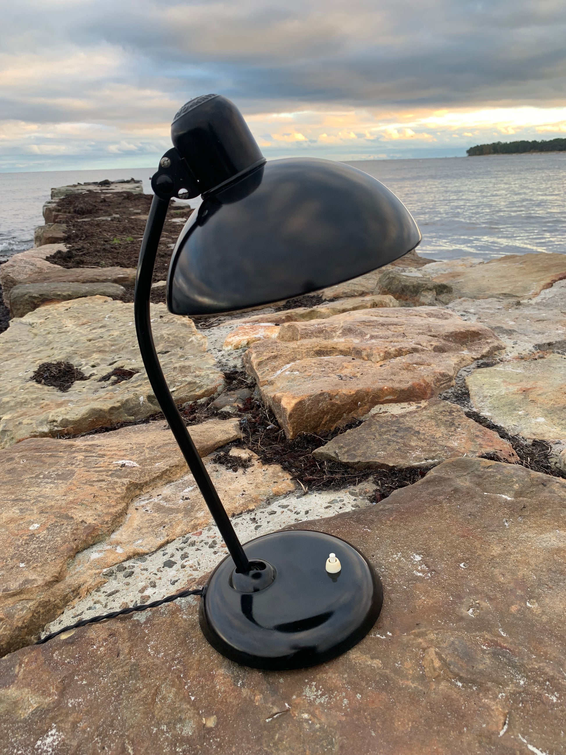 Wunderschöne Kaiser Idell-Lampe, entworfen von Christian Dell. Dieser schöne Klassiker richtet sich an Sie, die die Schönheit eines guten und zeitlosen Designs sehen. Die schönen alten Kaiser Idell-Lampen zeugen von guter Qualität und guter Handwerkskunst. Diese schönen alten Vintage-Lampen weisen oft einige altersbedingte Gebrauchsspuren auf, die sowohl die Authentizität als auch die Originalität verstärken. Diese Spuren zeugen von der jahrzehntelangen Reise der Lampe und erzählen ihre Geschichte.