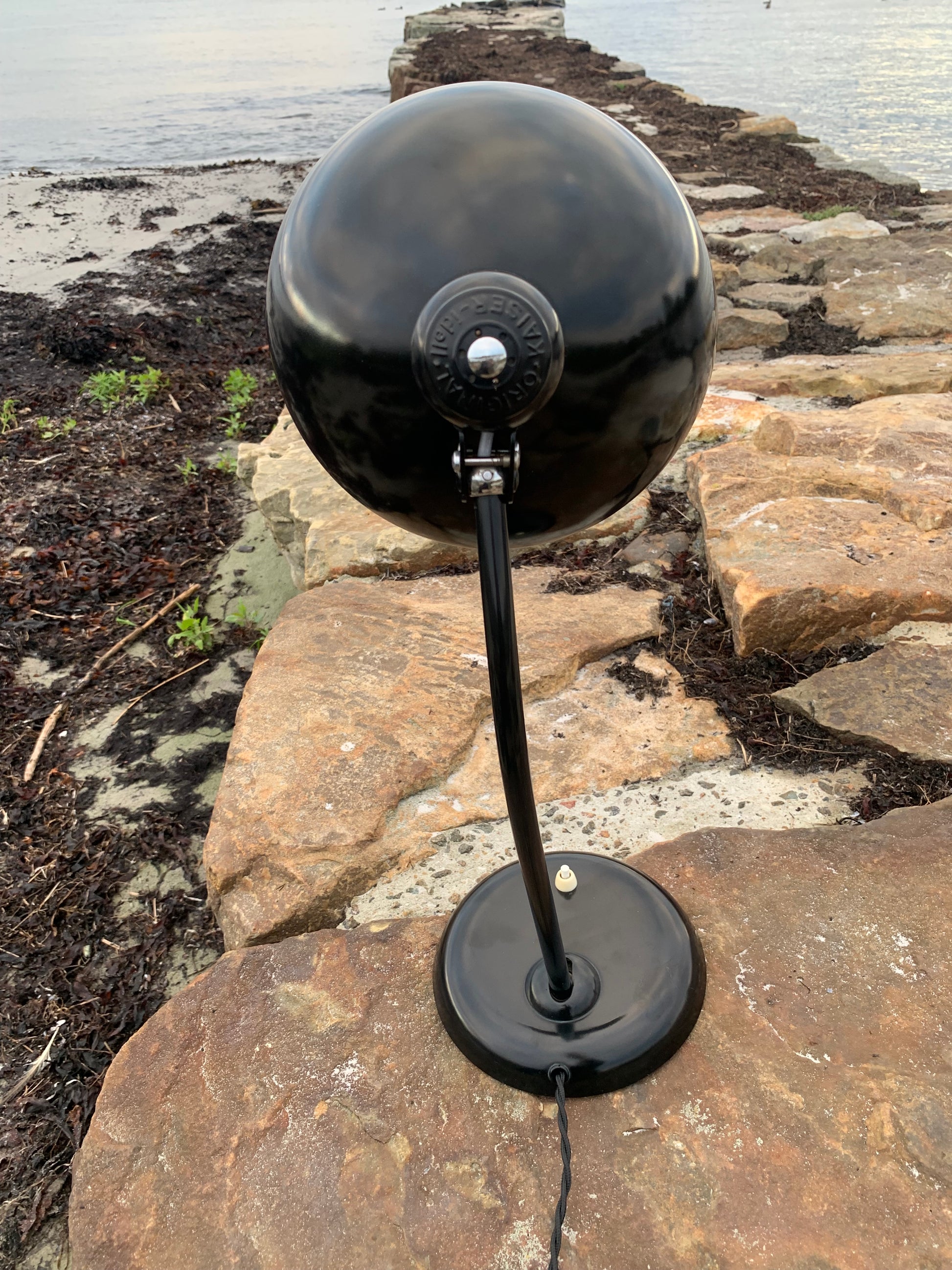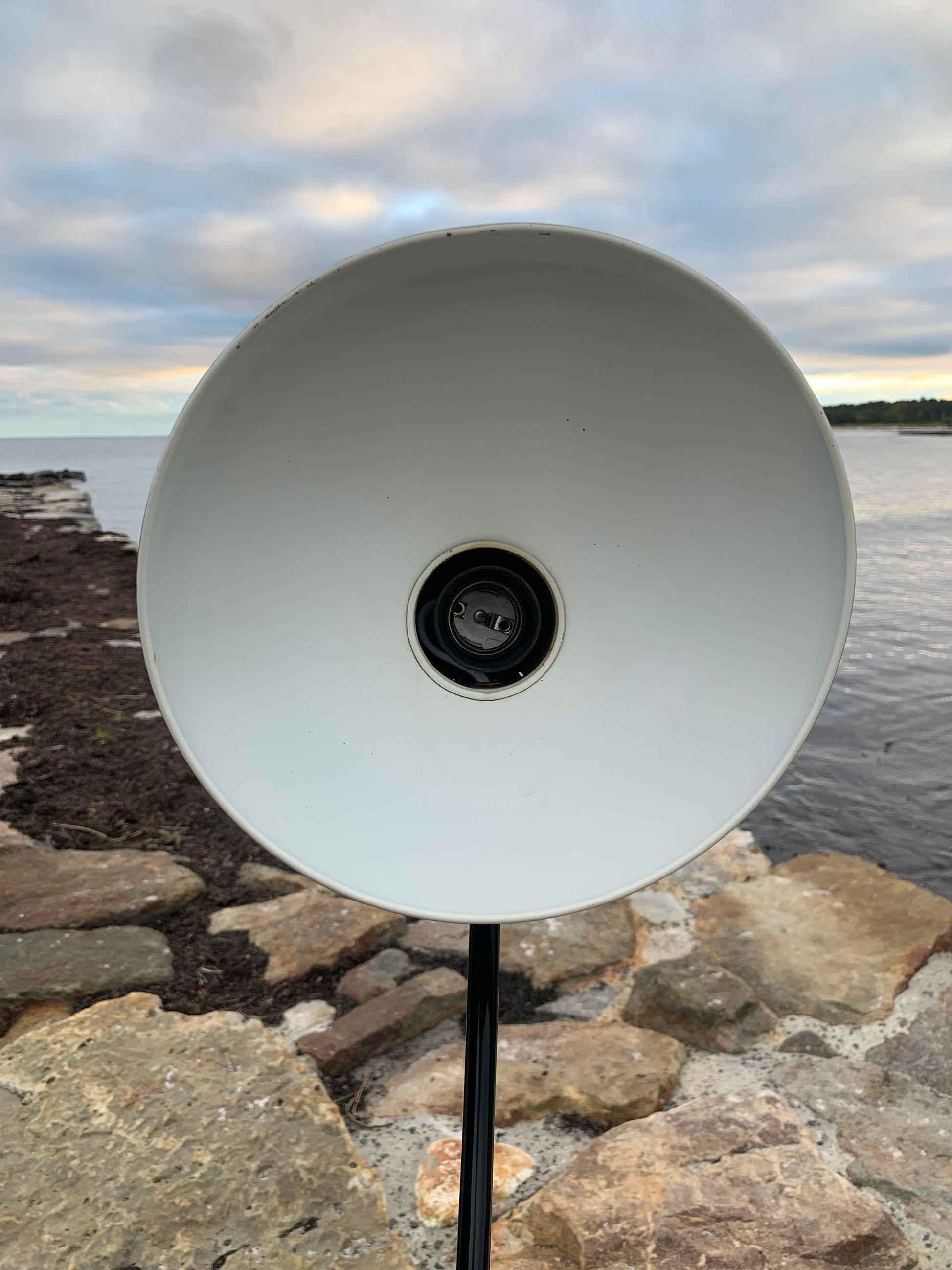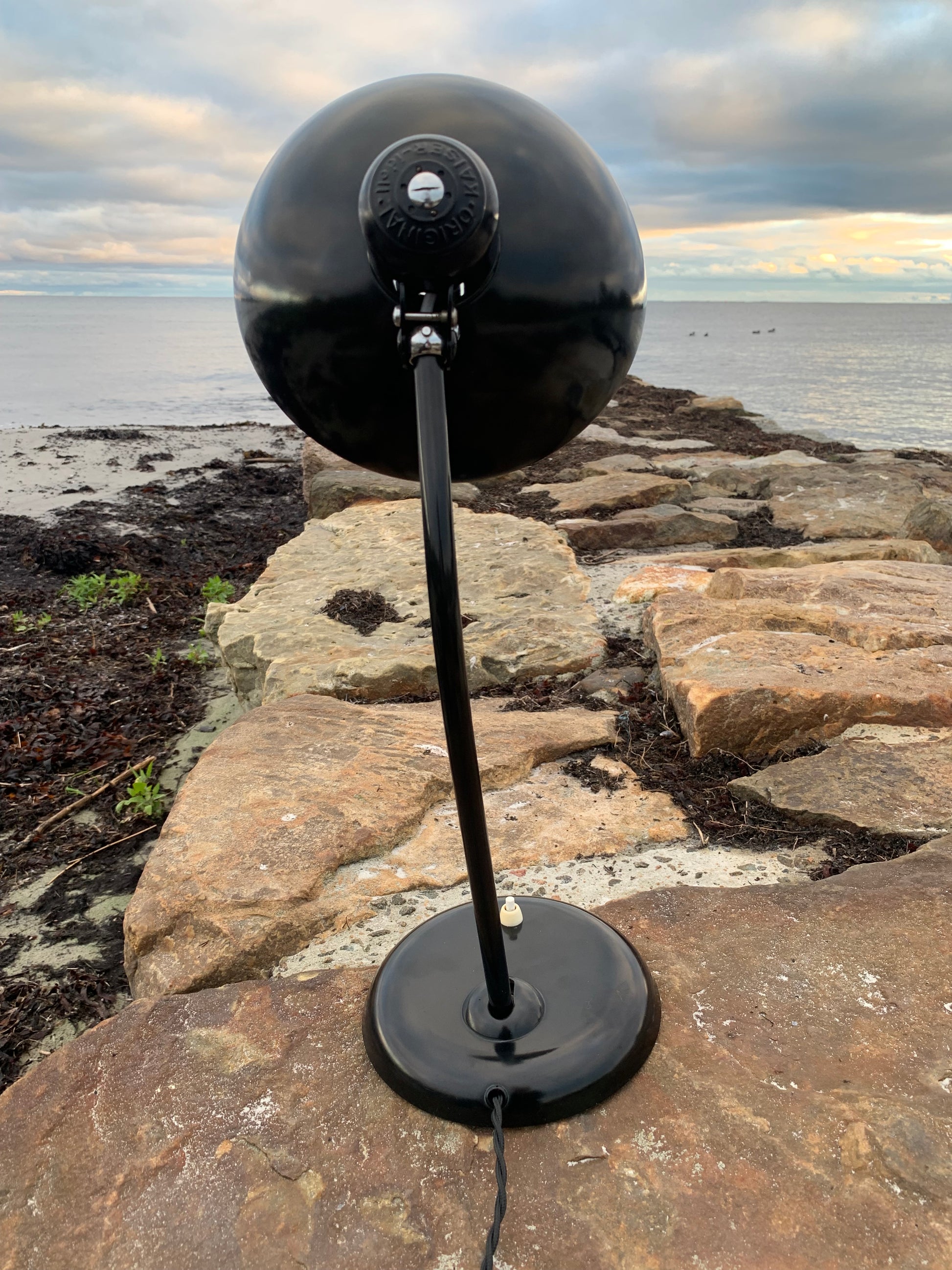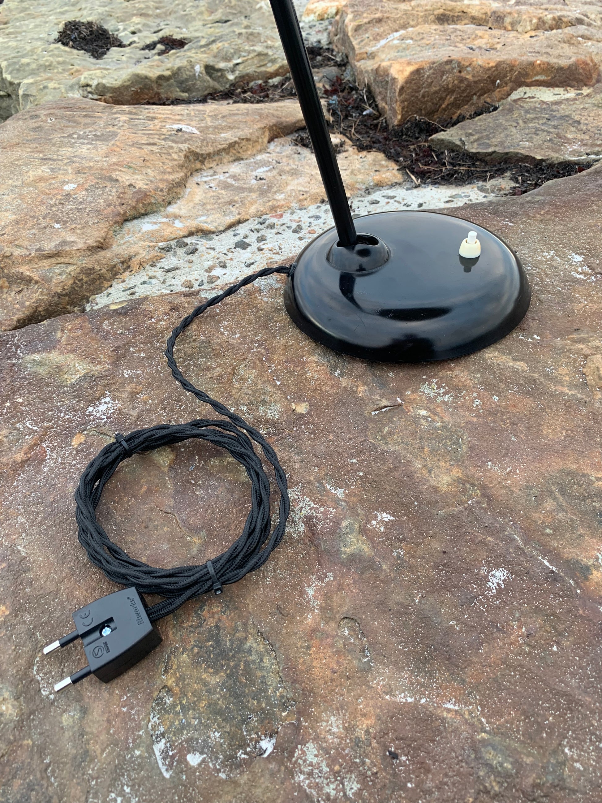 Dieses Exemplar erscheint mit der Originallackierung und neuen Kabeln. Die Lampe weist ein paar altersbedingte Gebrauchsspuren auf, die eine solche Lampe (unserer Meinung nach) fast haben müsste.