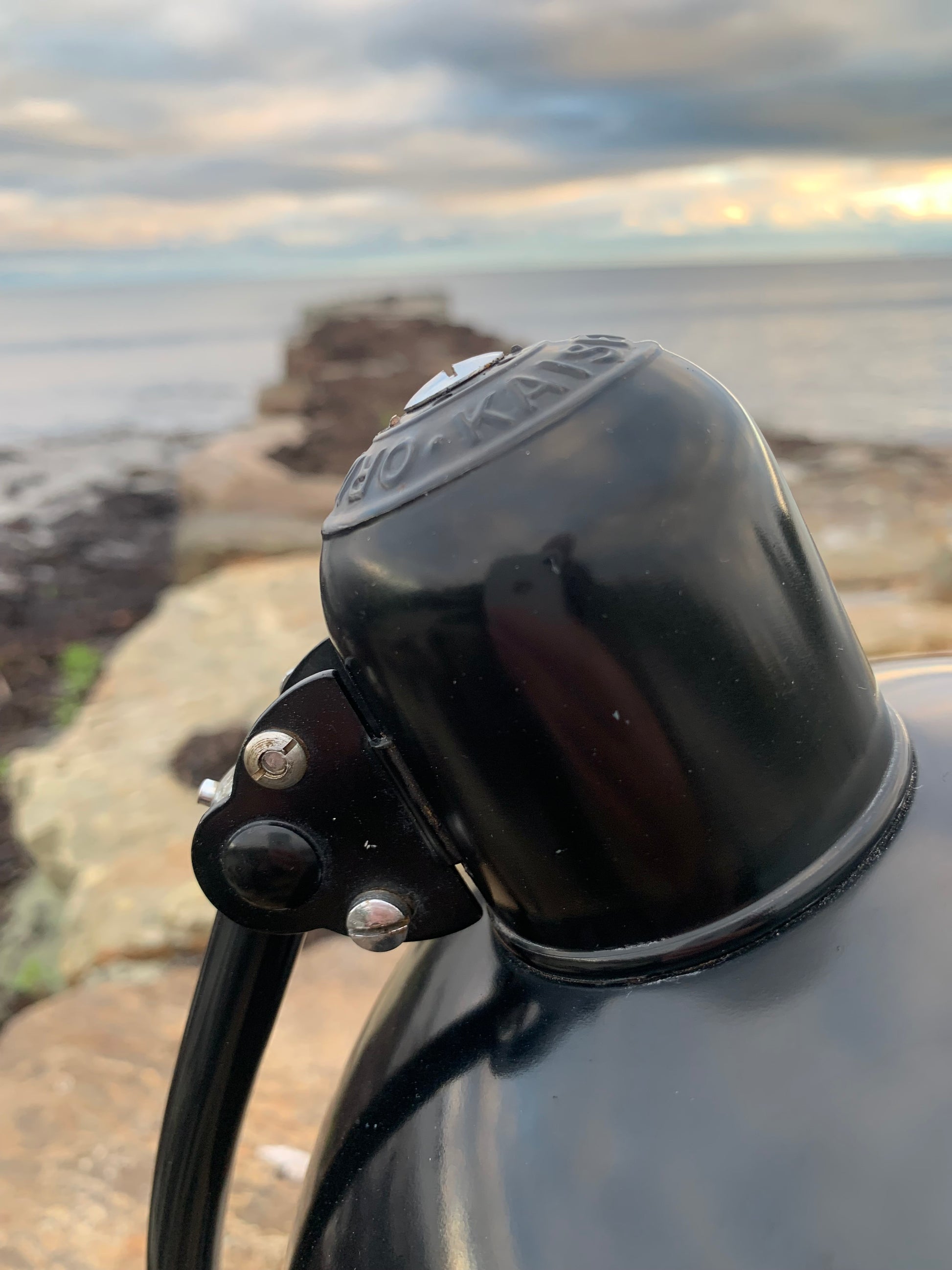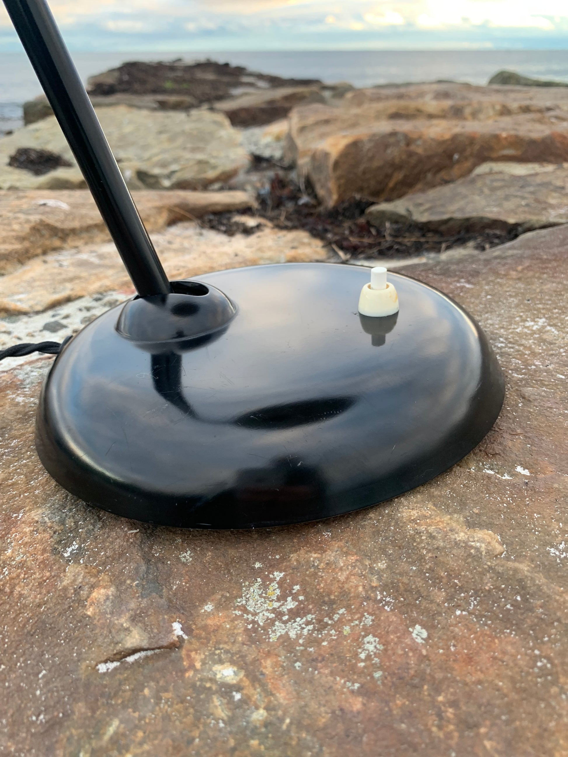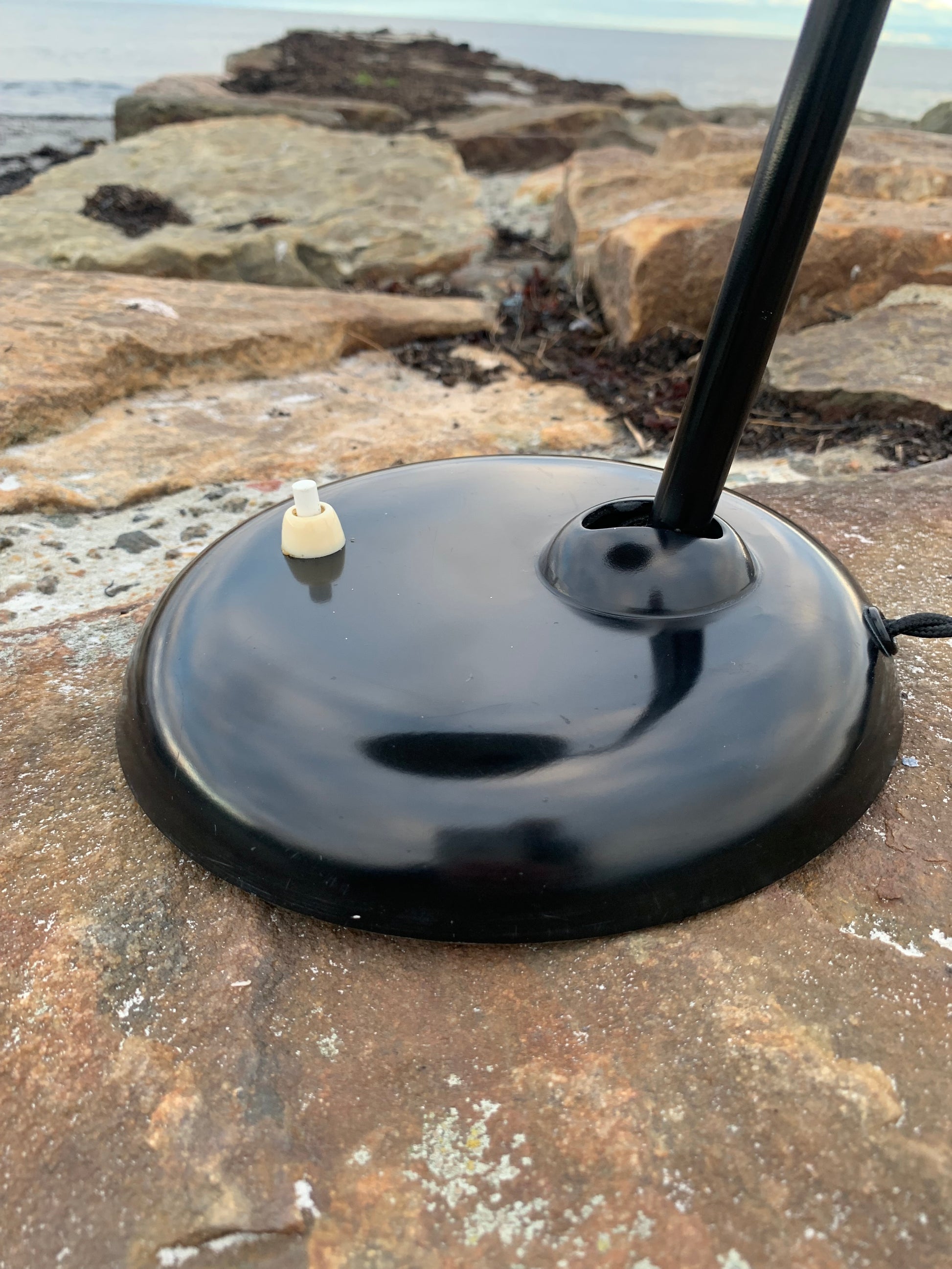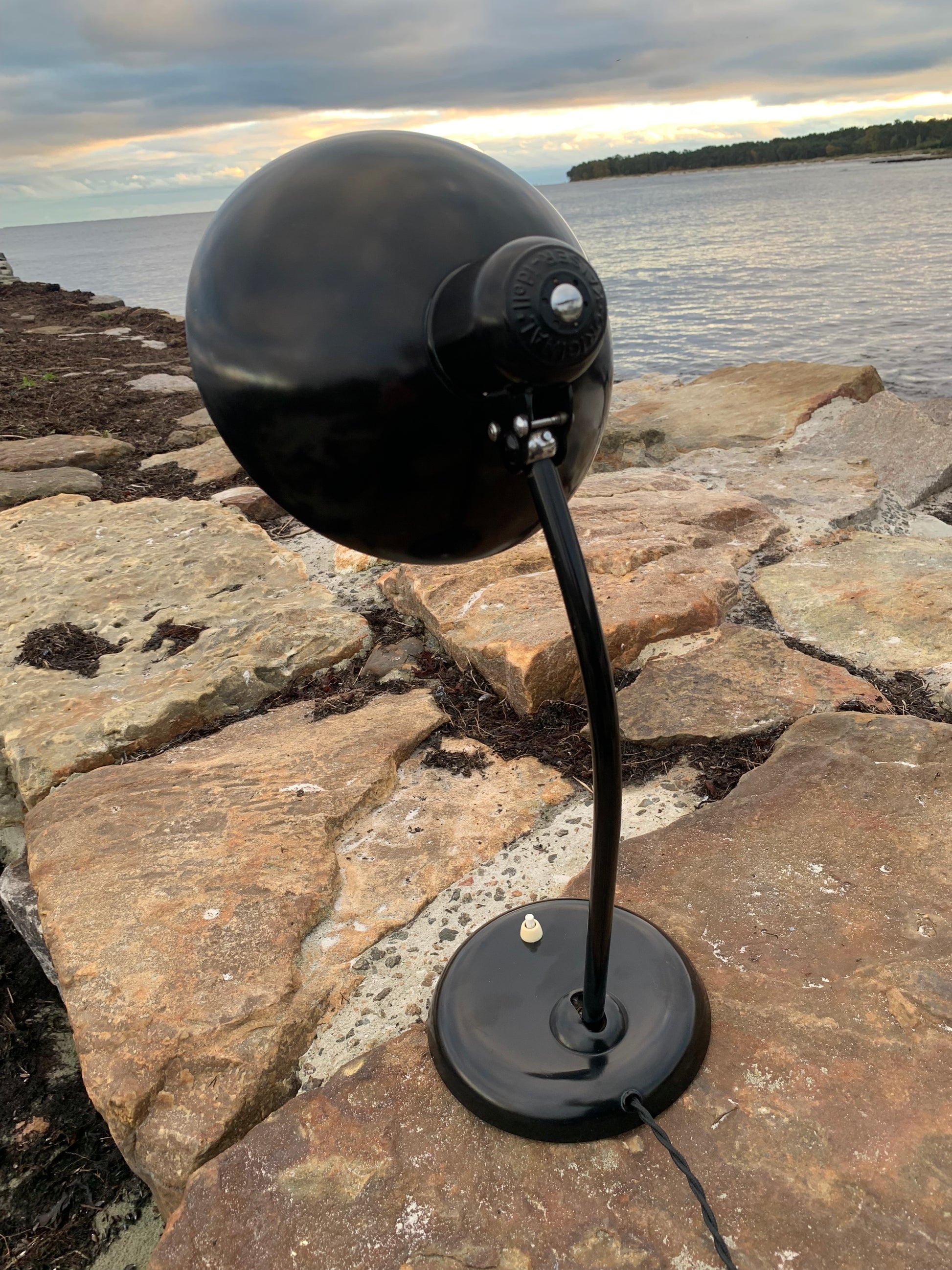 Dieses Exemplar erscheint mit der Originallackierung und neuen Kabeln. Die Lampe weist ein paar altersbedingte Gebrauchsspuren auf, die eine solche Lampe (unserer Meinung nach) fast haben müsste.