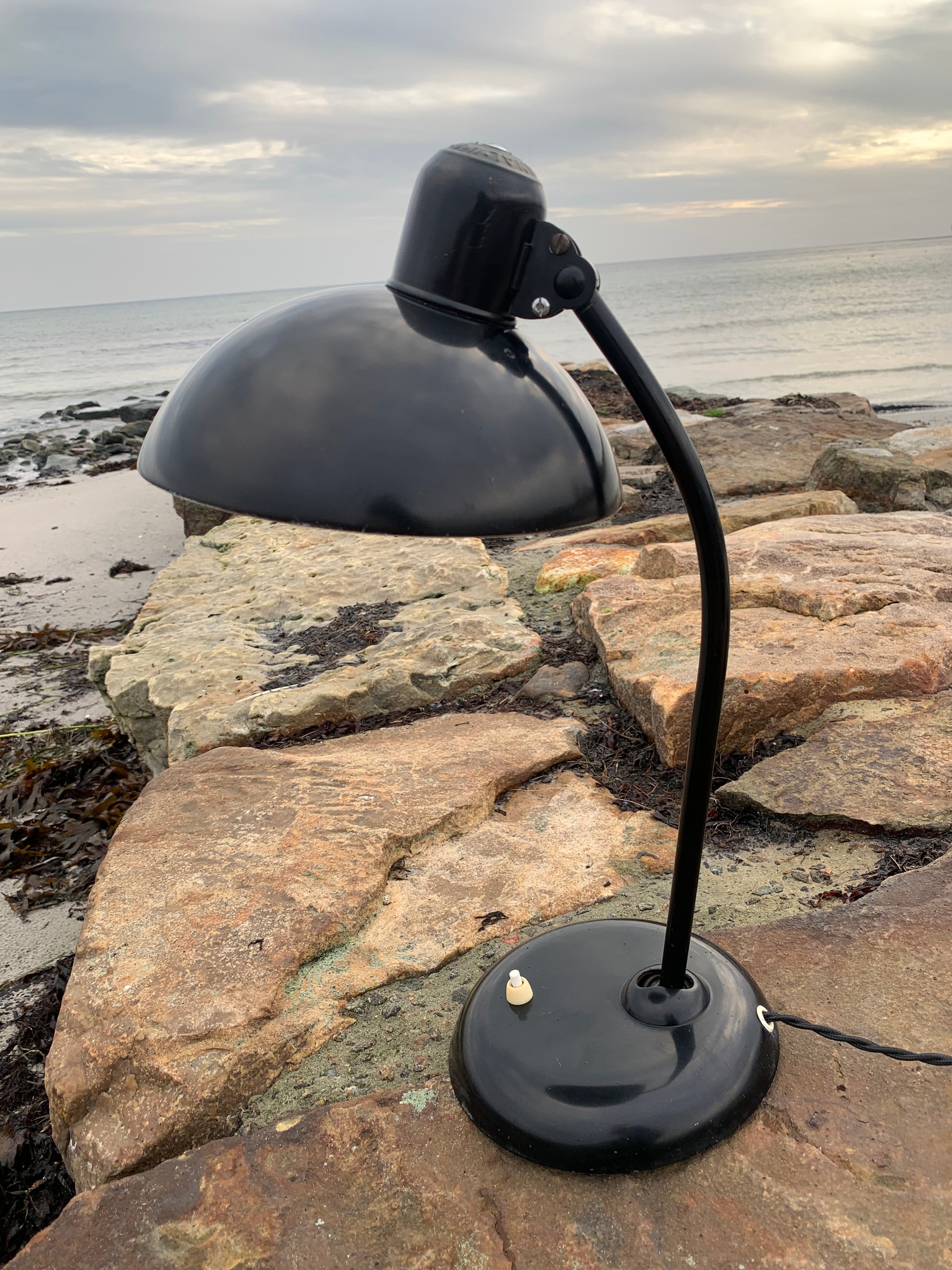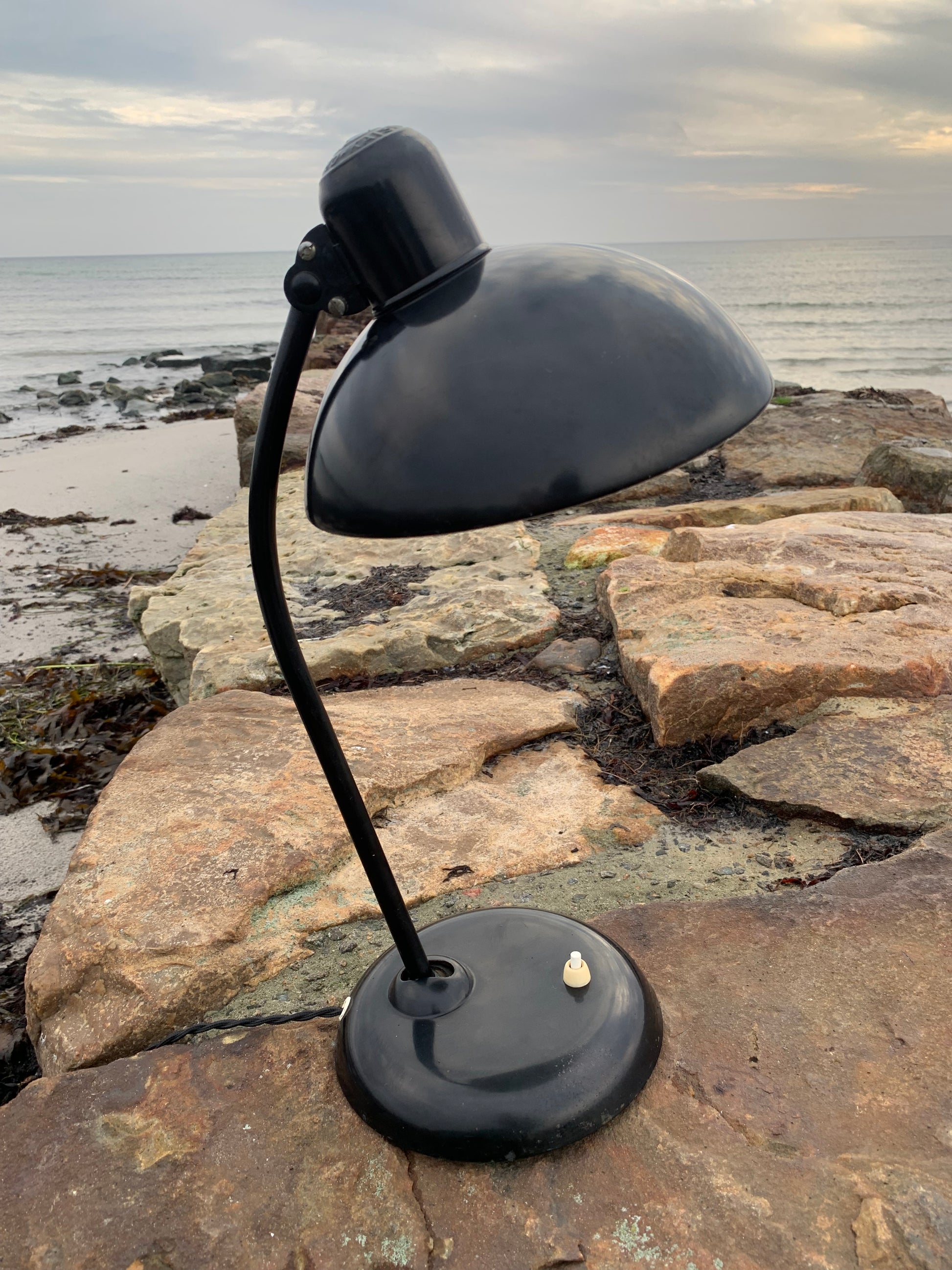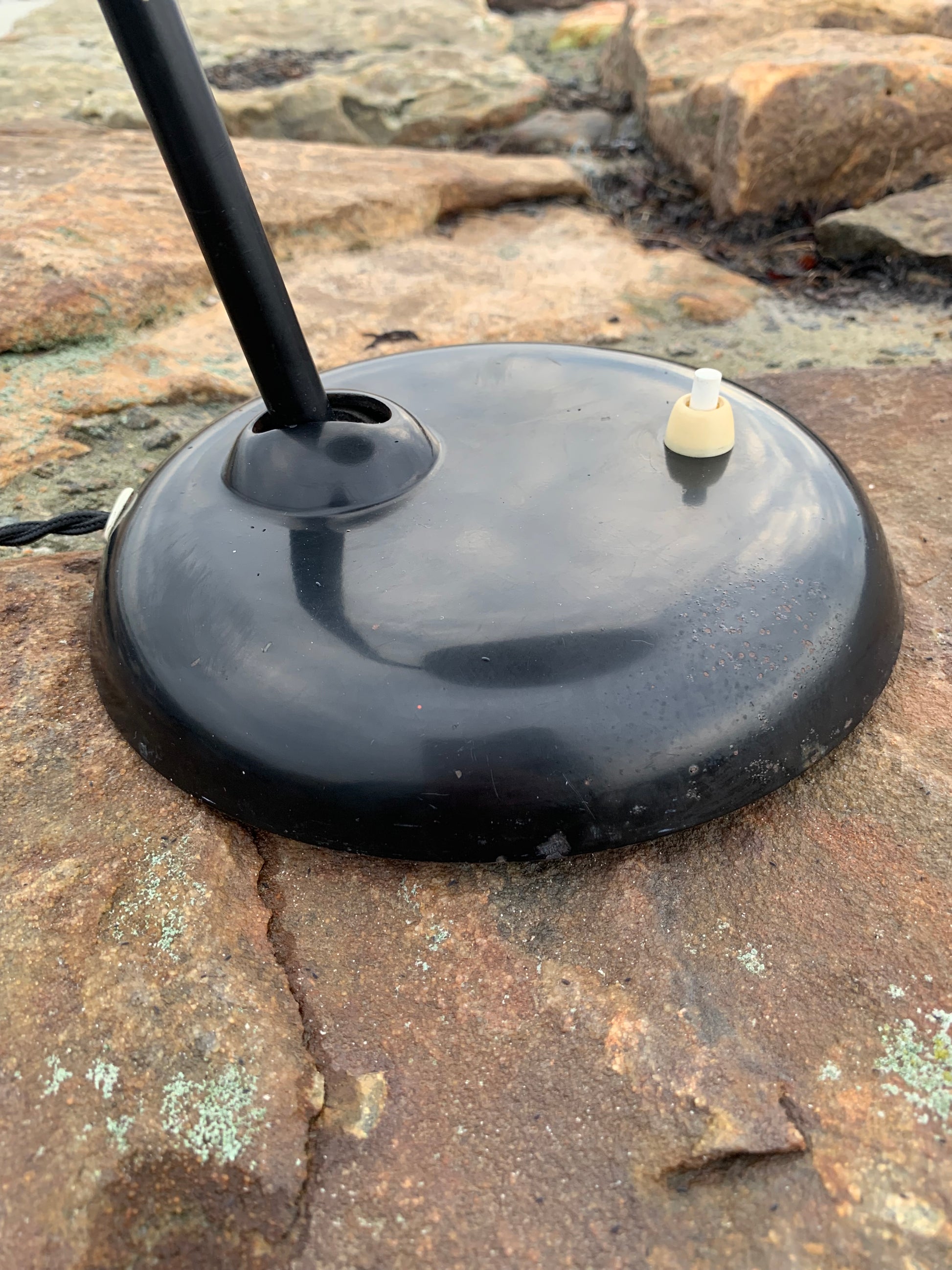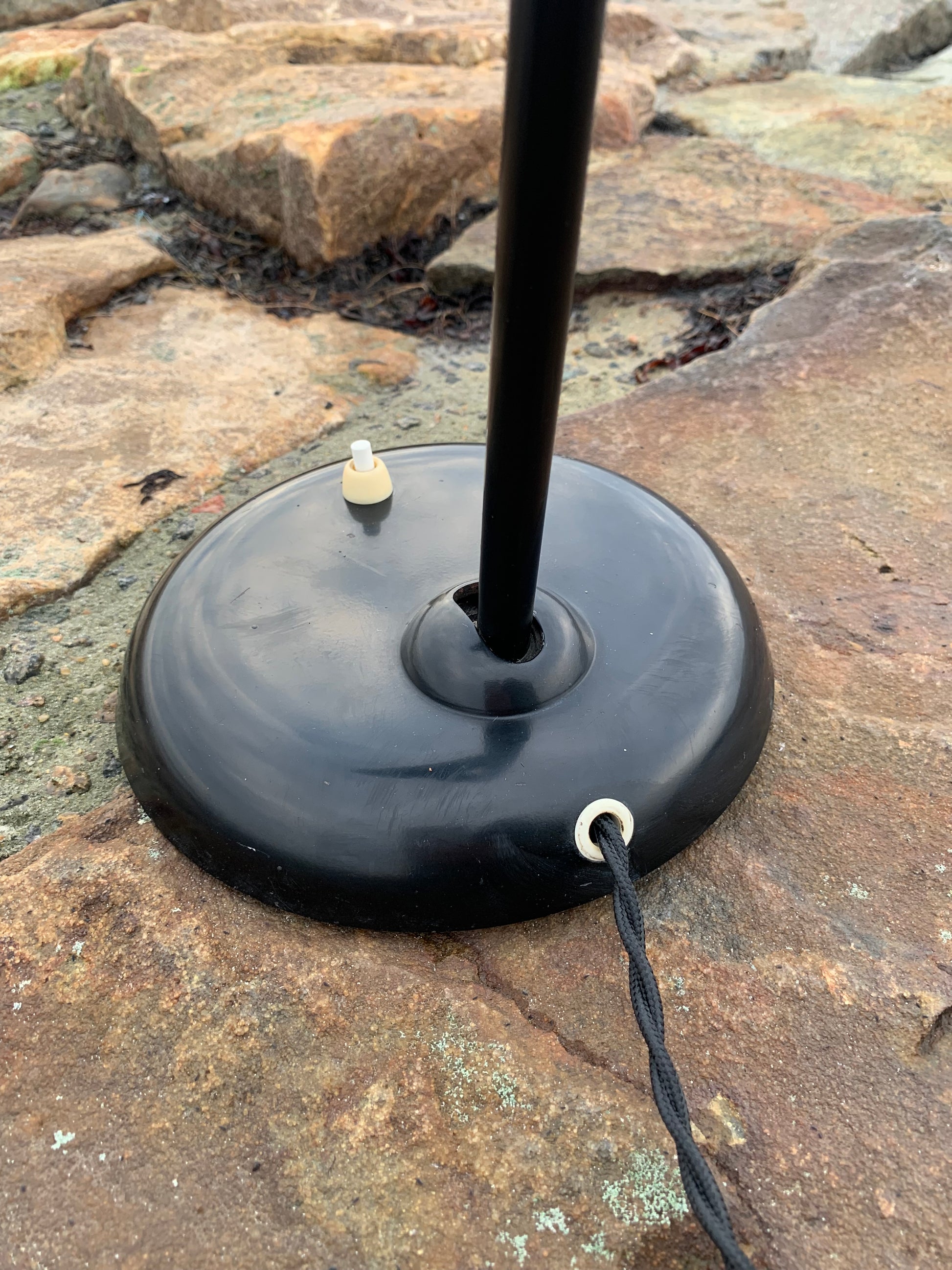 Dieses Exemplar befindet sich im Originalzustand mit Originallackierung und neuen Kabeln. Die Lampe weist altersbedingte Gebrauchsspuren auf, die bei einer solchen Lampe (unserer Meinung nach) üblich sind.