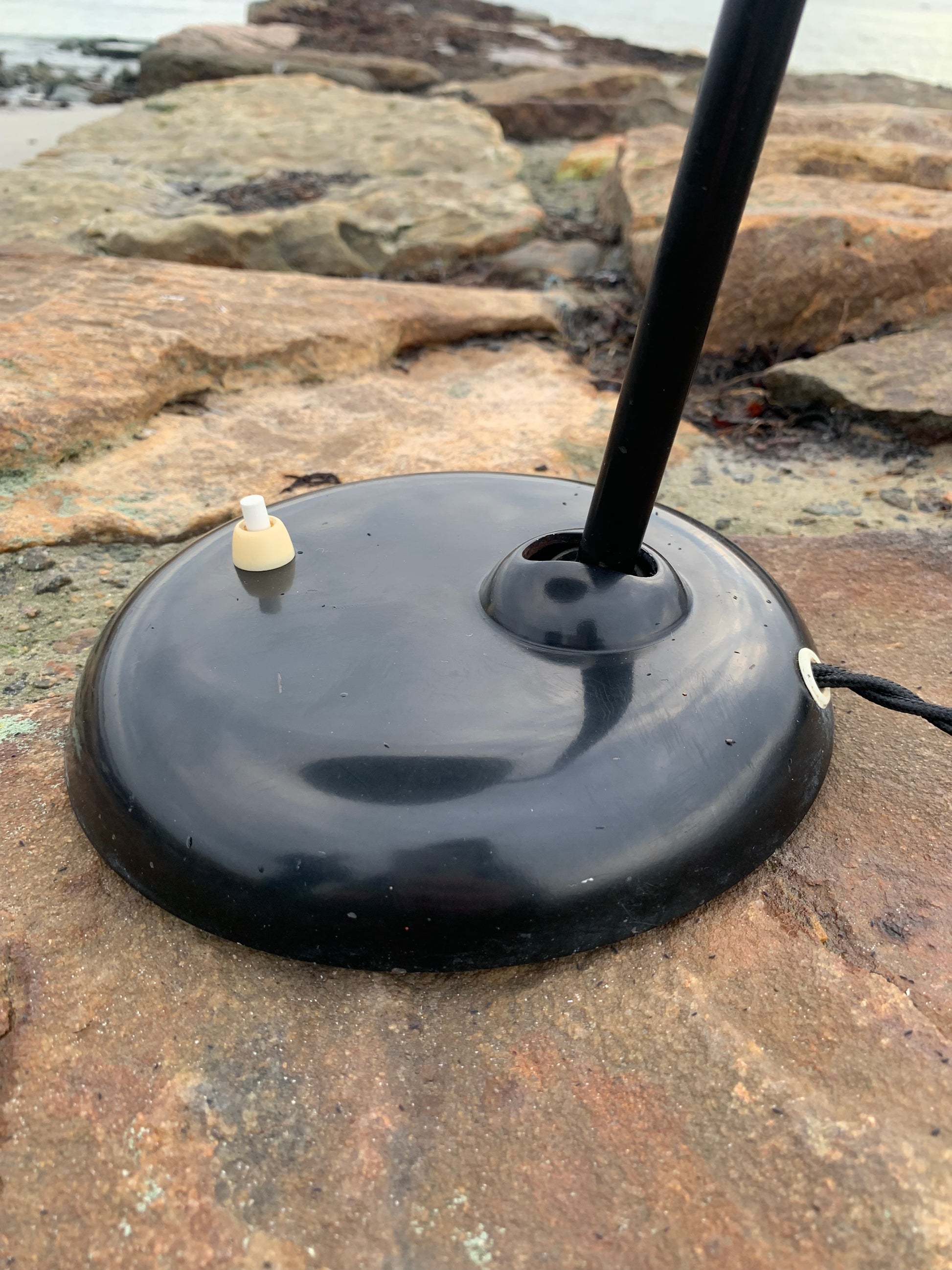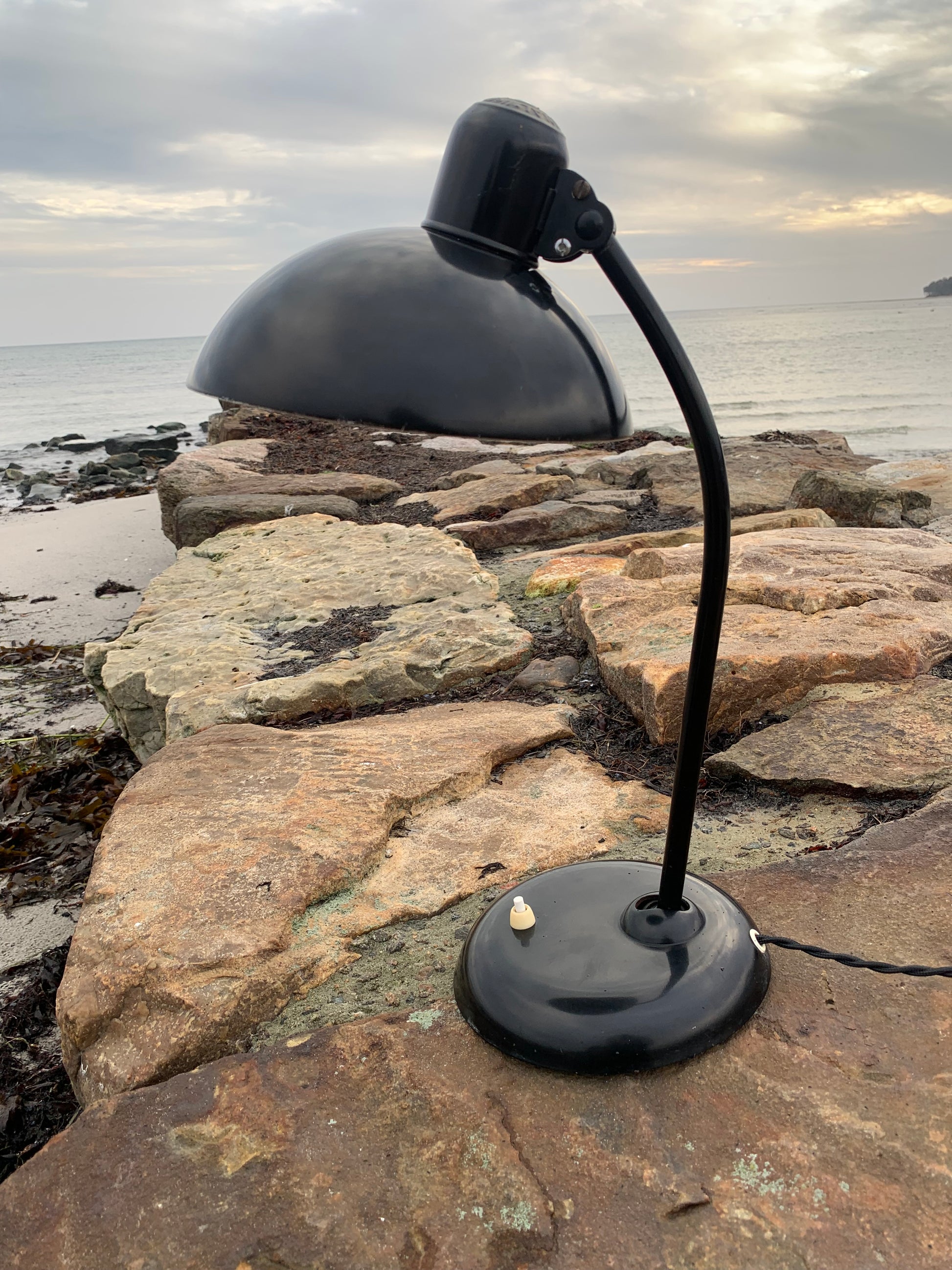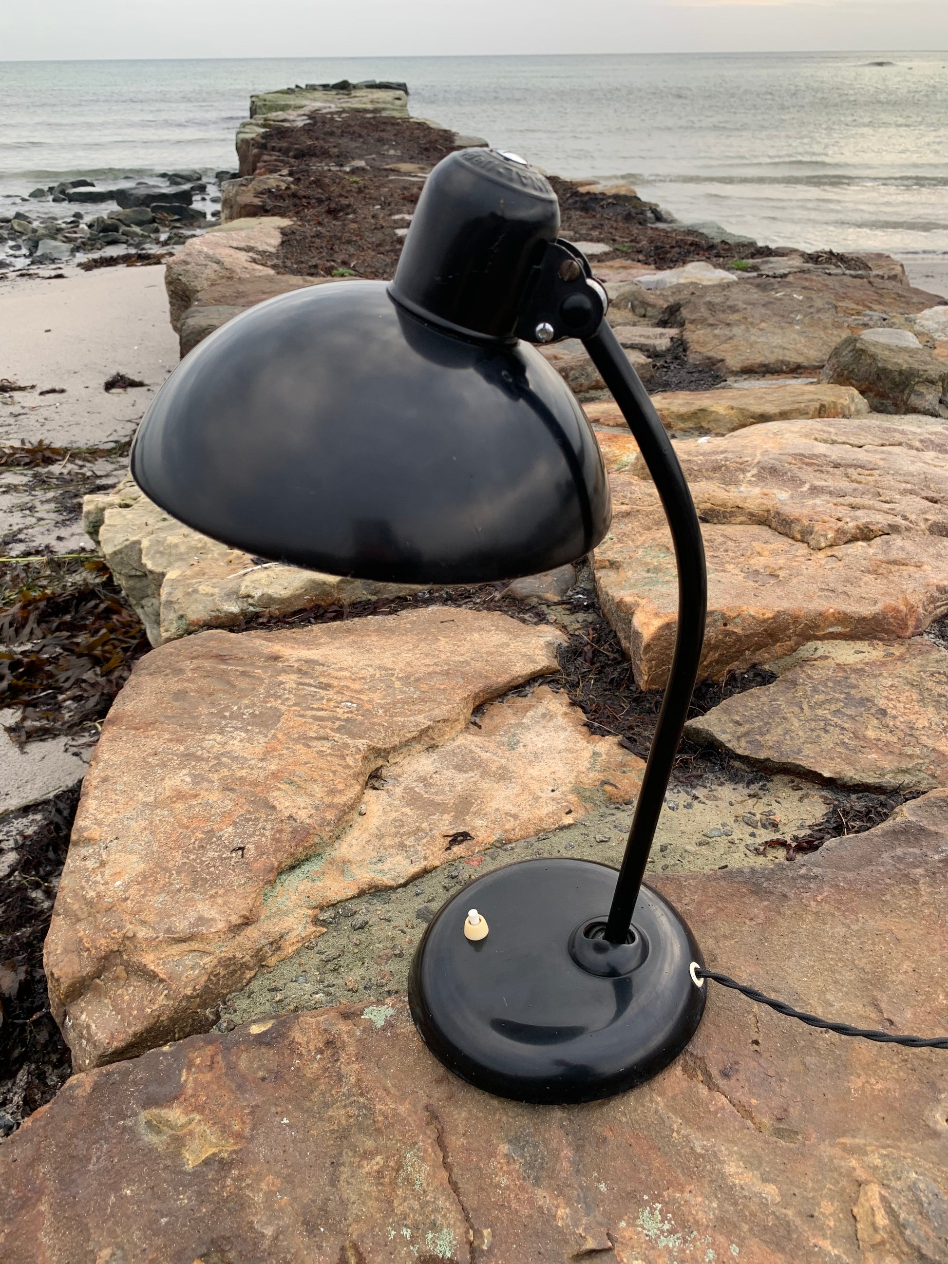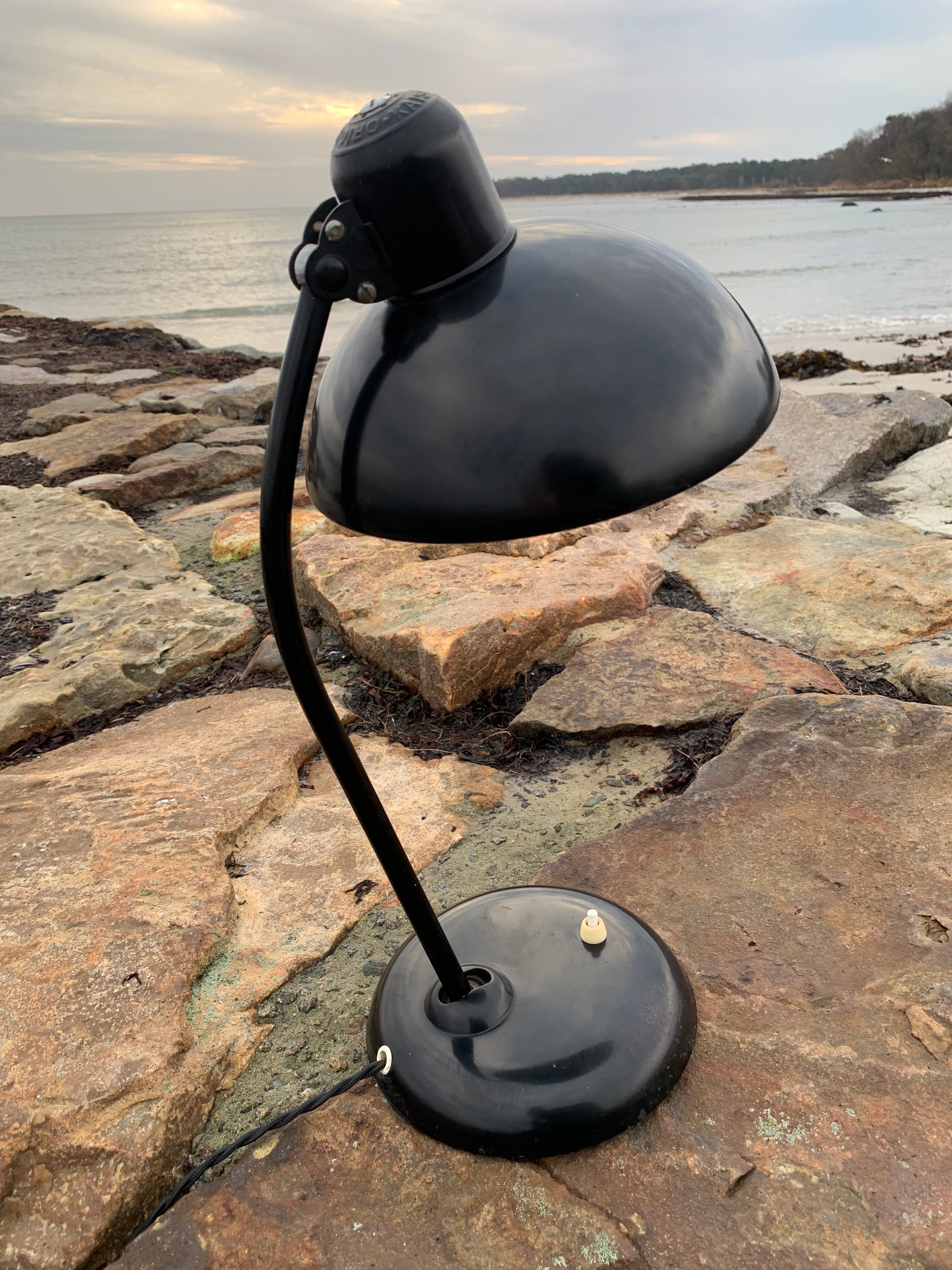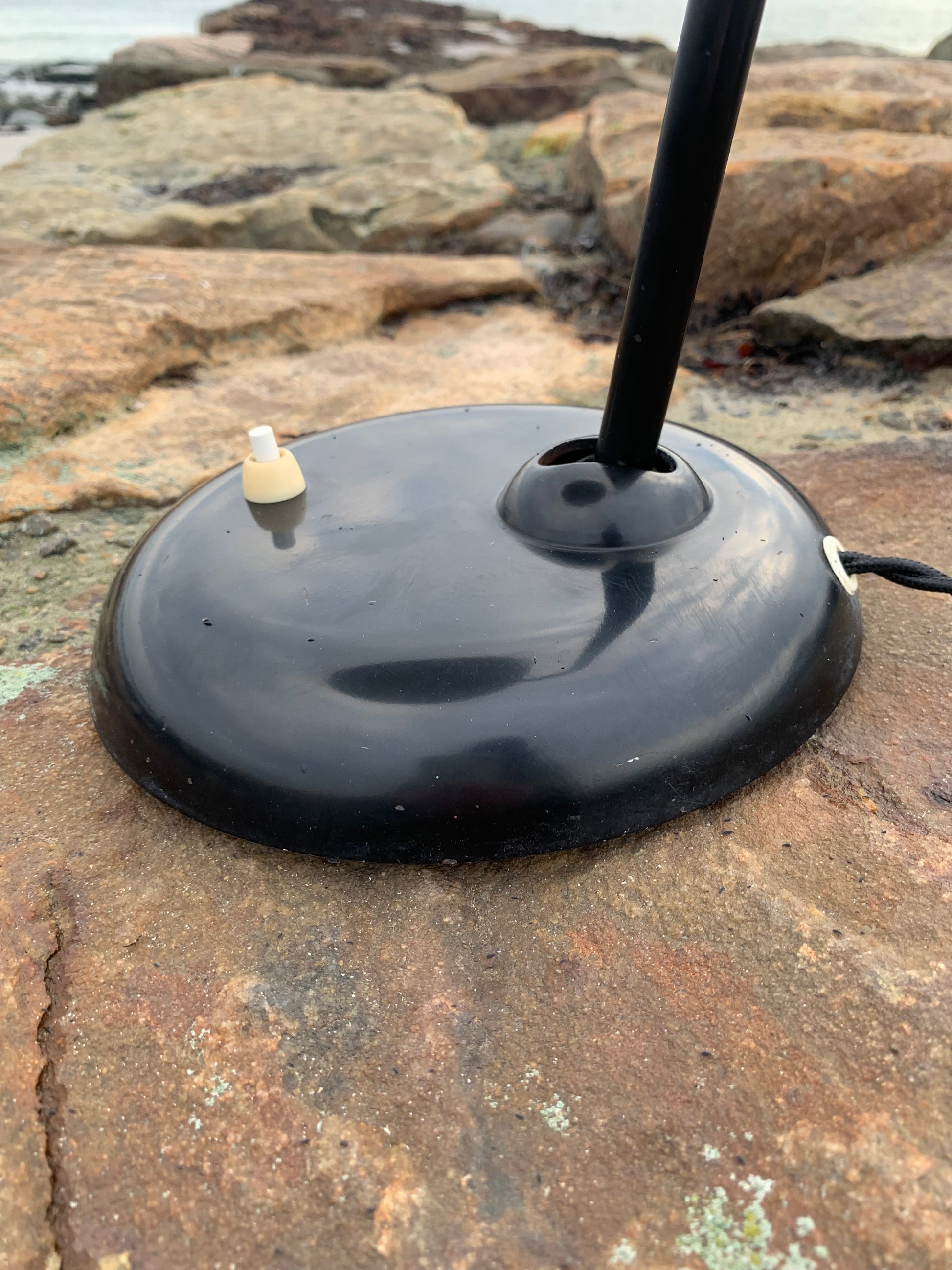 Dieses Exemplar befindet sich im Originalzustand mit Originallackierung und neuen Kabeln. Die Lampe weist altersbedingte Gebrauchsspuren auf, die bei einer solchen Lampe (unserer Meinung nach) üblich sind.