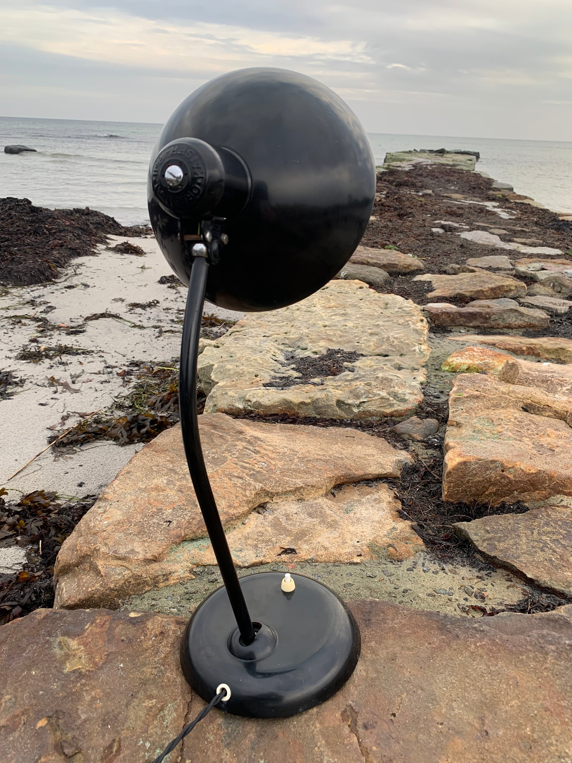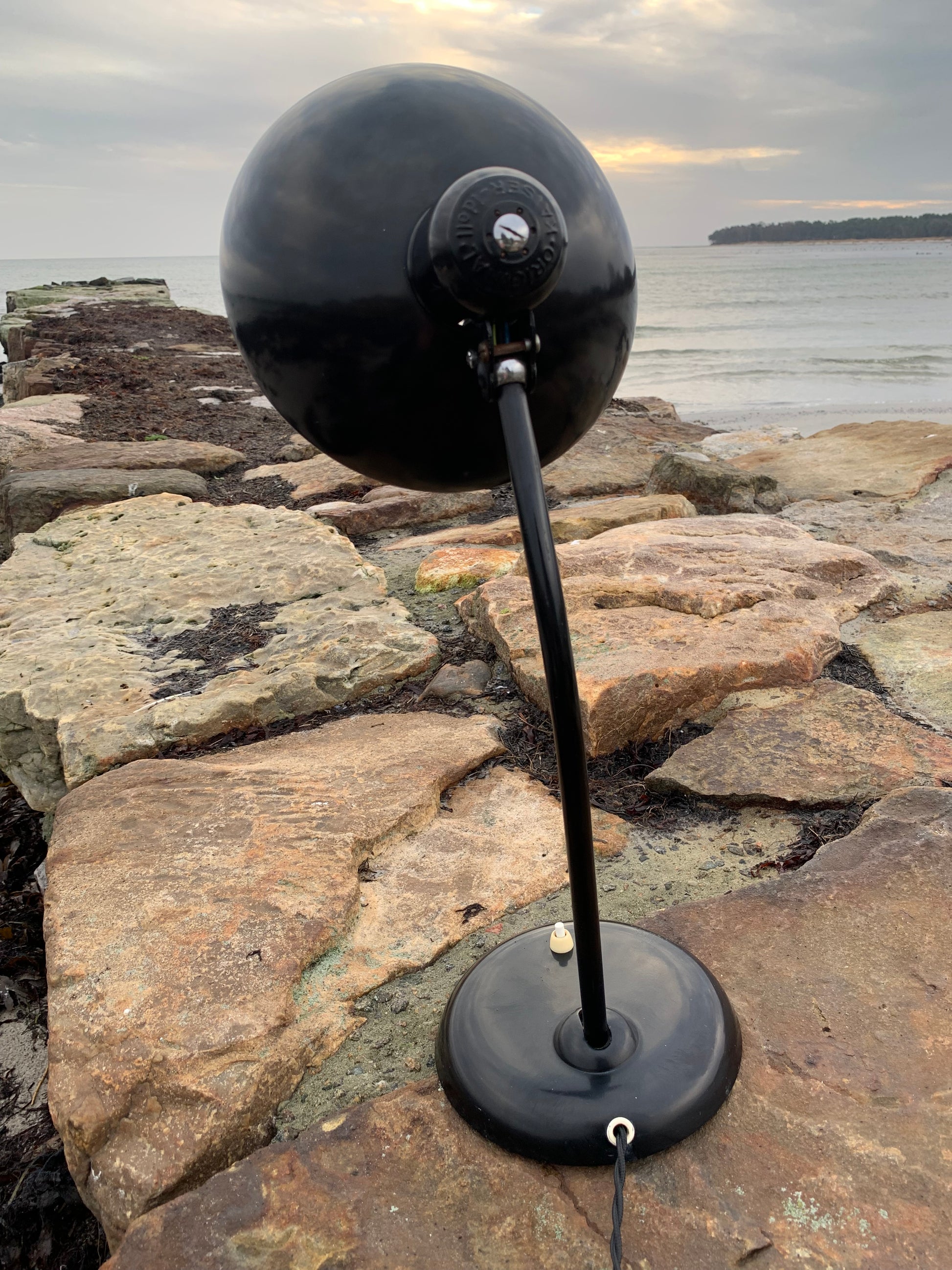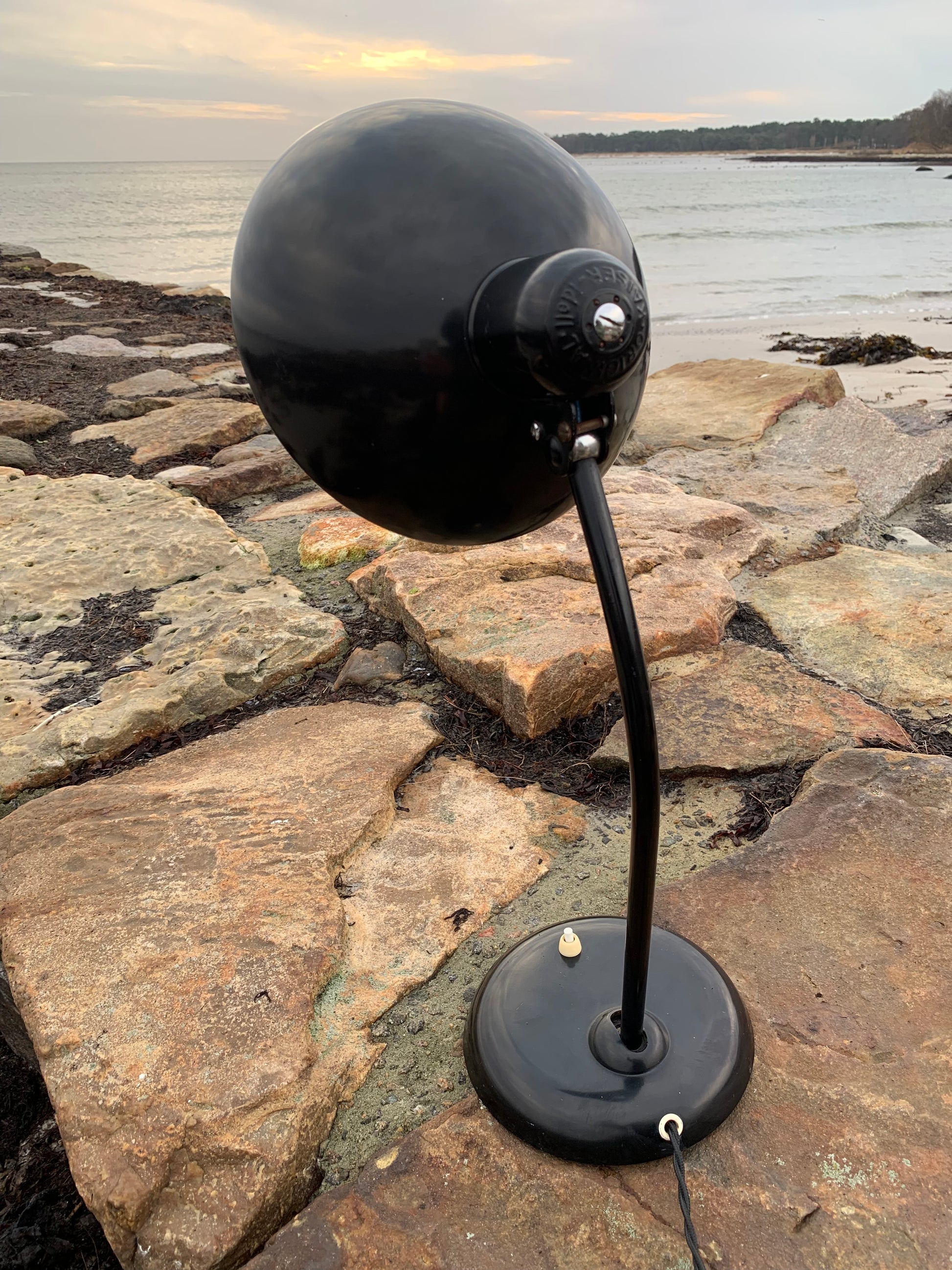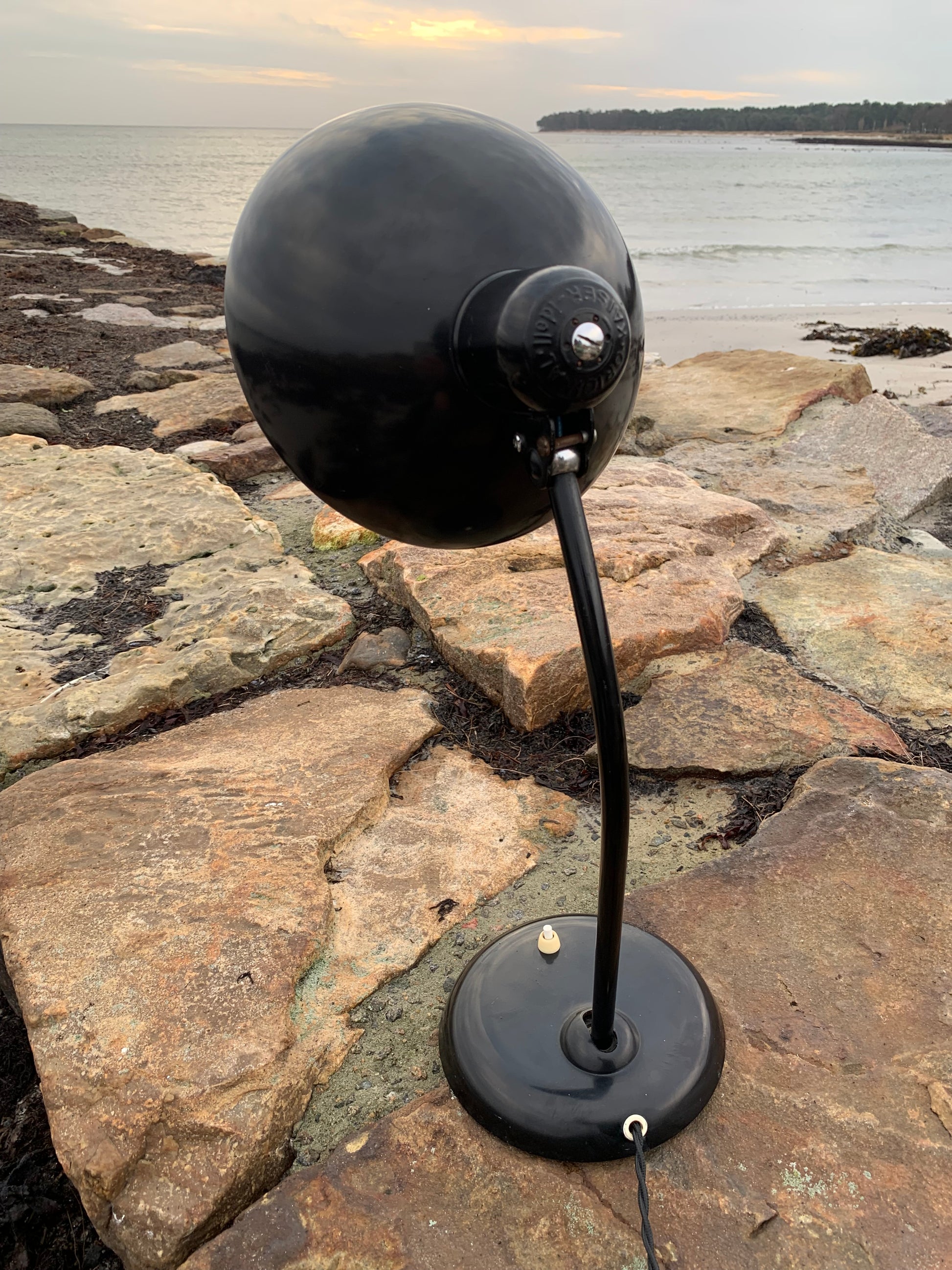 Dieses Exemplar befindet sich im Originalzustand mit Originallackierung und neuen Kabeln. Die Lampe weist altersbedingte Gebrauchsspuren auf, die bei einer solchen Lampe (unserer Meinung nach) üblich sind.