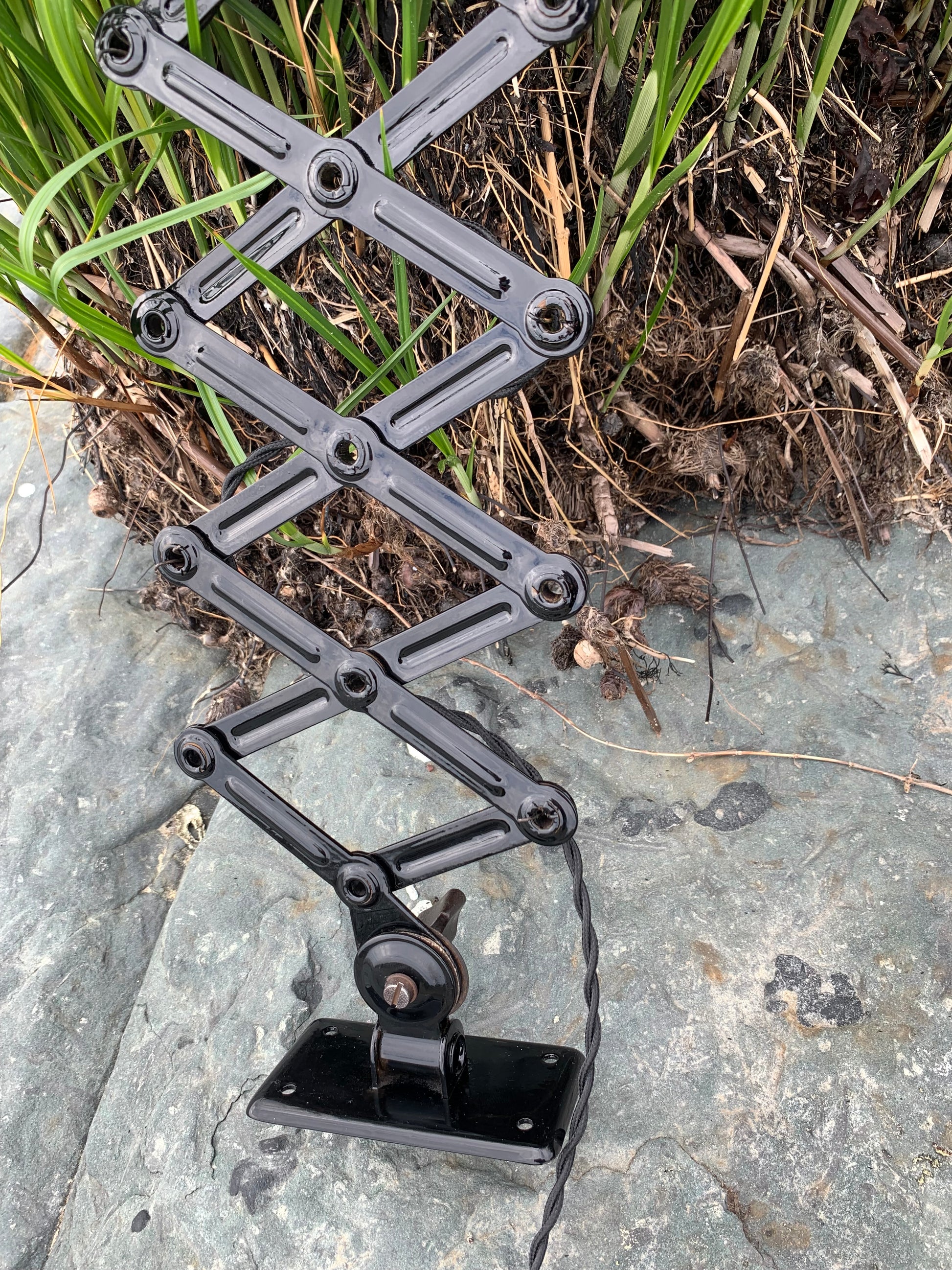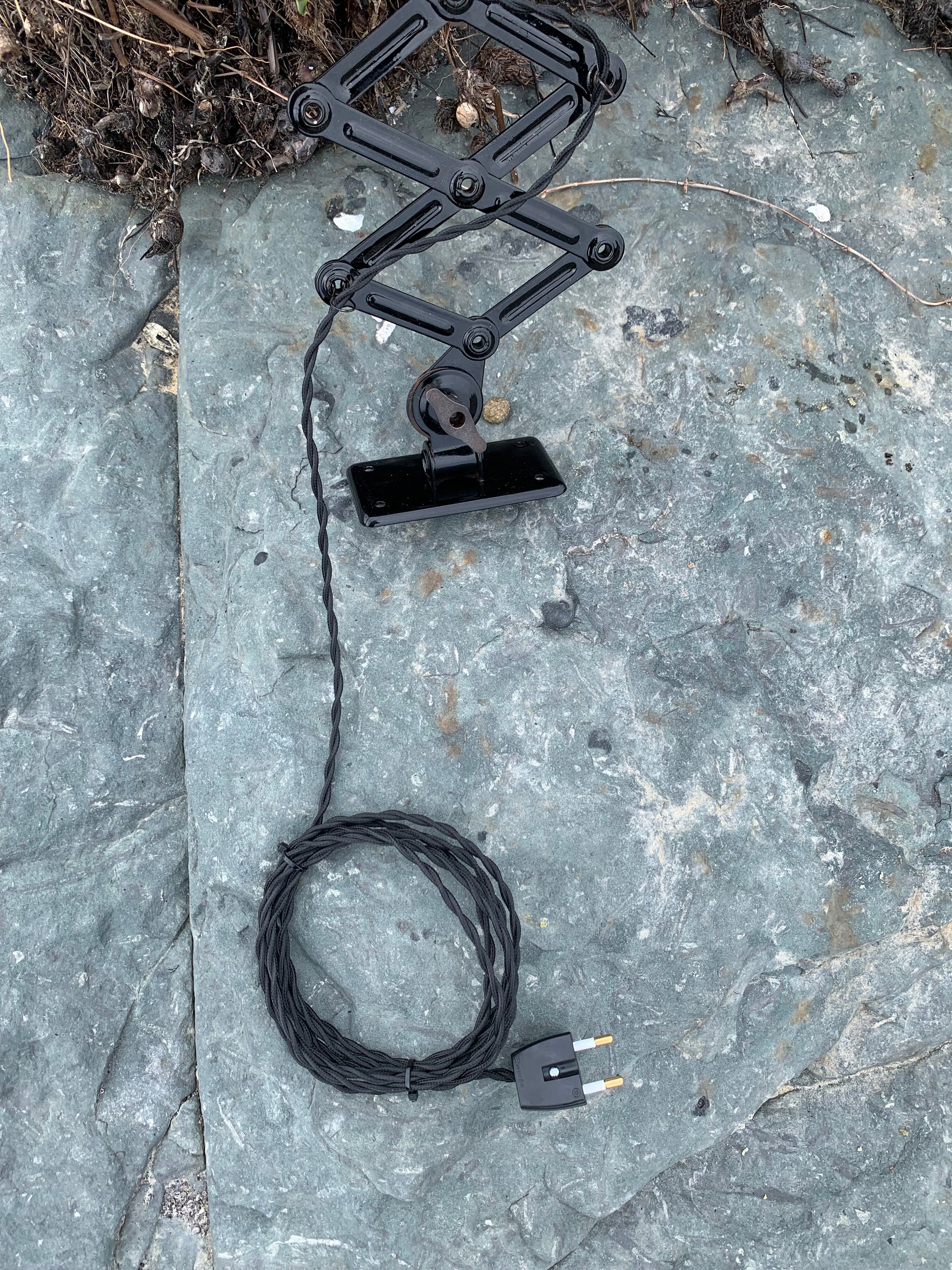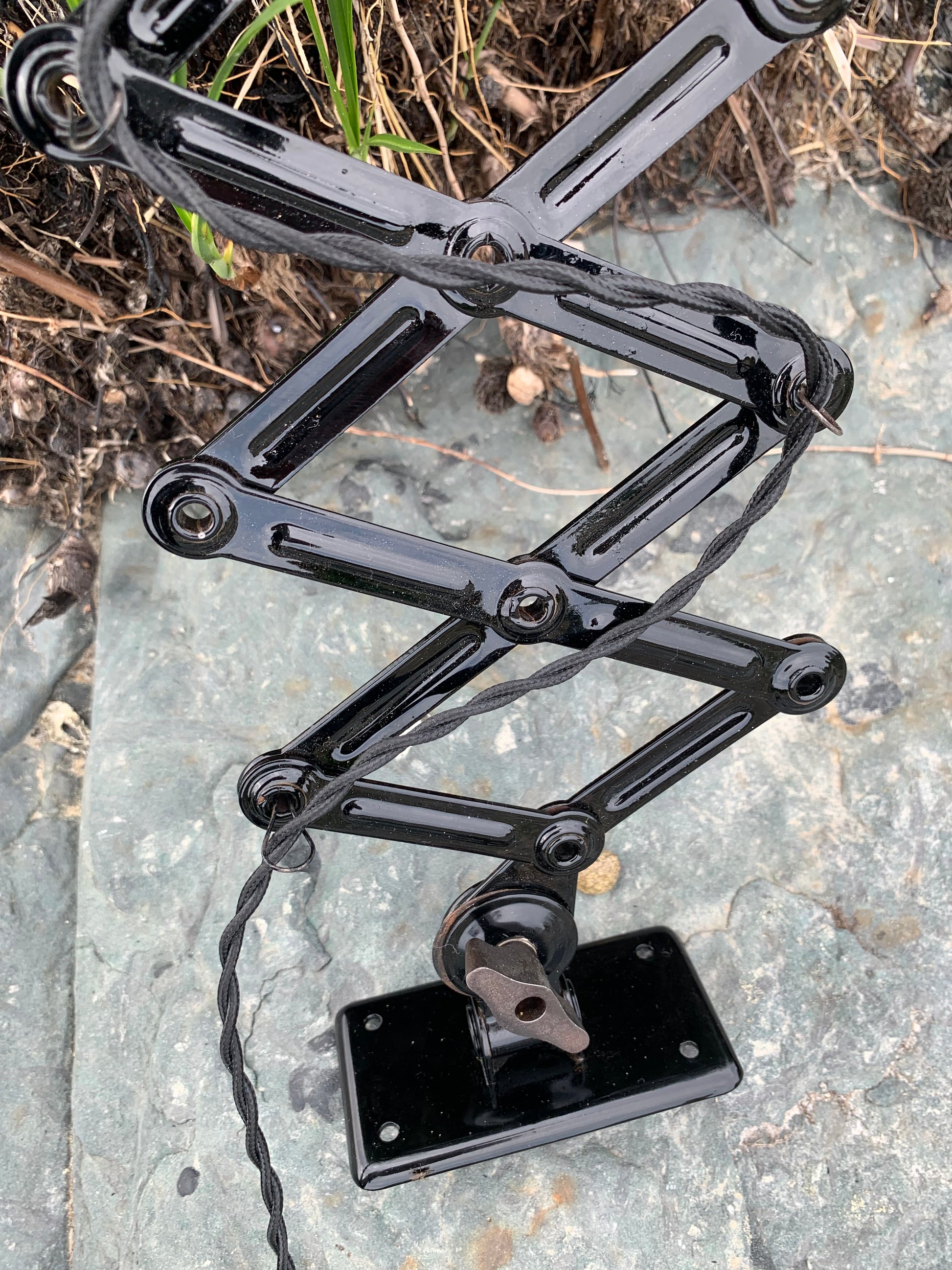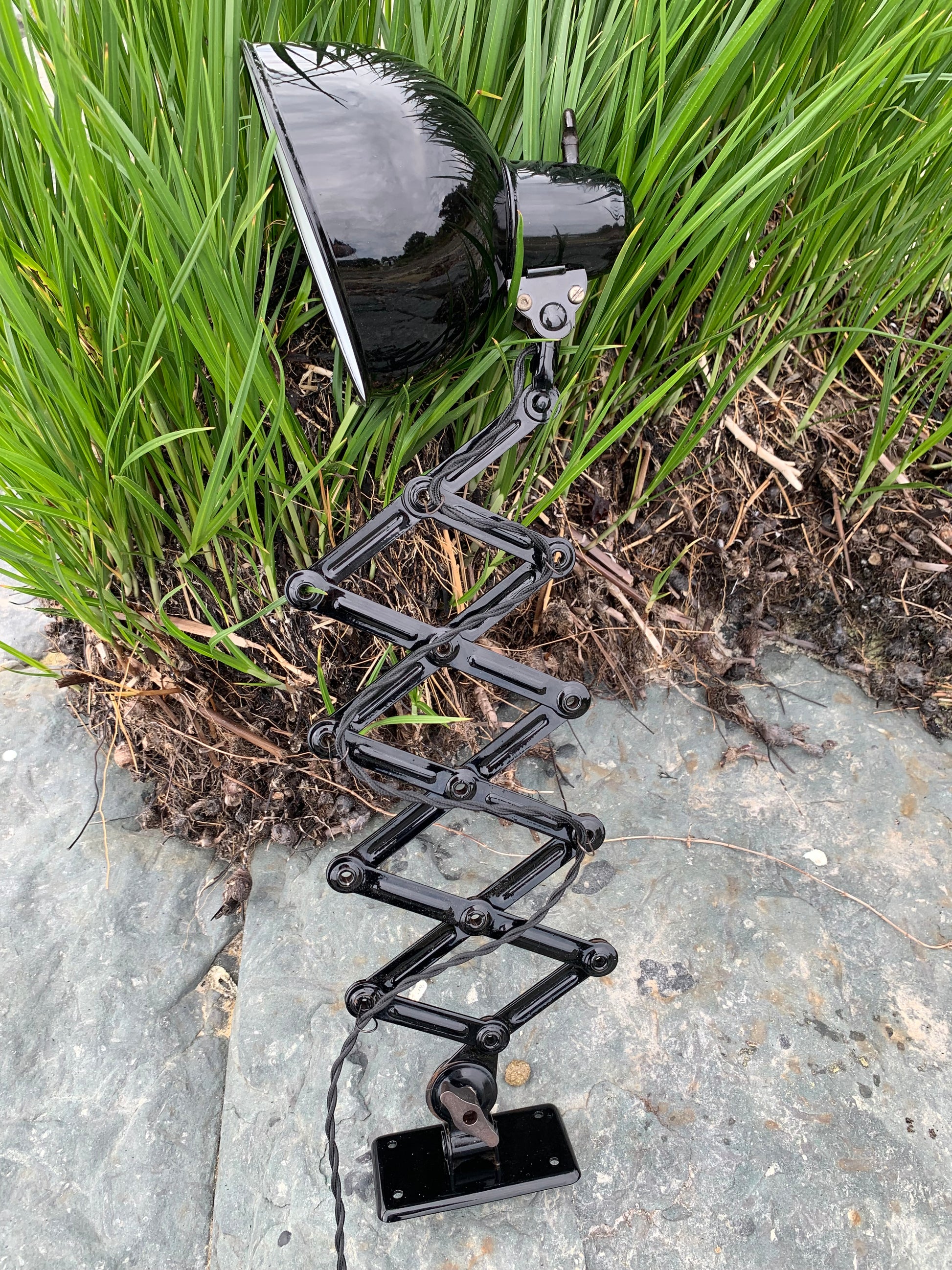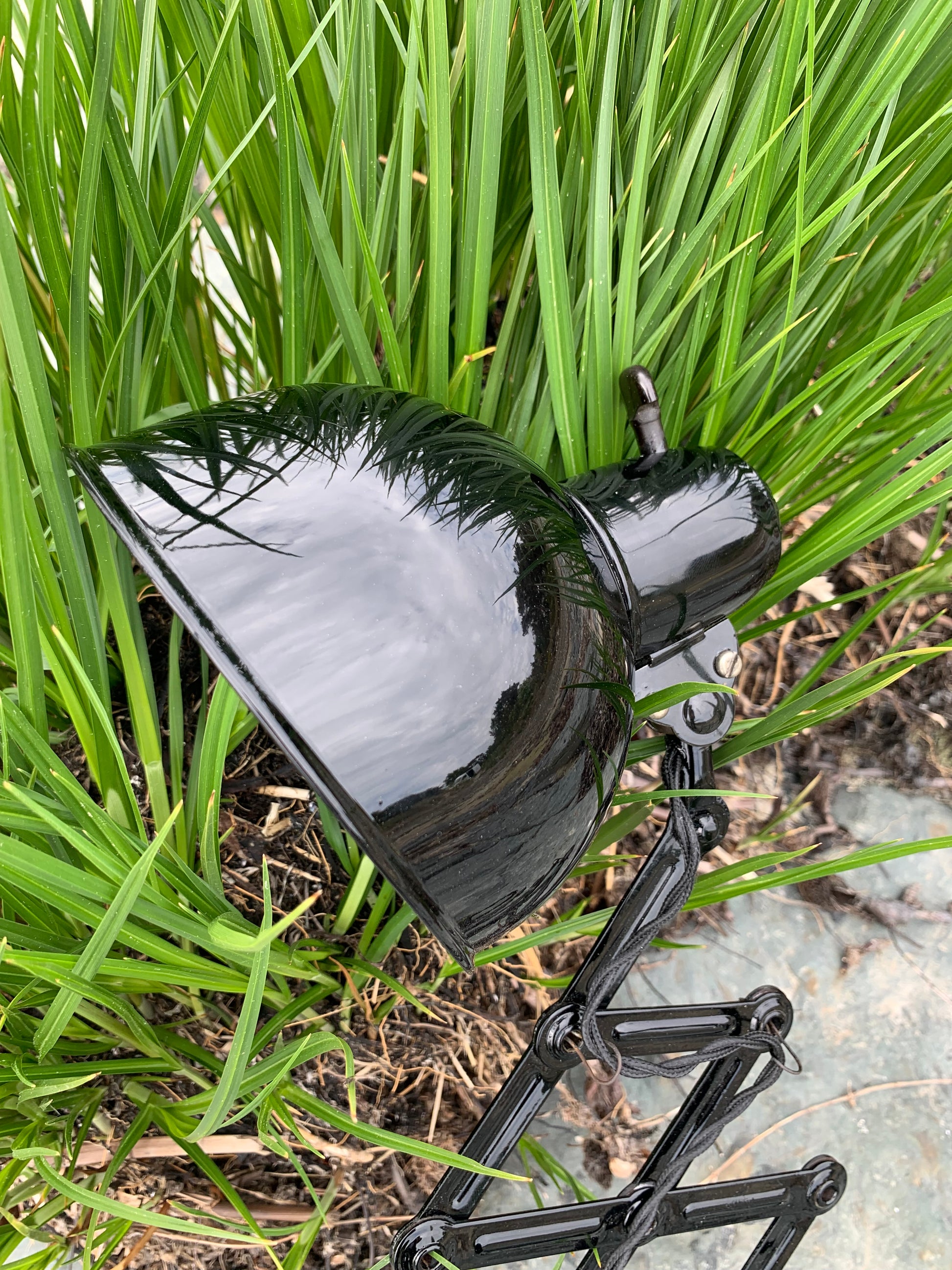 Dieses Exemplar wurde sorgfältig restauriert und erscheint mit neuer Lackierung und neuer Verkabelung. Trotz der Restaurierung hat die Vintage-Lampe ihren Charme bewahrt. Man erkennt immer noch, dass die Lampe einige charmante Gebrauchsspuren aufweist, die eine solche Lampe (unserer Meinung nach) fast haben sollte.