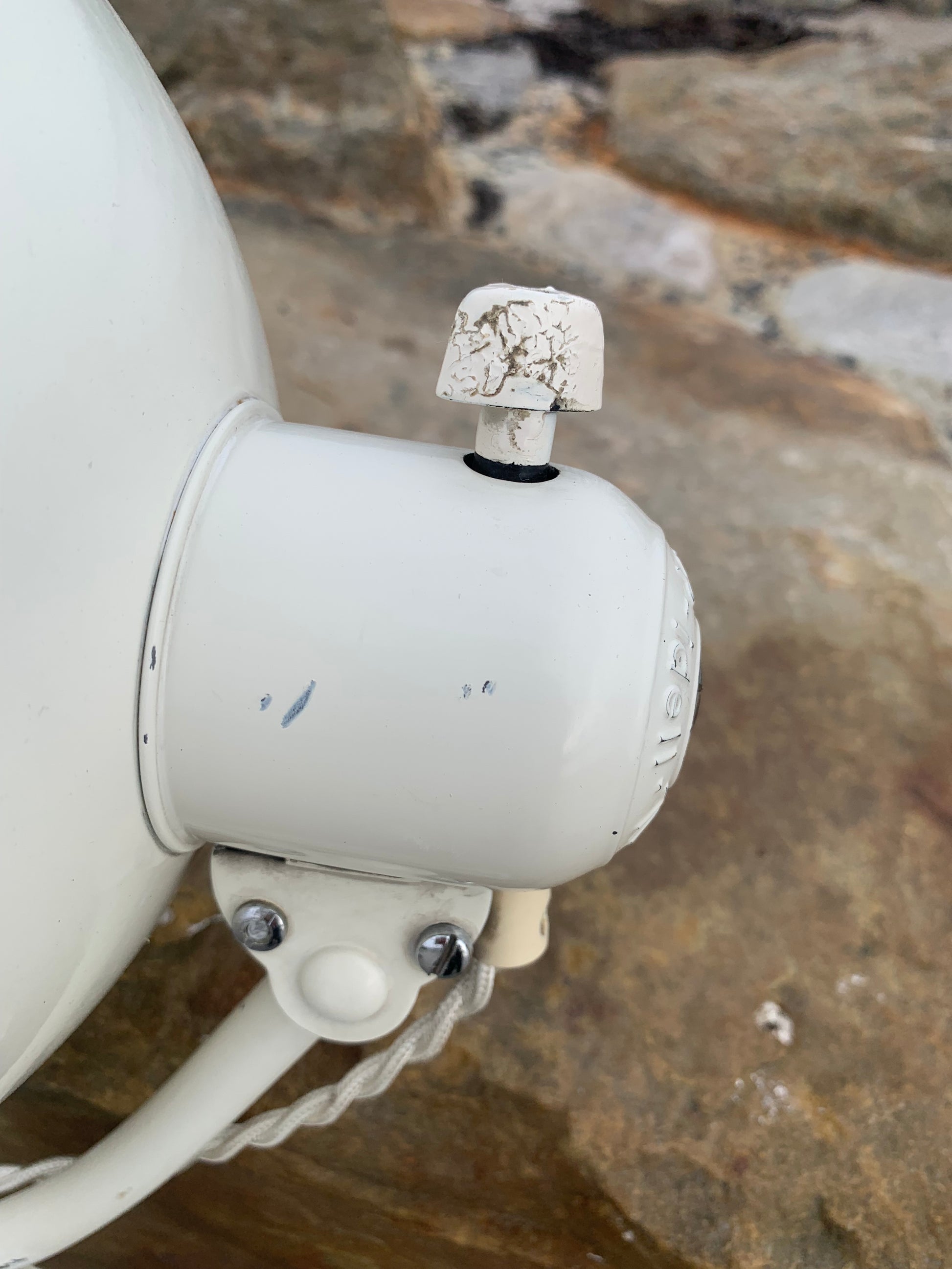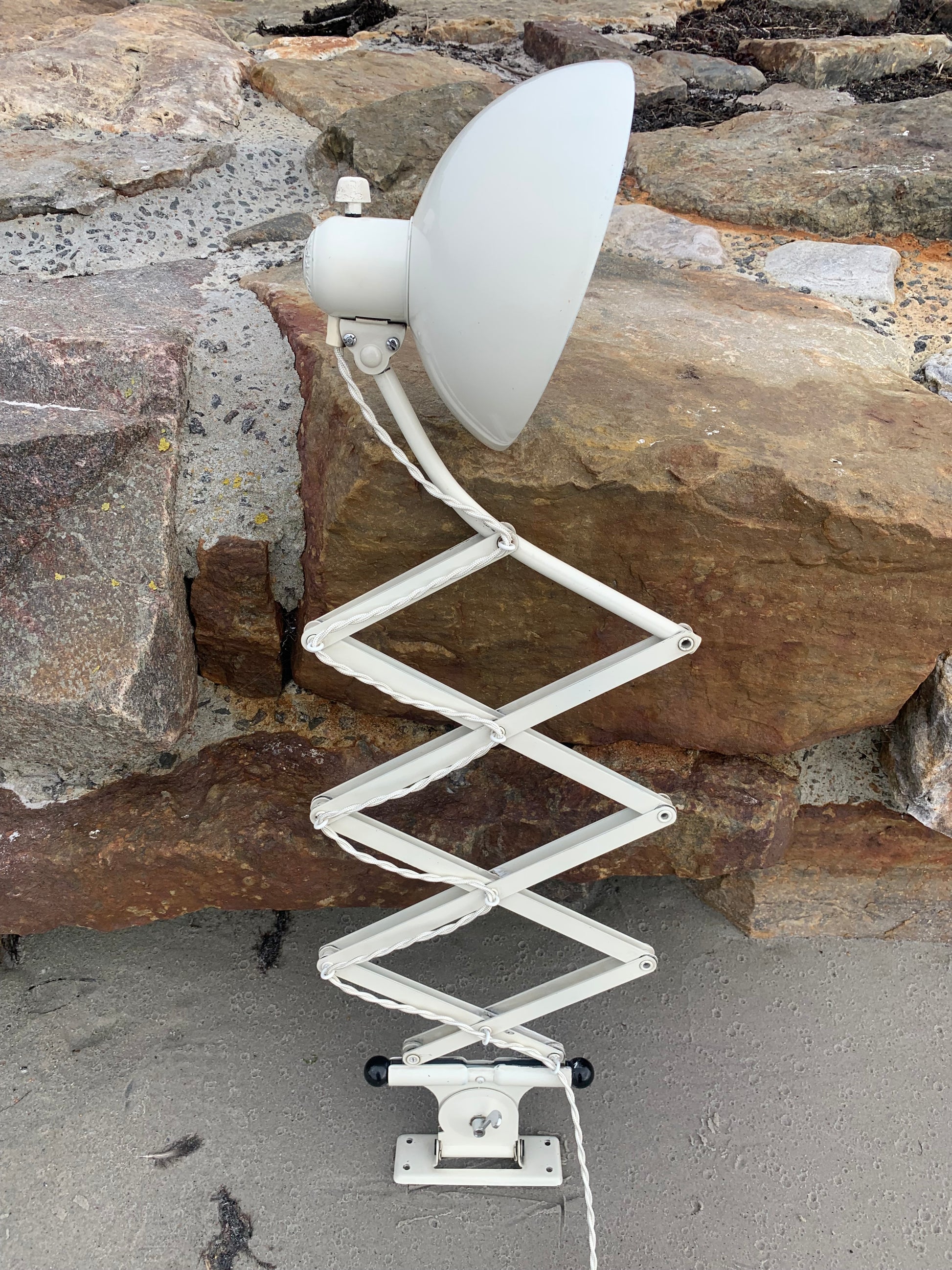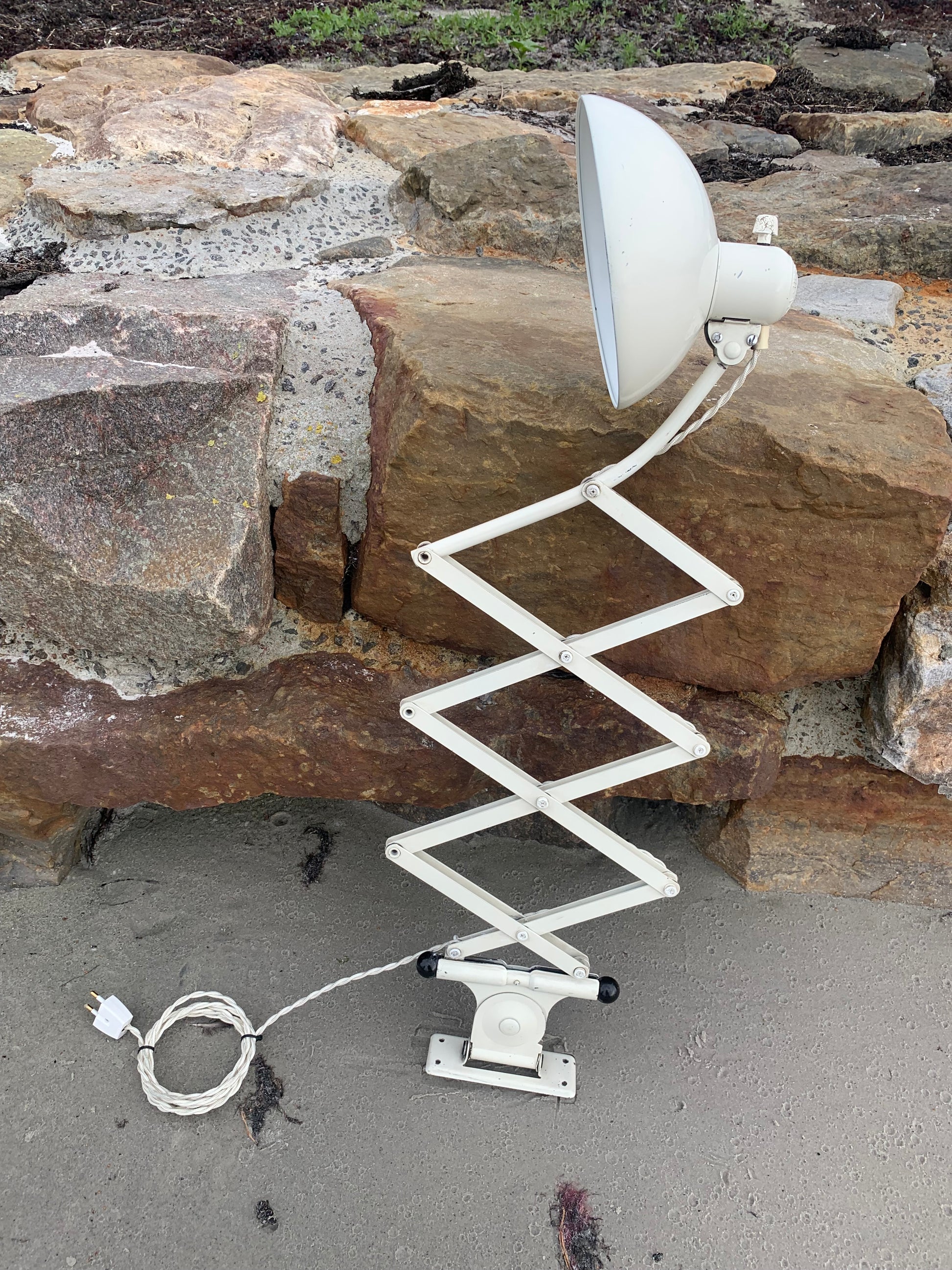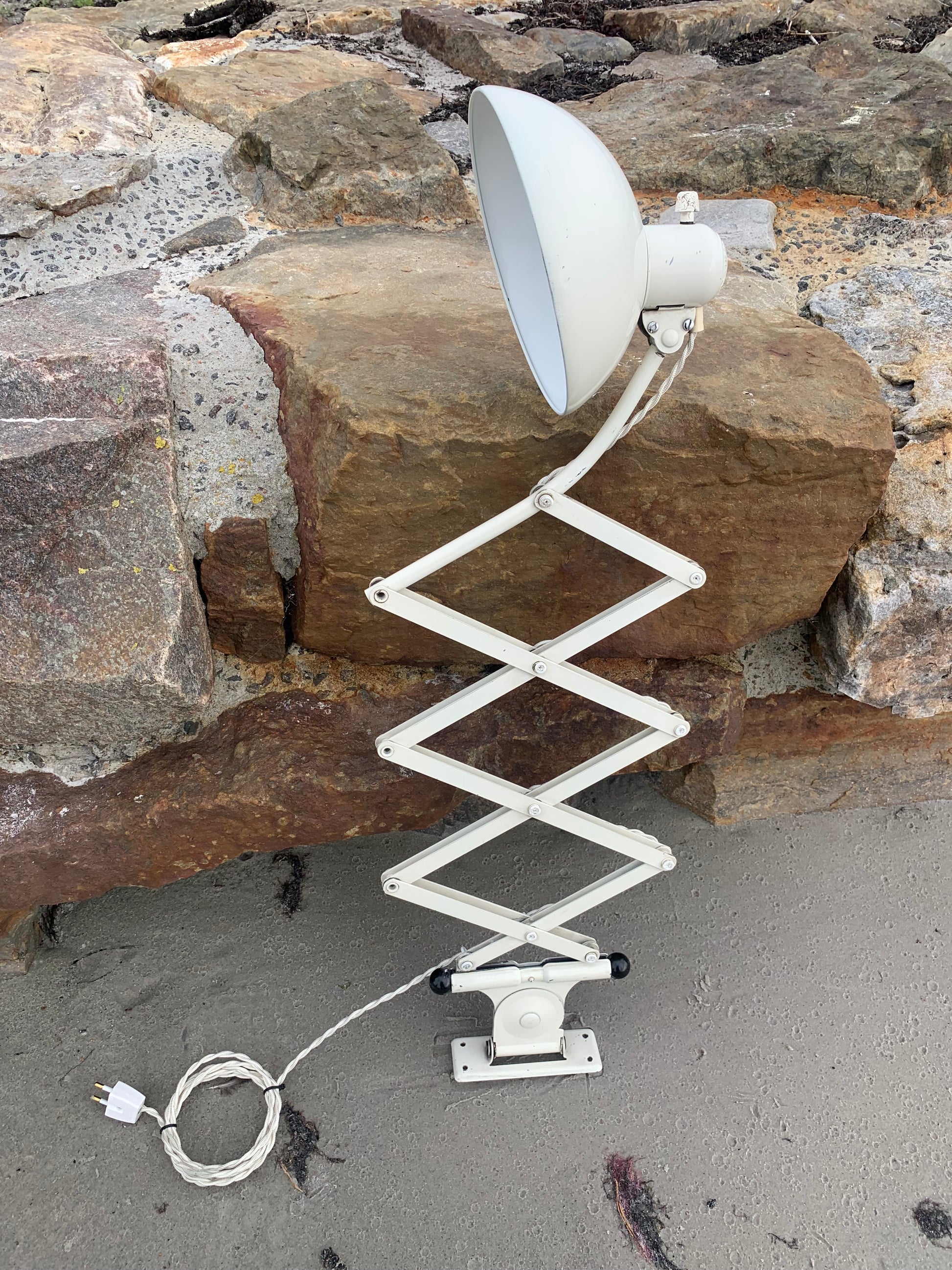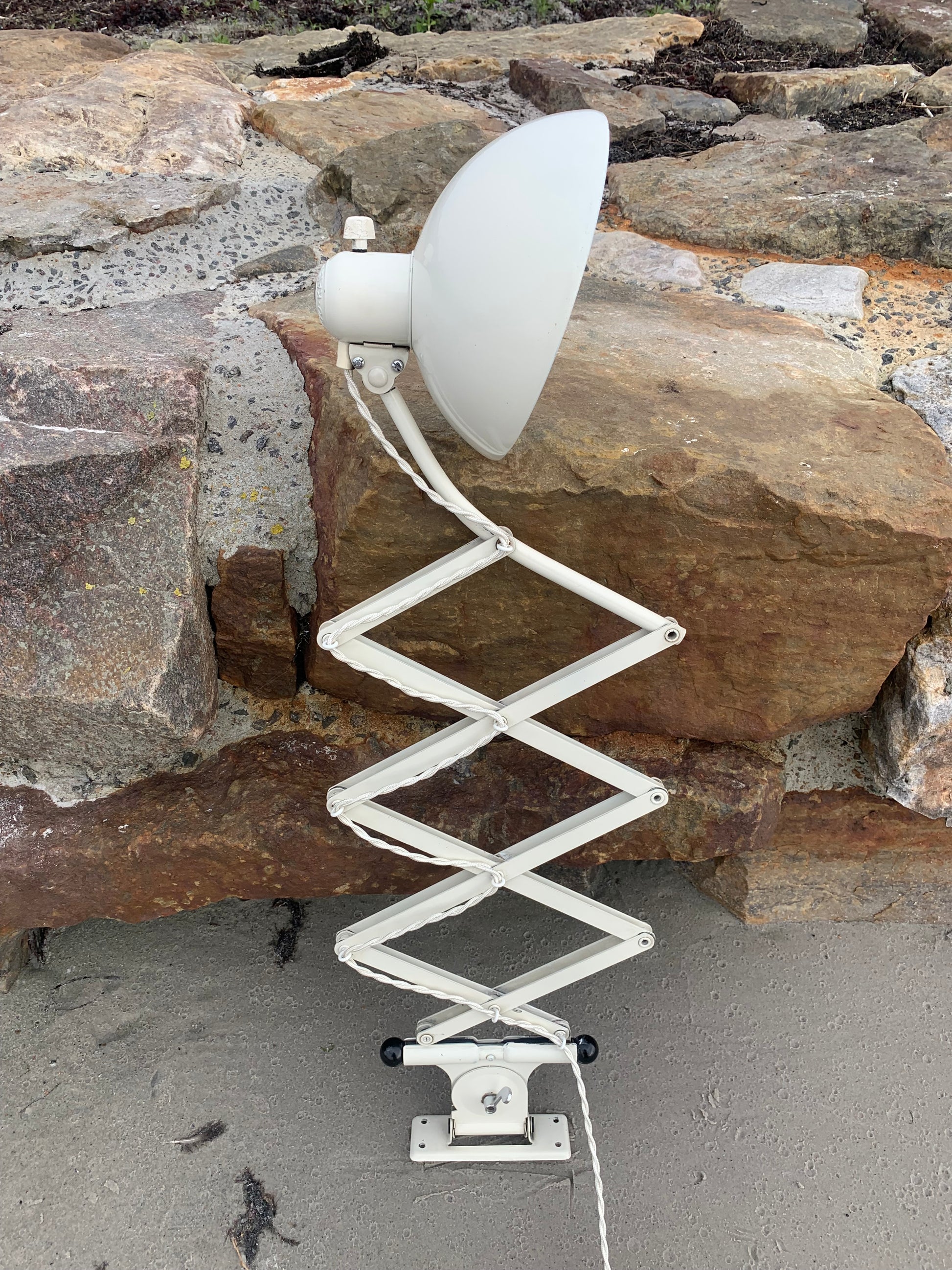 Dieses Exemplar verfügt über den Originallack und neue Kabel. Die Lampe weist altersbedingte Gebrauchsspuren auf, die eine solche Lampe (unserer Meinung nach) haben sollte.